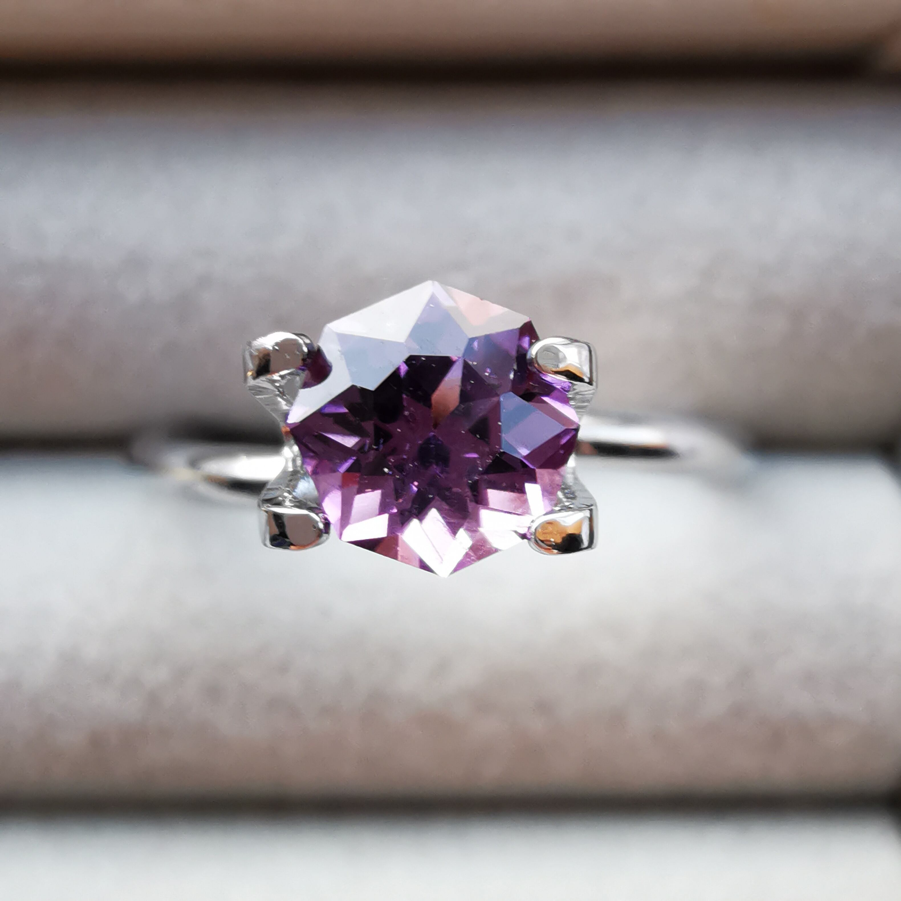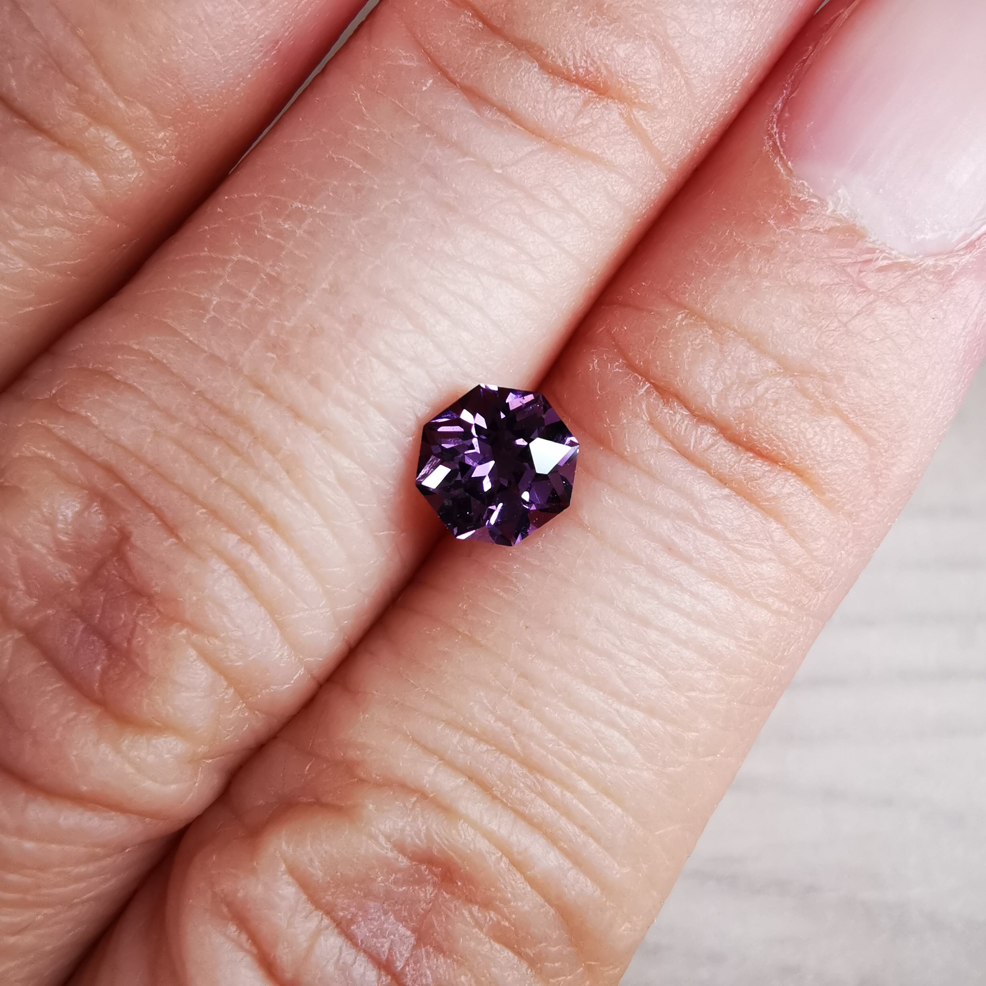 パープルグレーのスピネルの中でも、かなりパープルが強い一石です。