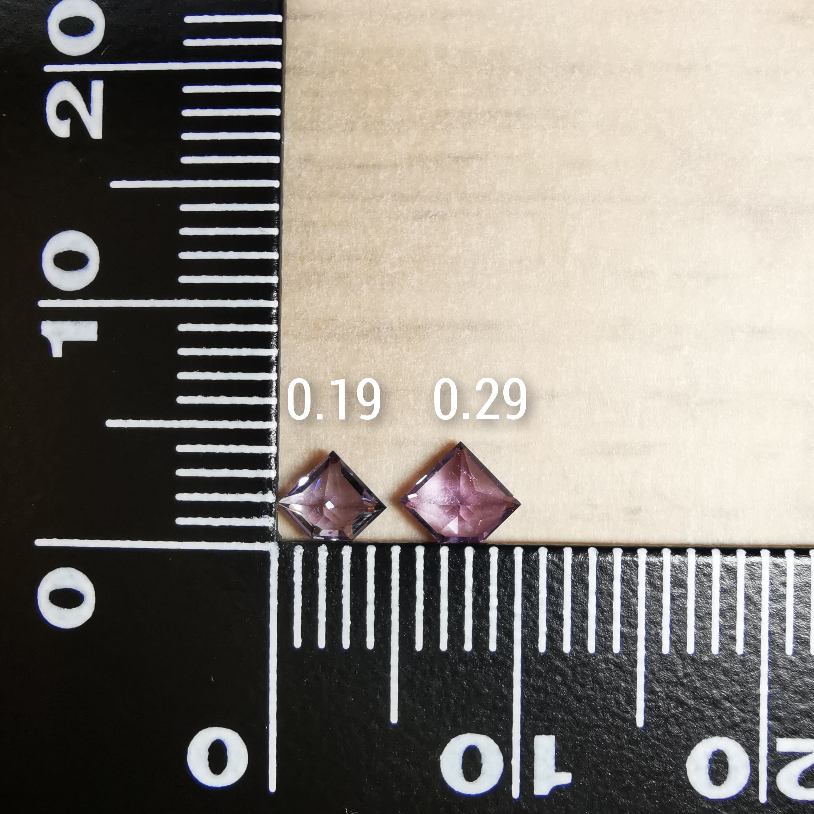 一番小さい石が0.19ct、大きい石が0.31ct、半数以上の石が0.23~0.25ct、すべての石を平均すると約0.25ctでした。