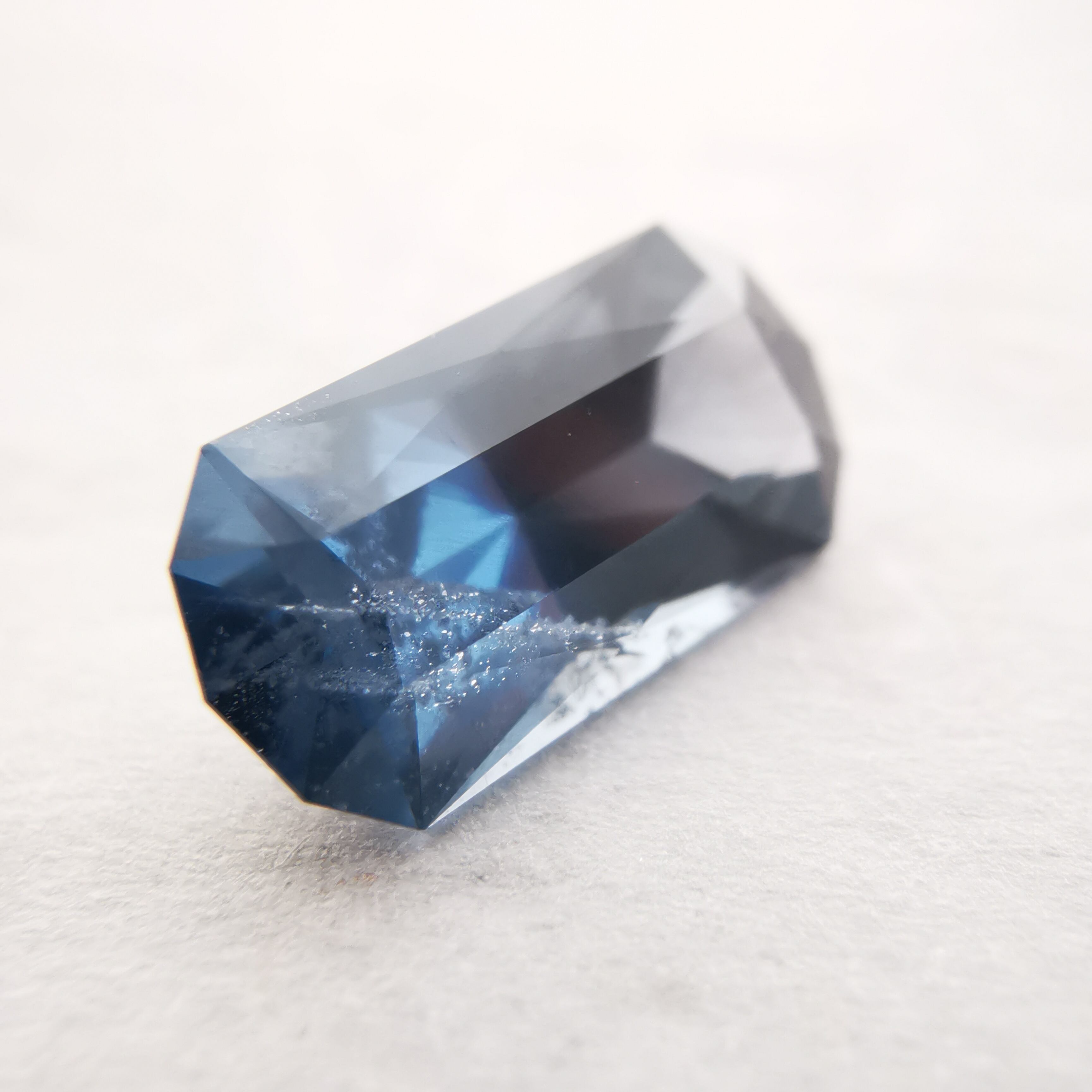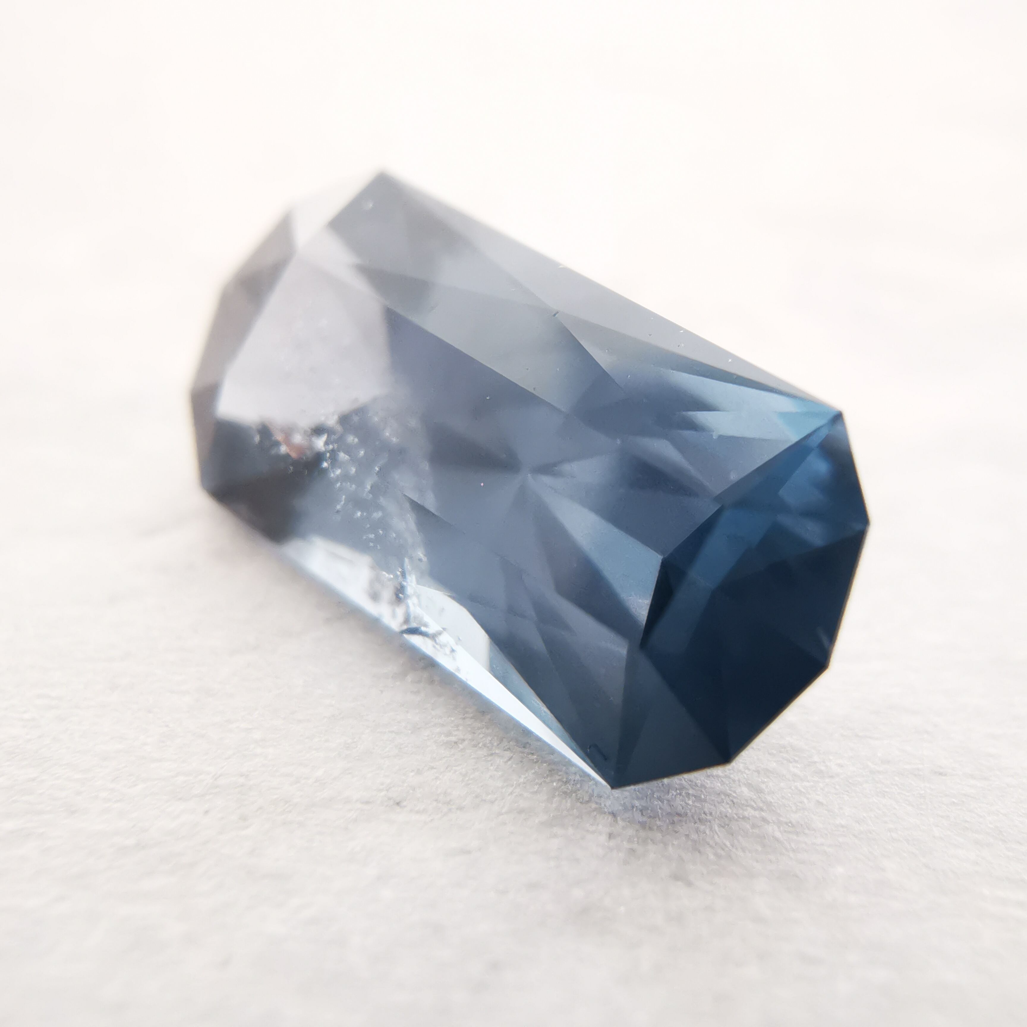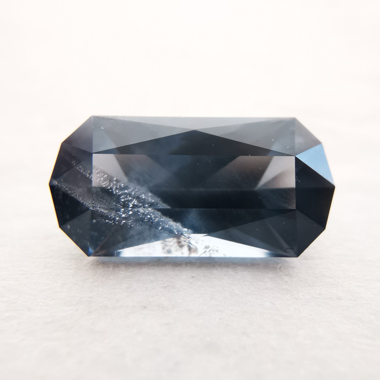 全体にシルキーなブルーグレーが不思議な輝きのスピネルです。