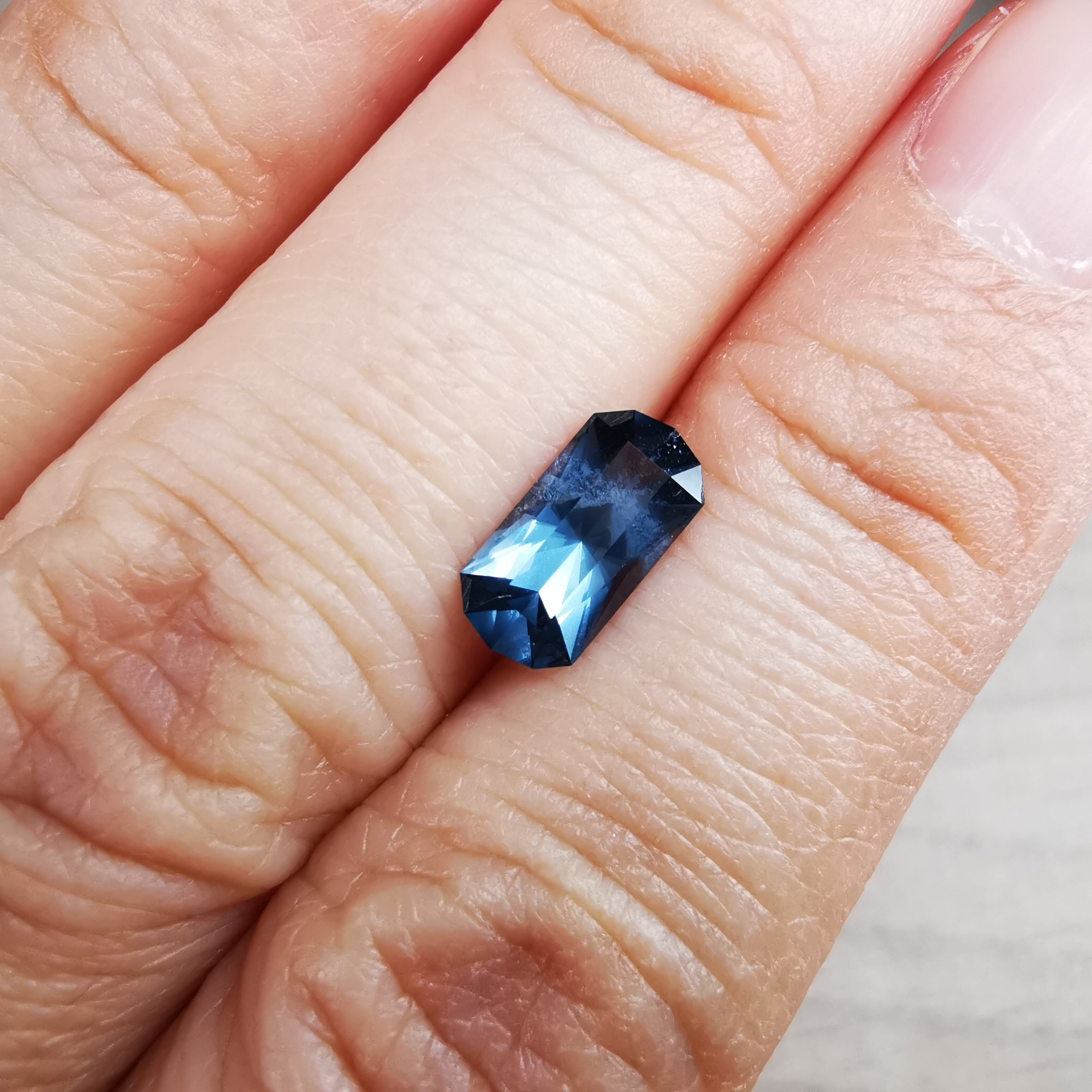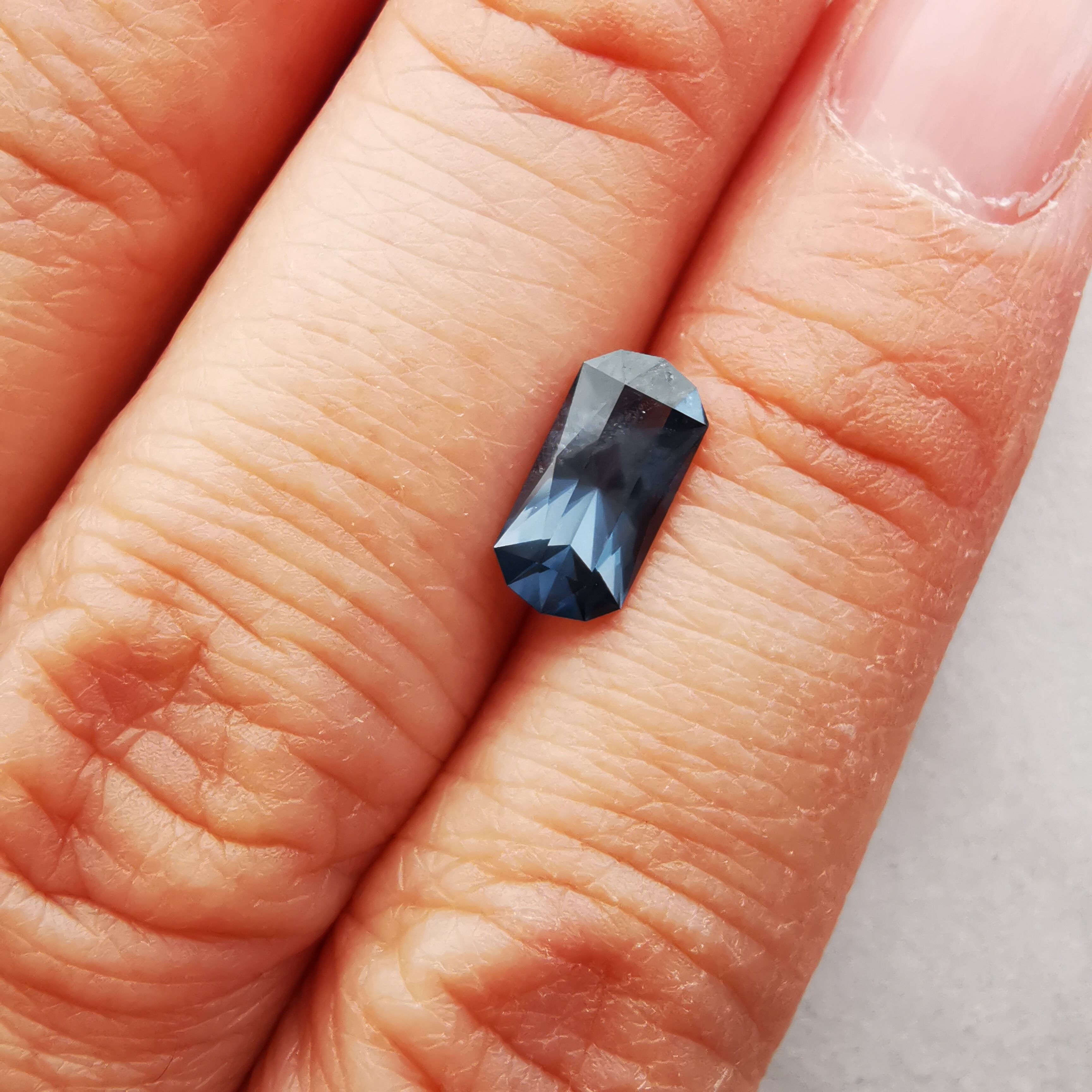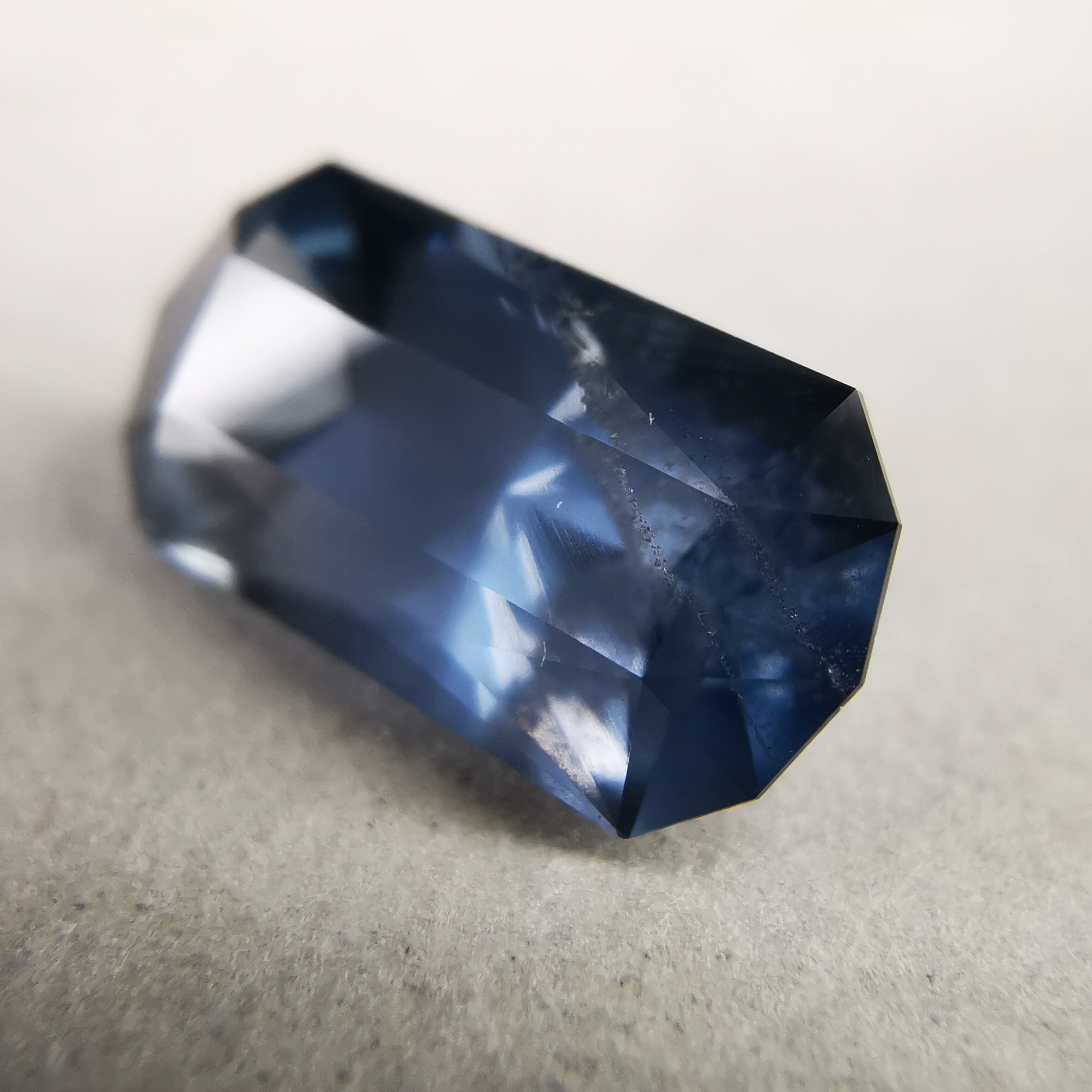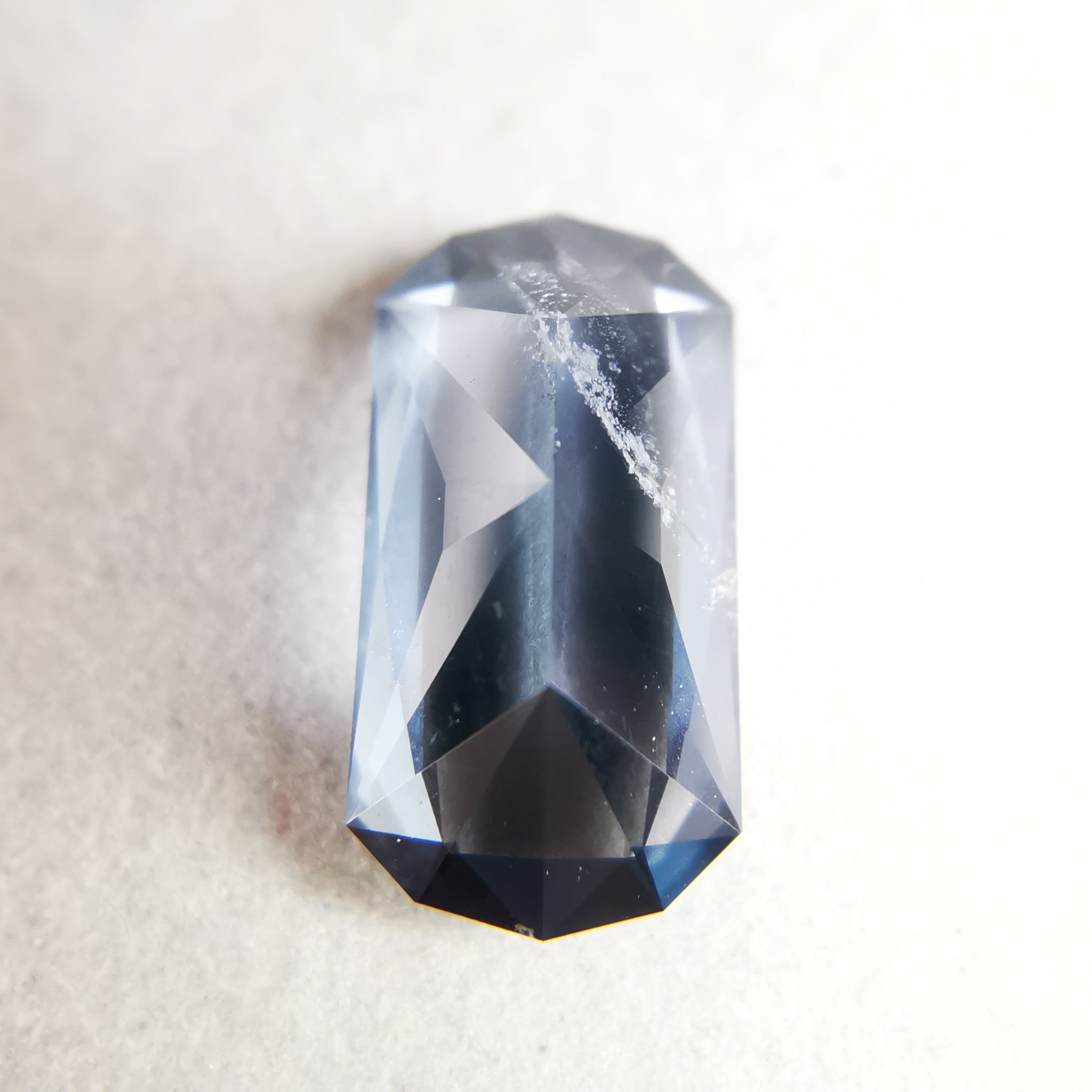 全体にシルキーなブルーグレーが不思議な輝きのスピネルです。