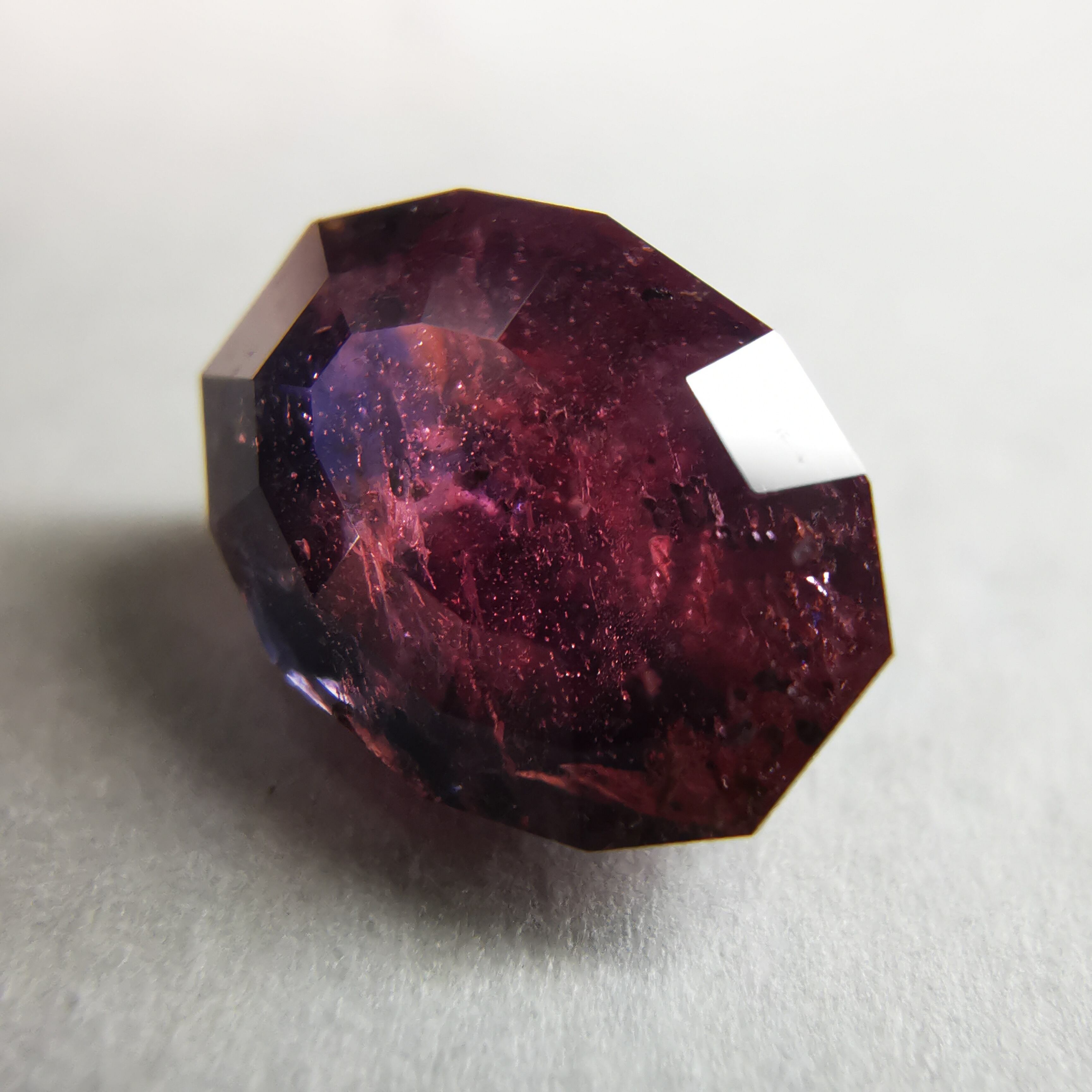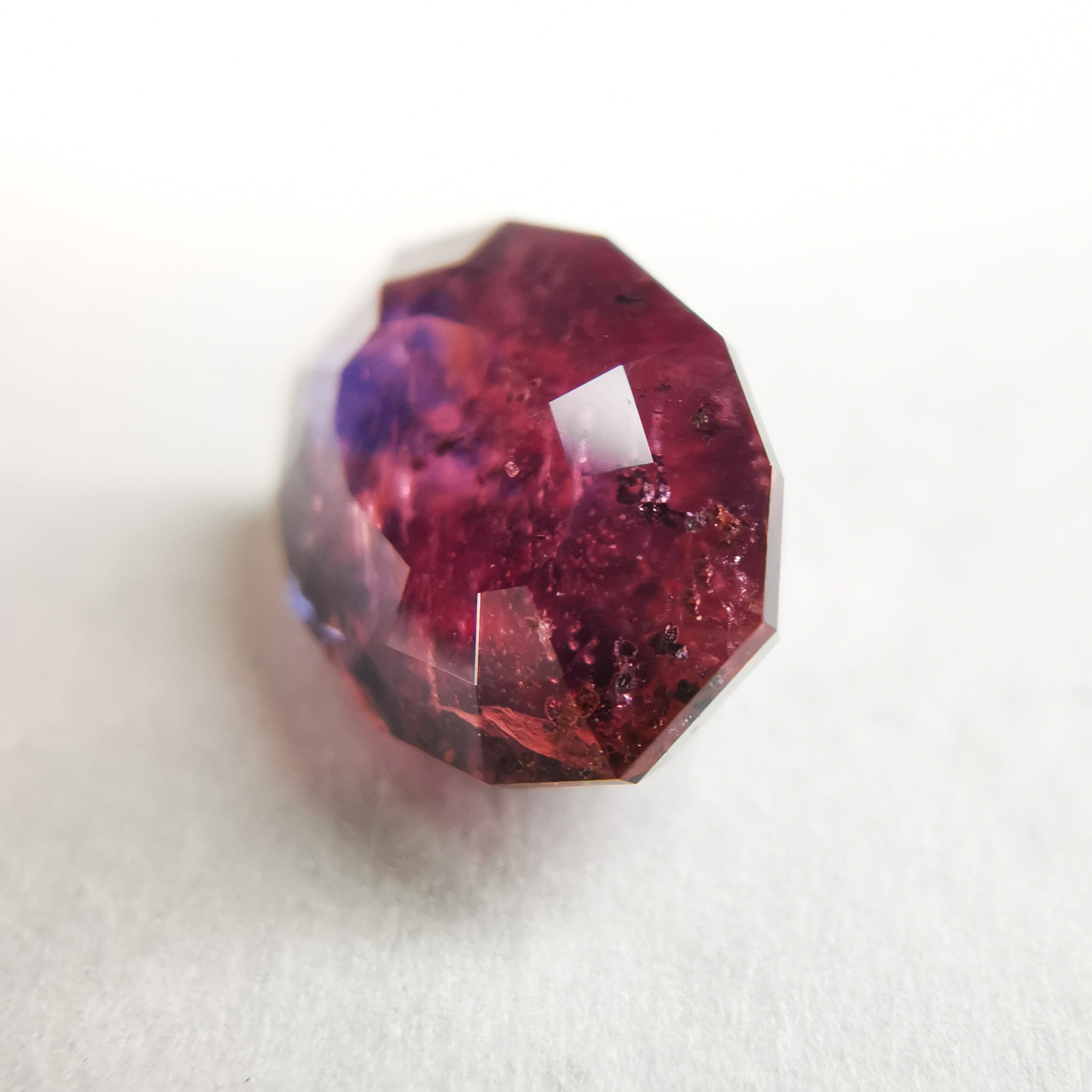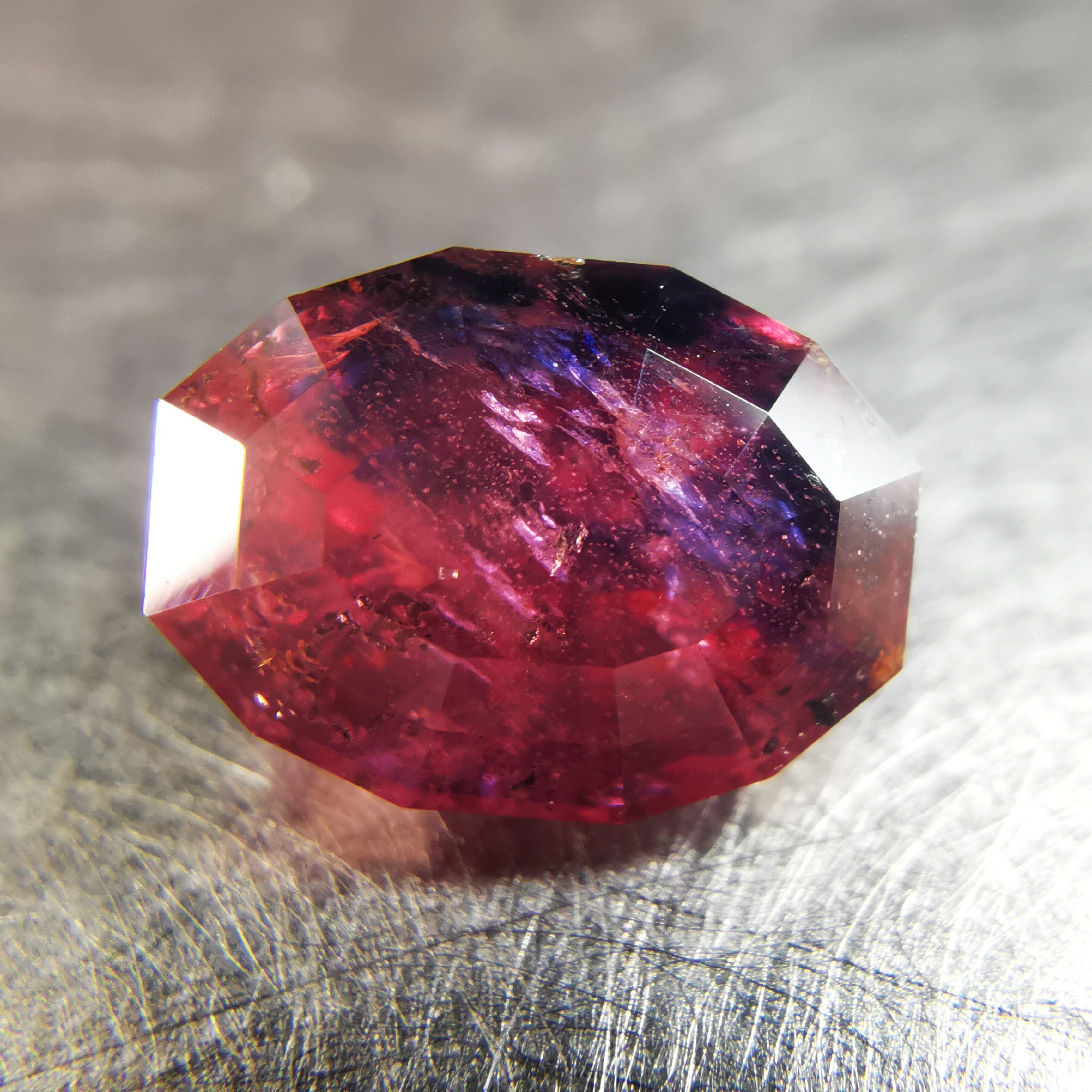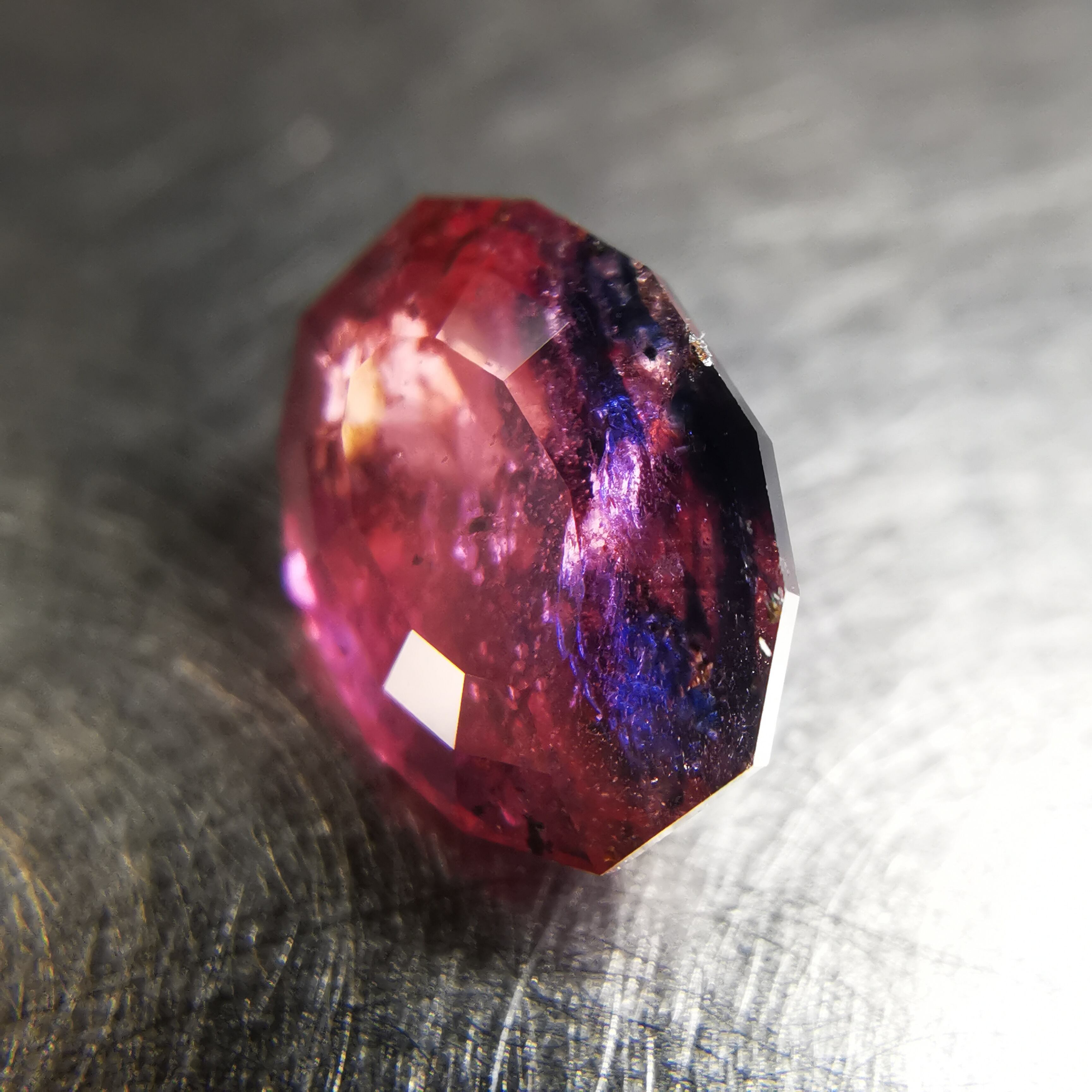 ダークレッドの石に、ダークブルーが混じり、様々な内包物が散りばめられています。
