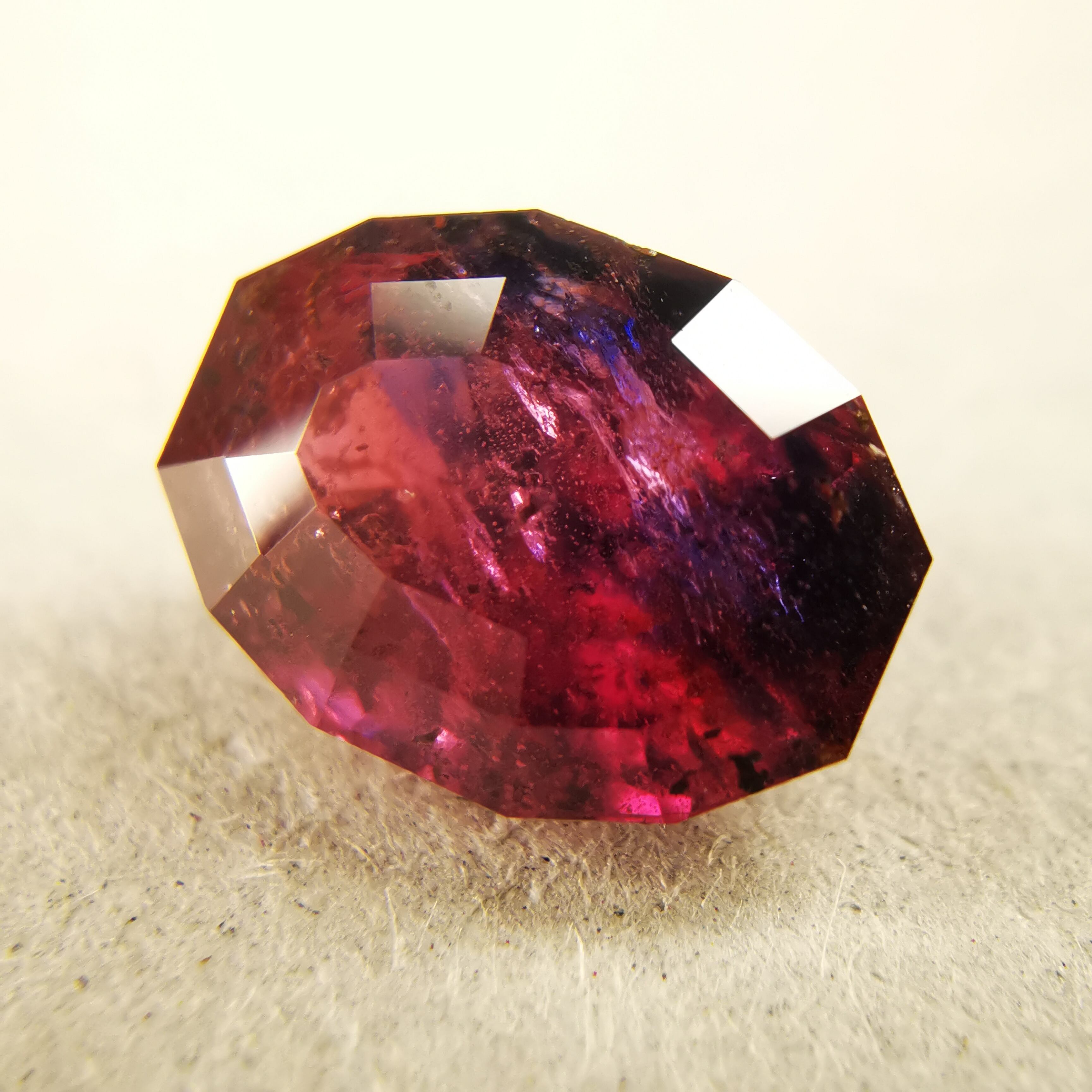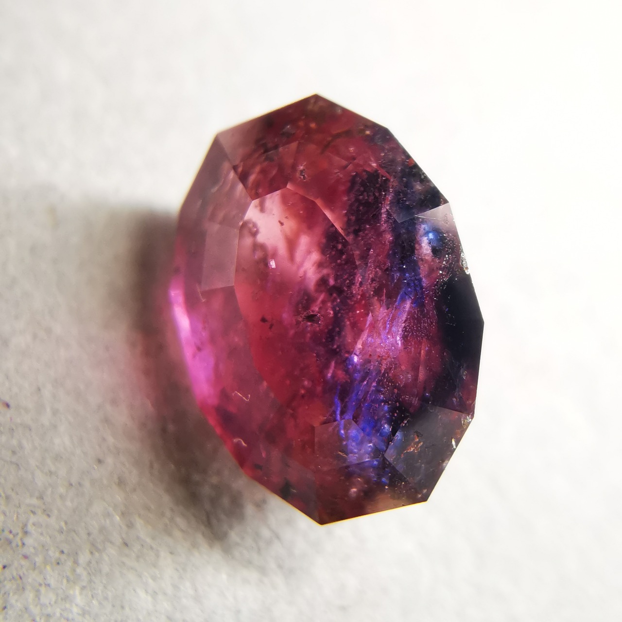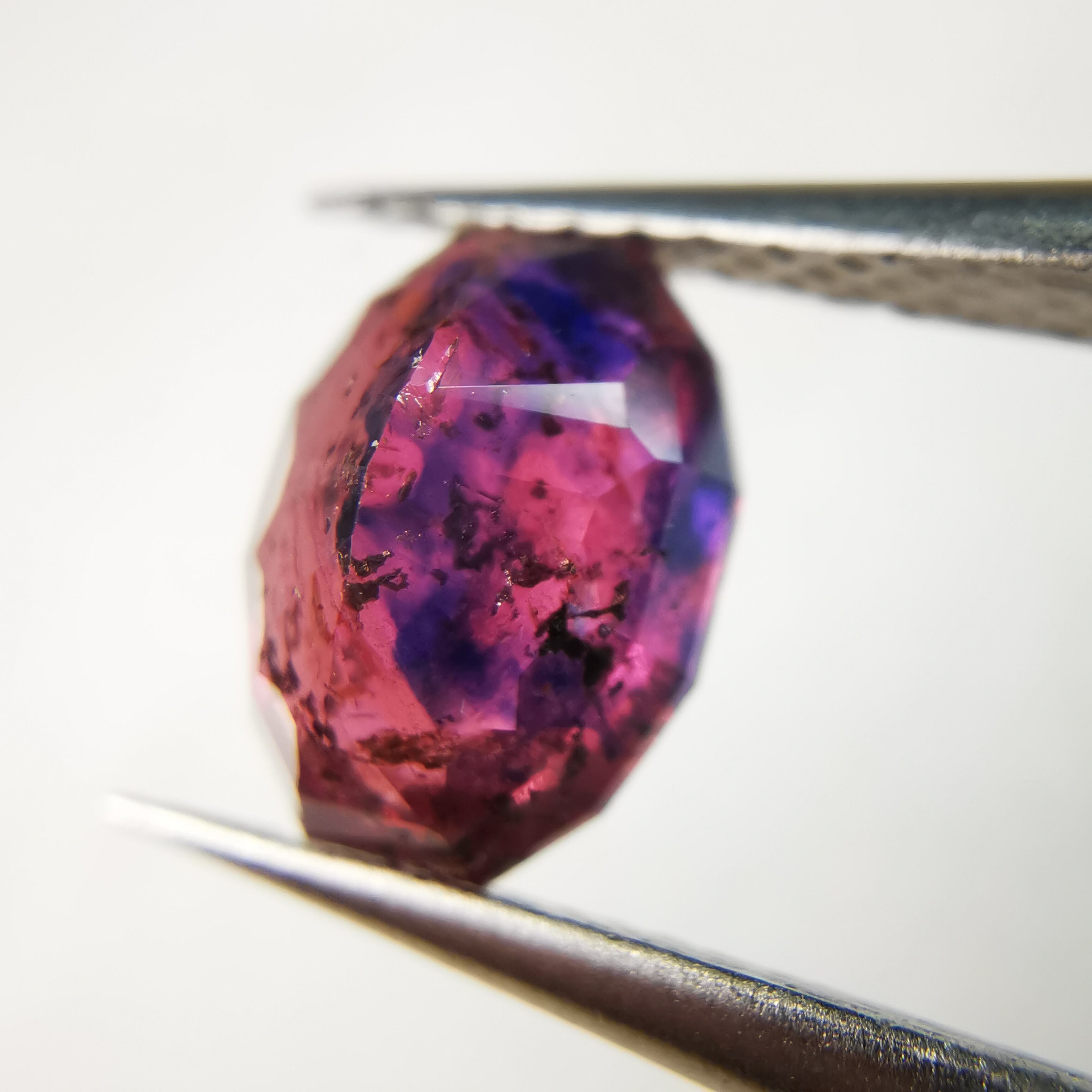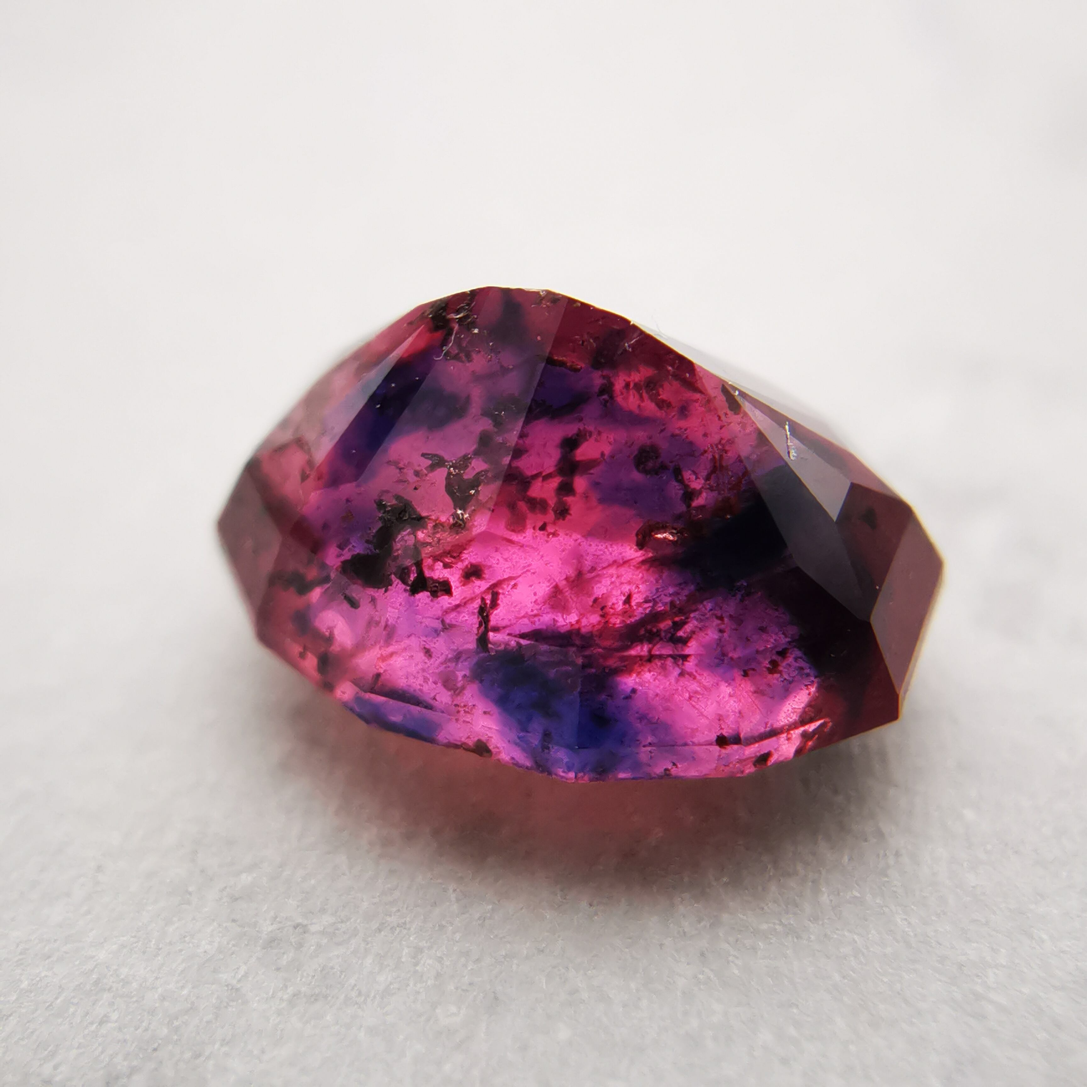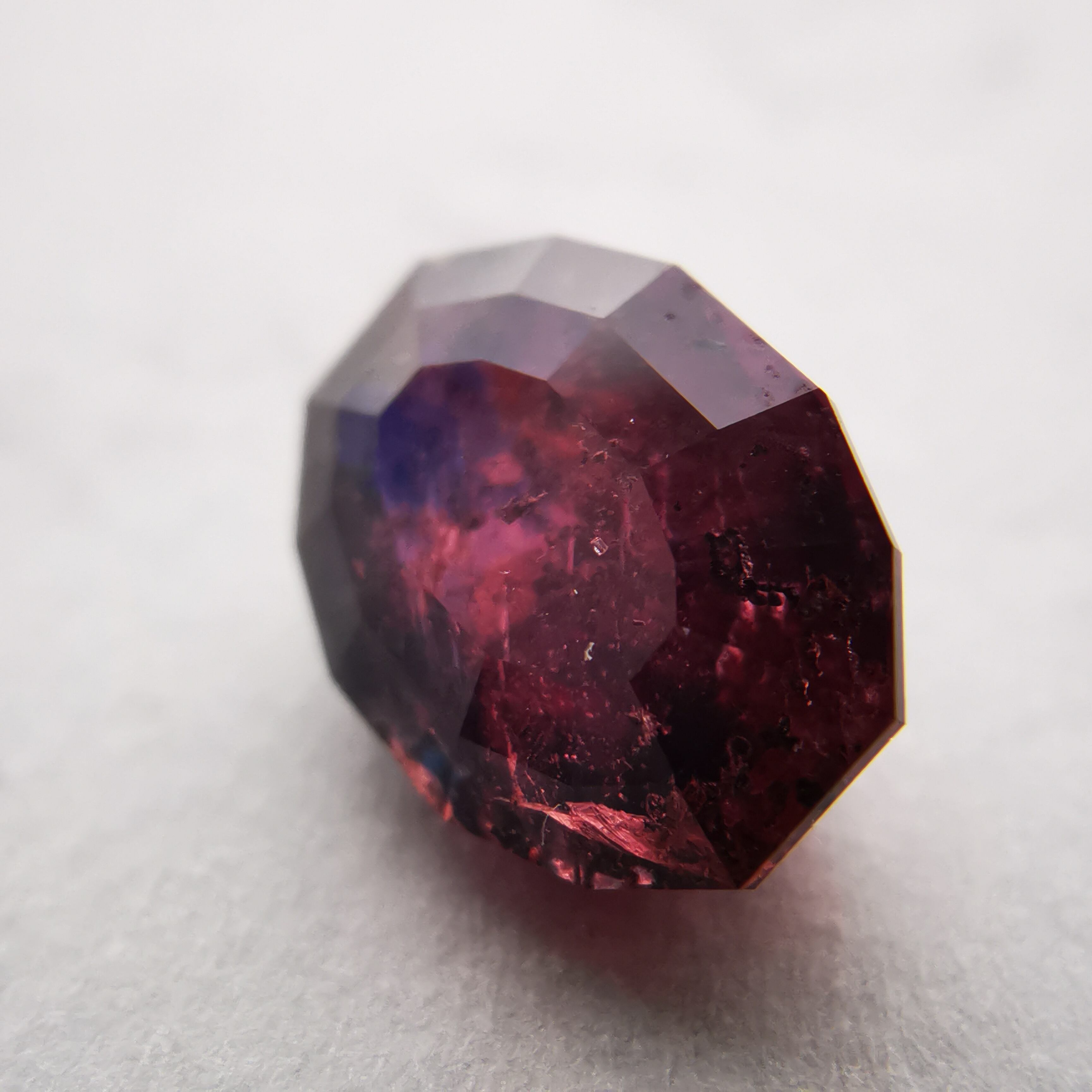 ダークレッドの石に、ダークブルーが混じり、様々な内包物が散りばめられています。
