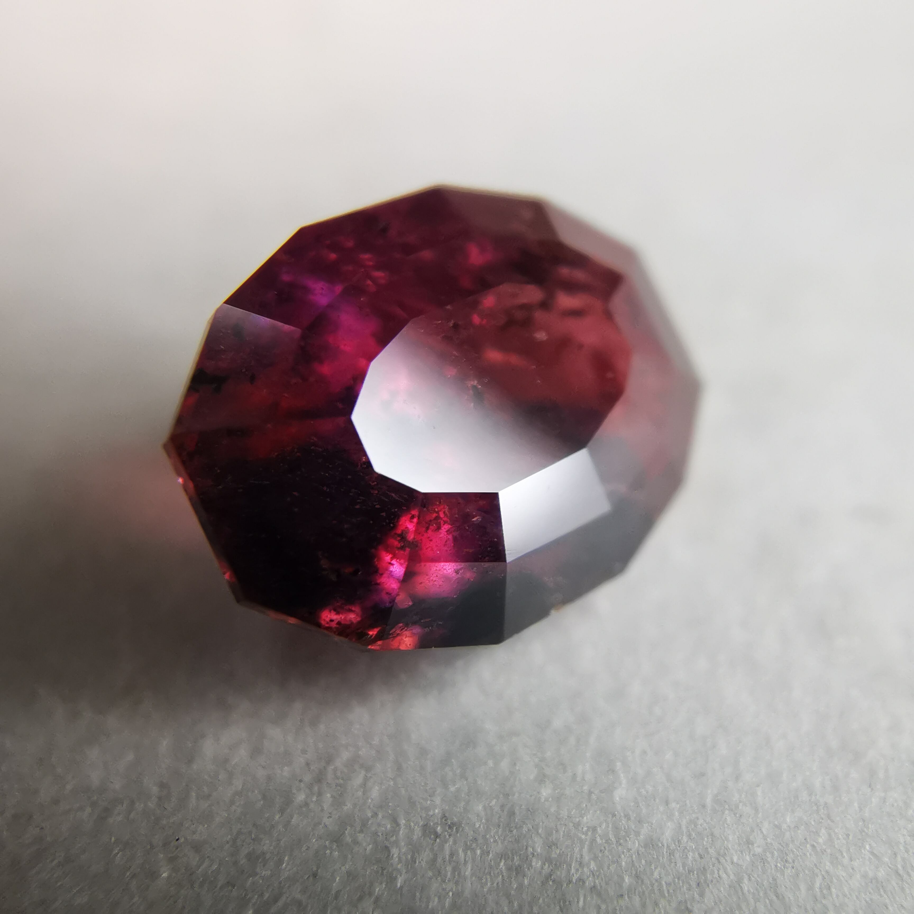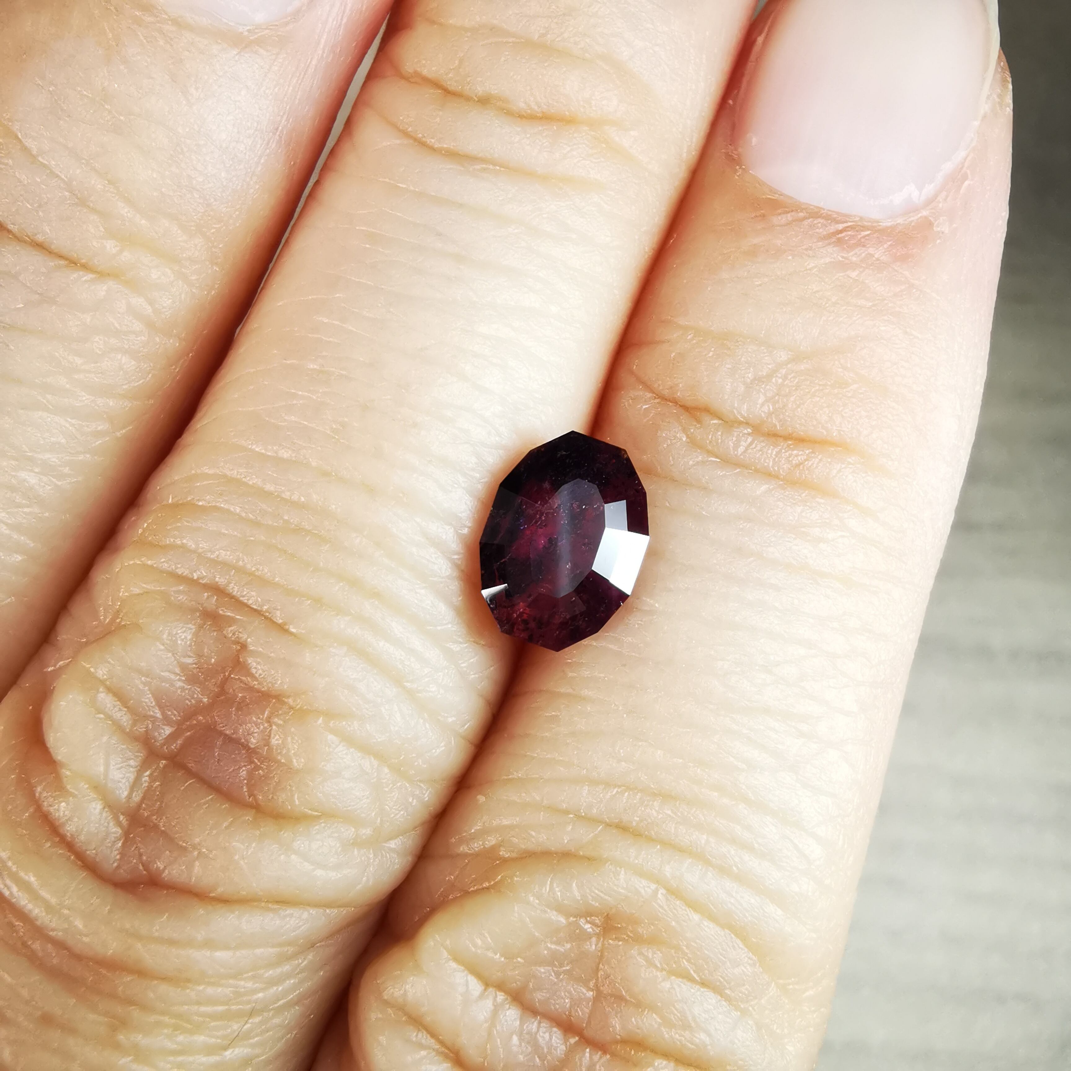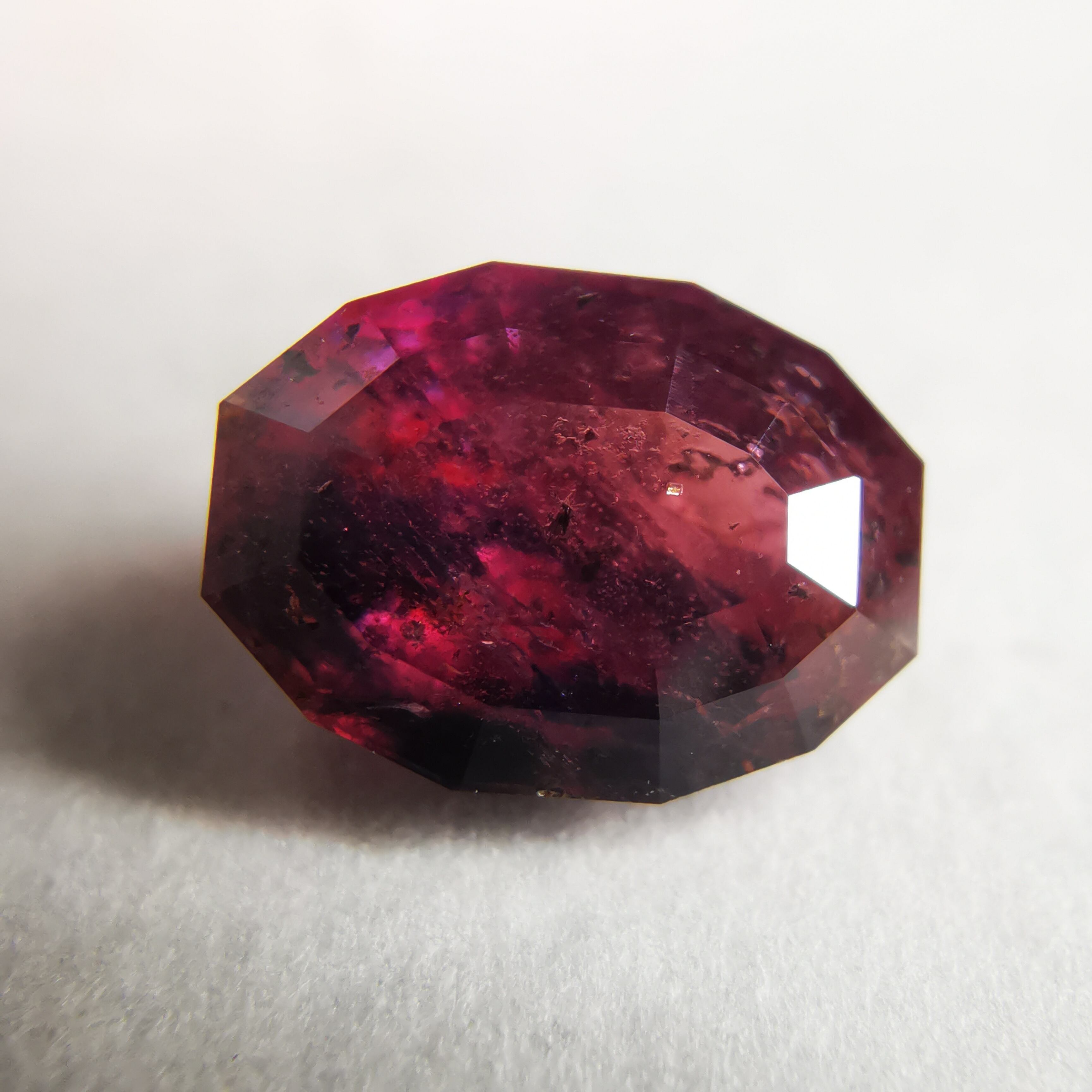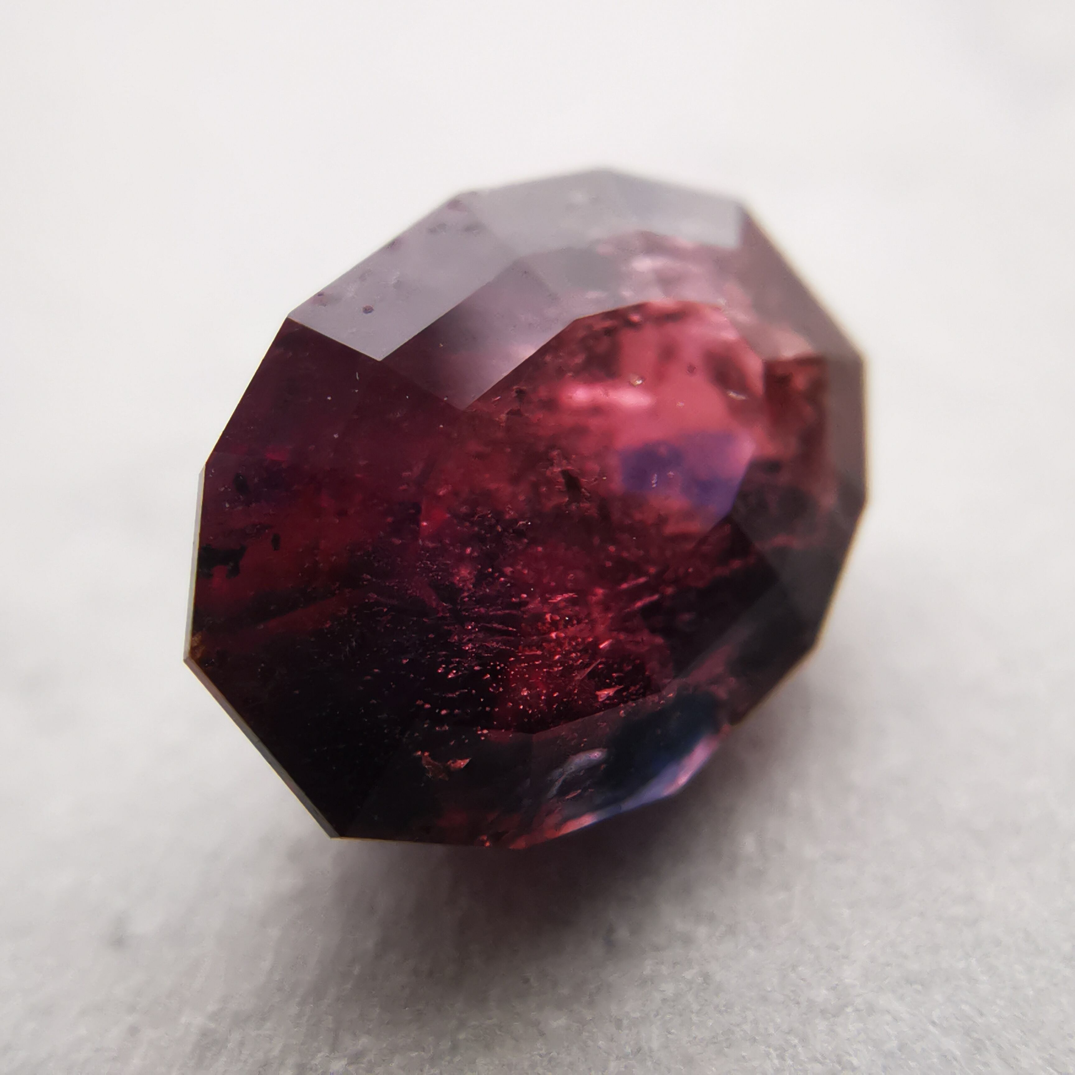 ダークレッドの石に、ダークブルーが混じり、様々な内包物が散りばめられています。
