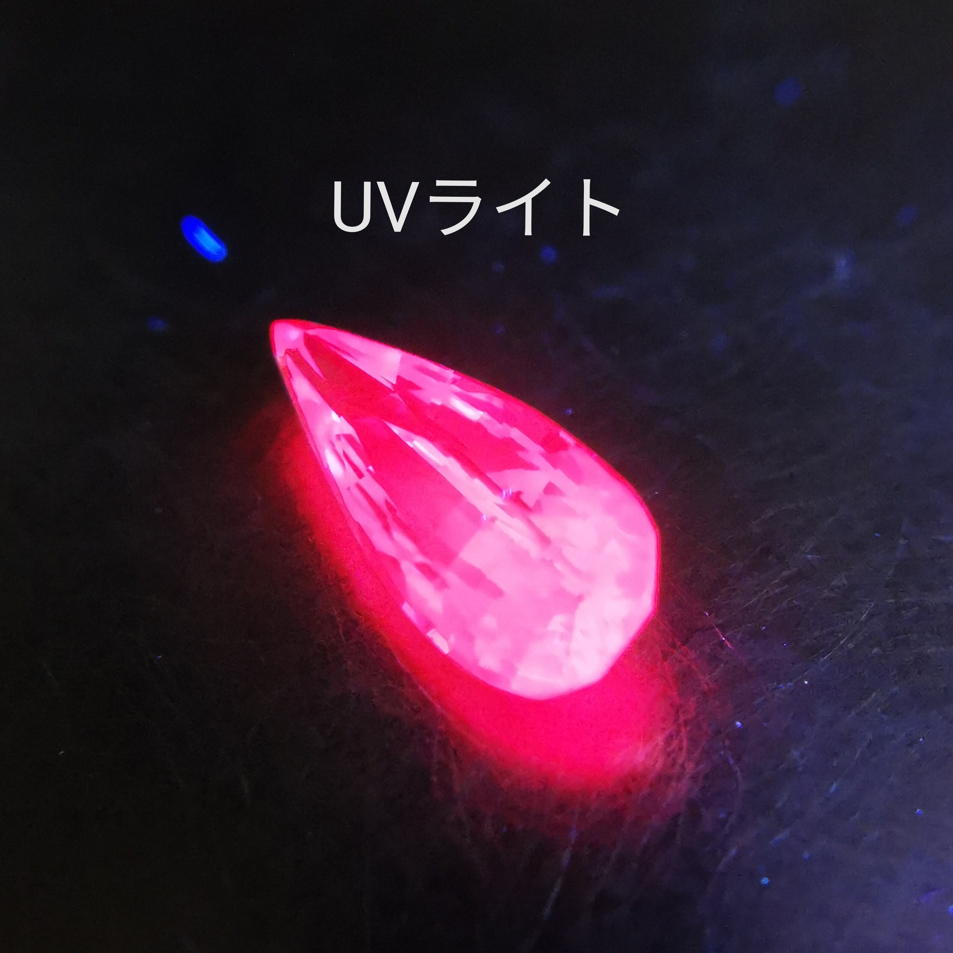 紫外線で蛍光するので、太陽光下で見ると、内側から発光しているように輝きます。