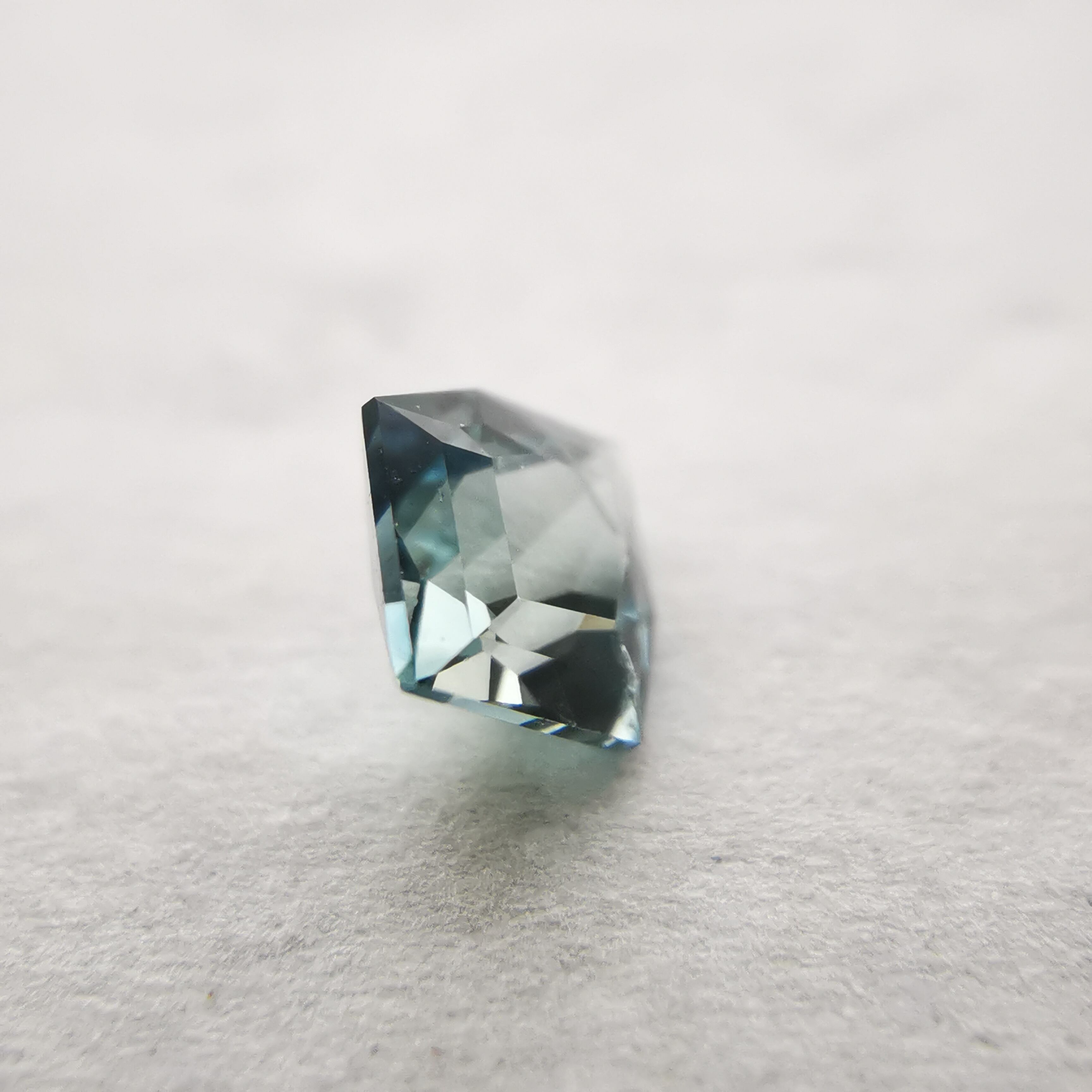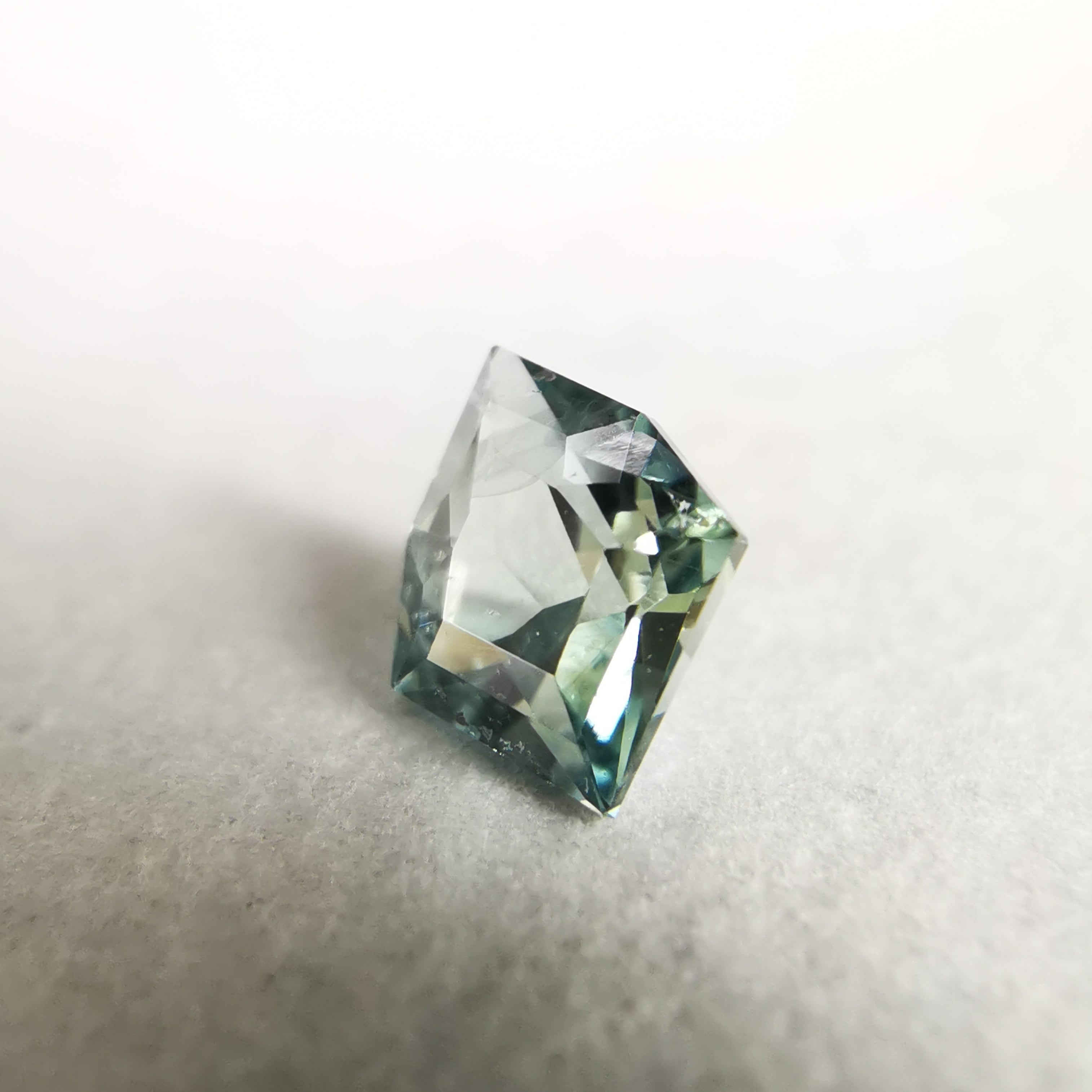 照明の元では淡いグリーンかと思いましたが、自然光では淡いブルーに、とても繊細なカラーのサファイアです。