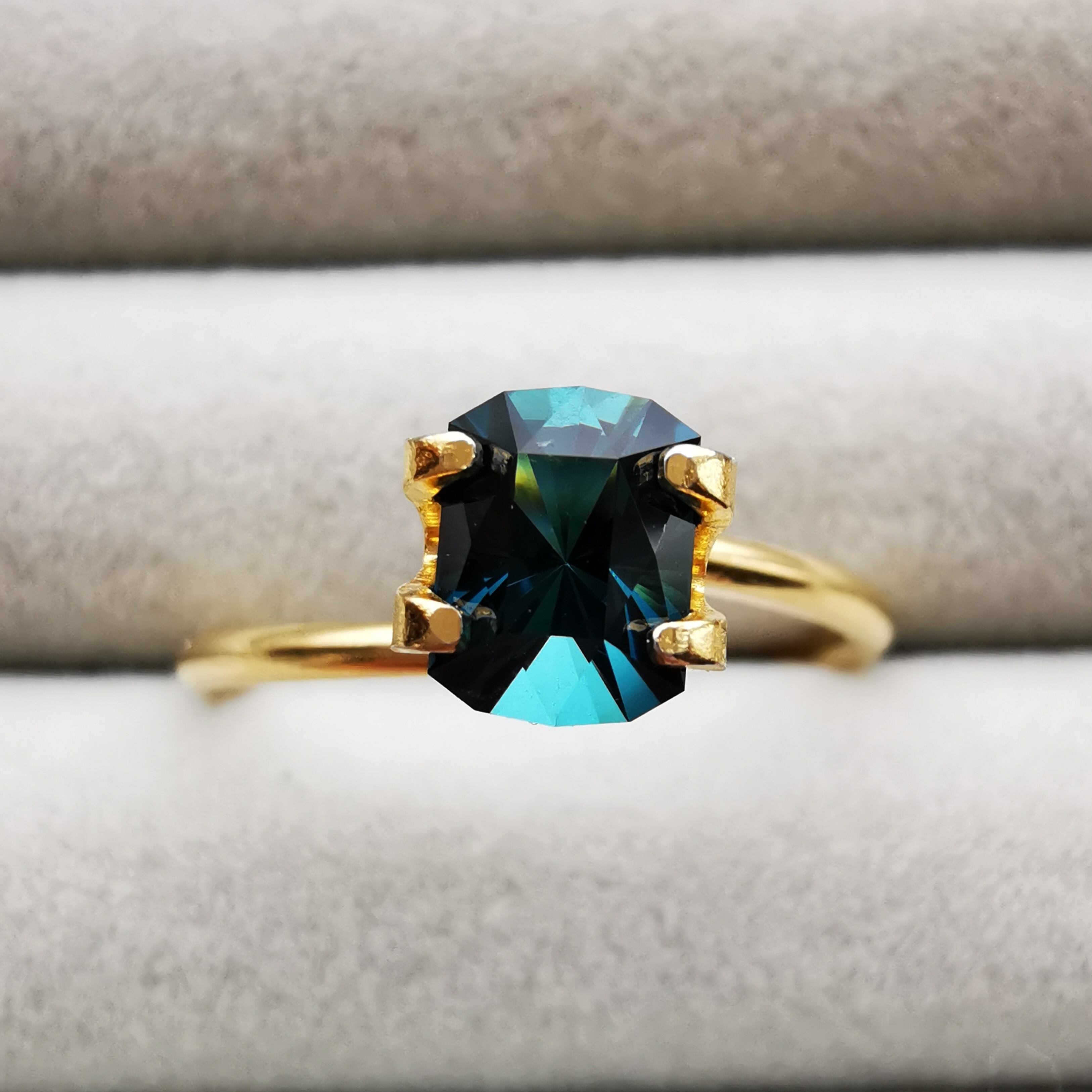 グリーンからブルーへのグラデーションがとても美しい、クリアなトルマリンです。