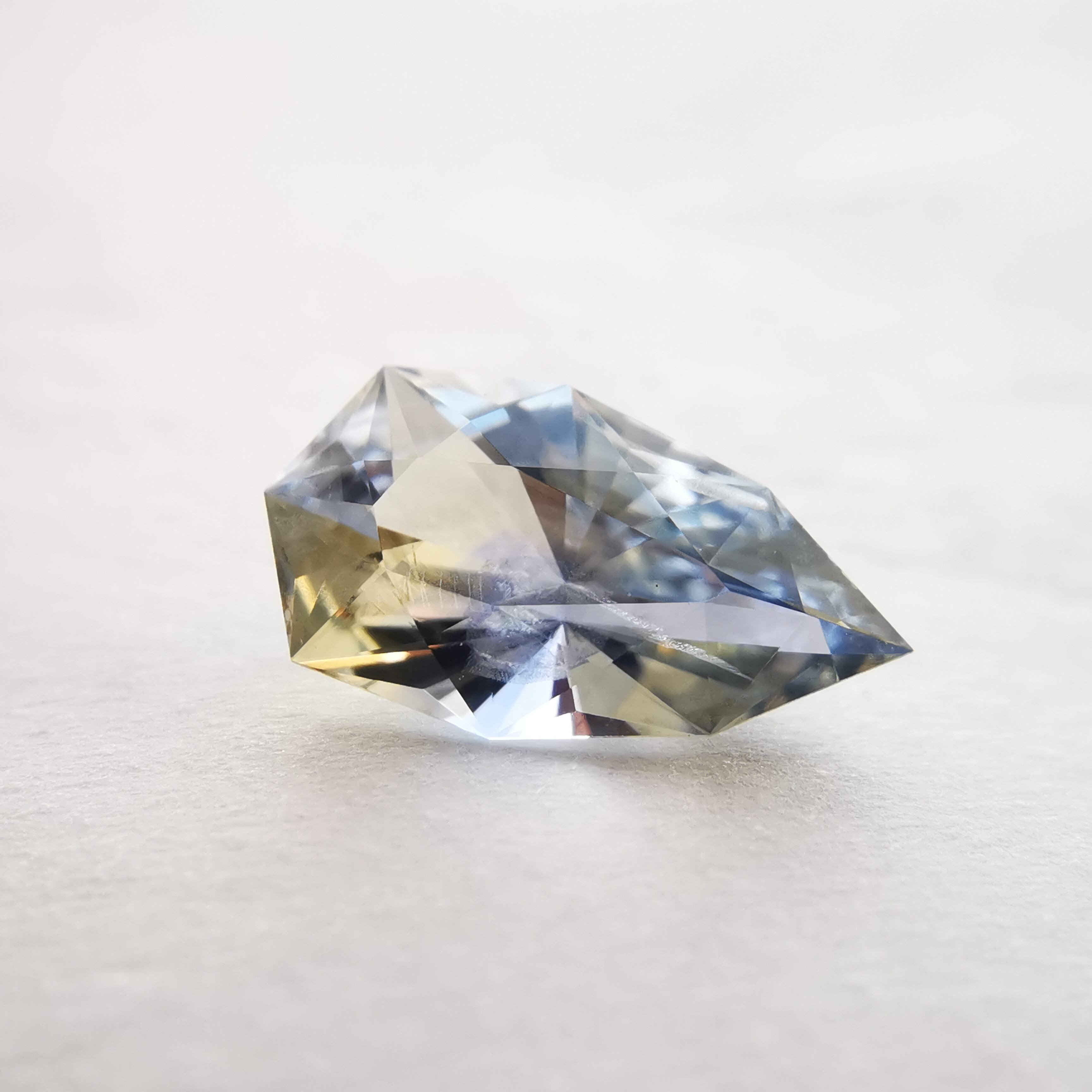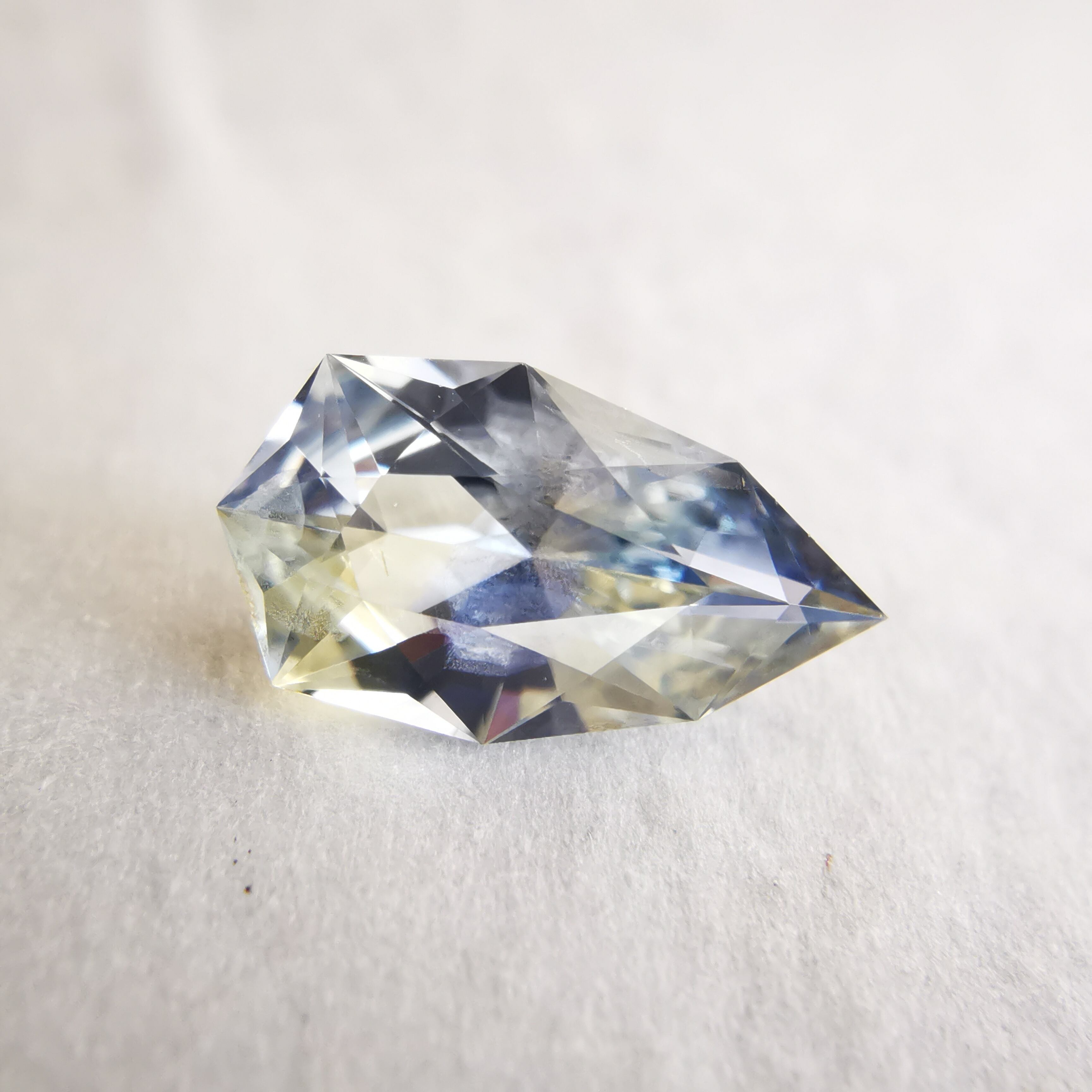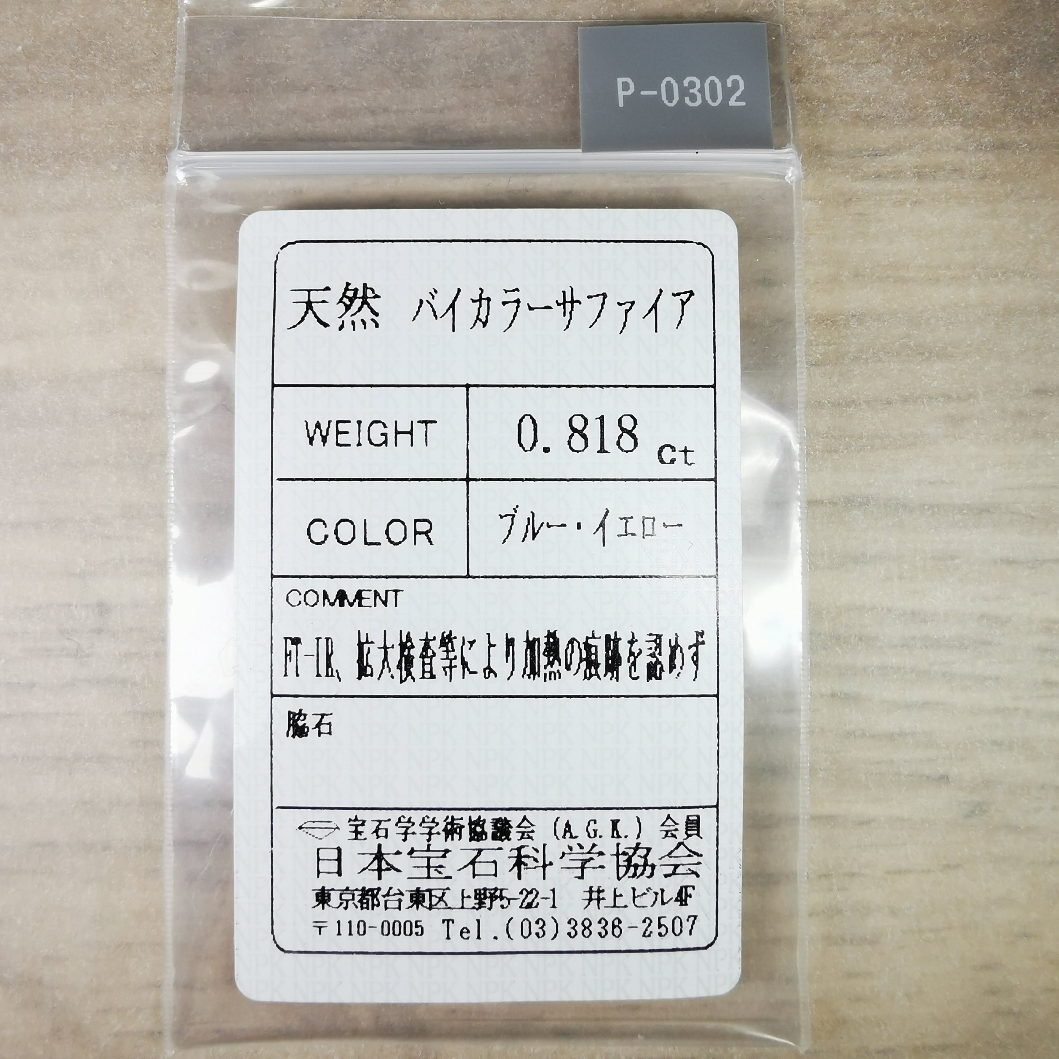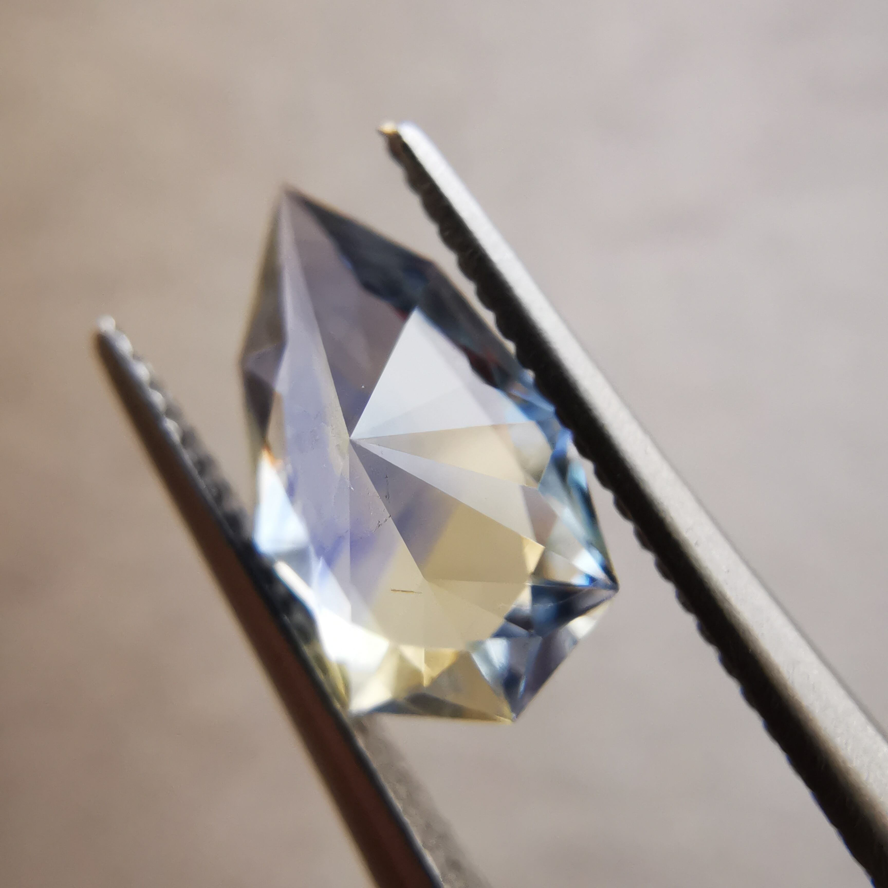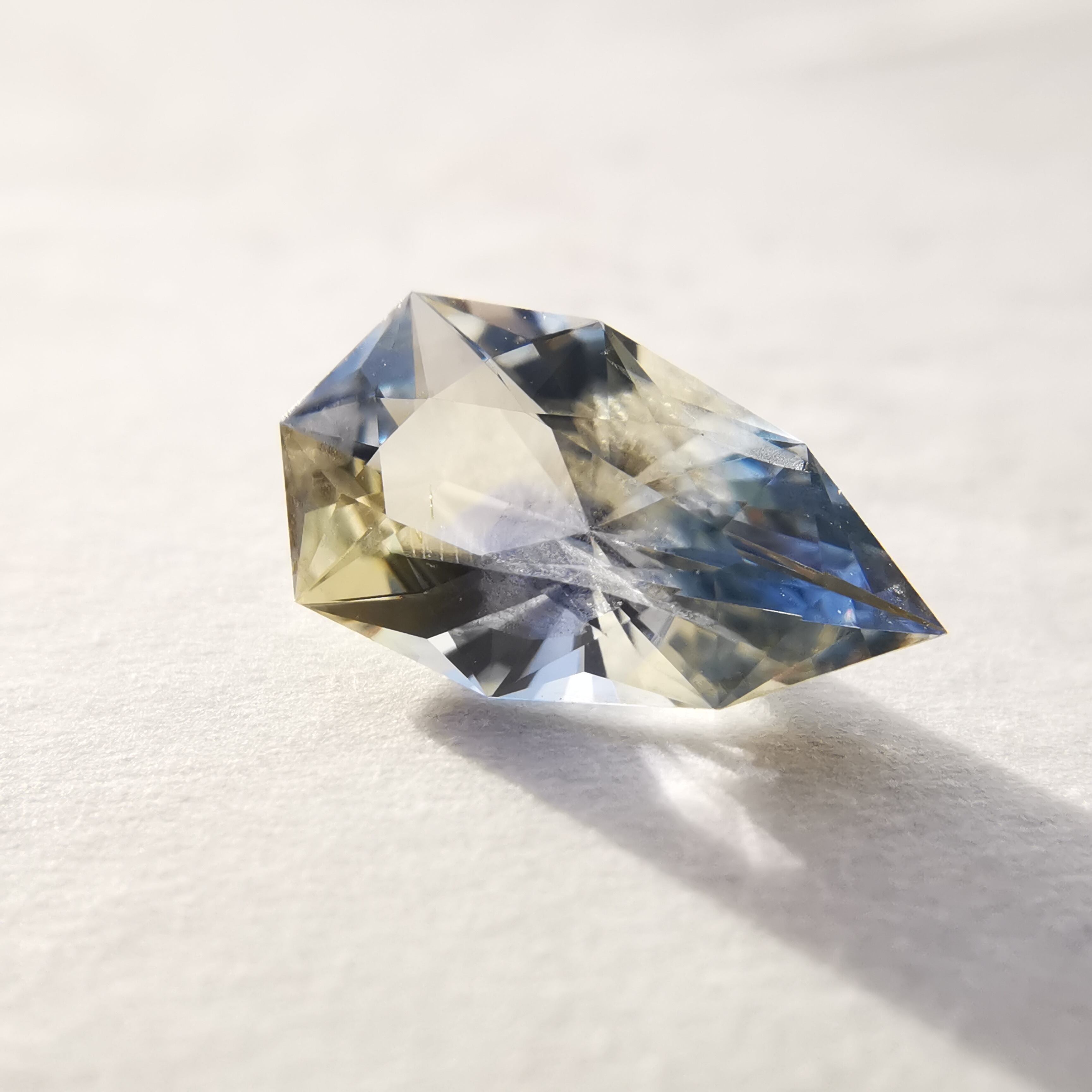 淡いイエローと淡いブルー、ふわりと優しいカラーが、漂うように混じり合うバイカラーサファイアです。