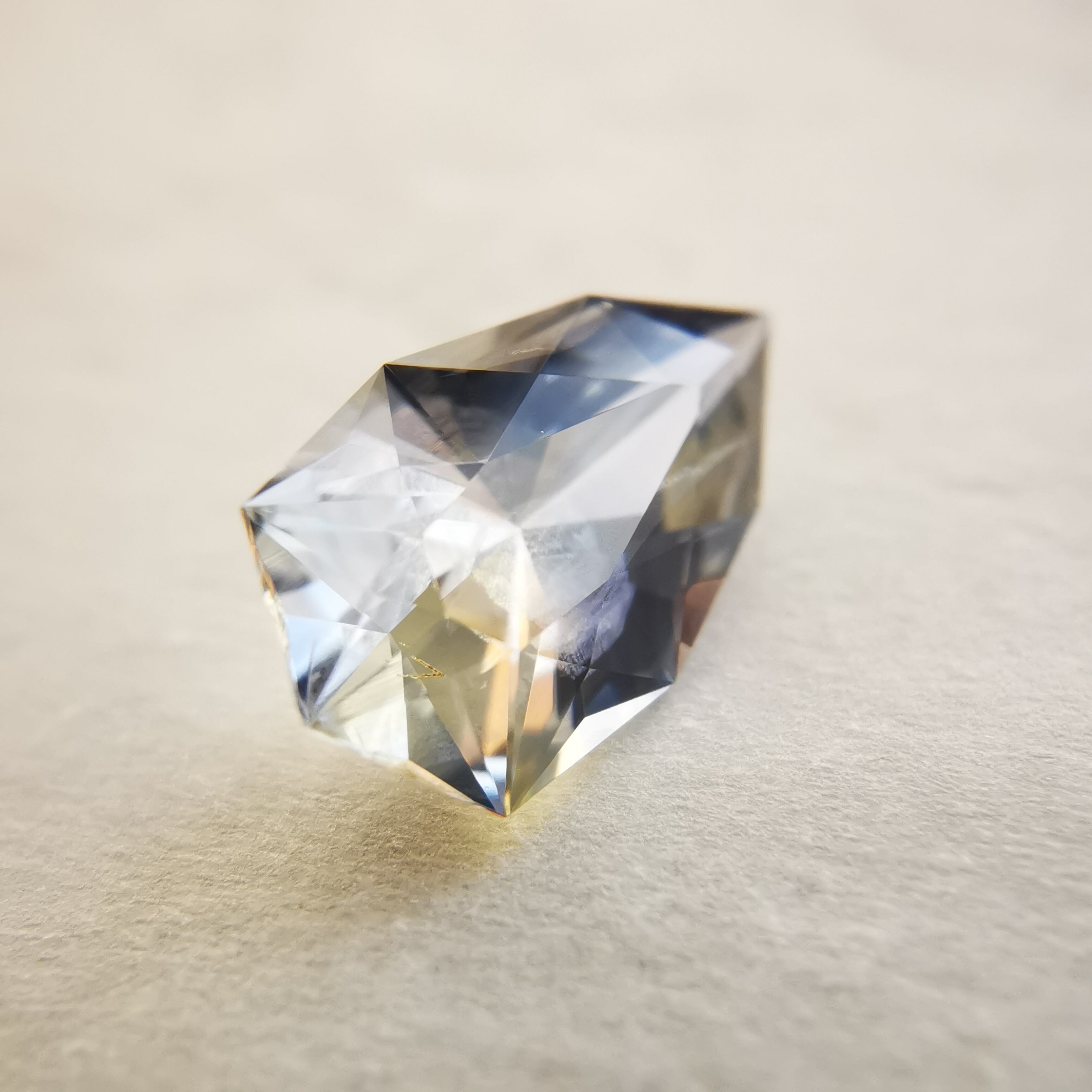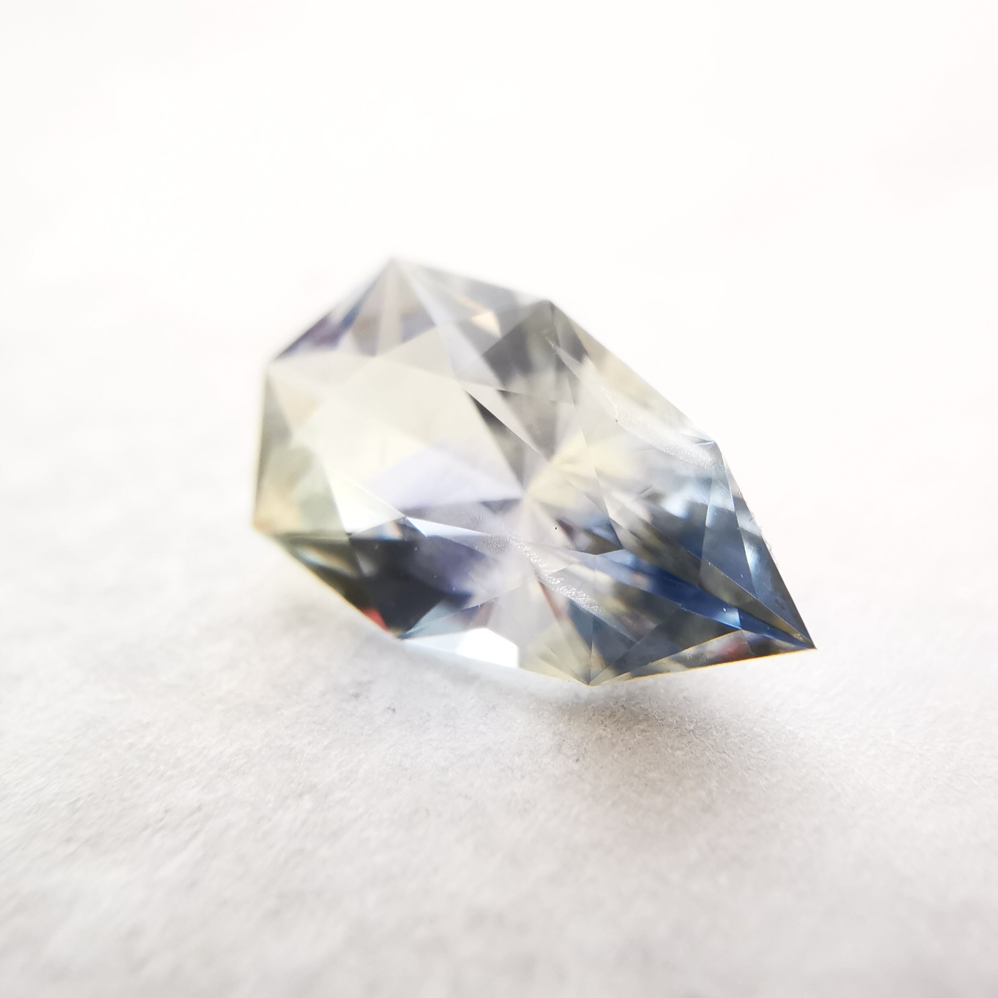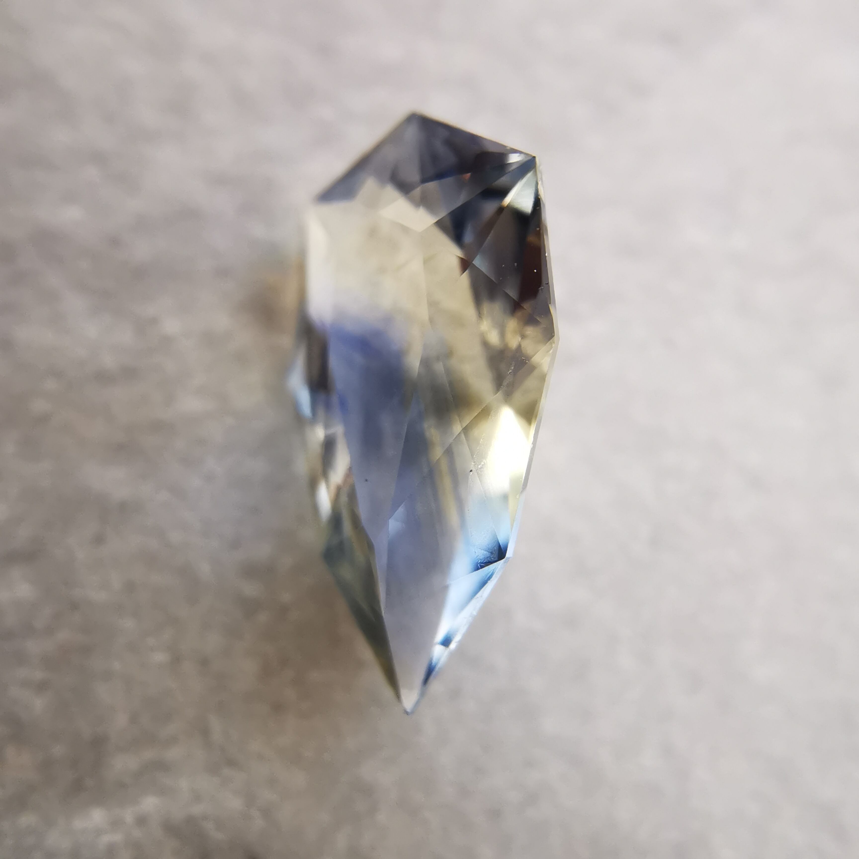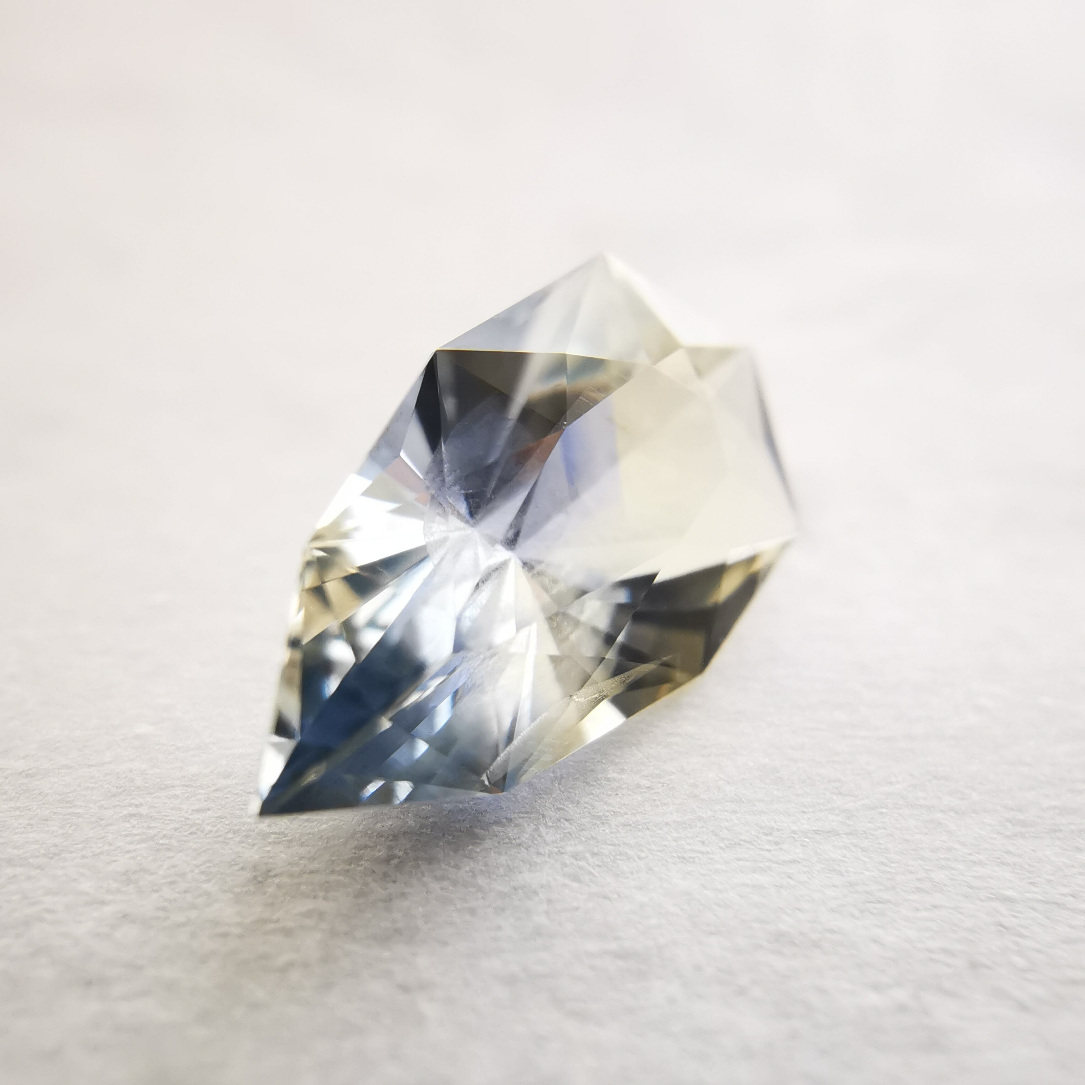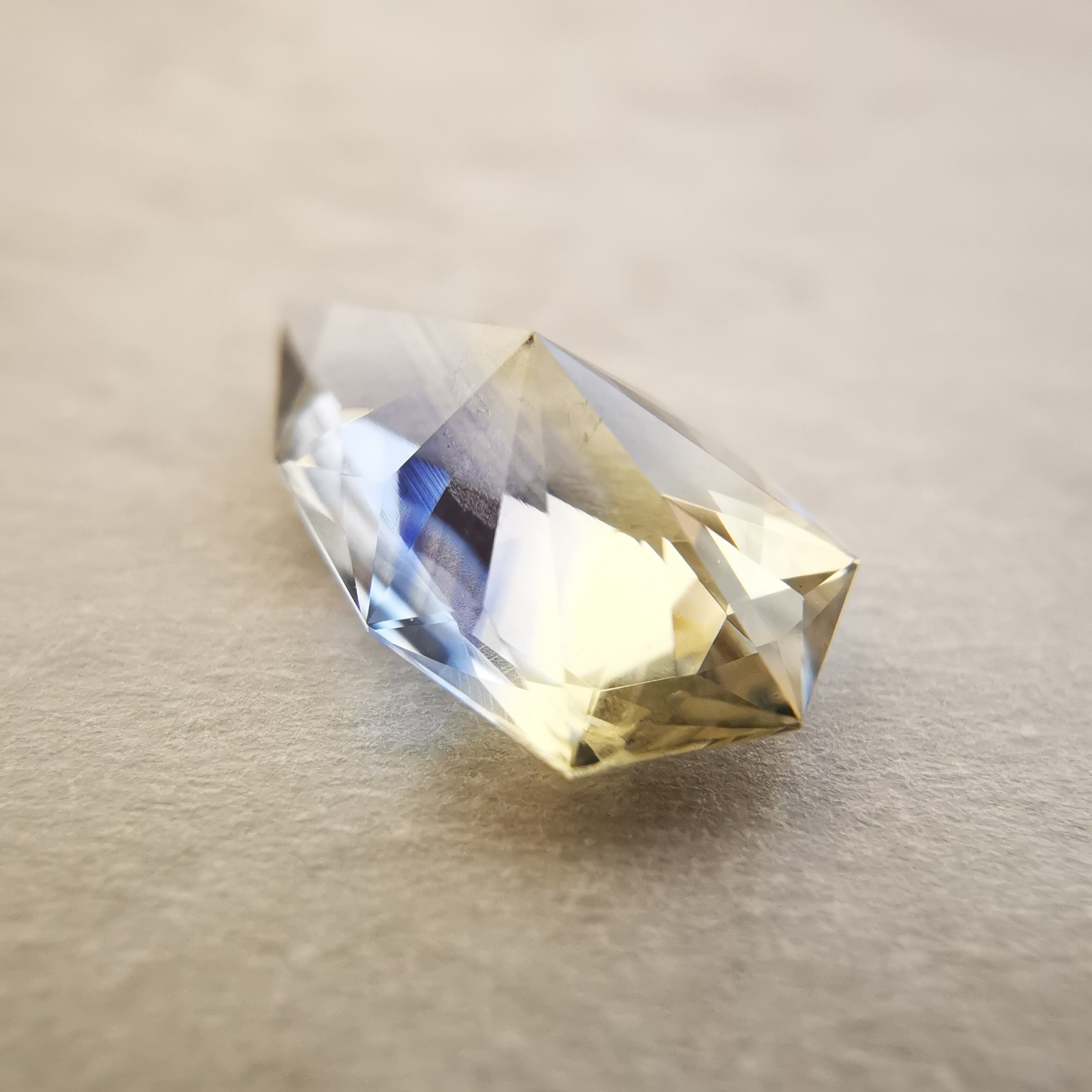 淡いイエローと淡いブルー、ふわりと優しいカラーが、漂うように混じり合うバイカラーサファイアです。