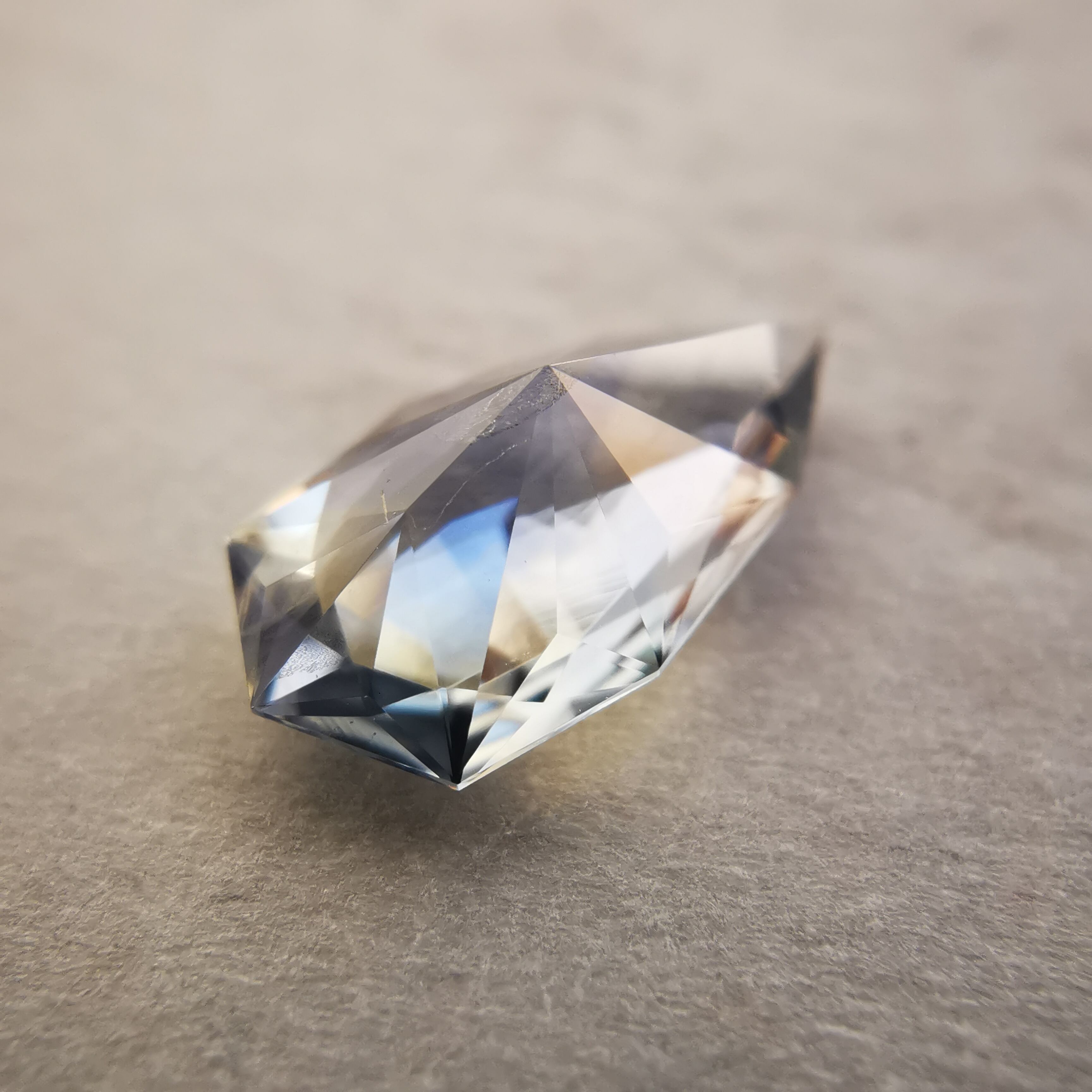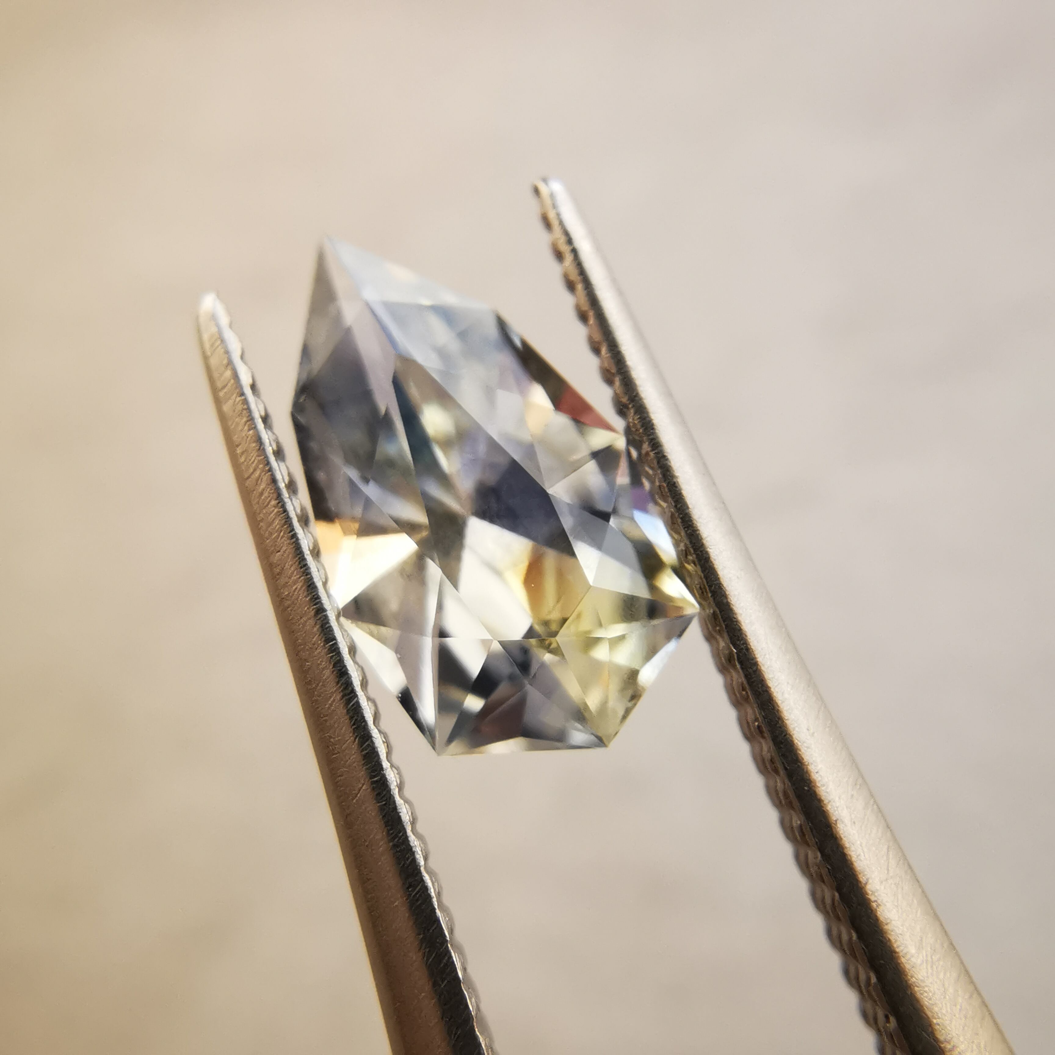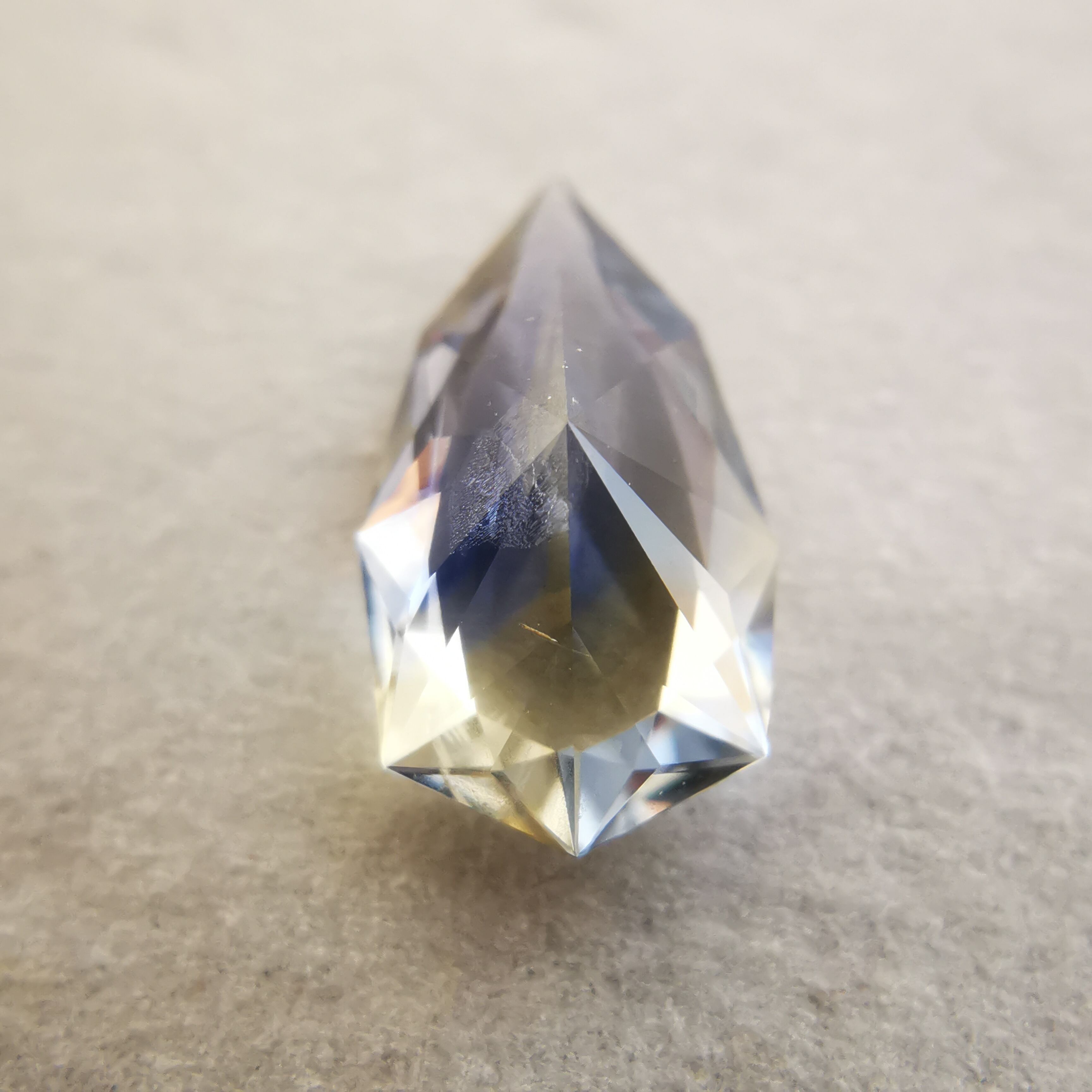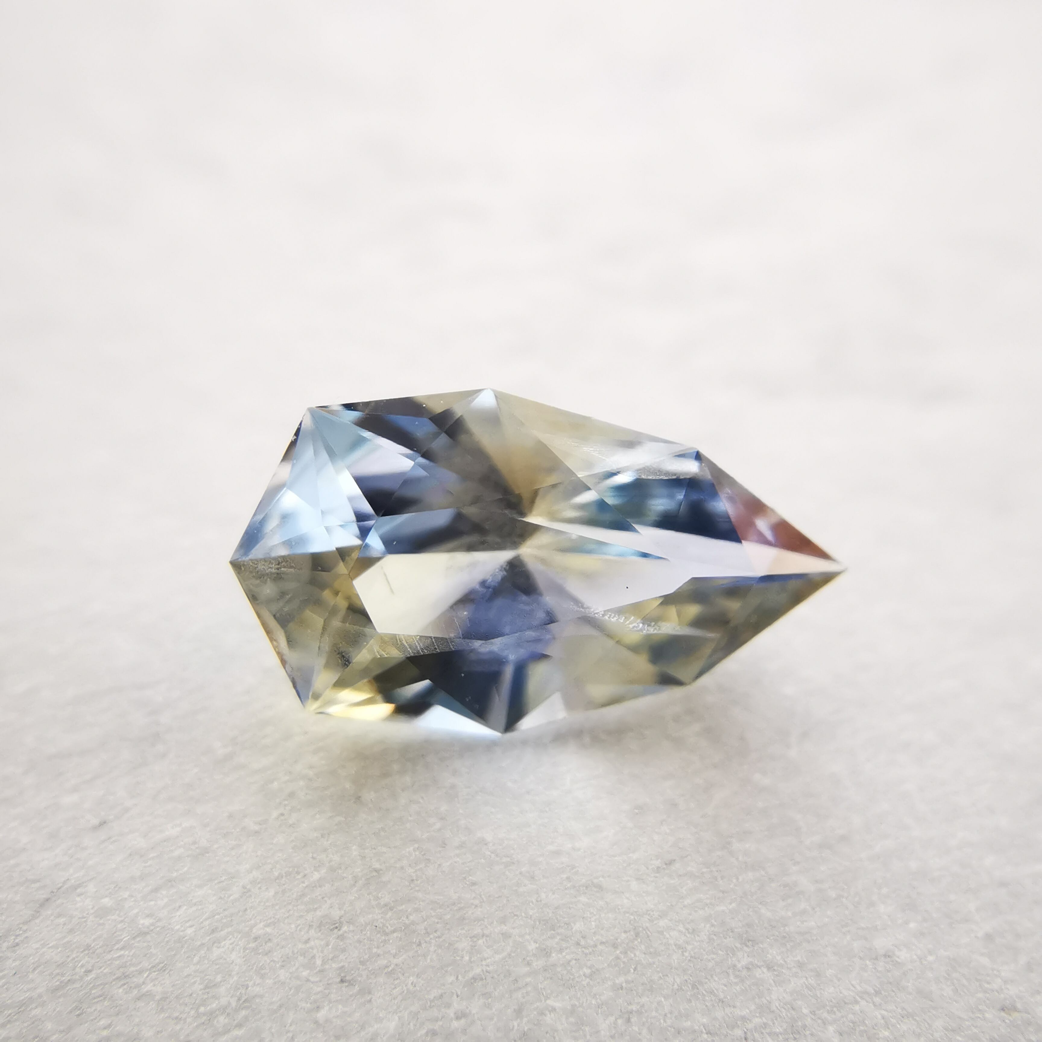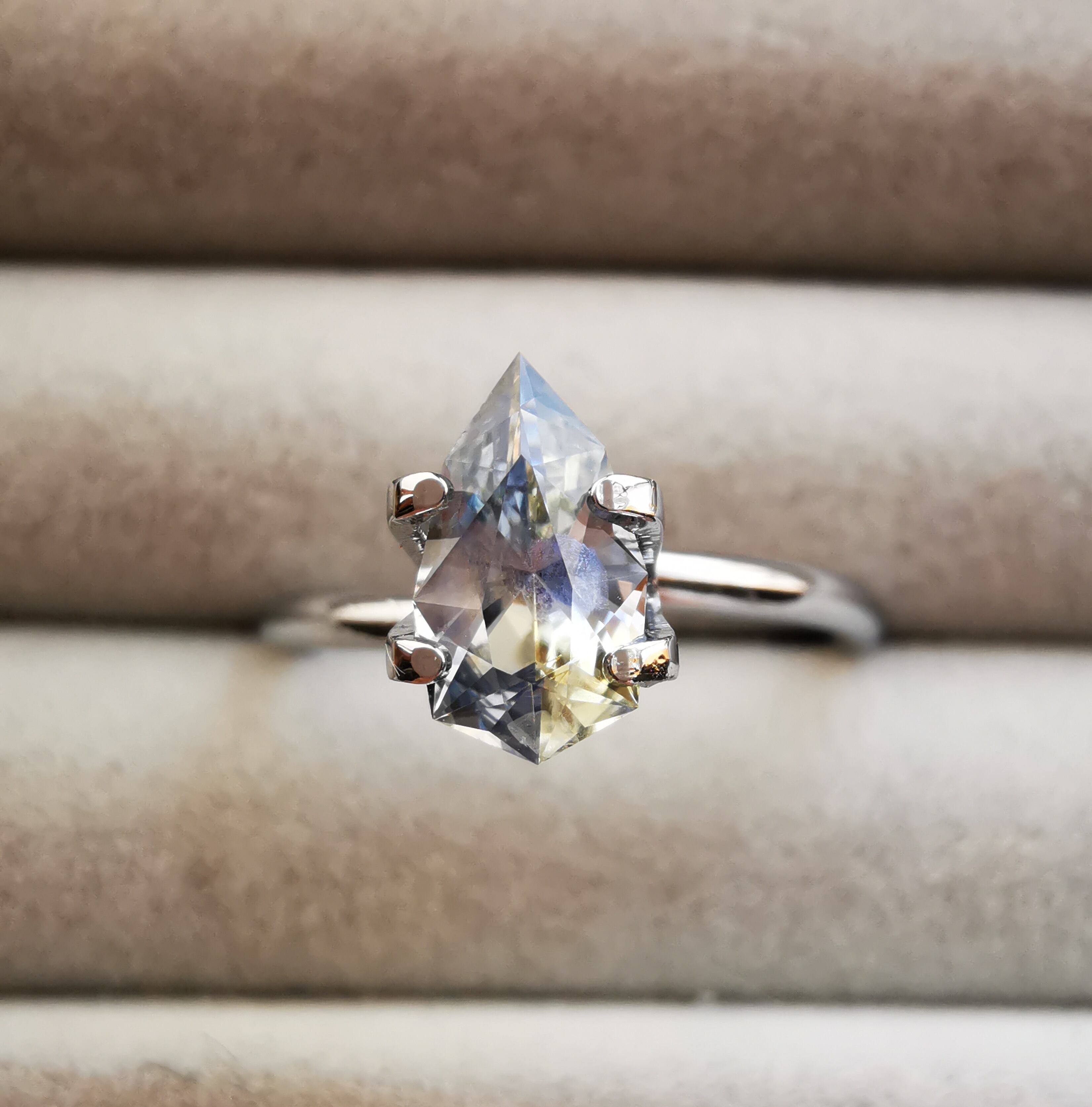 淡いイエローと淡いブルー、ふわりと優しいカラーが、漂うように混じり合うバイカラーサファイアです。
