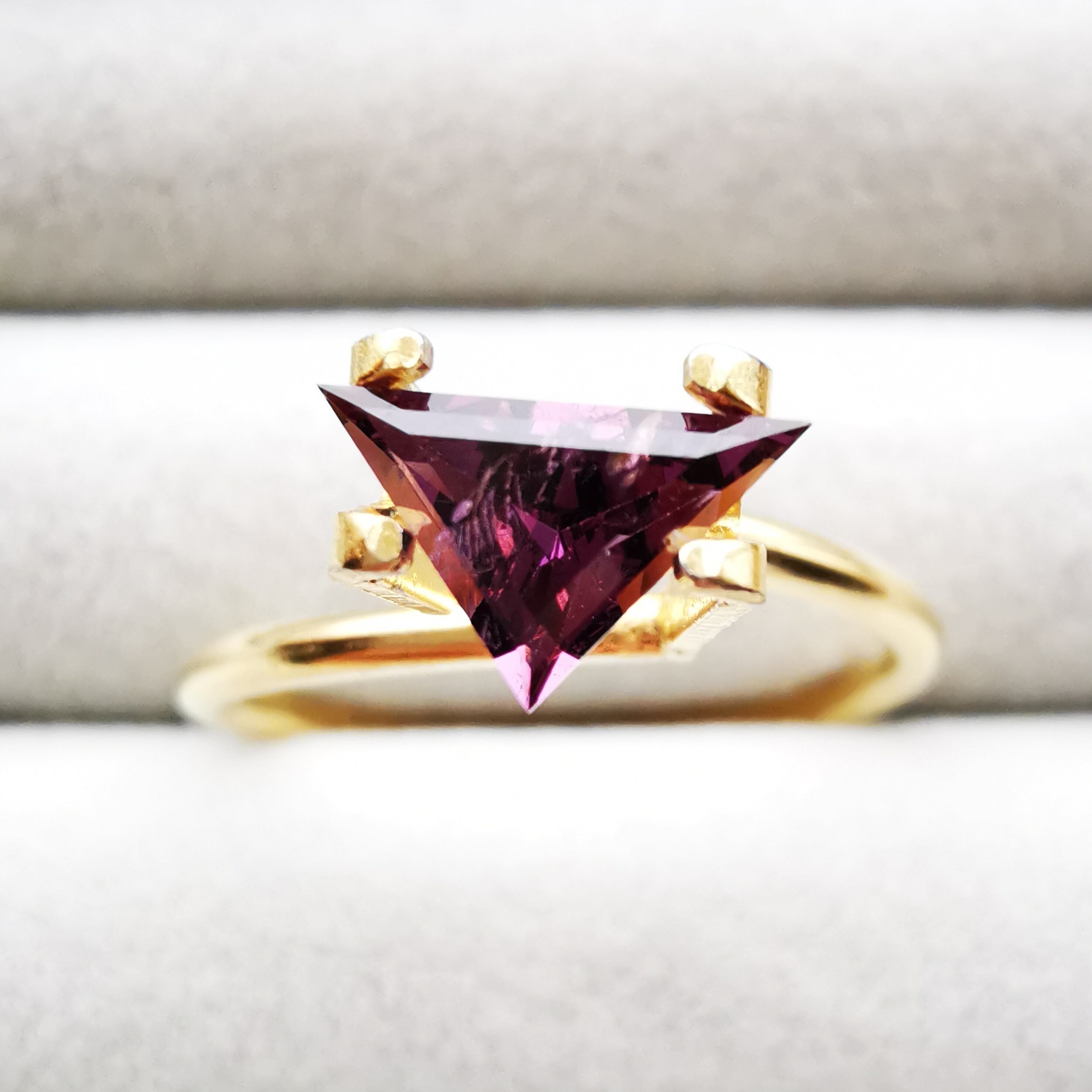 ピンピンに尖ったトリオンフォルムにカットされたスピネルです。