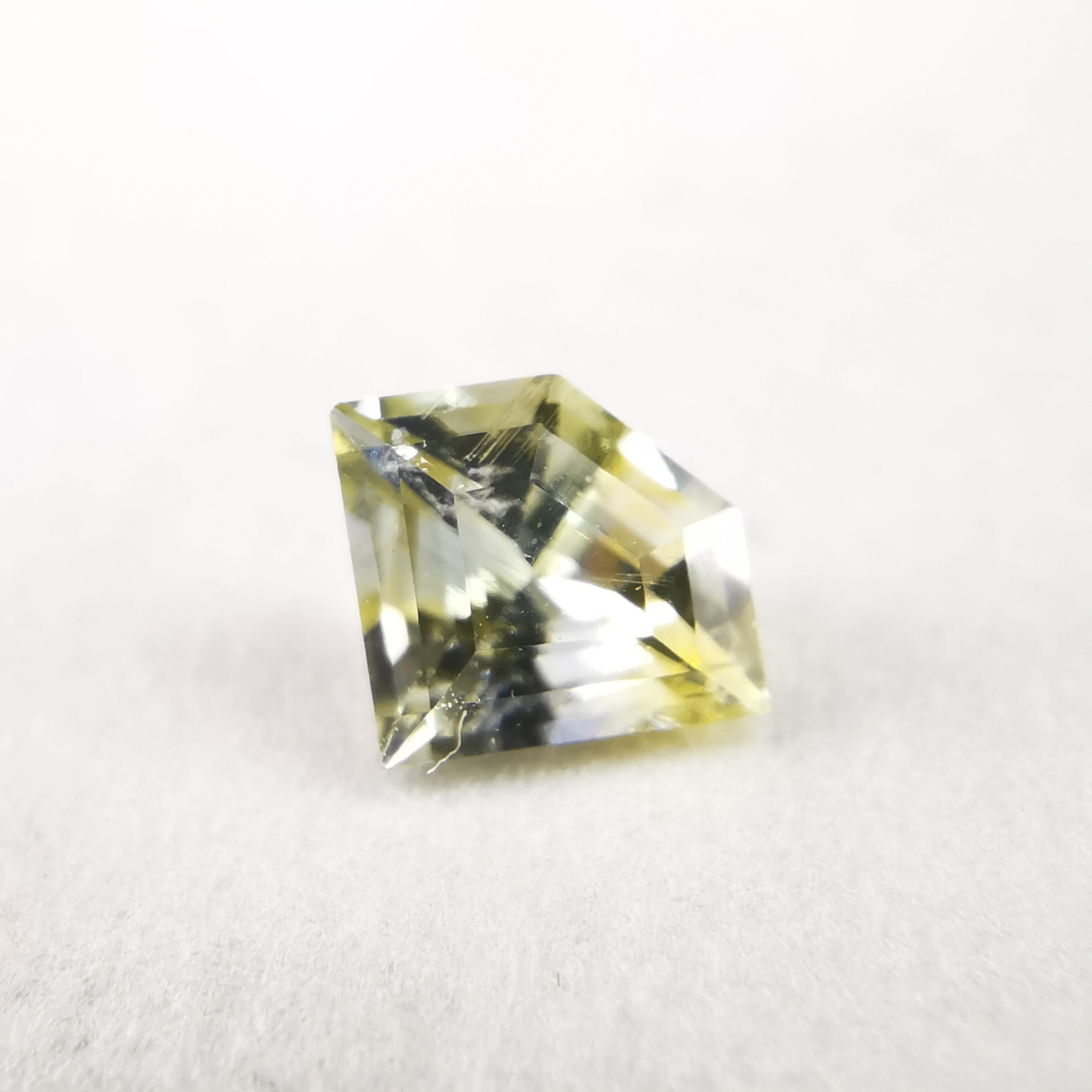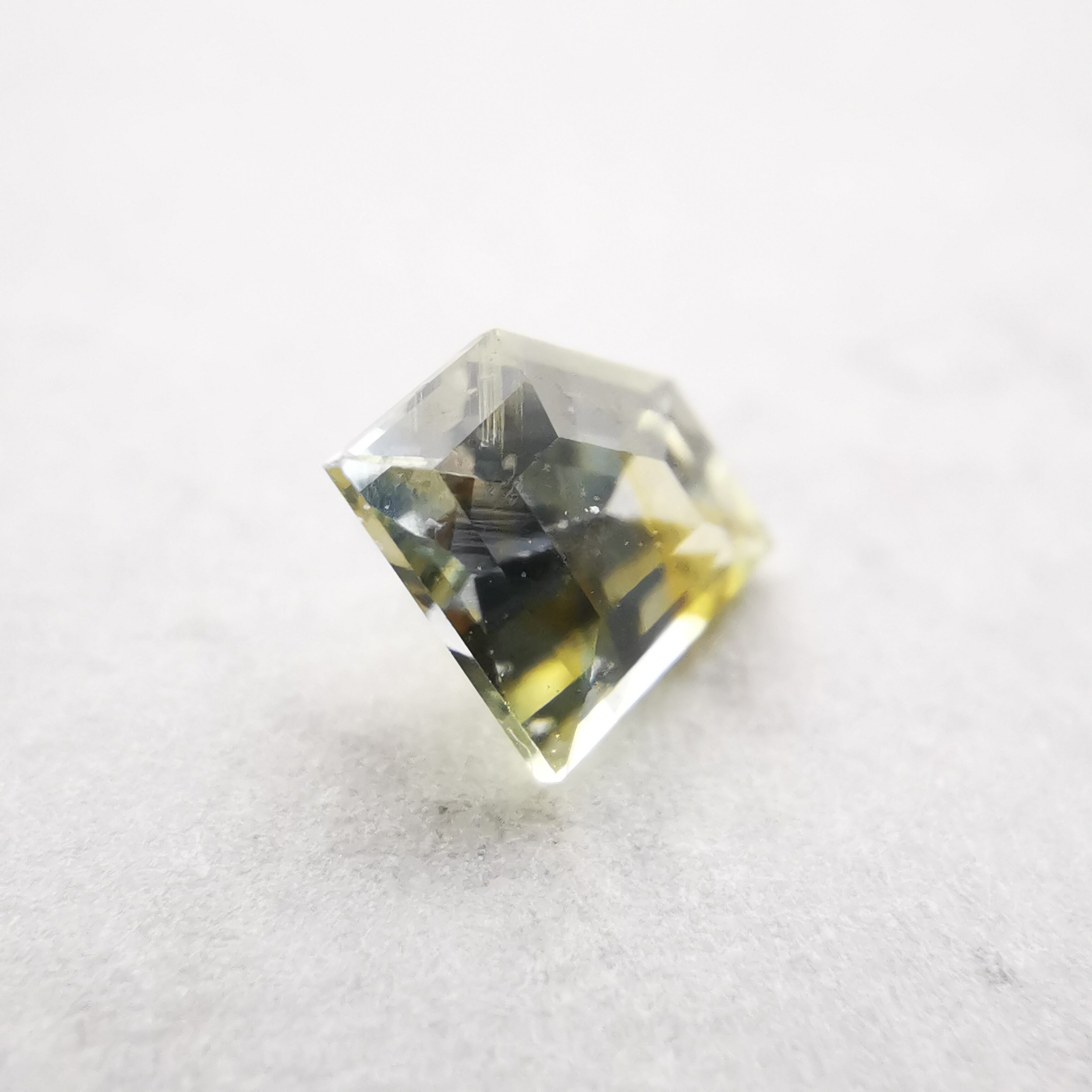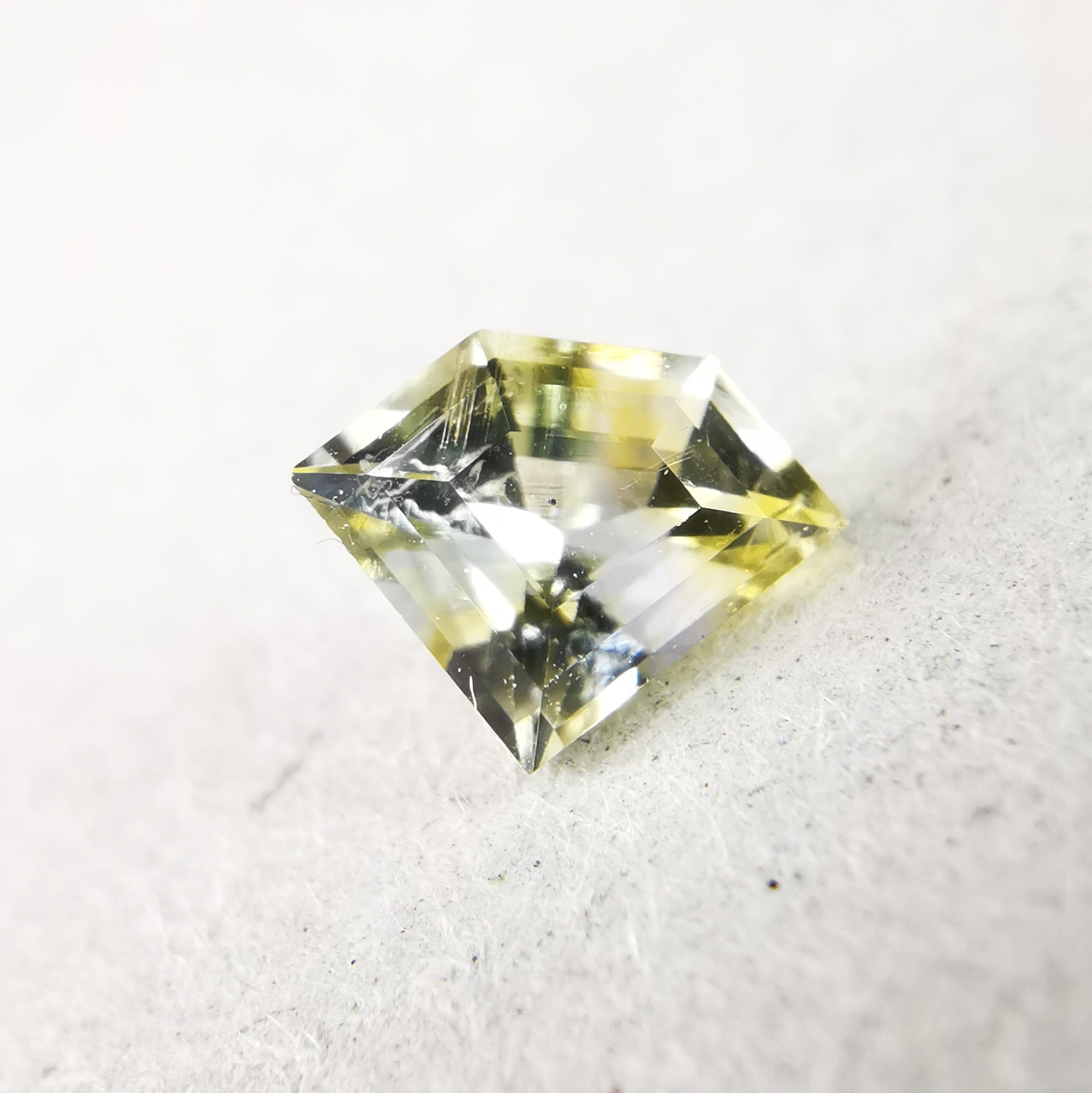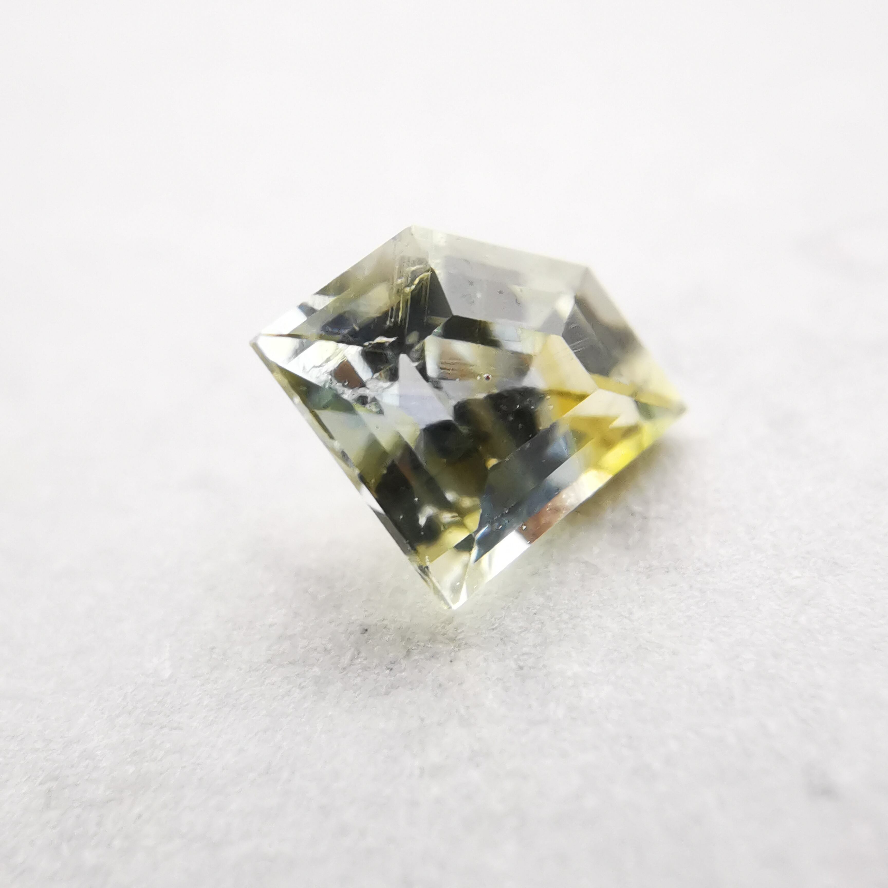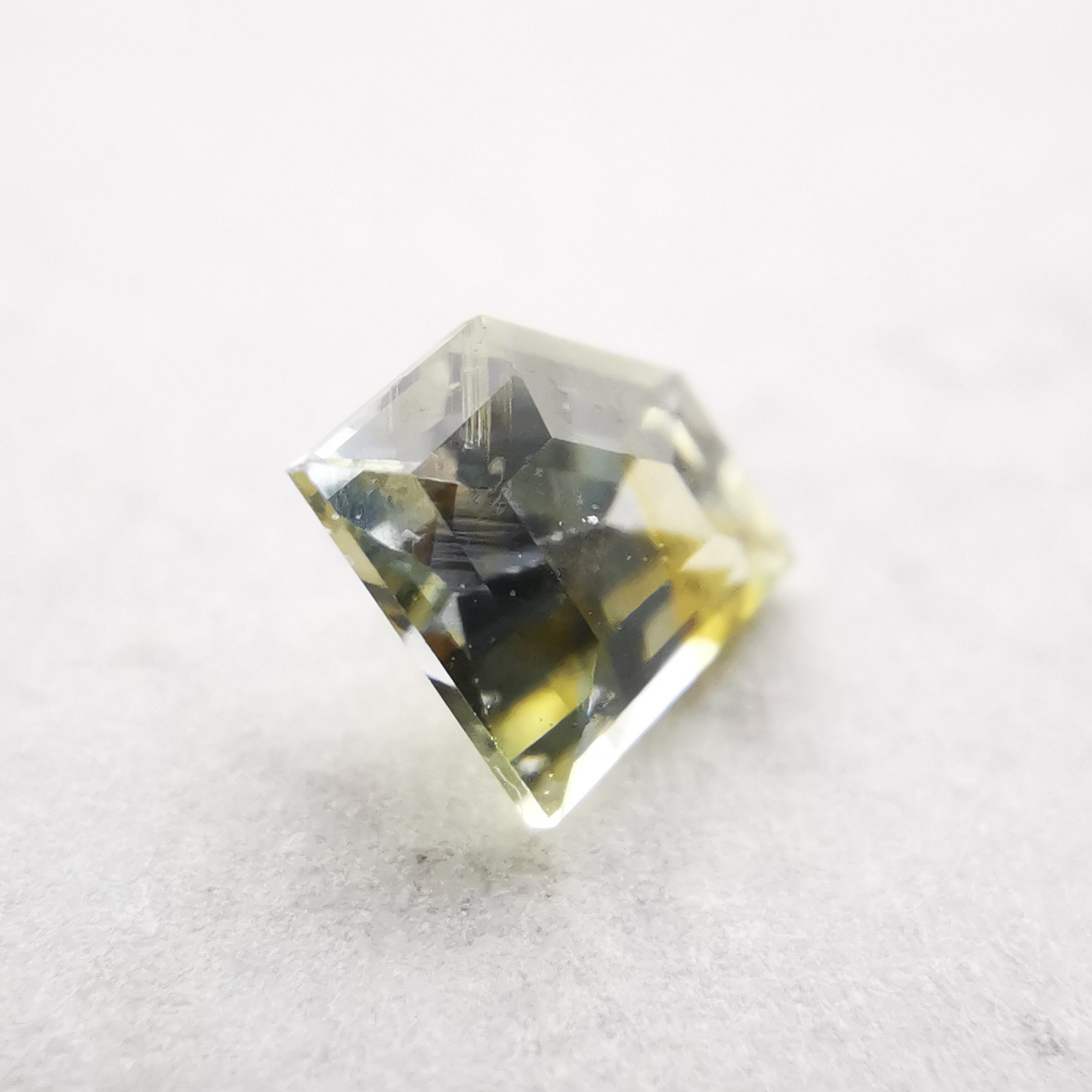 ごくごく淡いブルーからカラーレスのサファイアに、イエローが入ったバイカラーのサファイアです。