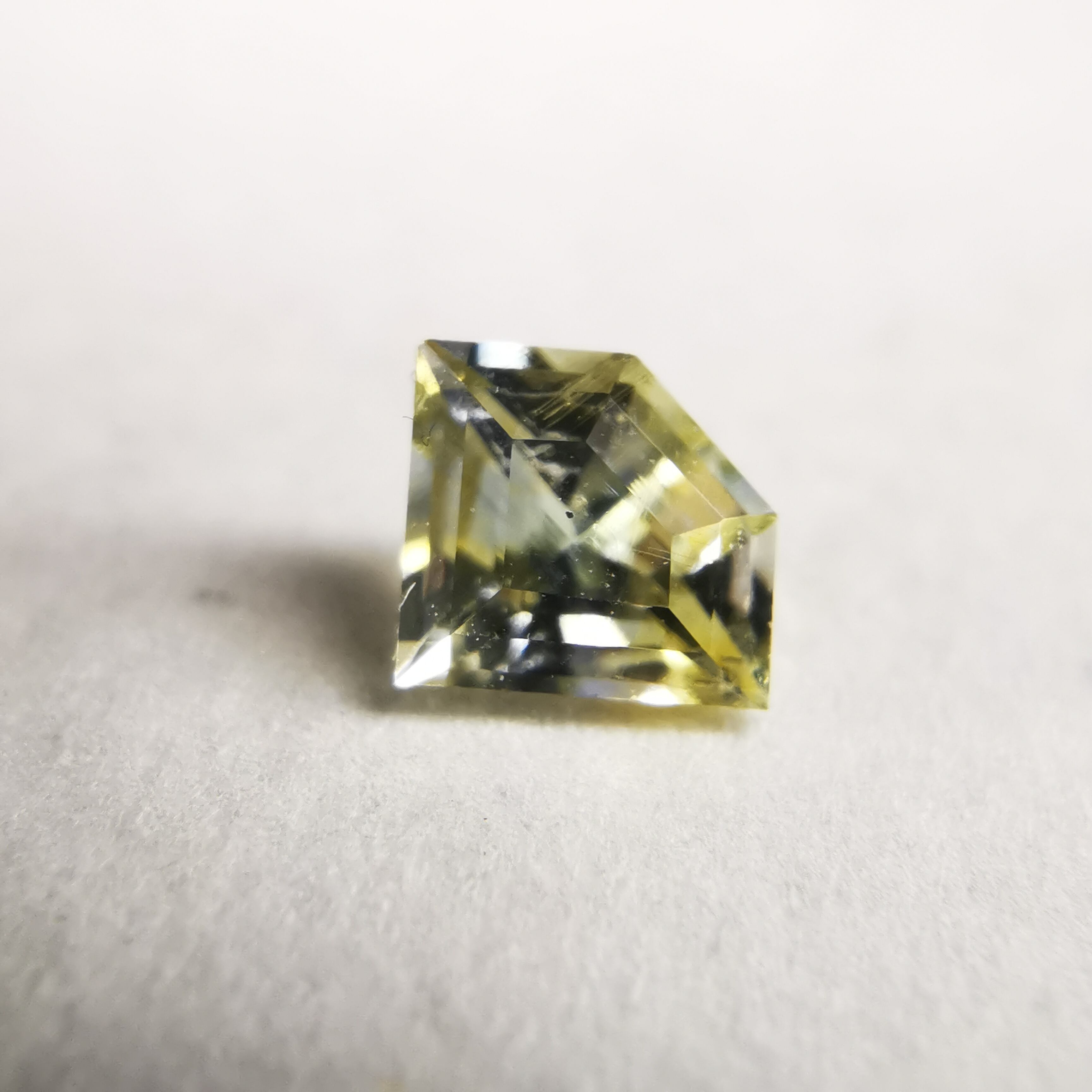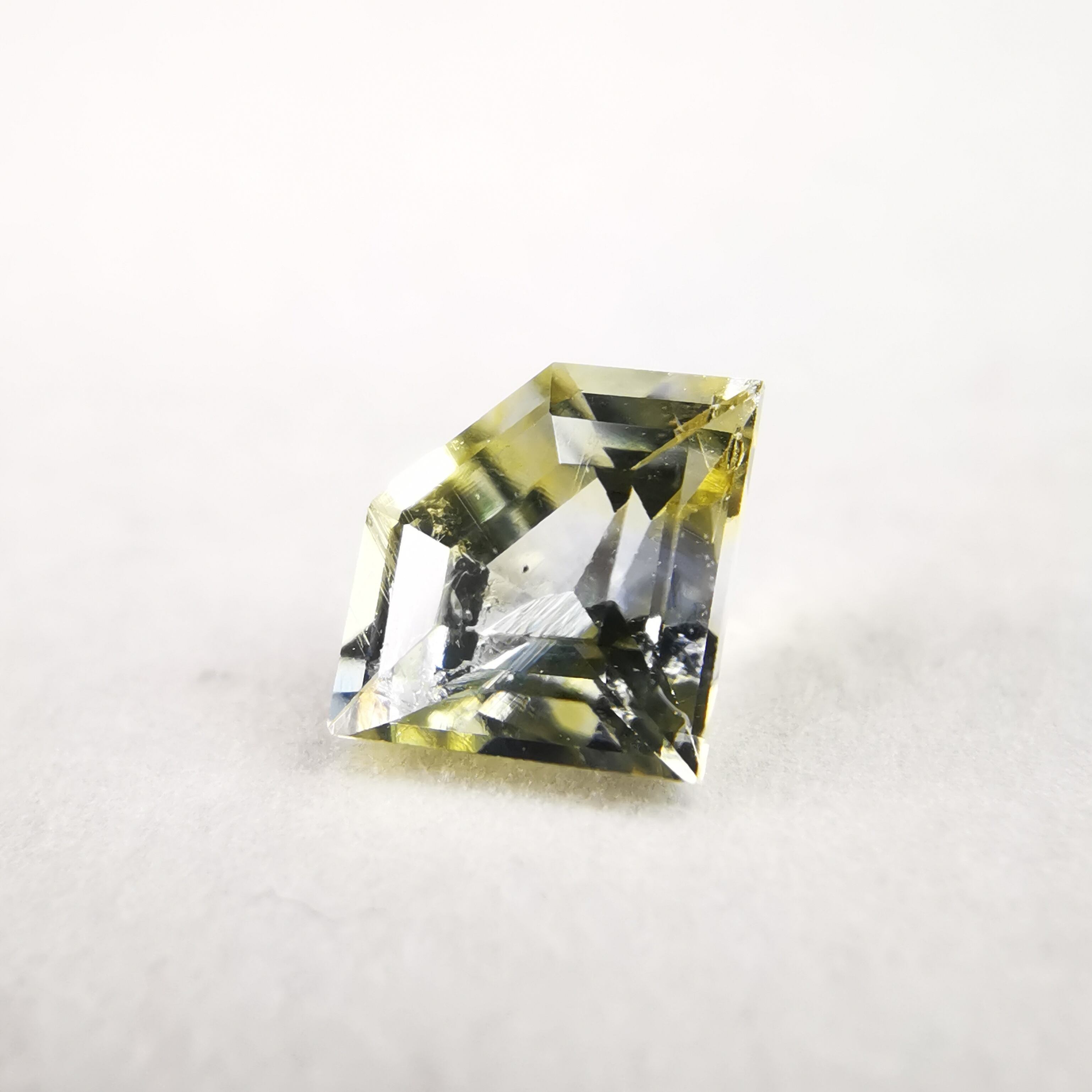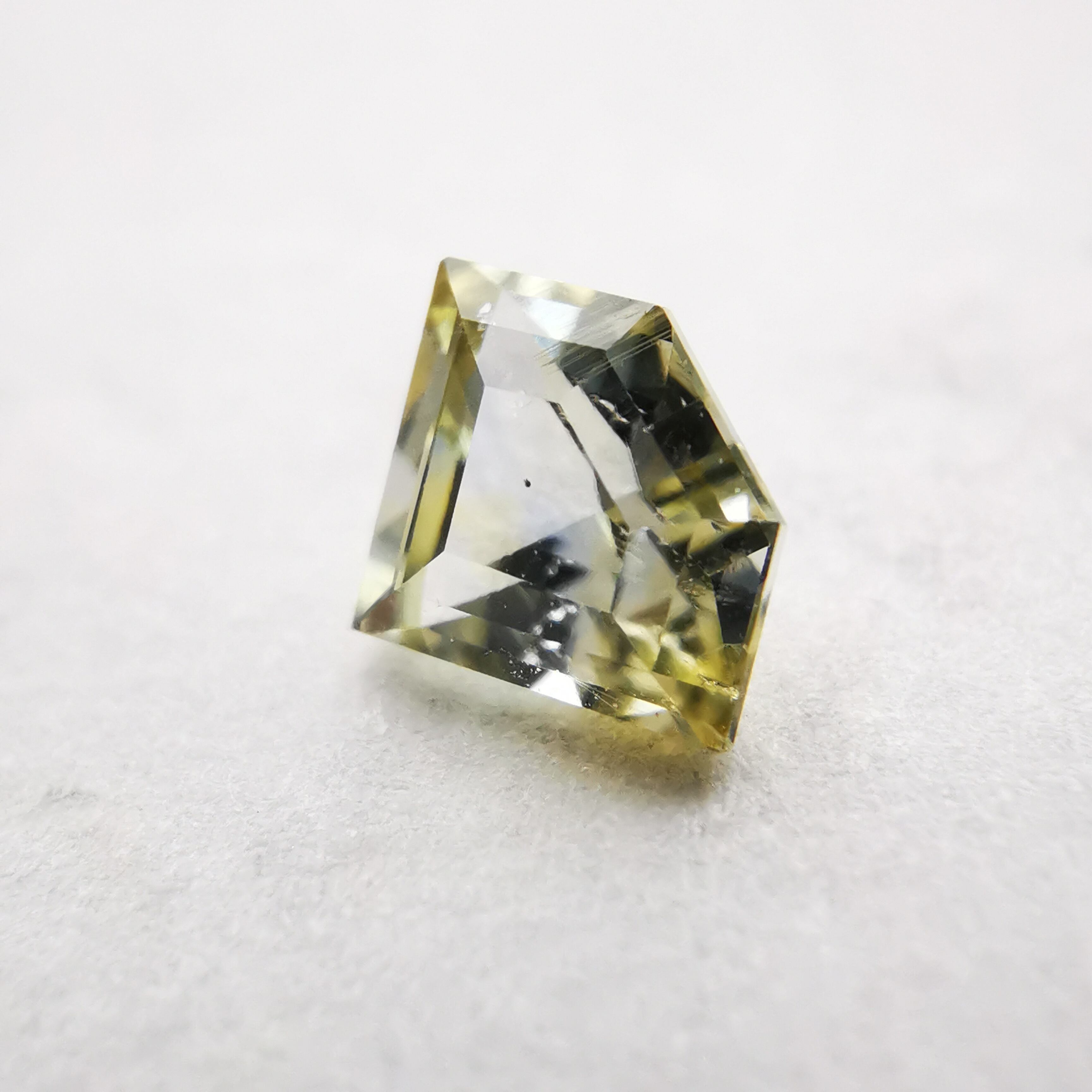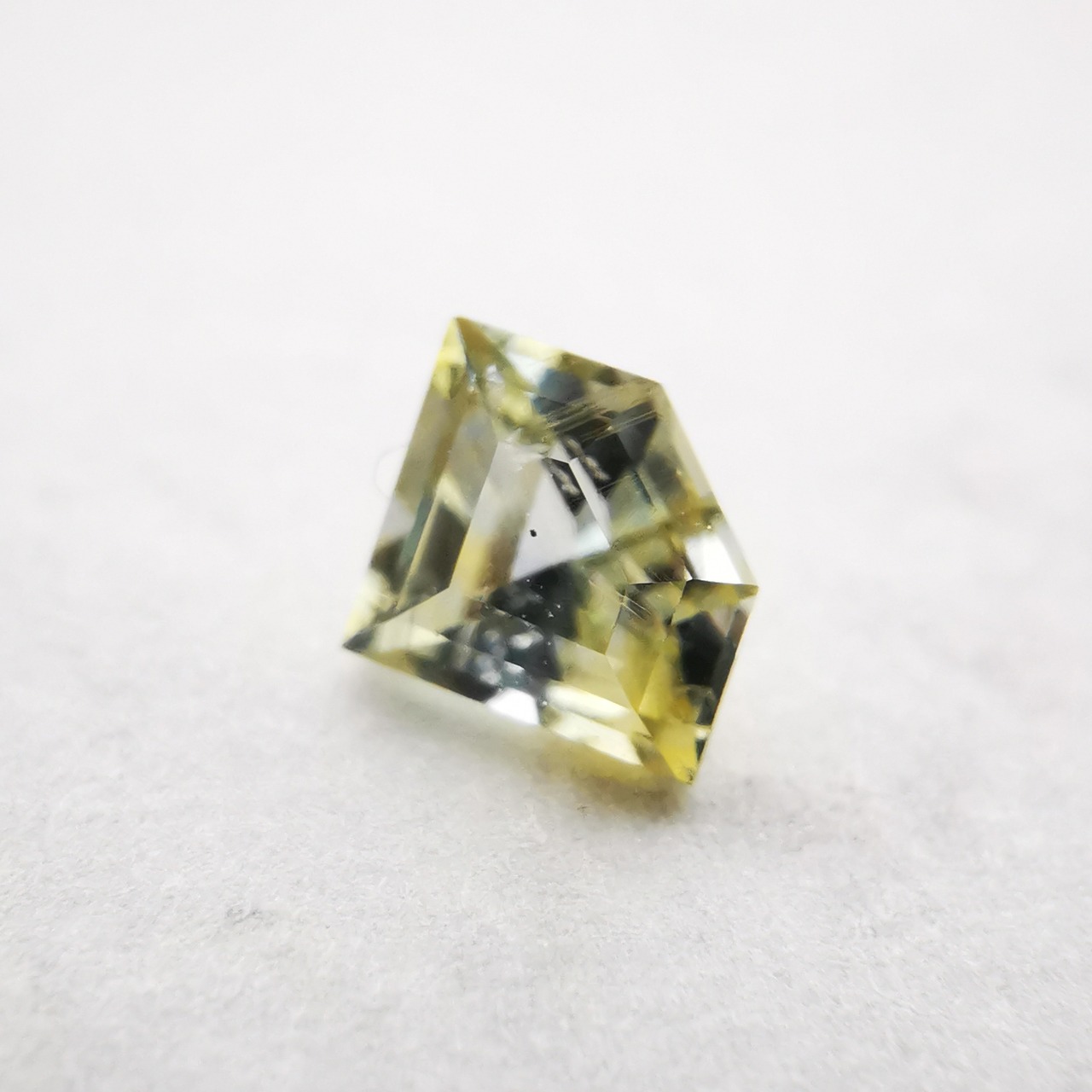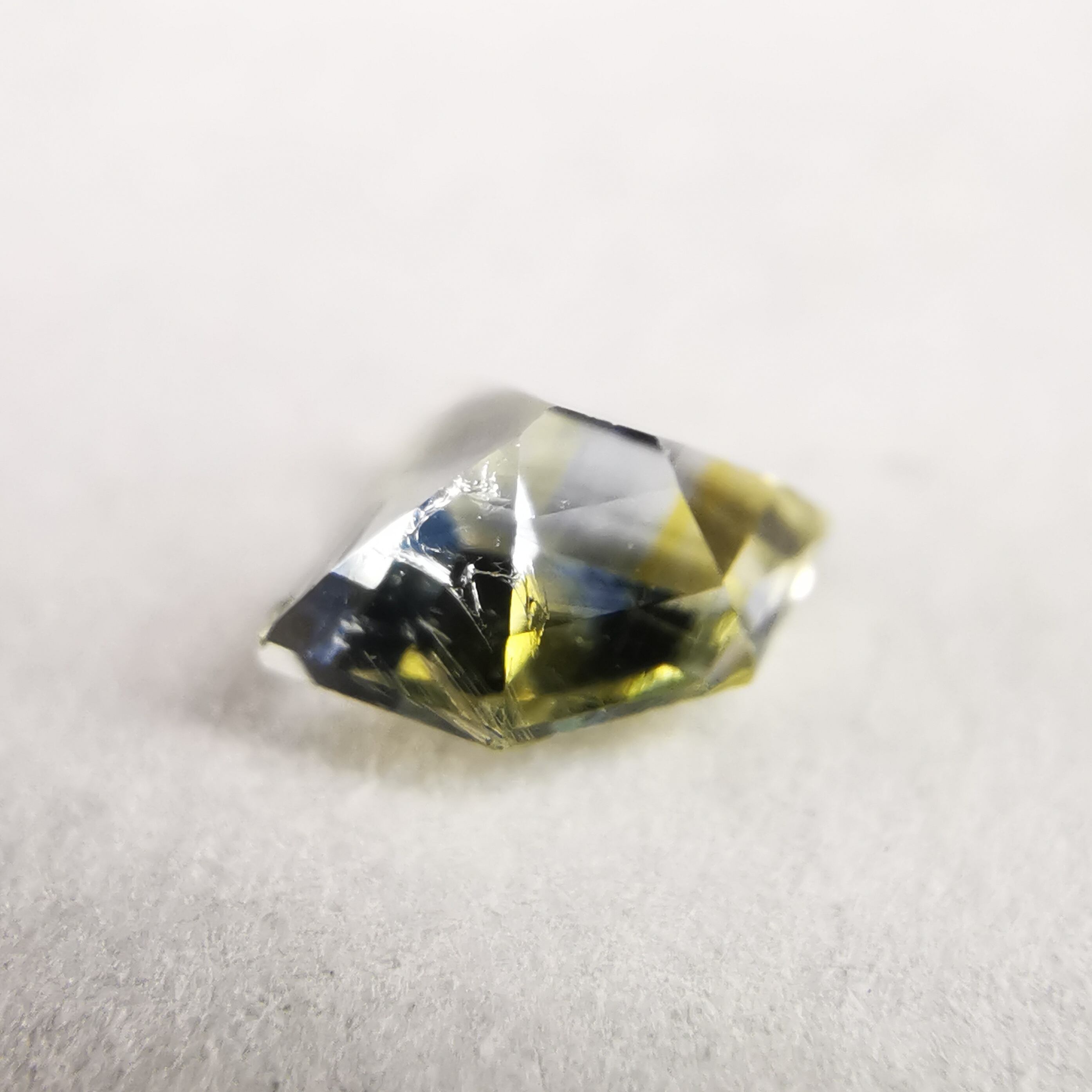 ごくごく淡いブルーからカラーレスのサファイアに、イエローが入ったバイカラーのサファイアです。