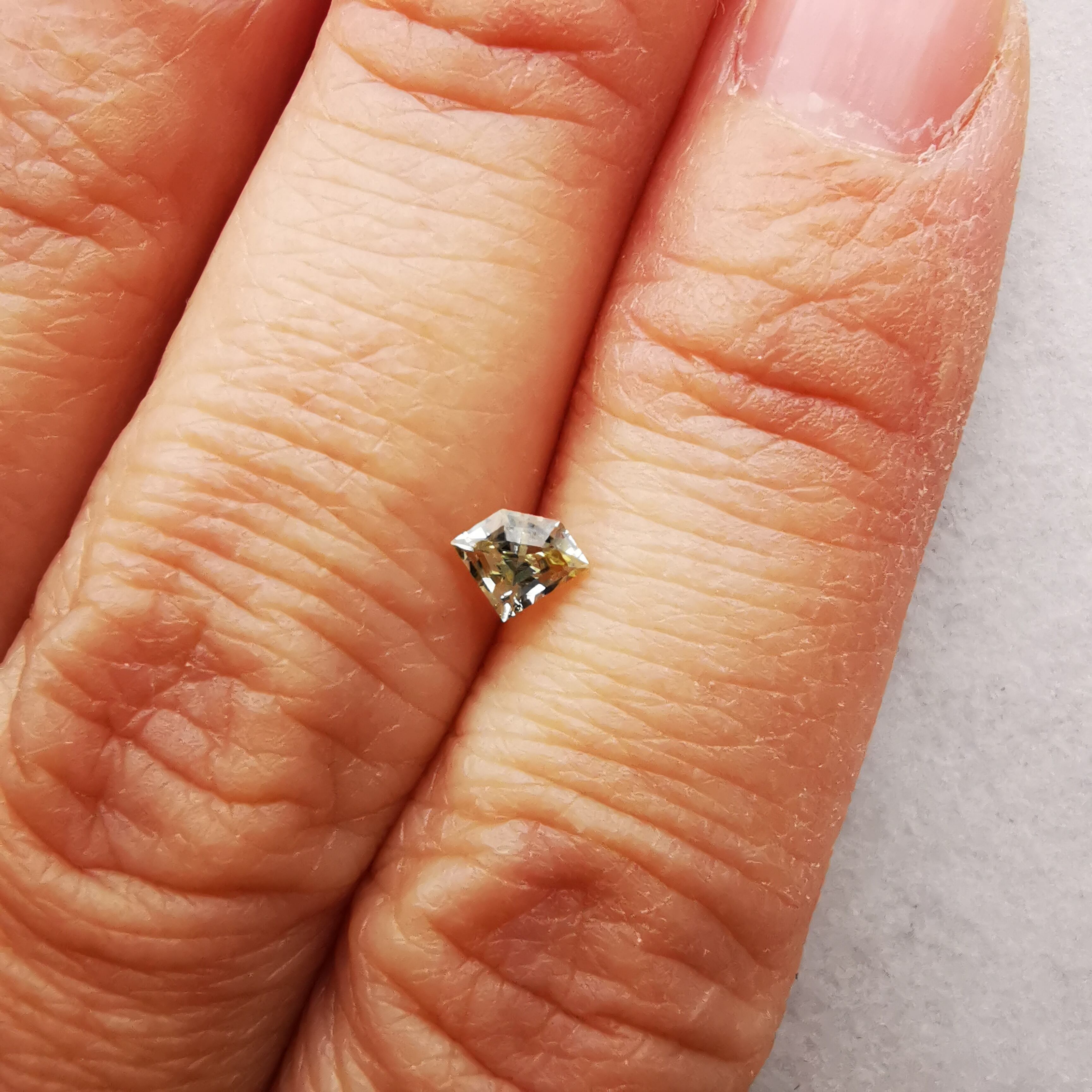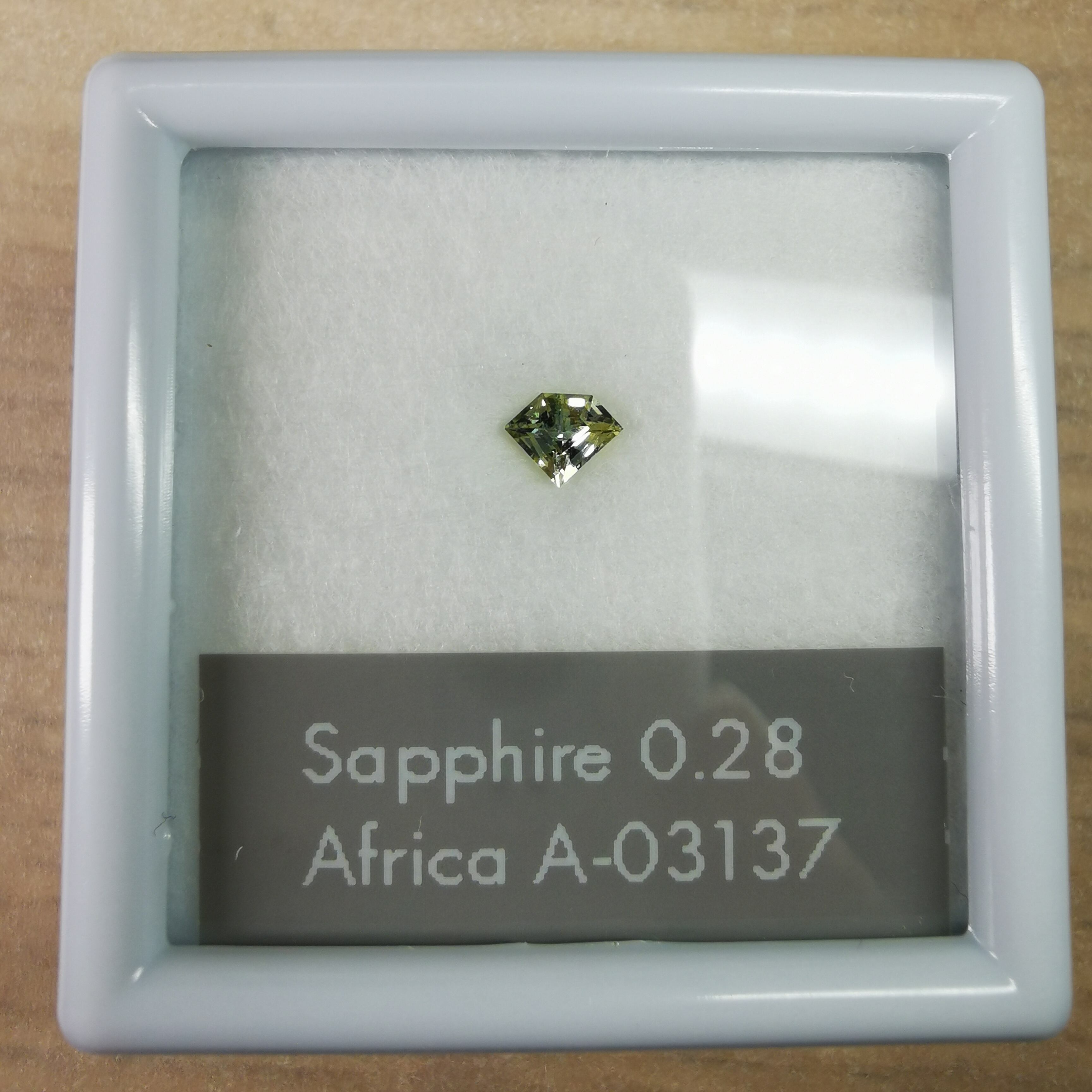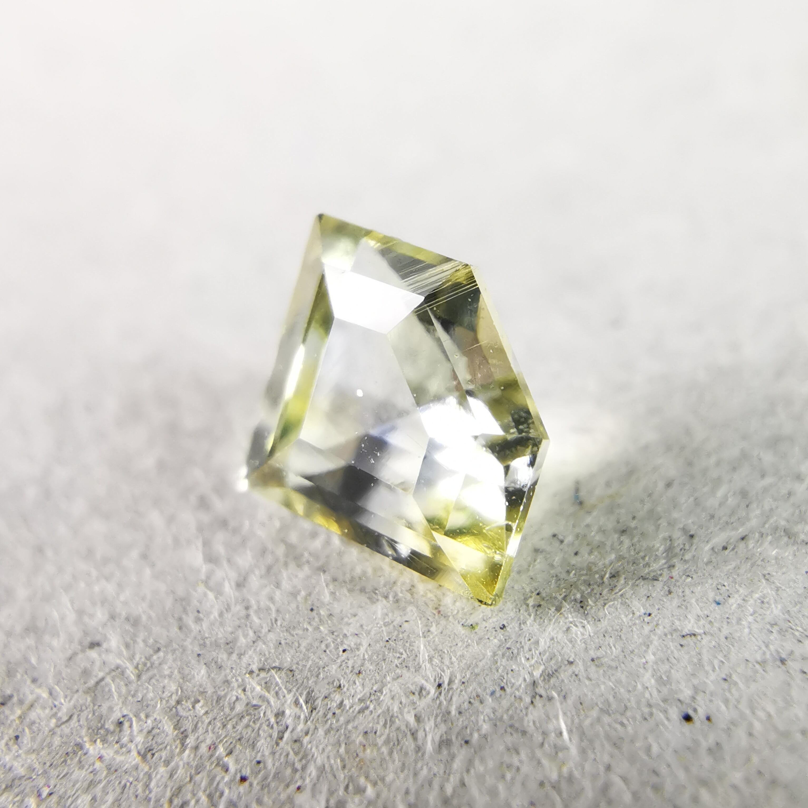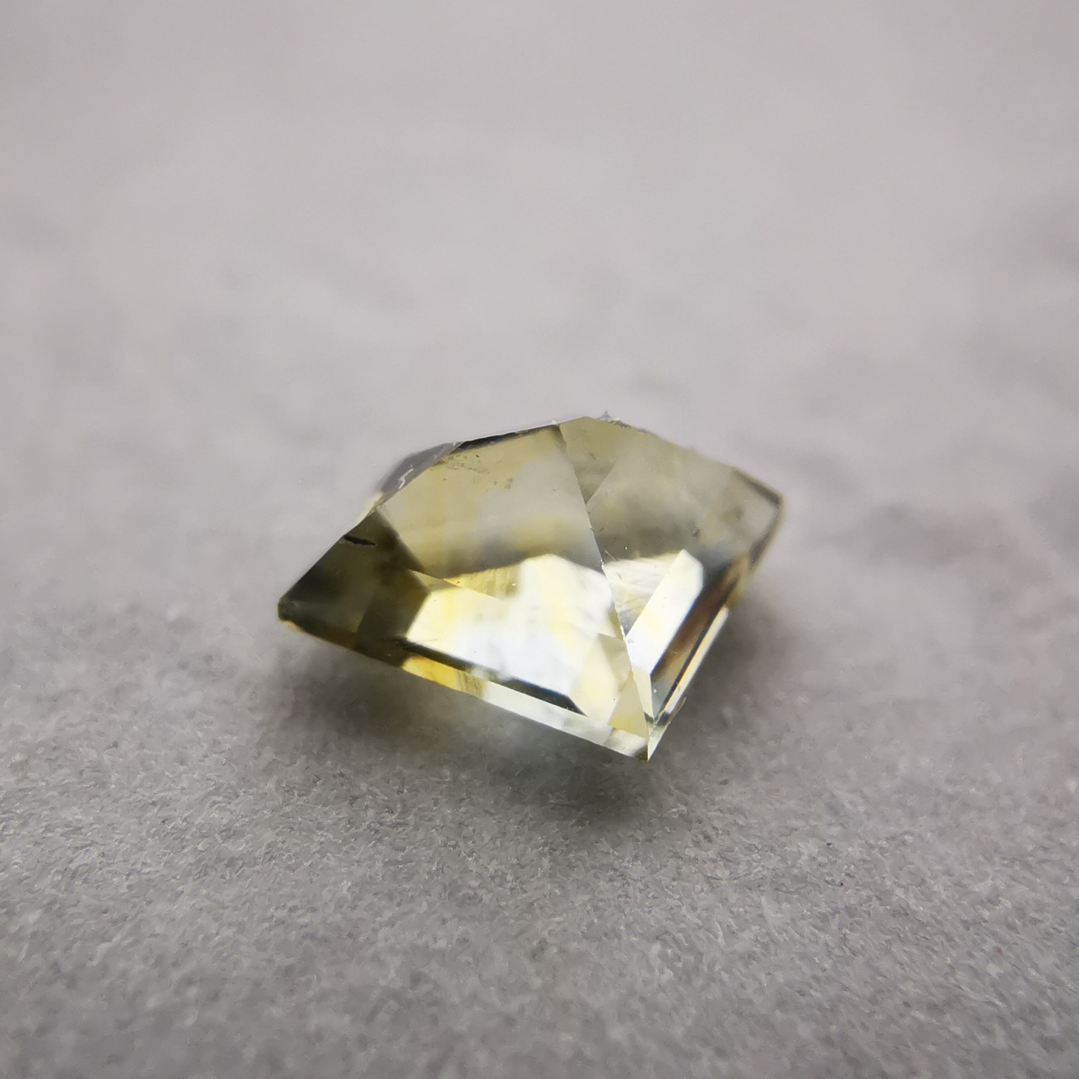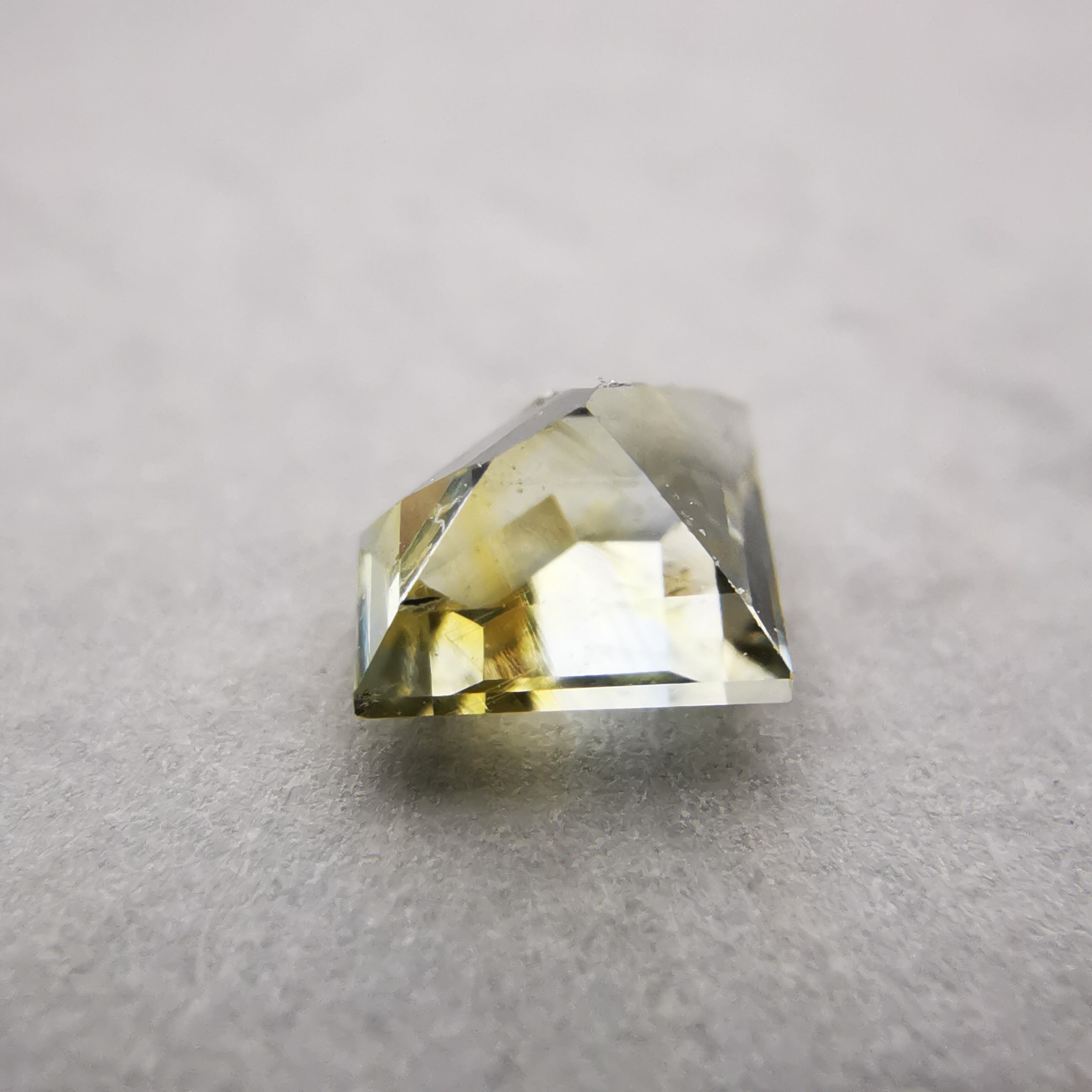 ごくごく淡いブルーからカラーレスのサファイアに、イエローが入ったバイカラーのサファイアです。