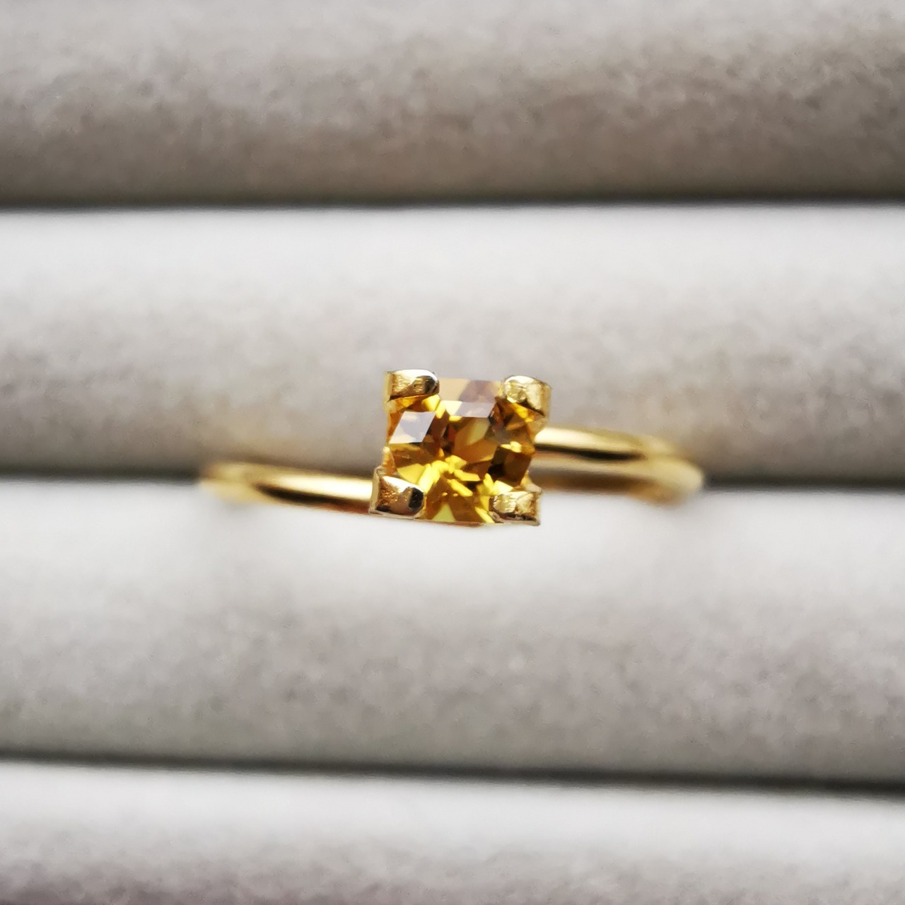 クリアで明るく、濃いイエローが印象的なイエロージルコンです。