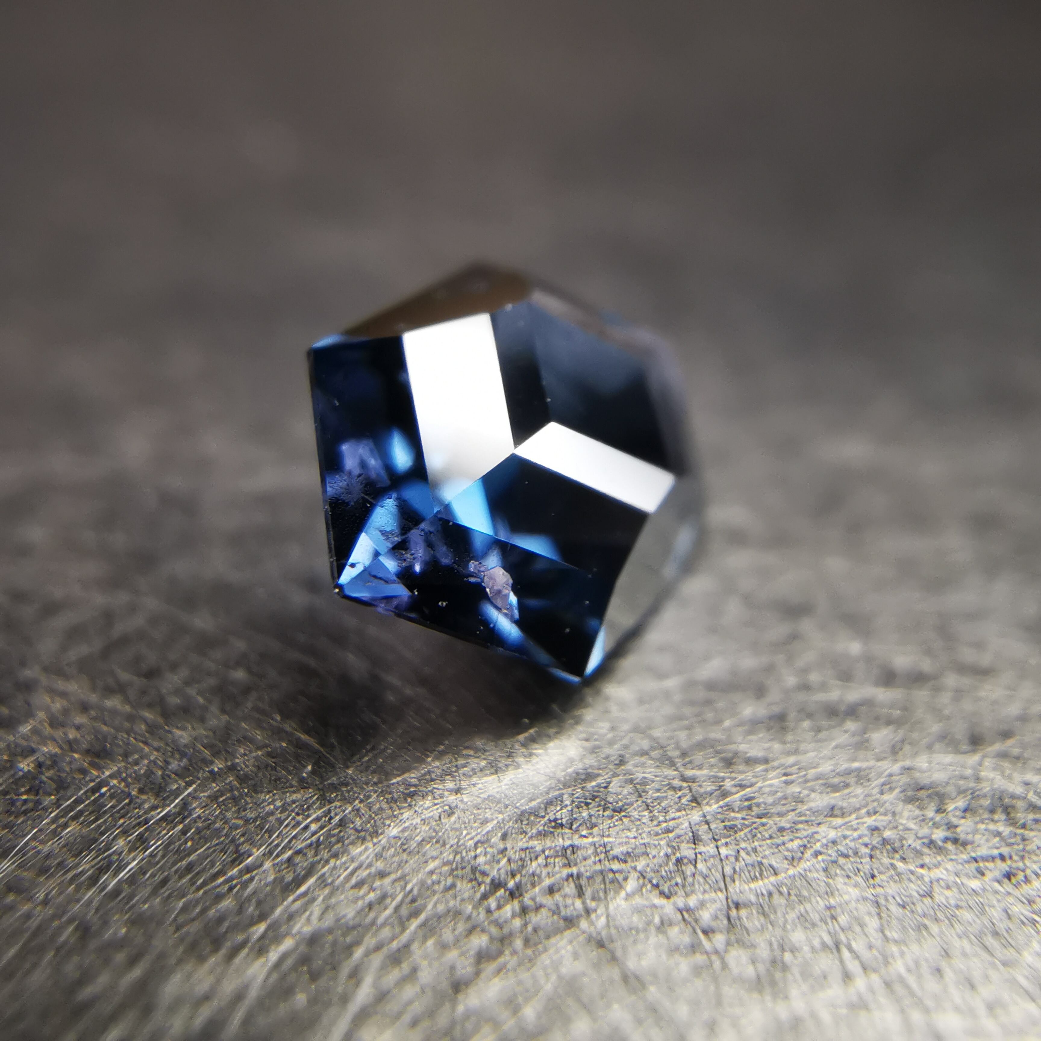 暗い石の中から、鮮やかなブルーグレーがきらめくクールな一石です。