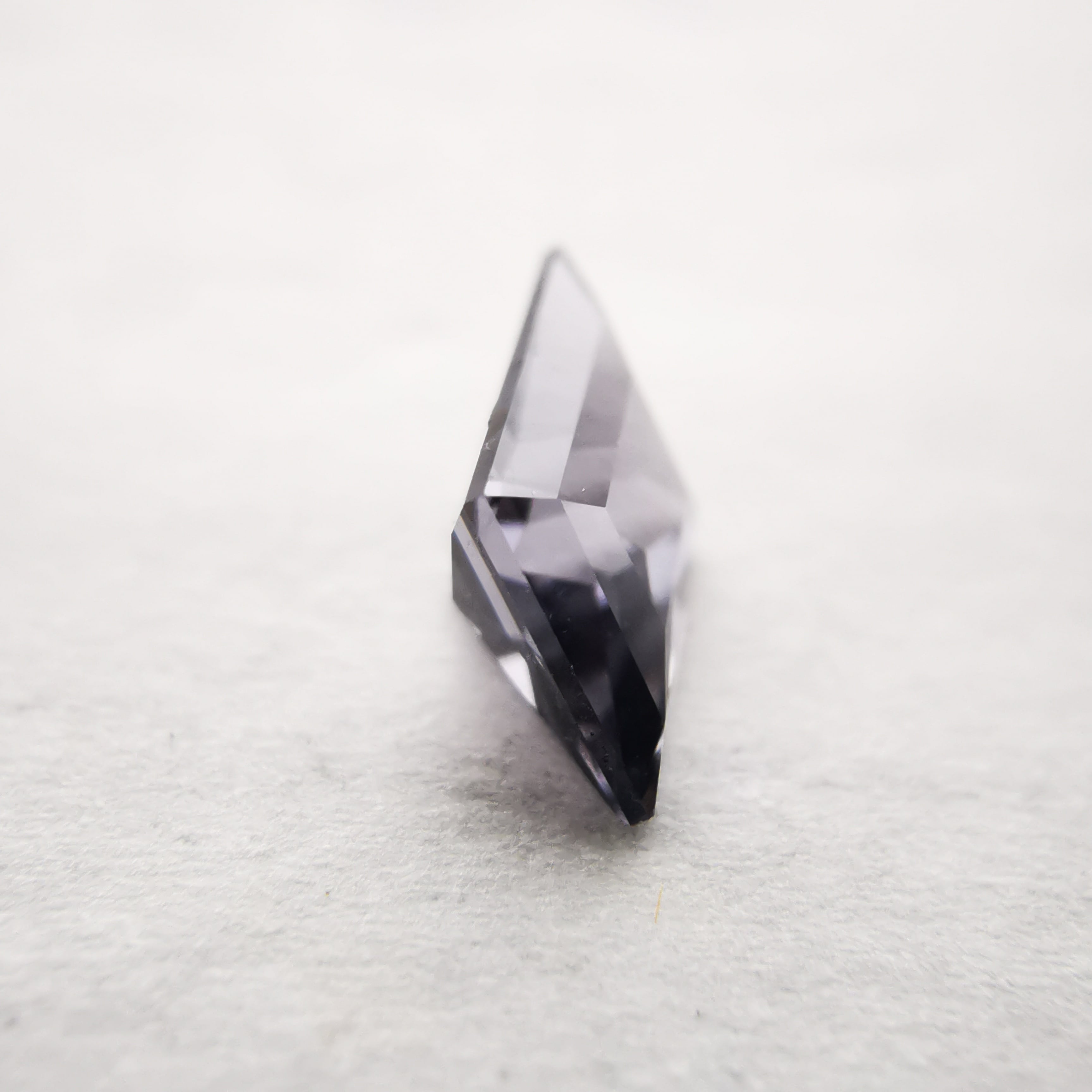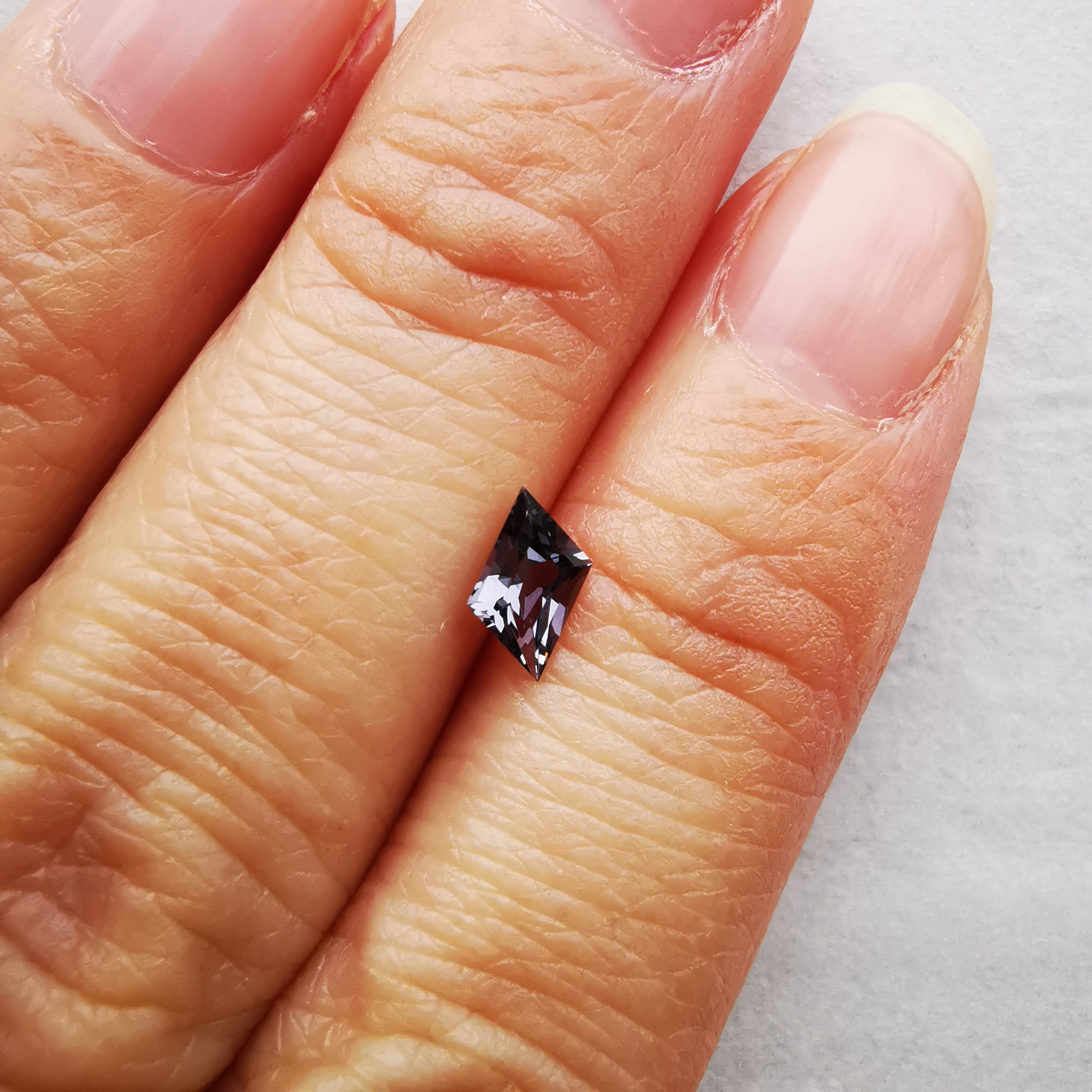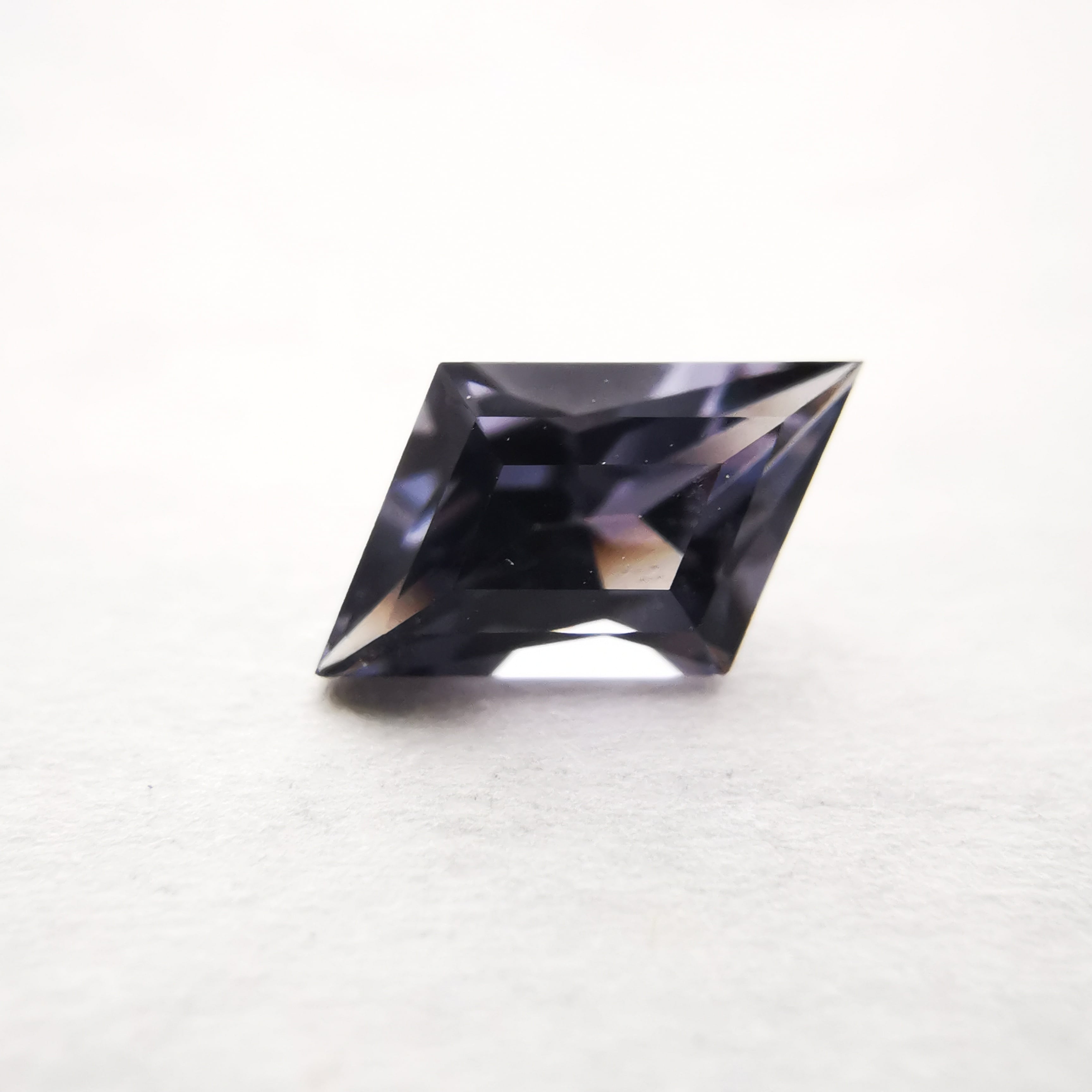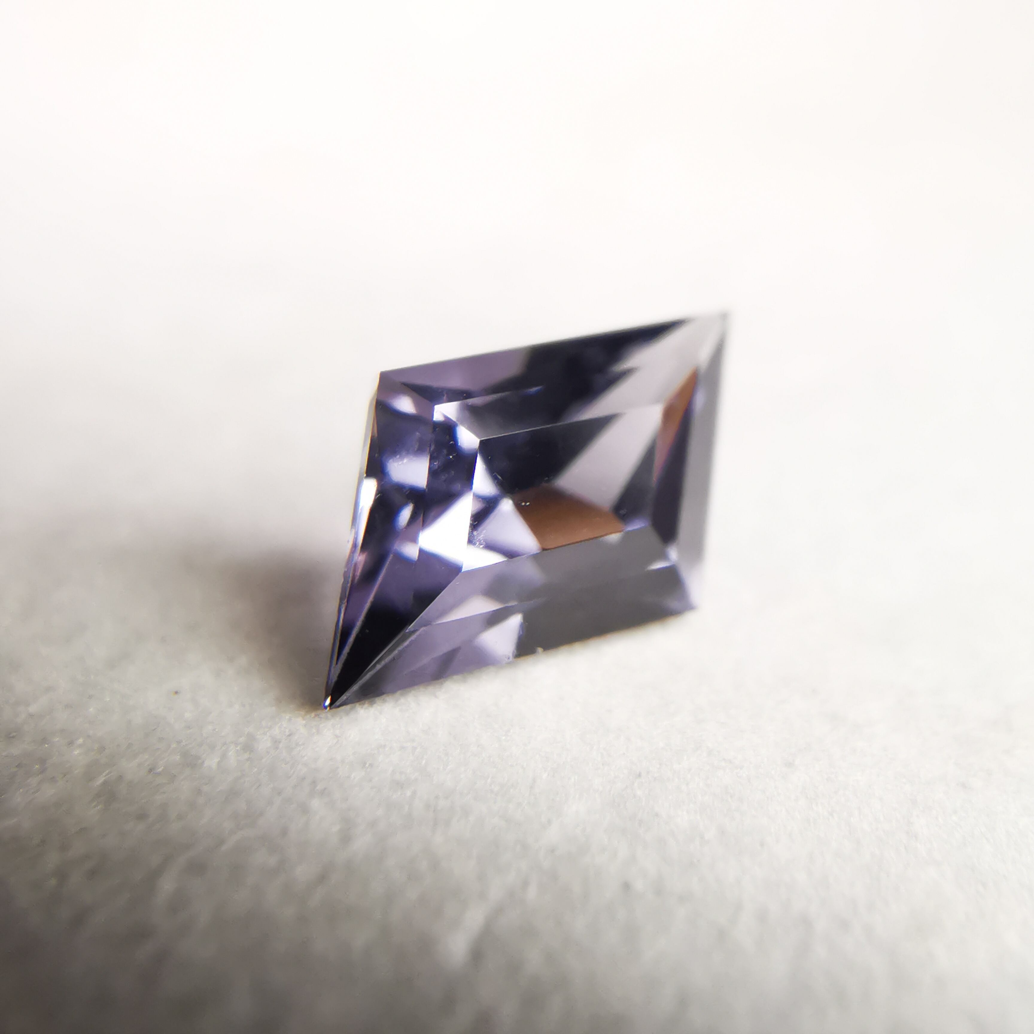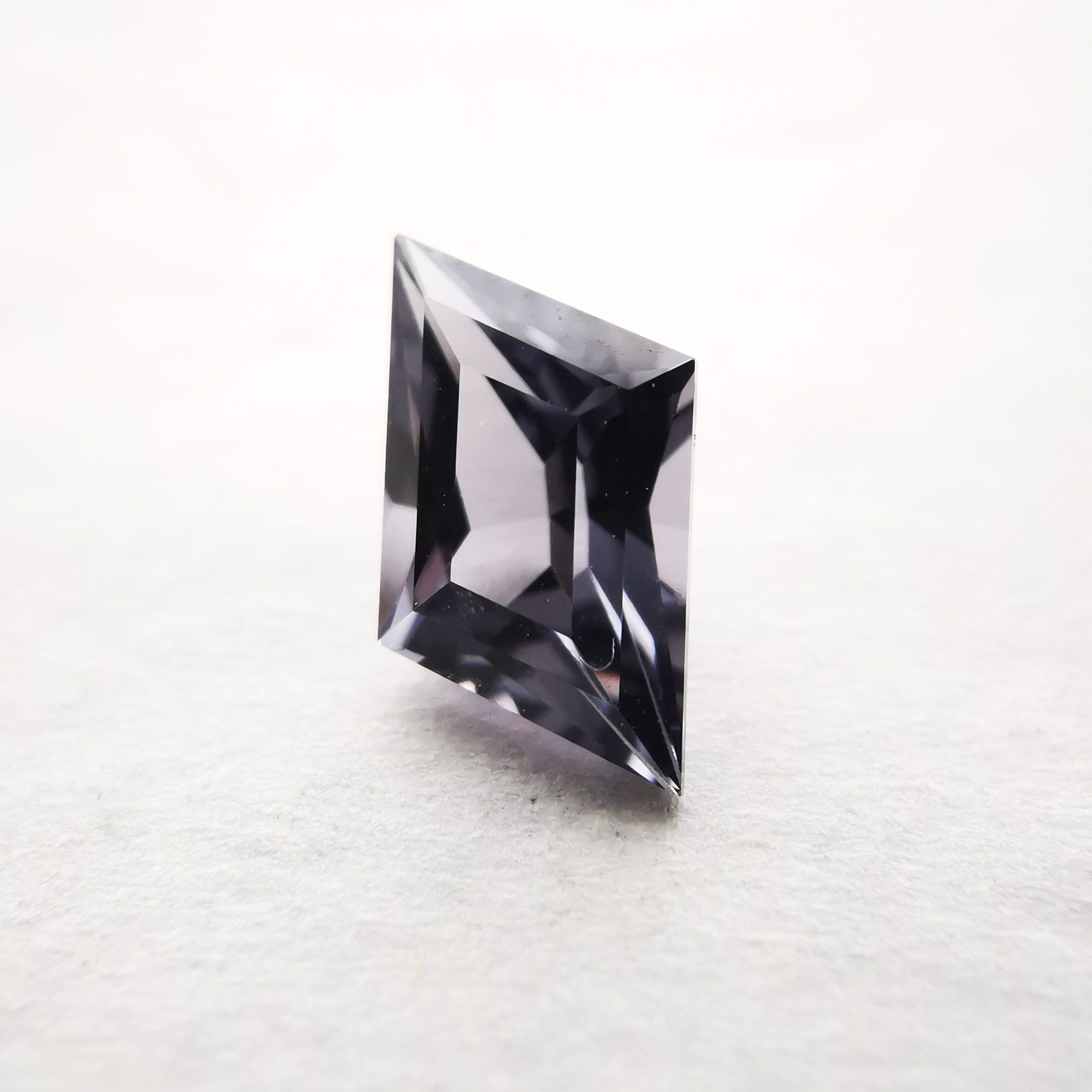 ピンピンに尖った平行四辺形のカット、ほとんど色味を感じないグレー、とてもクールなスピネルです。