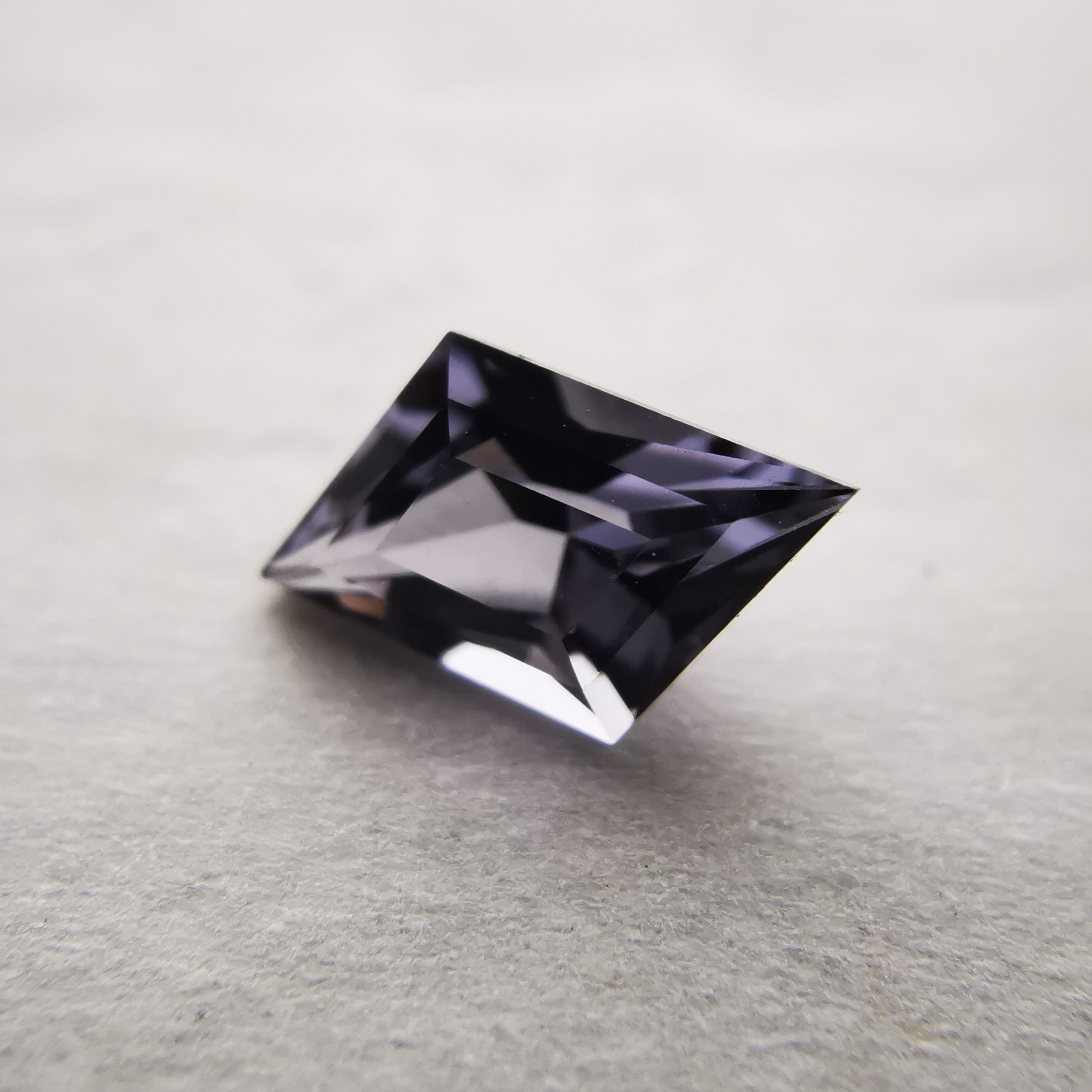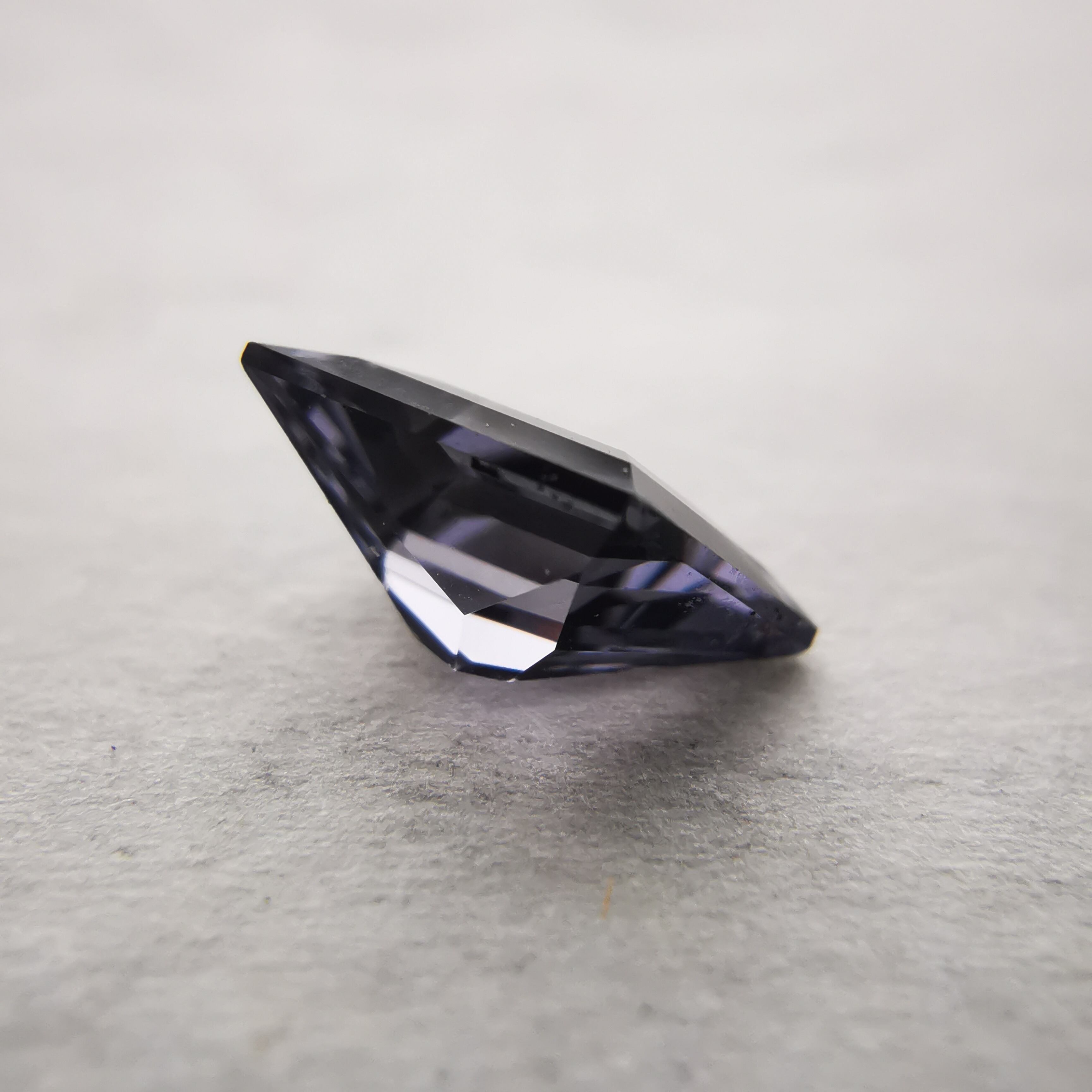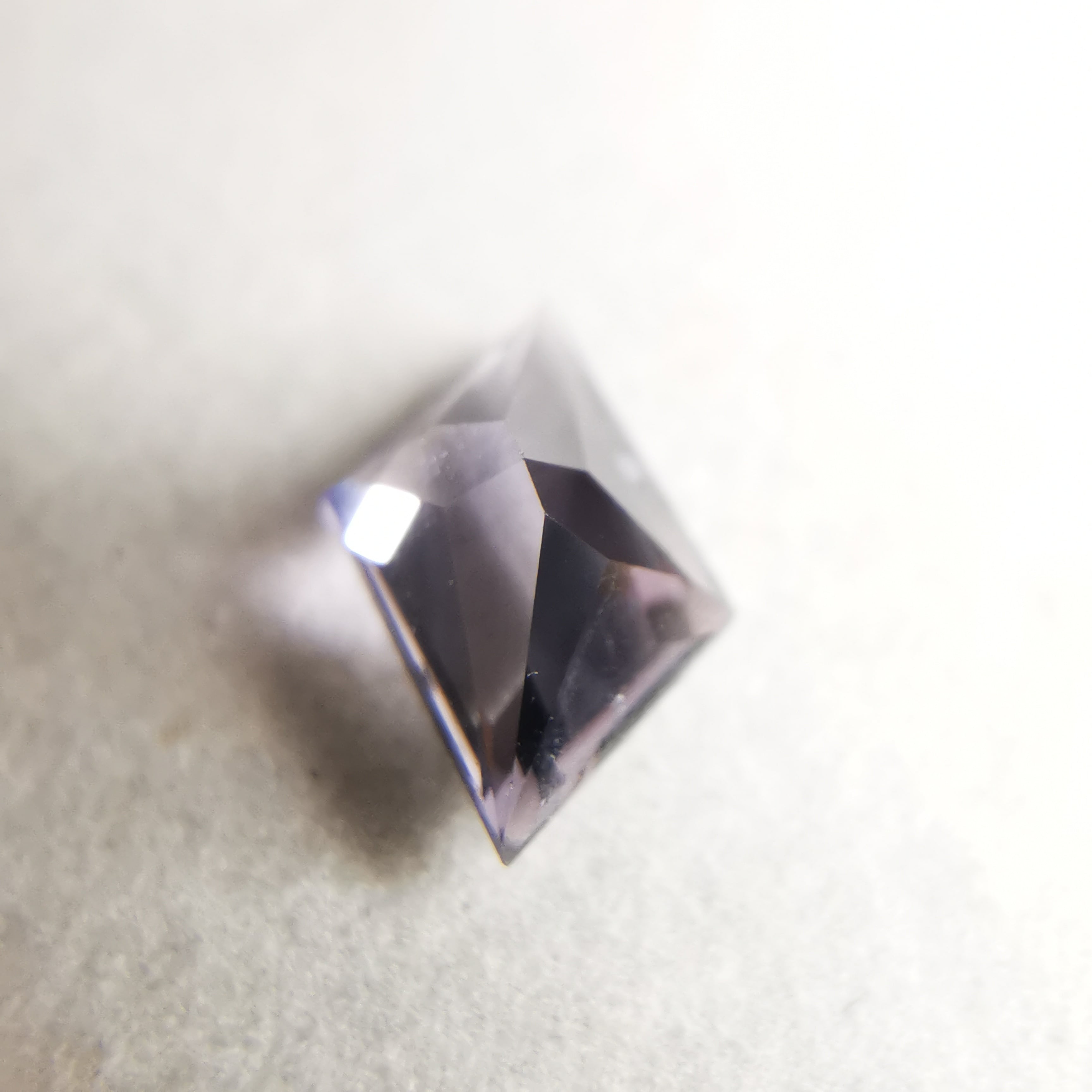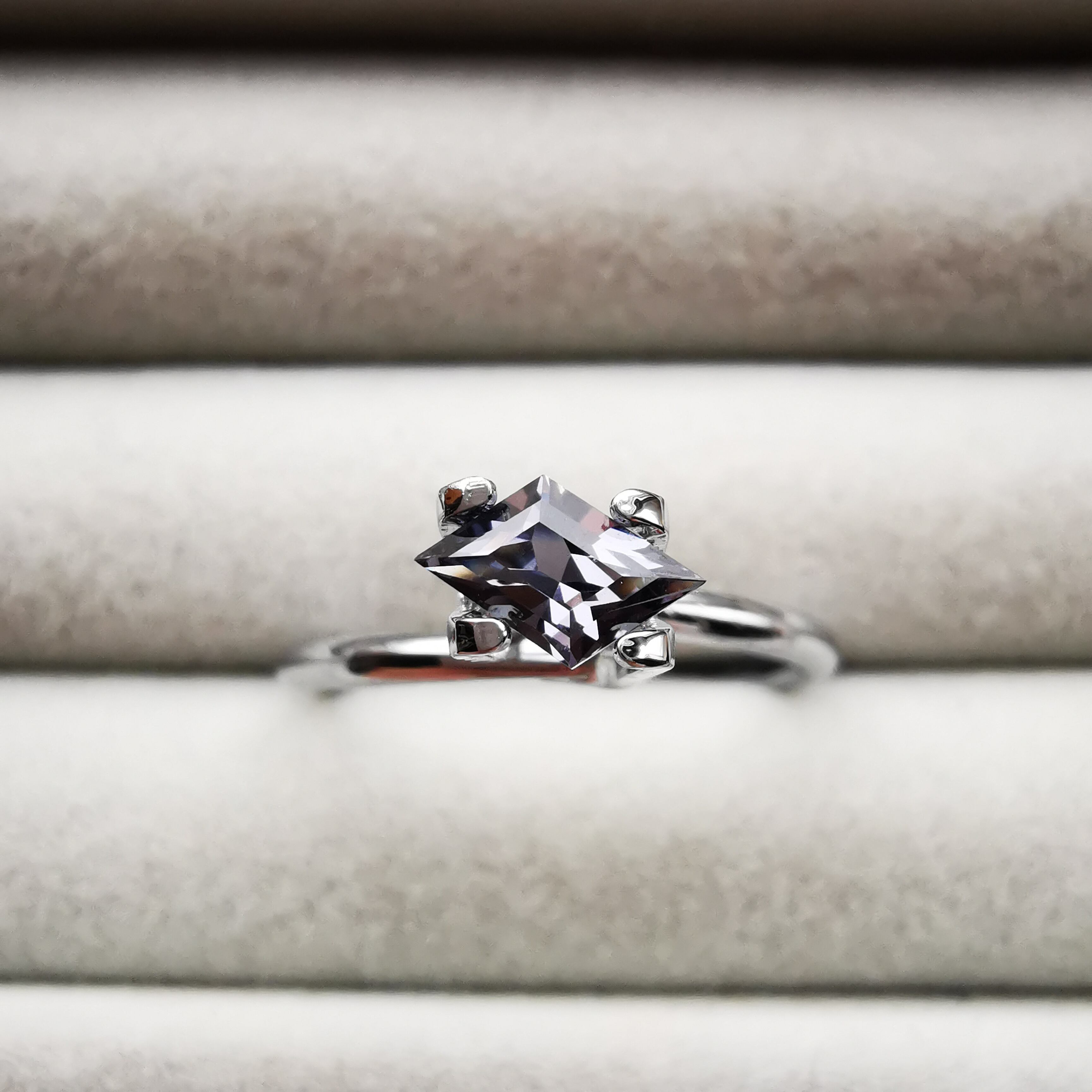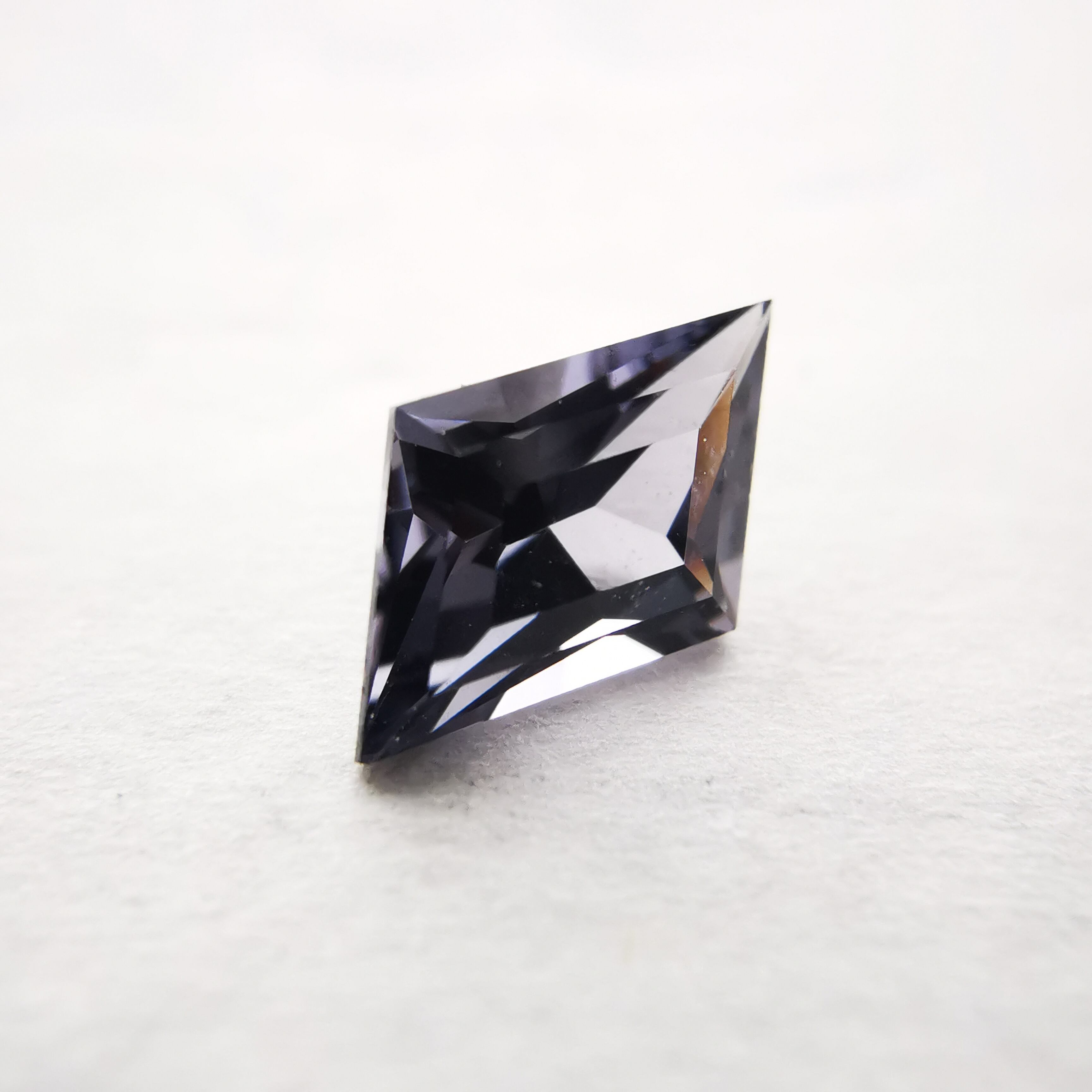 ピンピンに尖った平行四辺形のカット、ほとんど色味を感じないグレー、とてもクールなスピネルです。