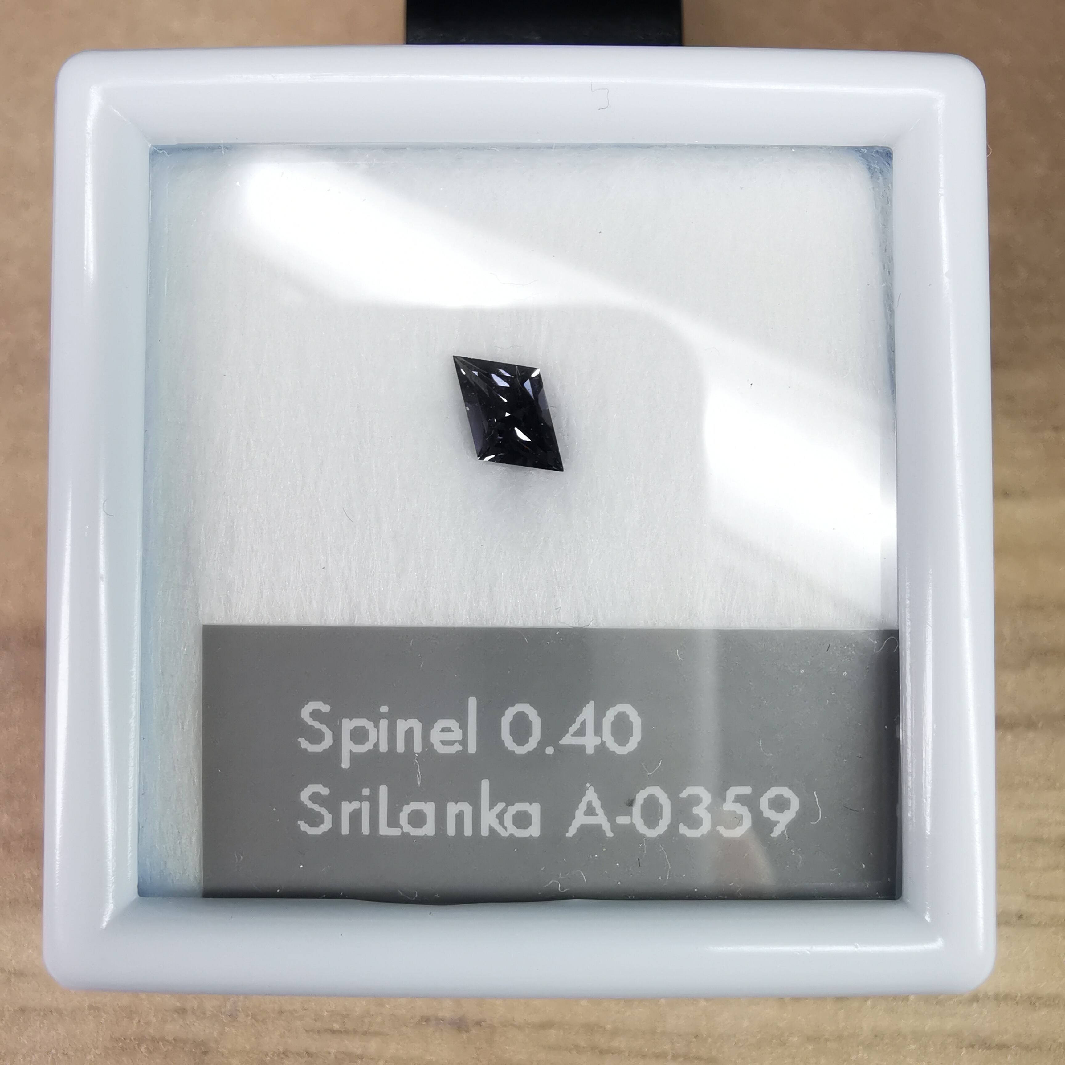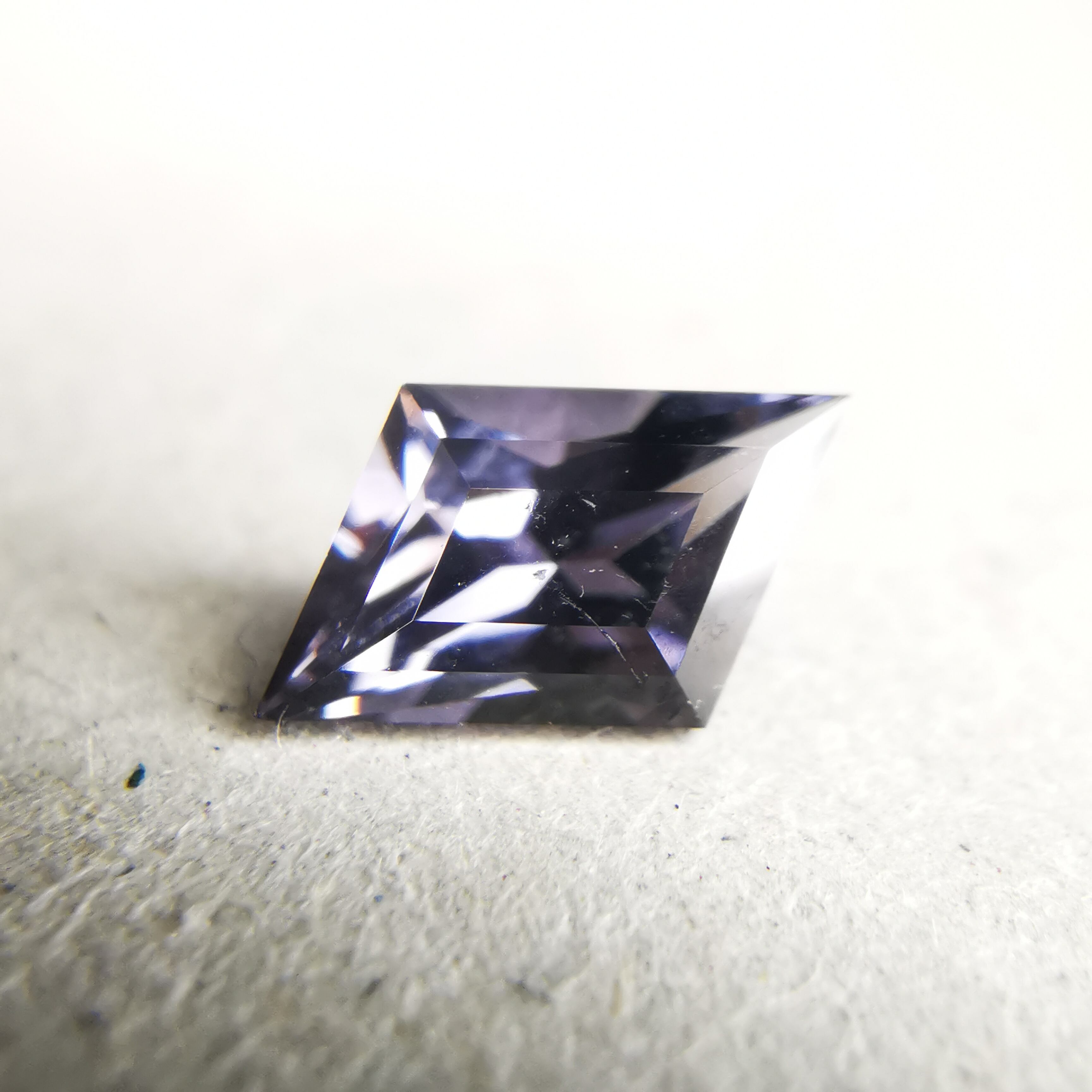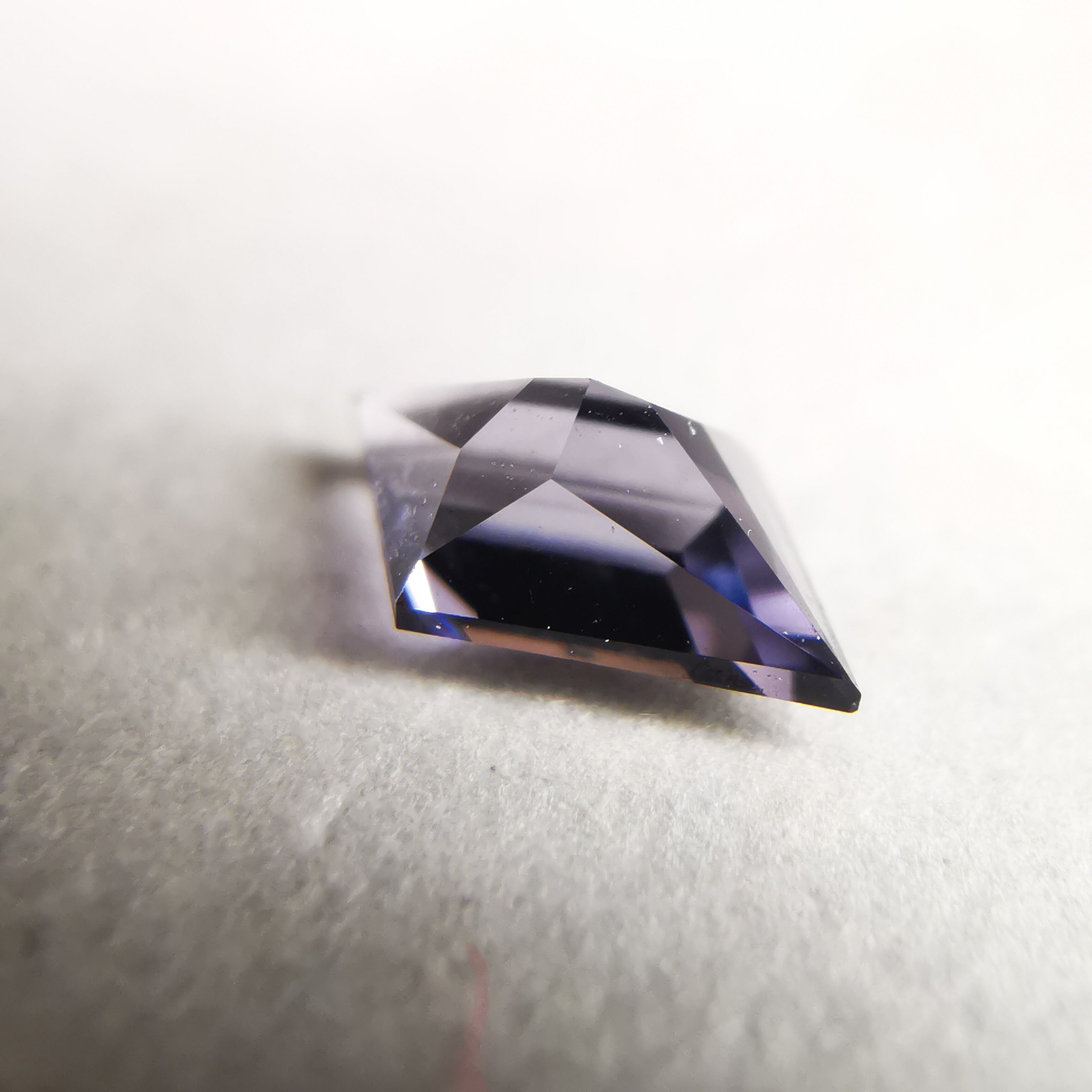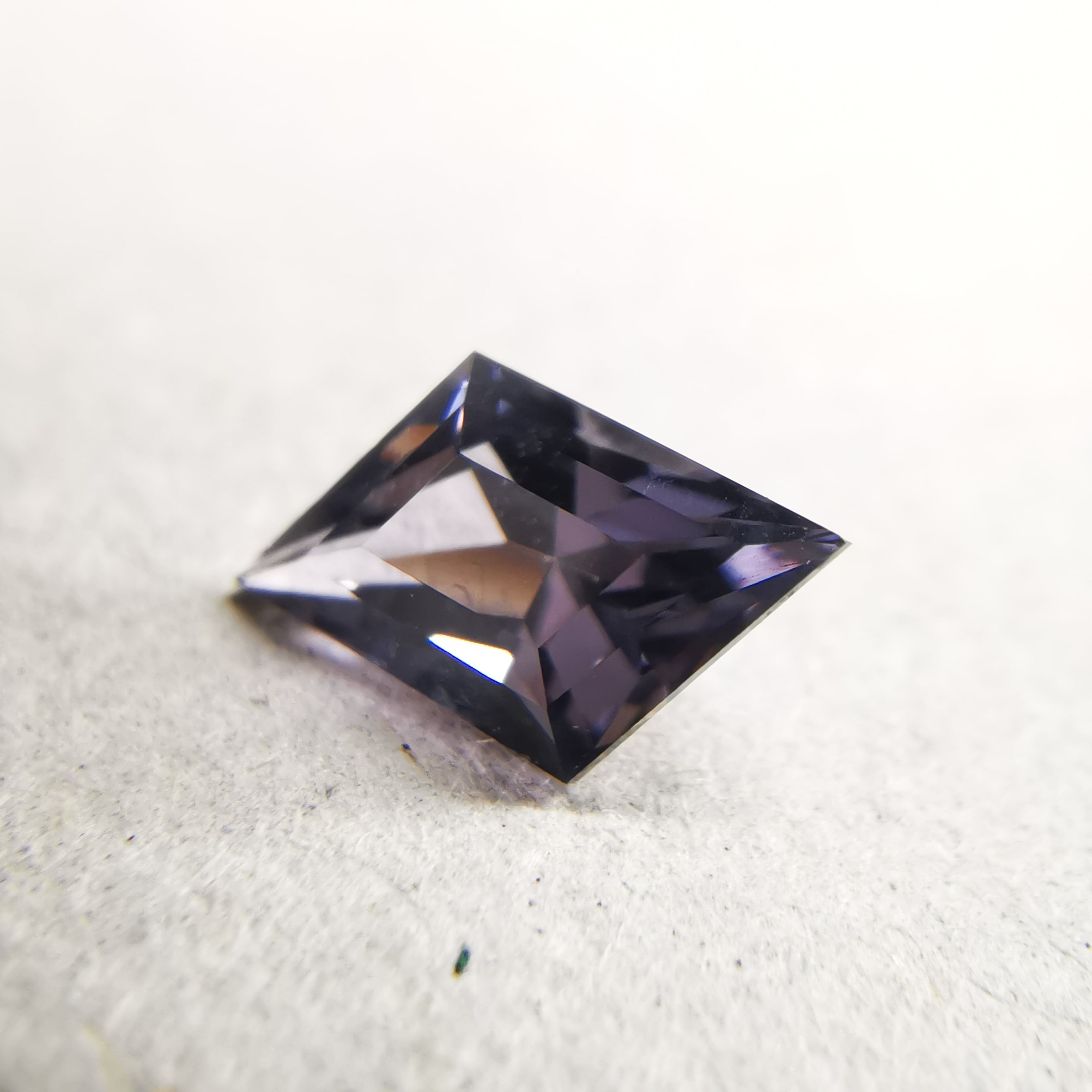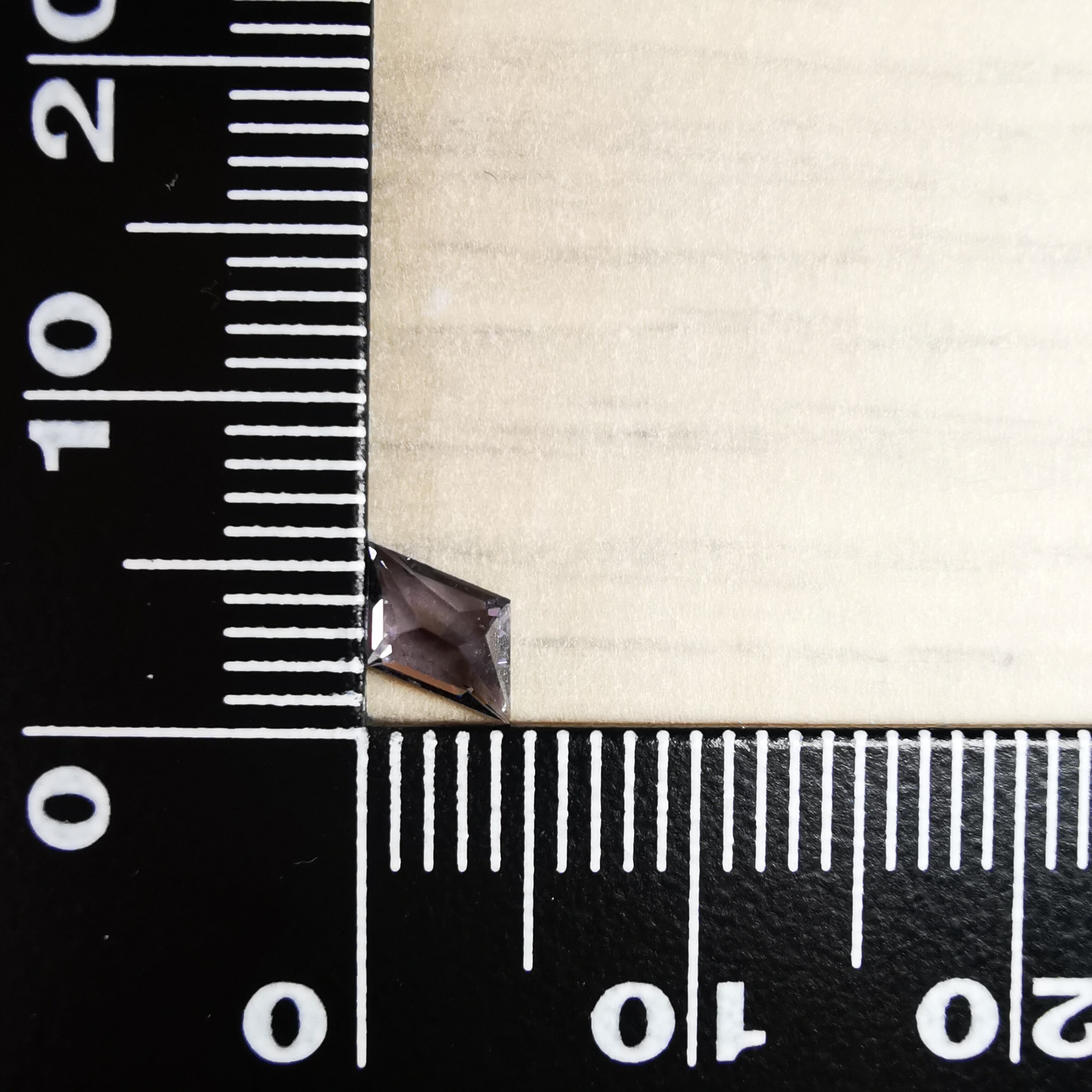 ピンピンに尖った平行四辺形のカット、ほとんど色味を感じないグレー、とてもクールなスピネルです。
