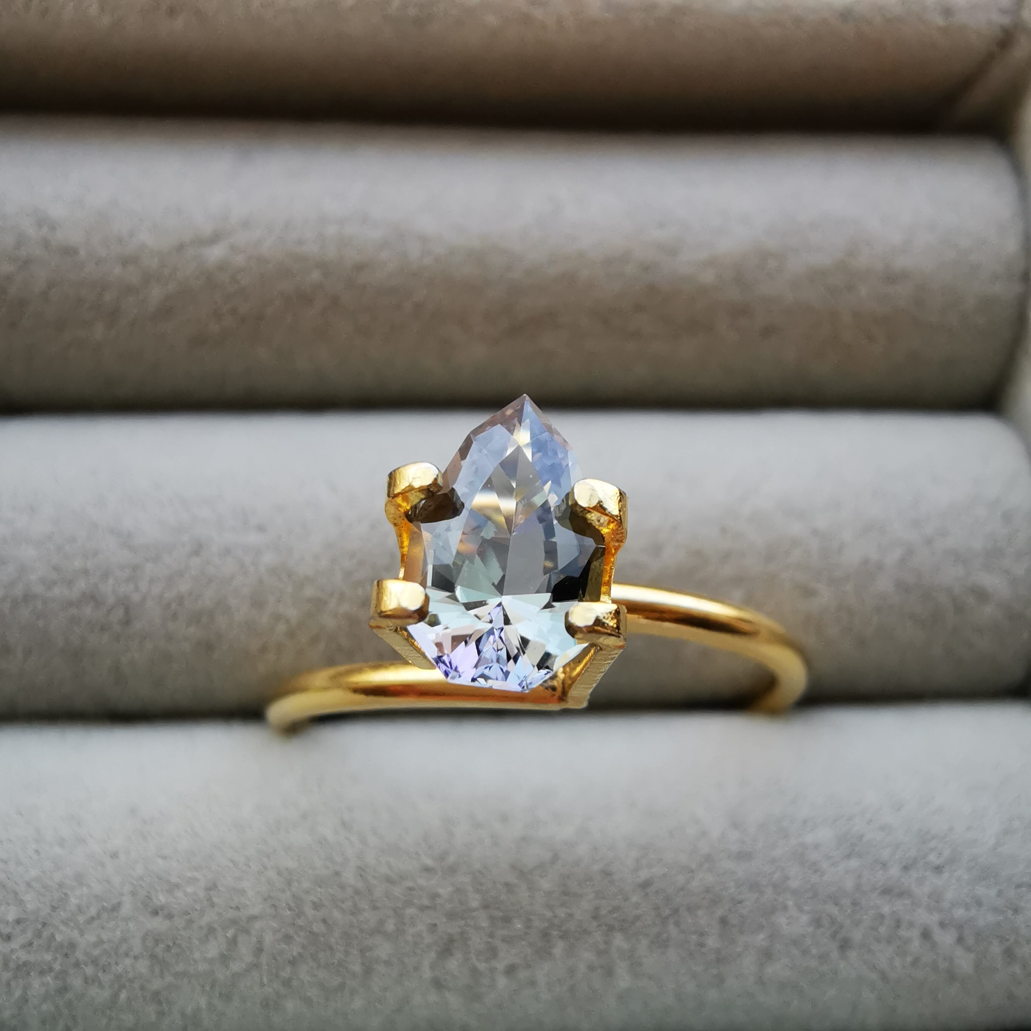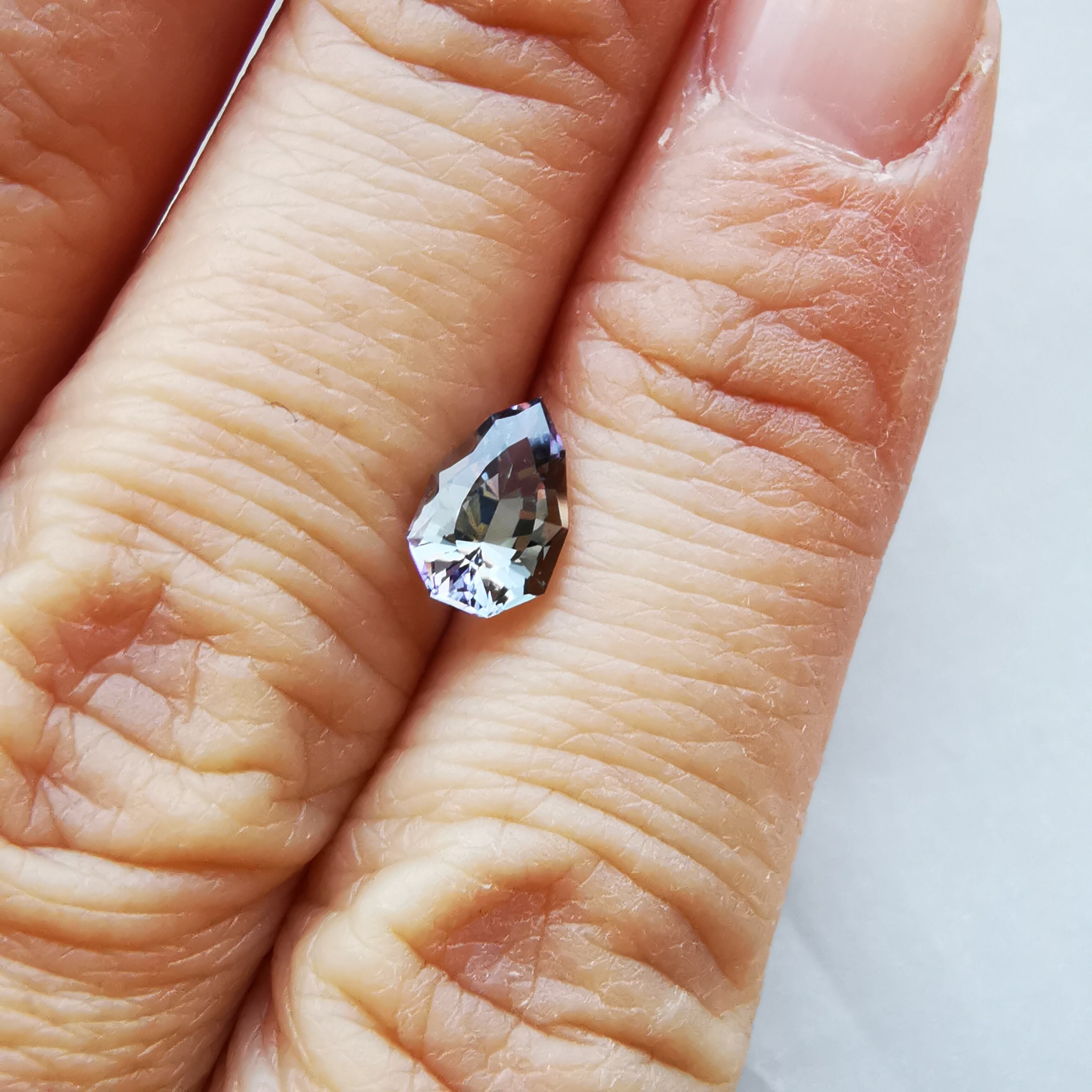 鋭いカスタムペアシェイプの中に、様々なカラーが詰まった美しいゾイサイトです。