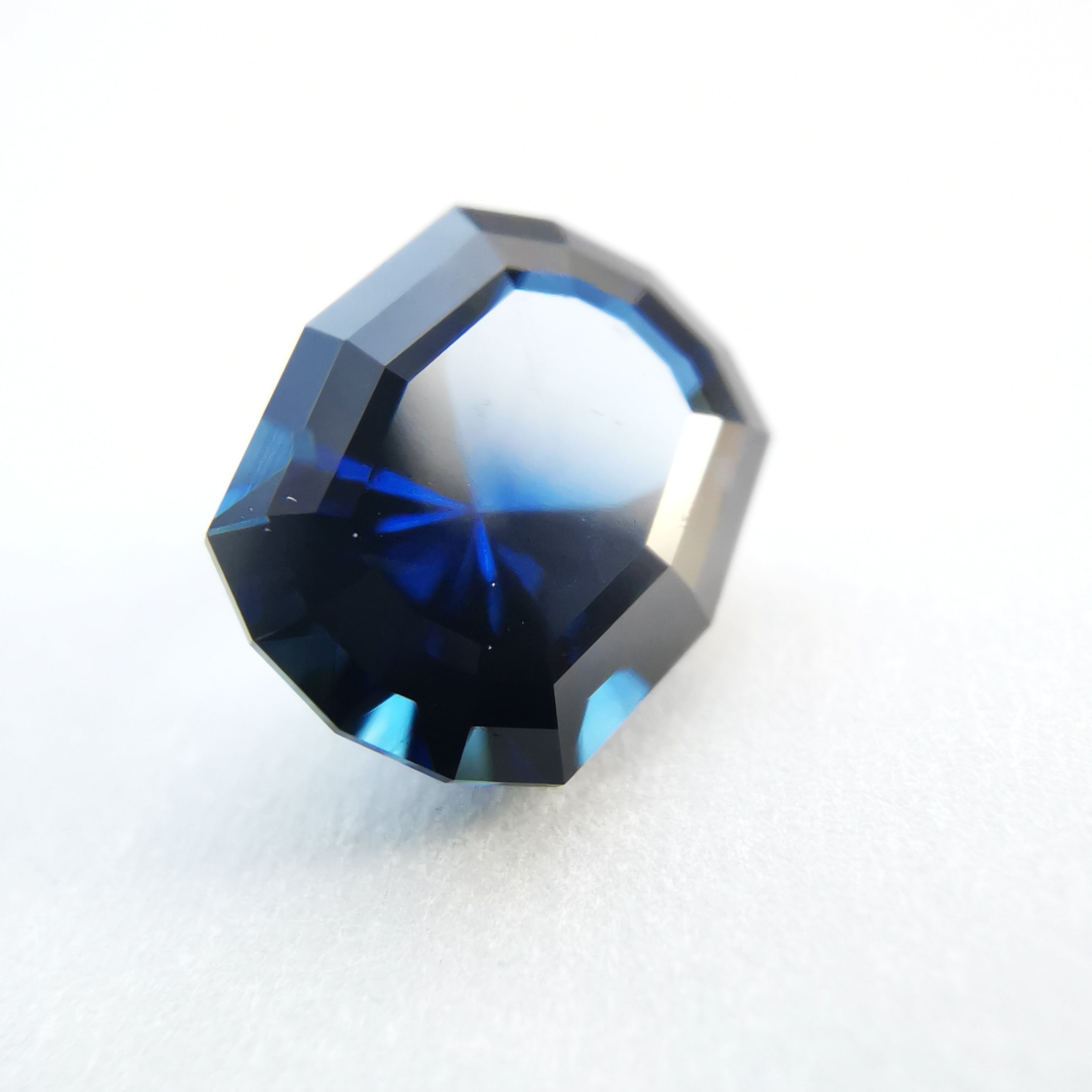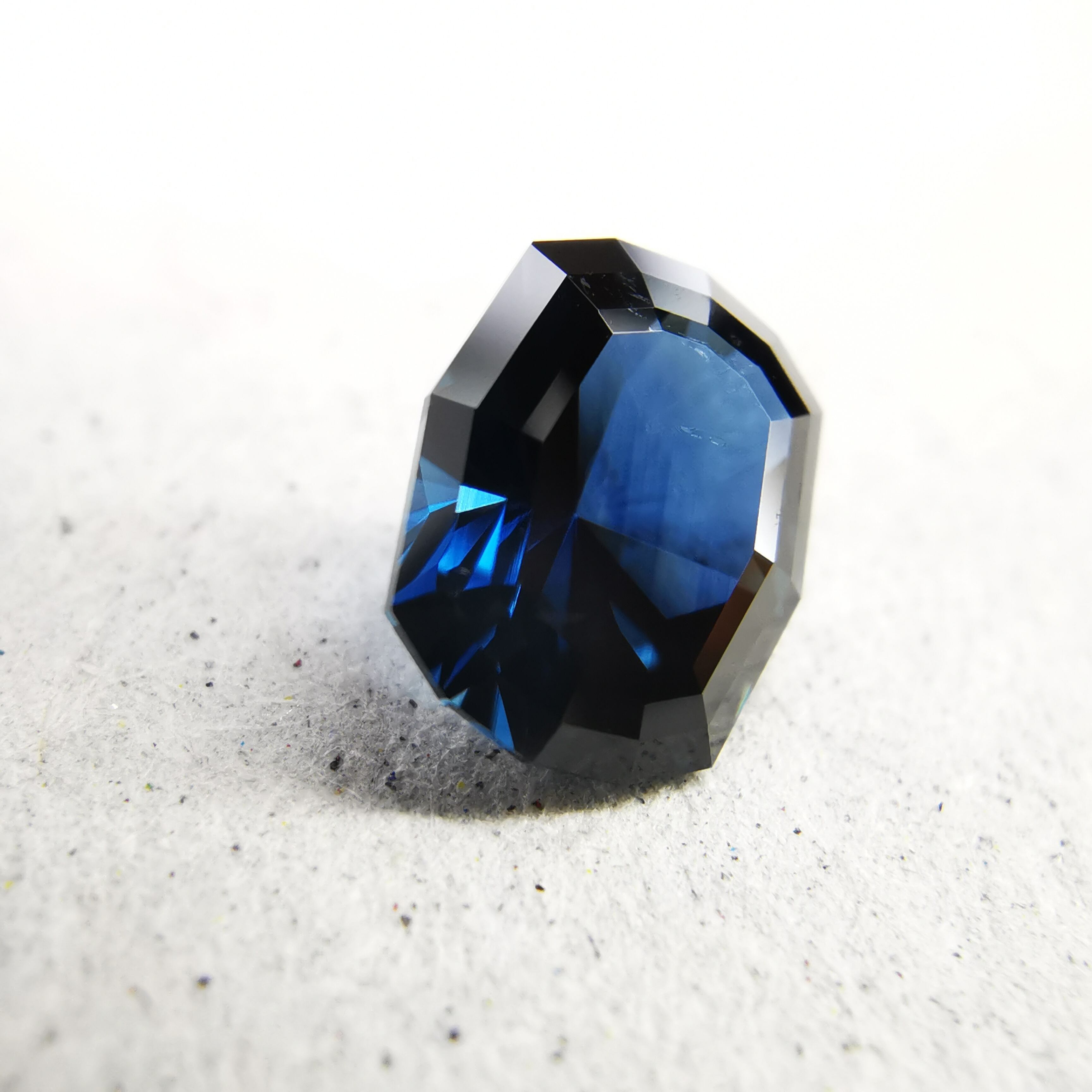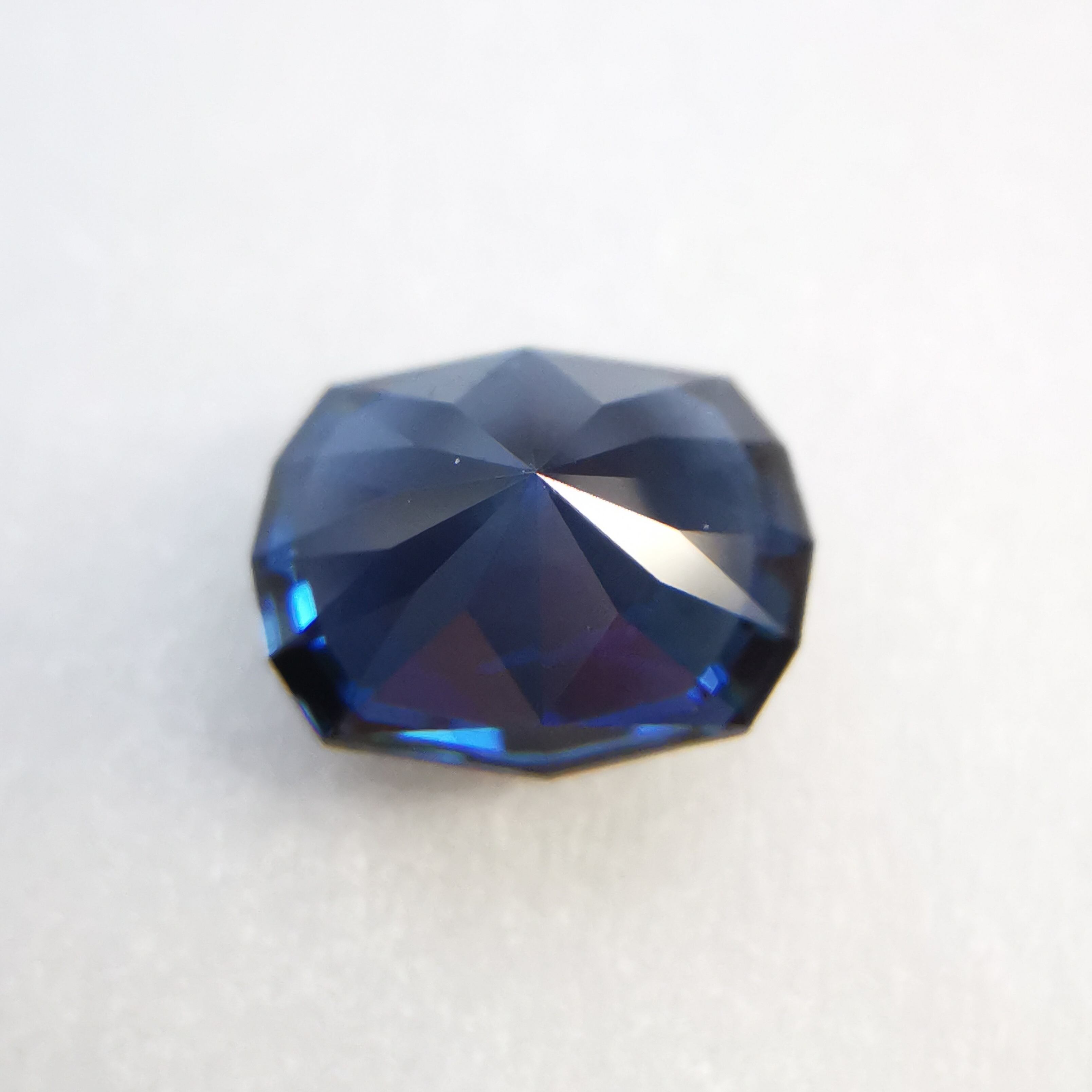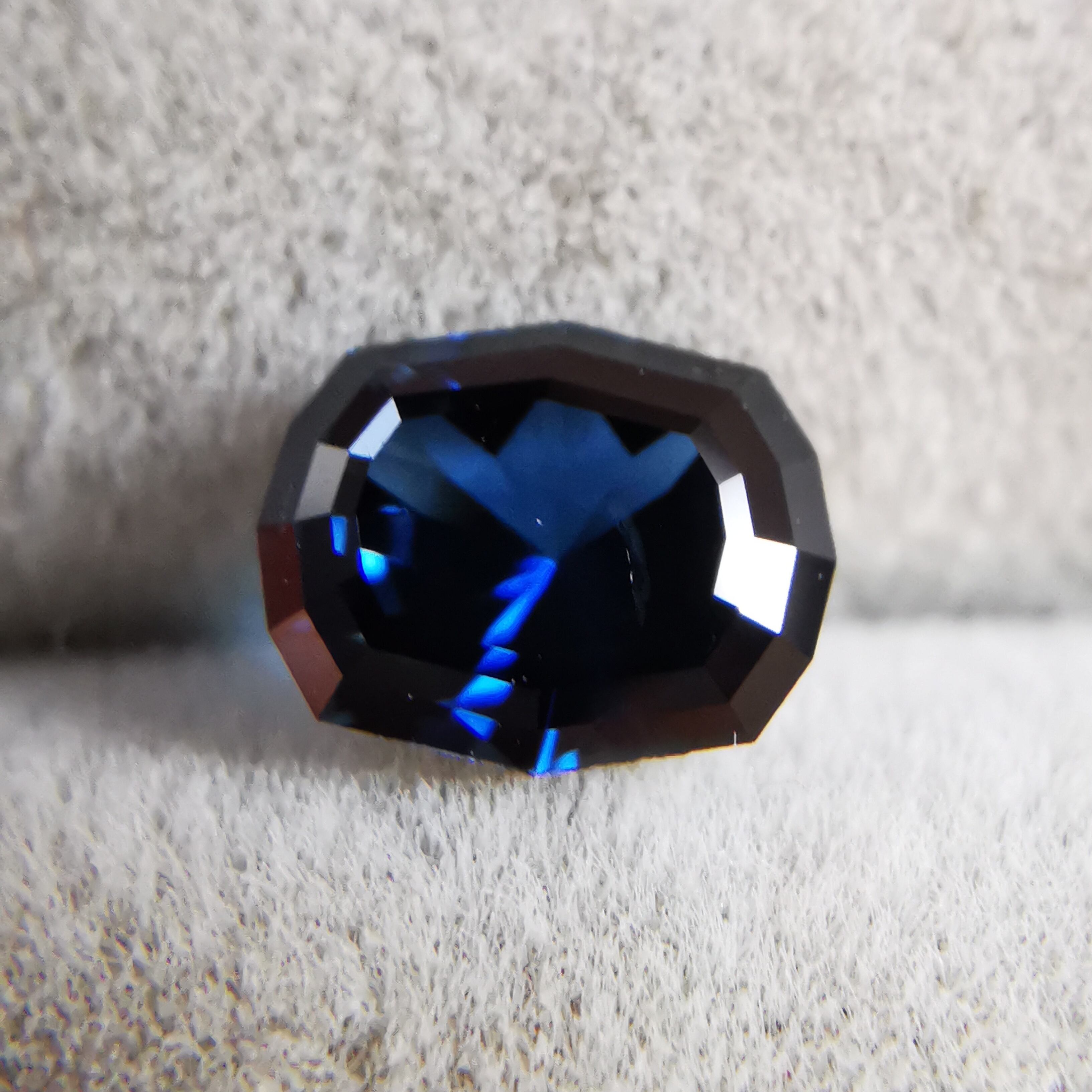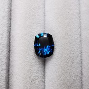 暗い石の中から、鮮やかなブルーのファイアが強く輝きます。