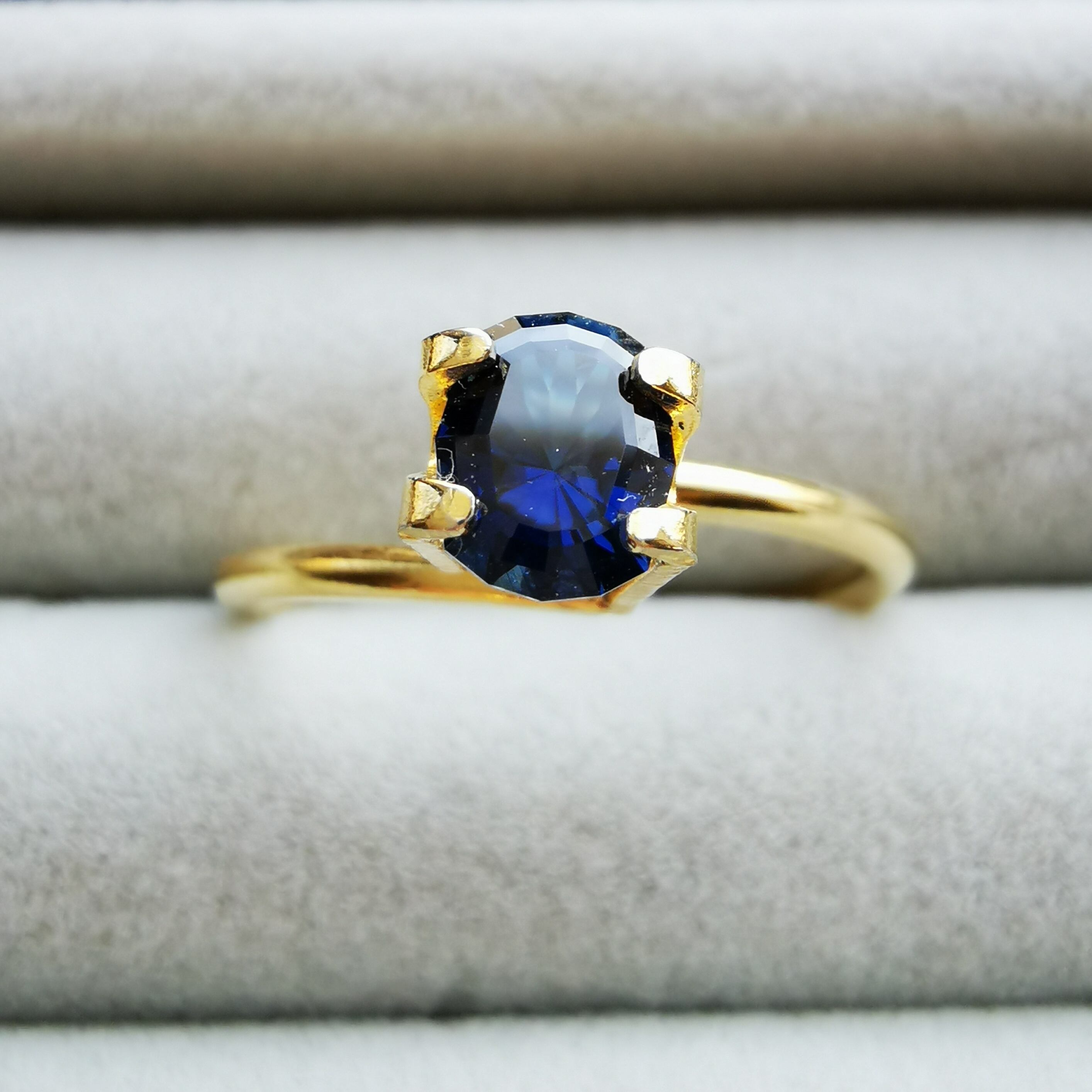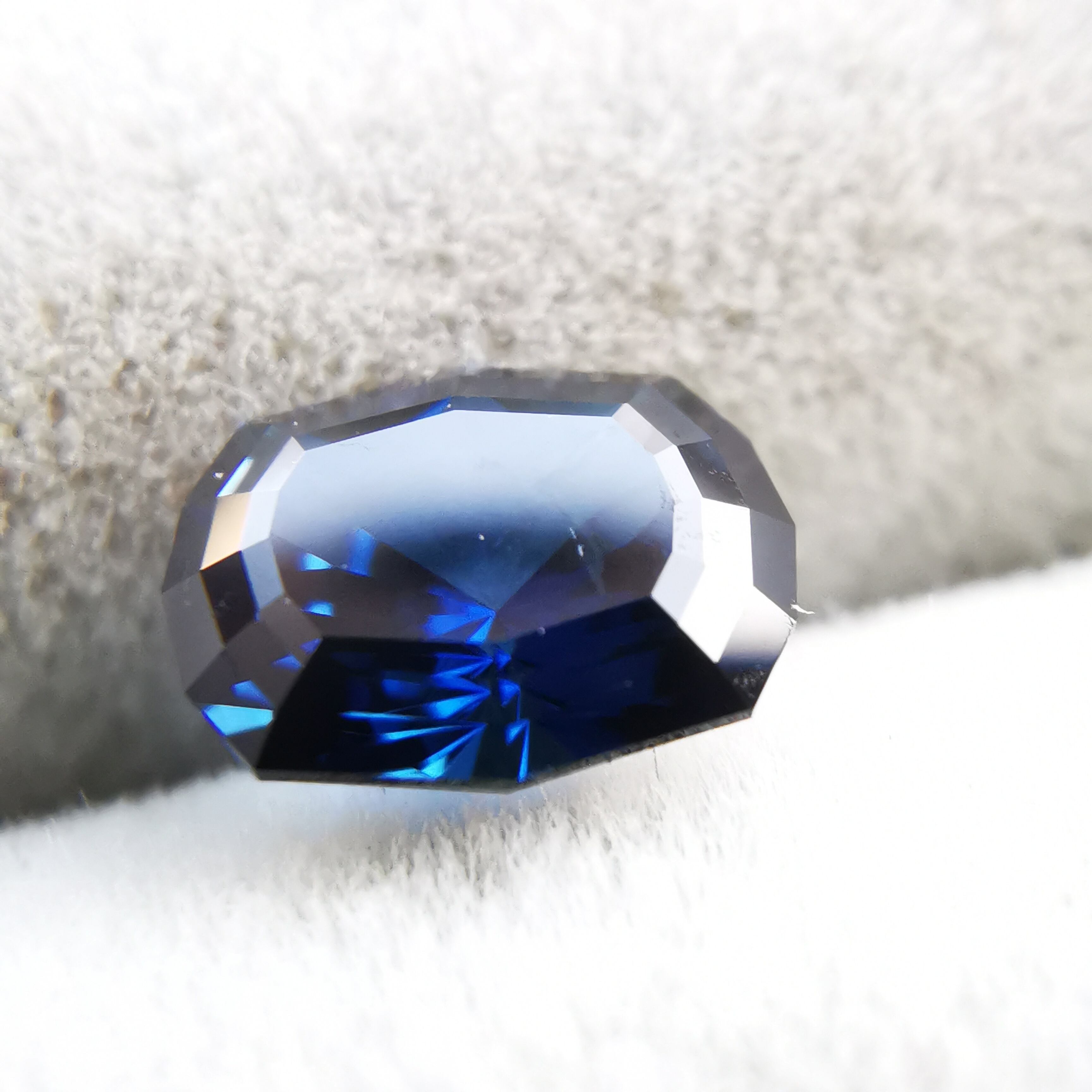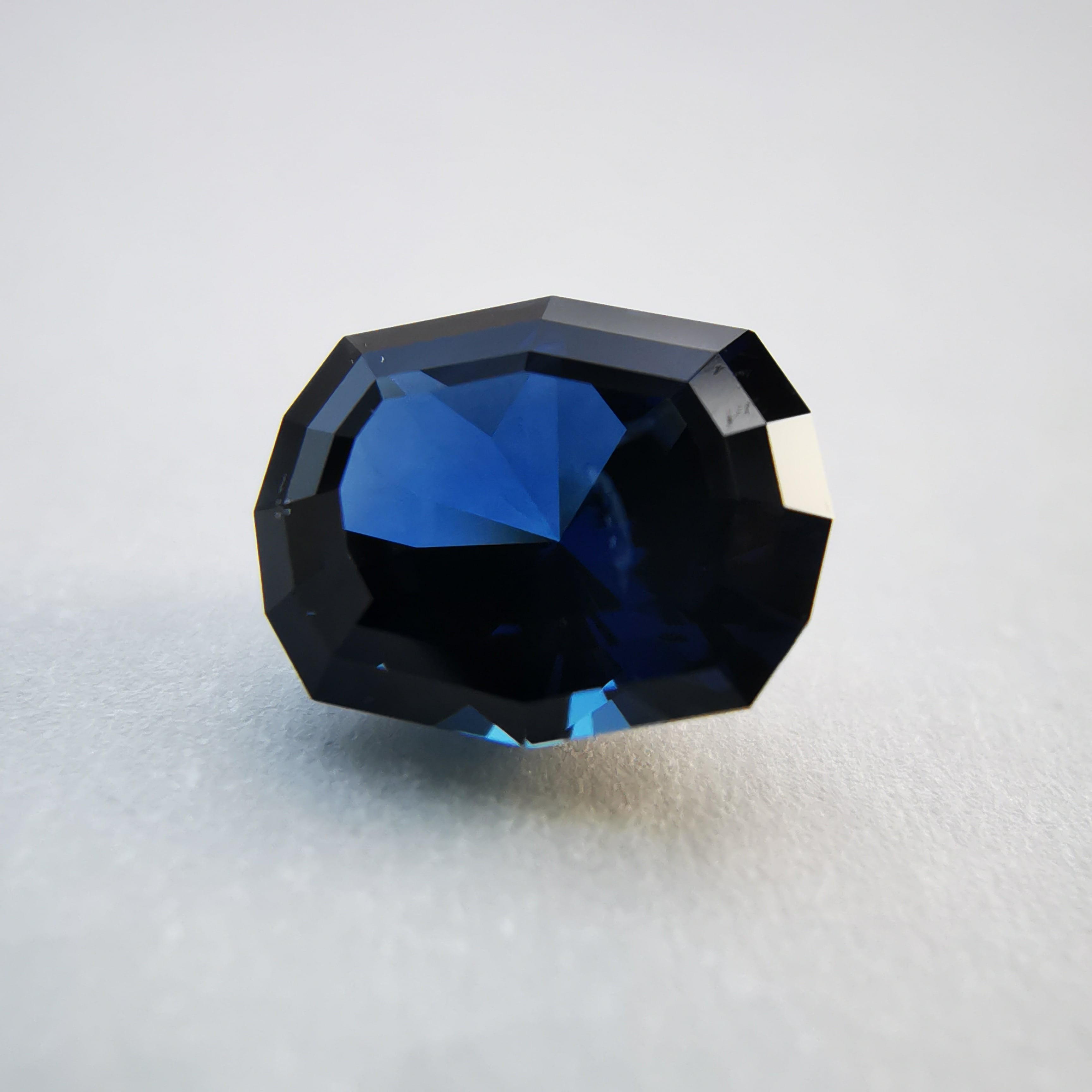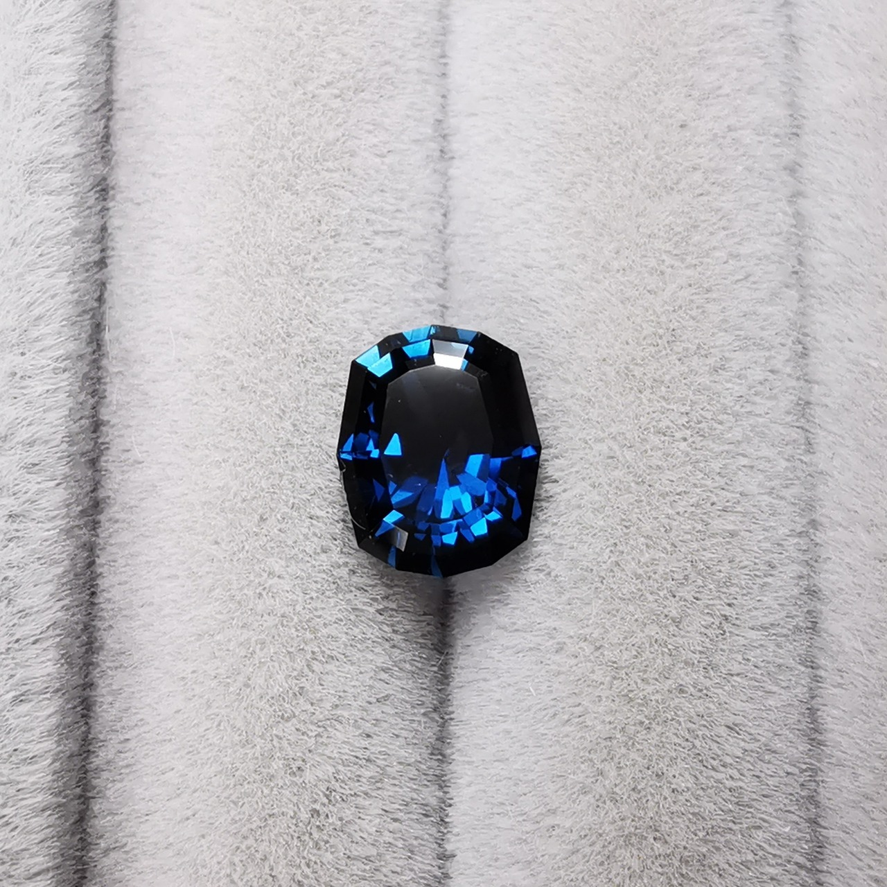 暗い石の中から、鮮やかなブルーのファイアが強く輝きます。