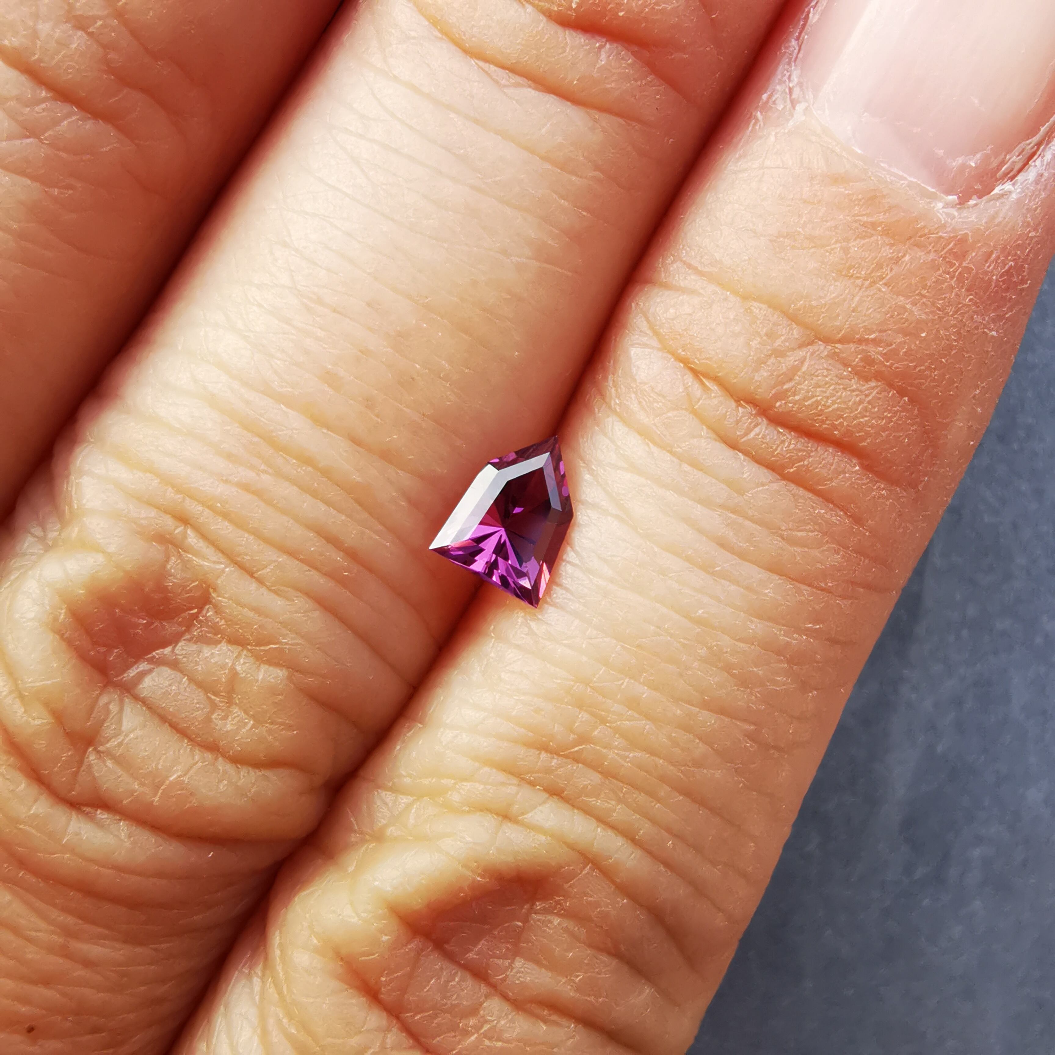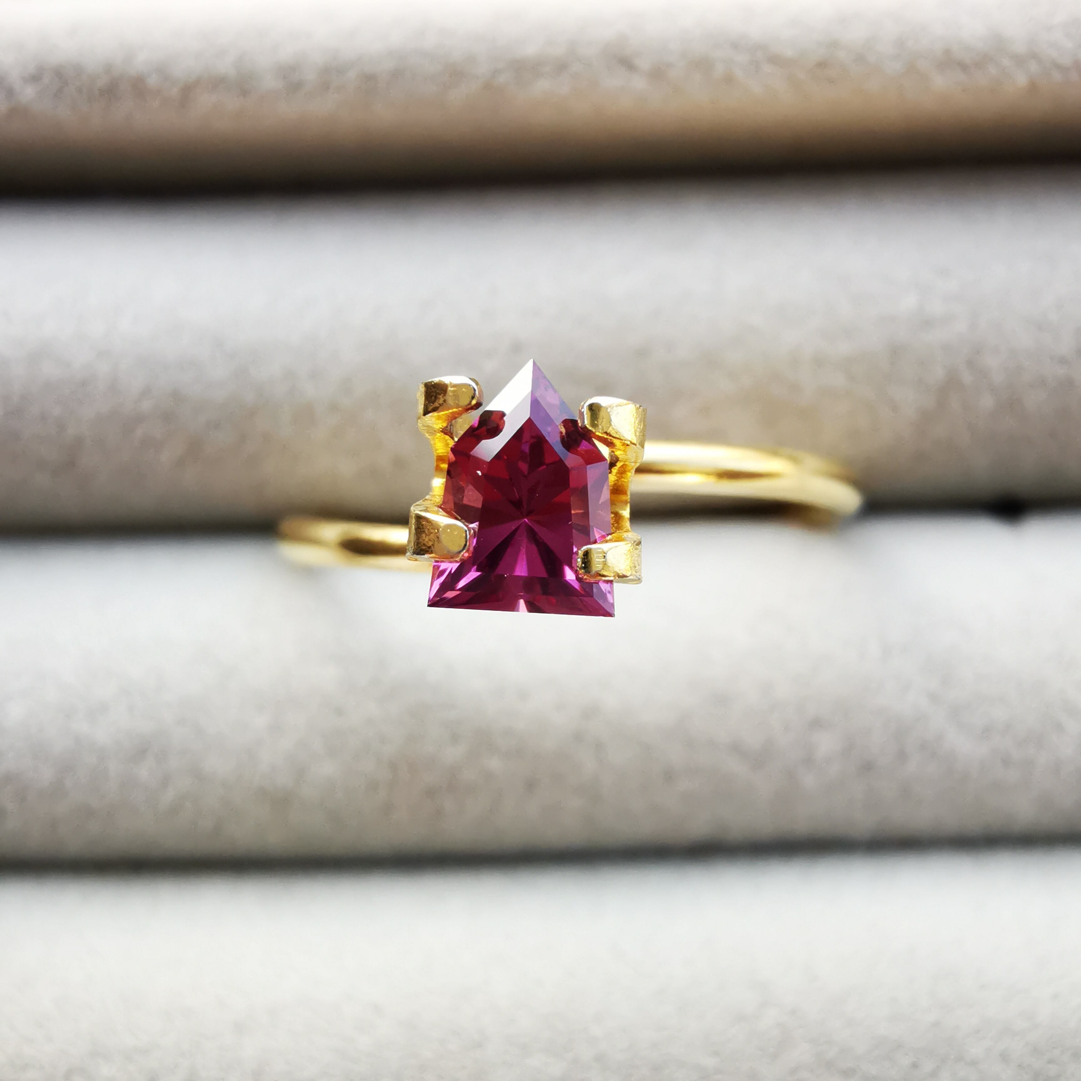ロードライトガーネットのようなカラーですが、ガーネットよりもきらめきが強く、ファイヤが鋭い印象です。