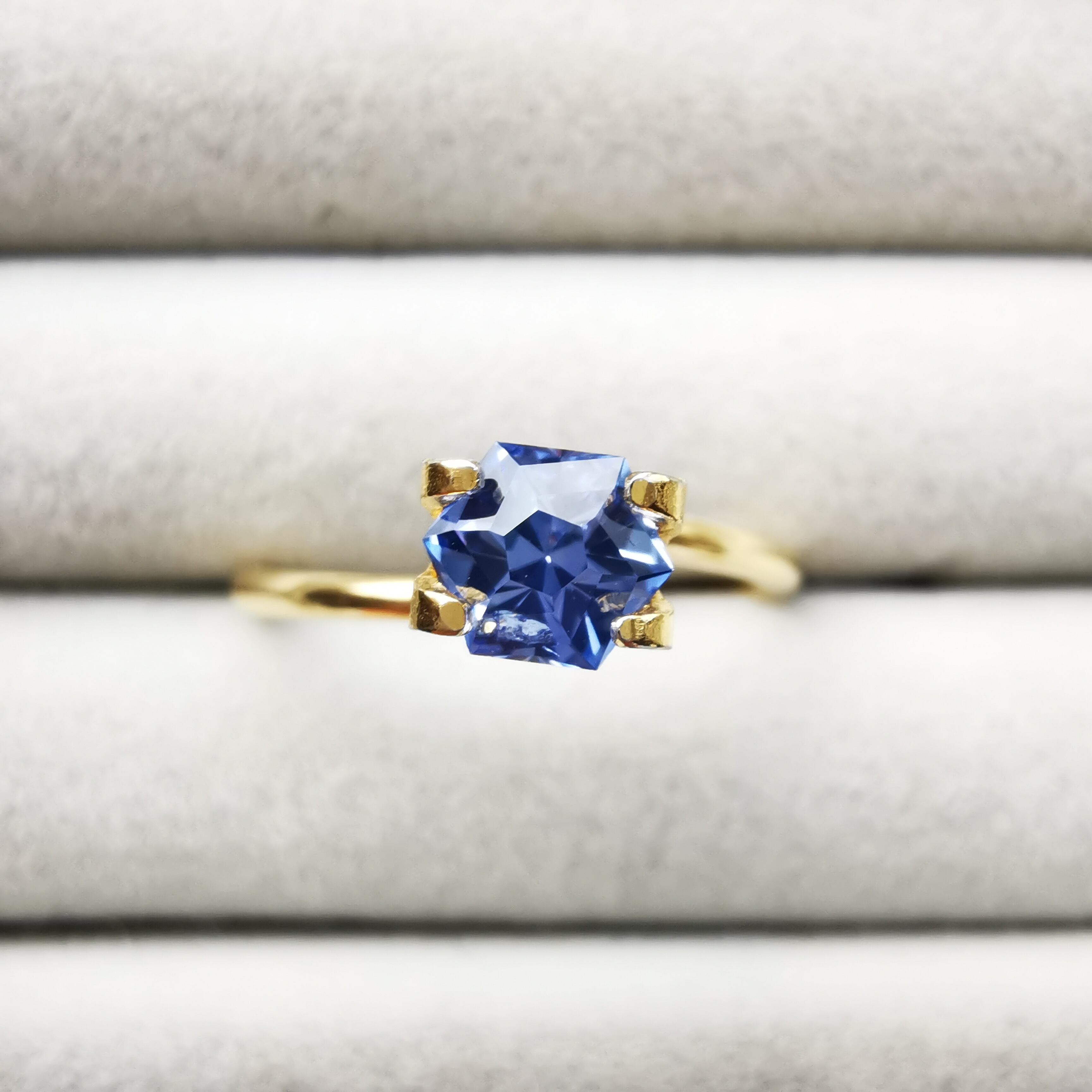 暗すぎず、淡過ぎず、しっかりと色の乗った明るいブルーが美しいサファイアです。