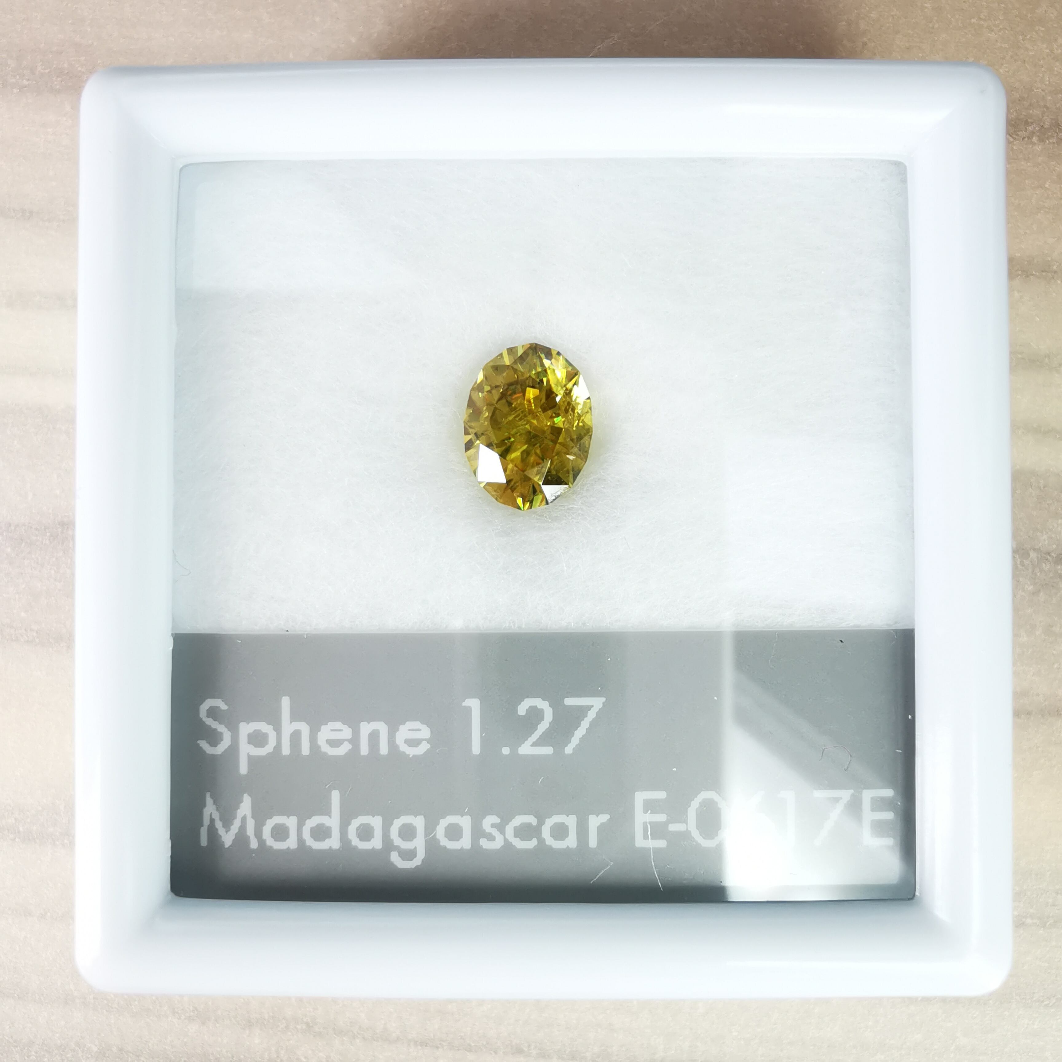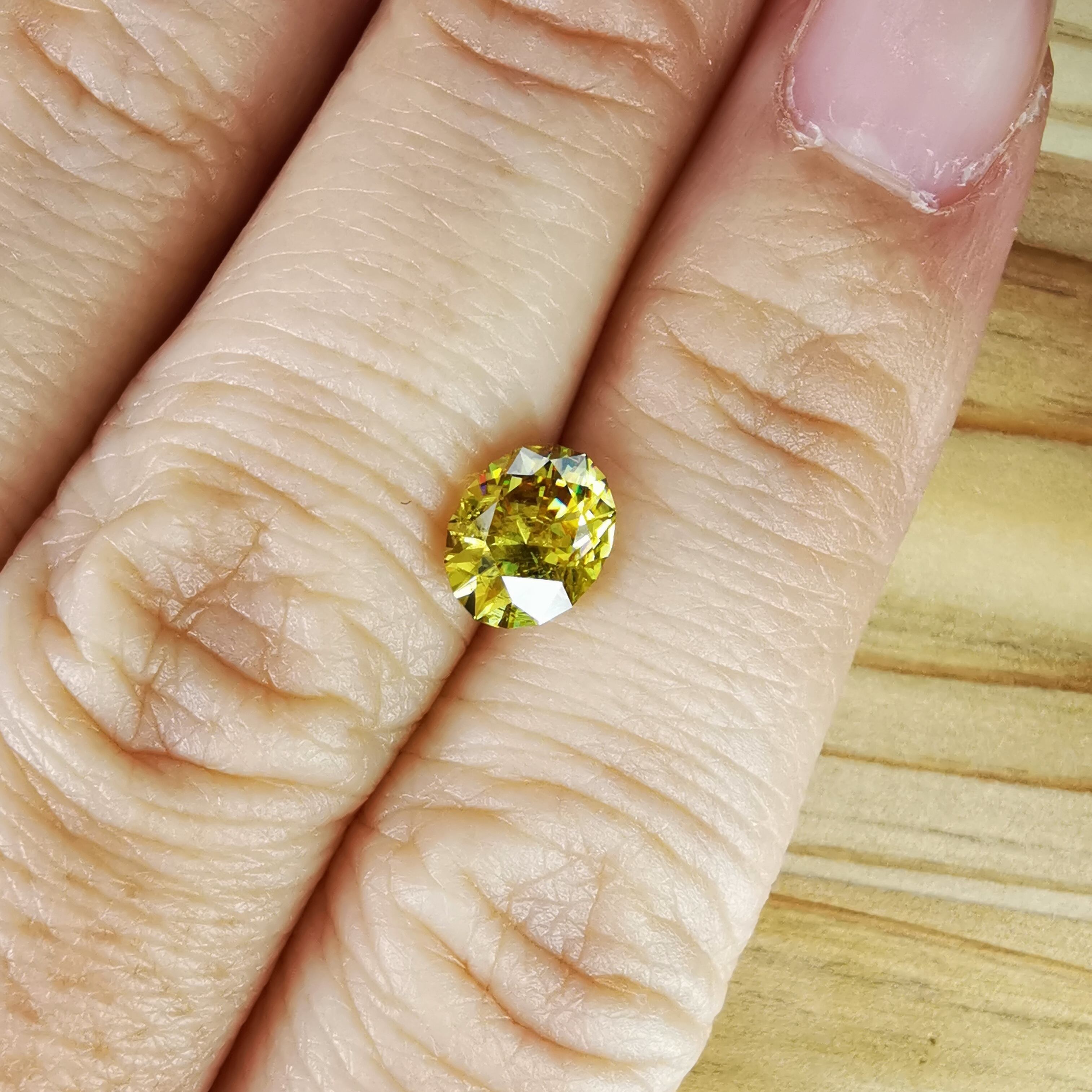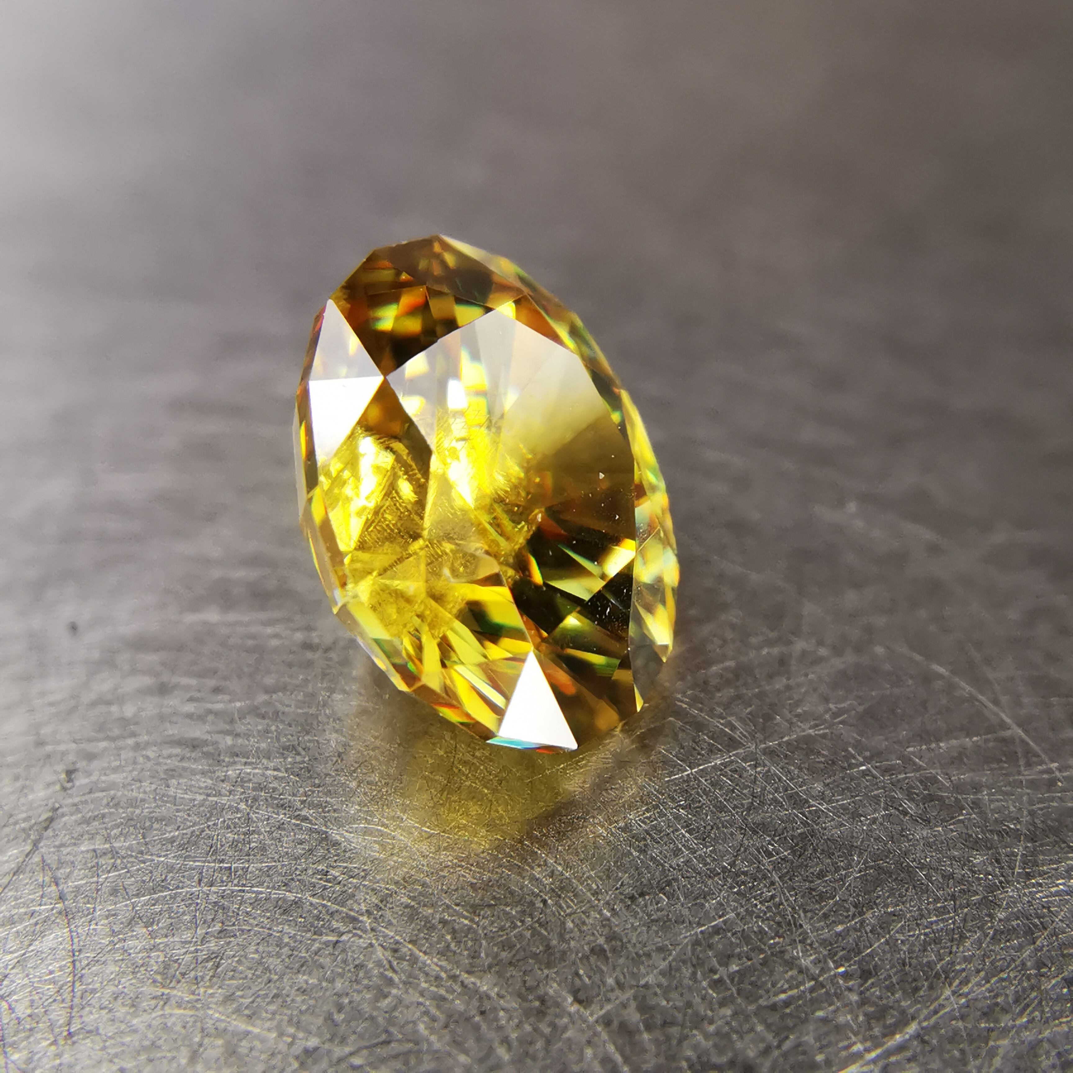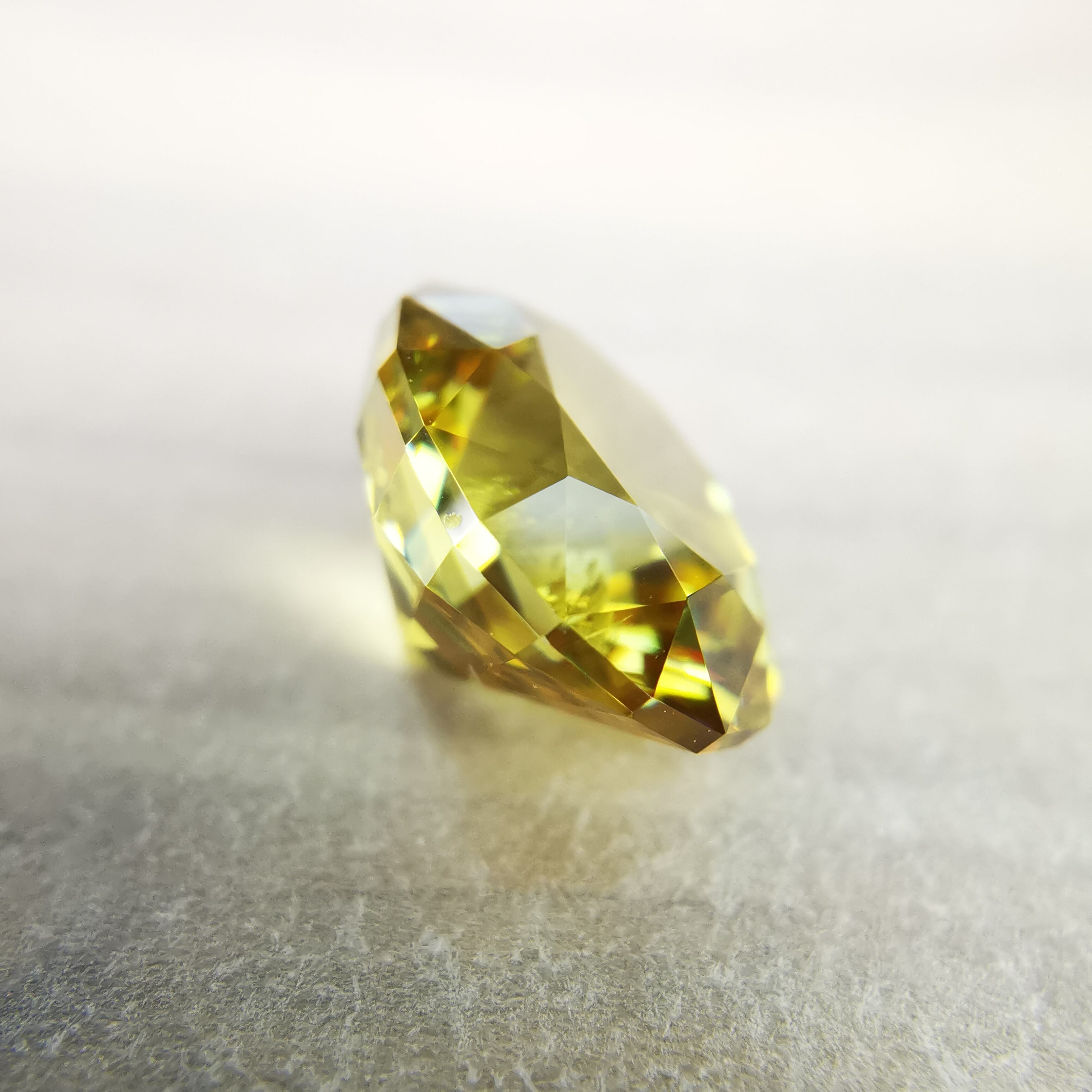 中心にあるもやもやとした内包物を取り巻くように、虹色のファイアが非常に強く輝きます。
