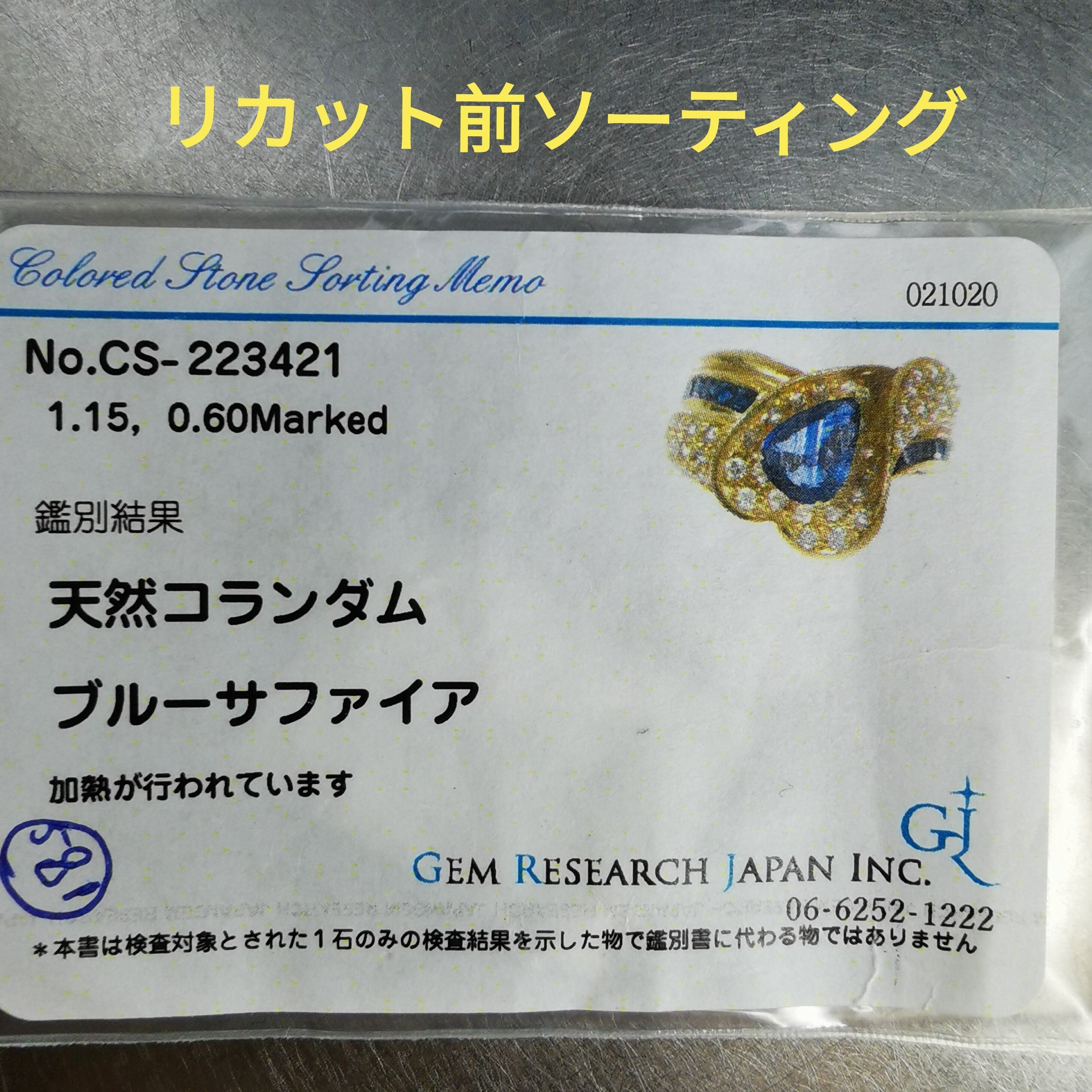 参考のため、リカット前のソーティングを載せましたが、こちらは商品にはお付けしません。