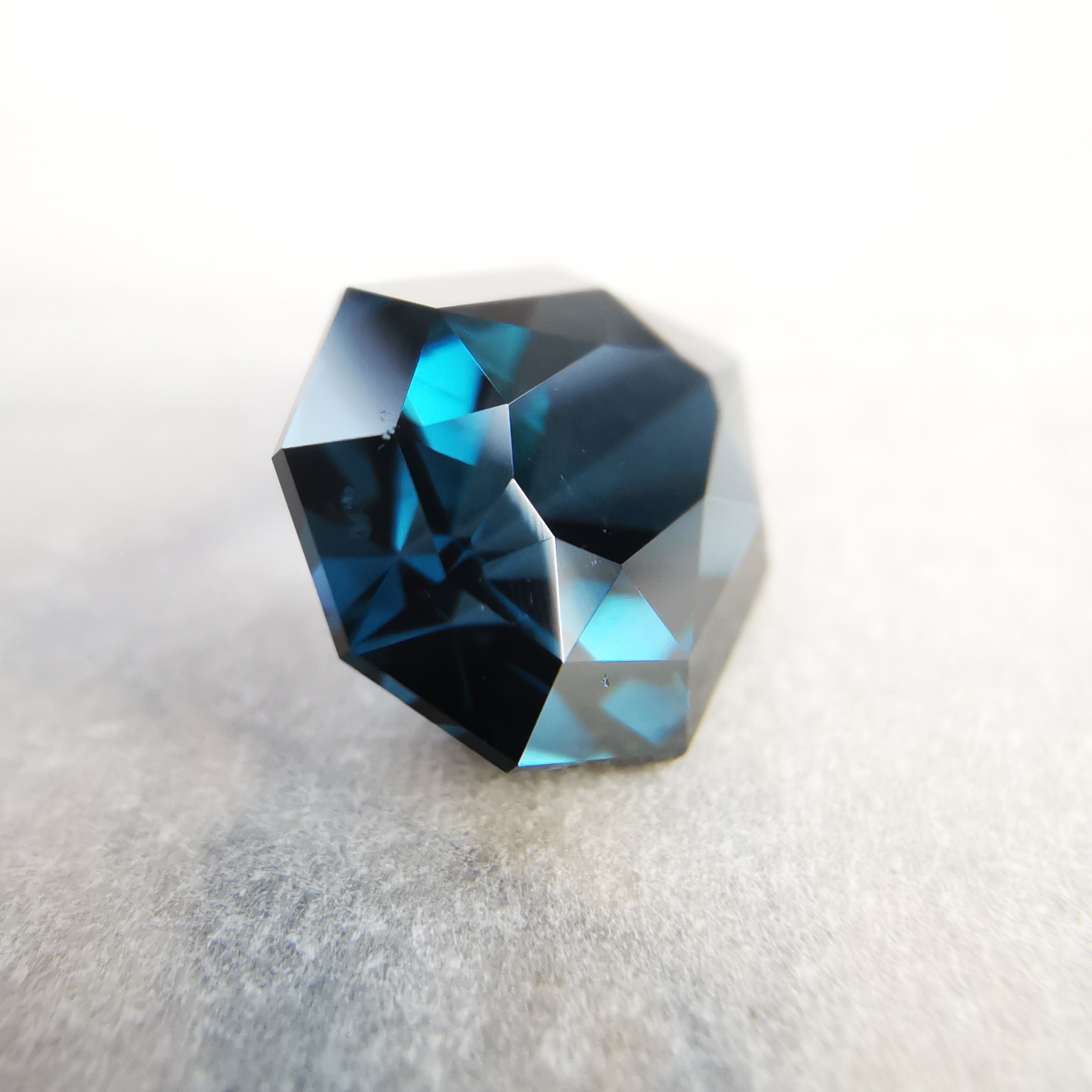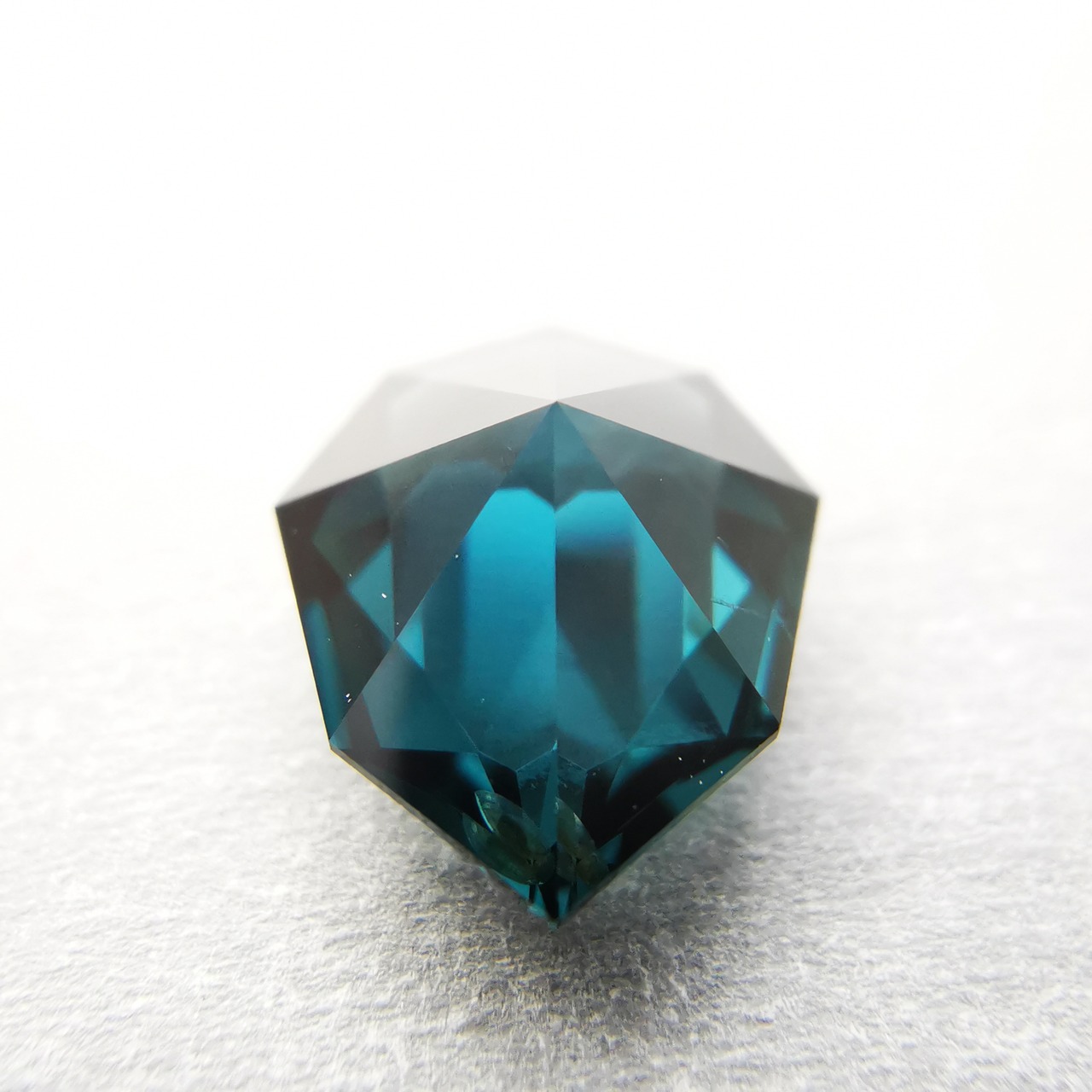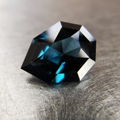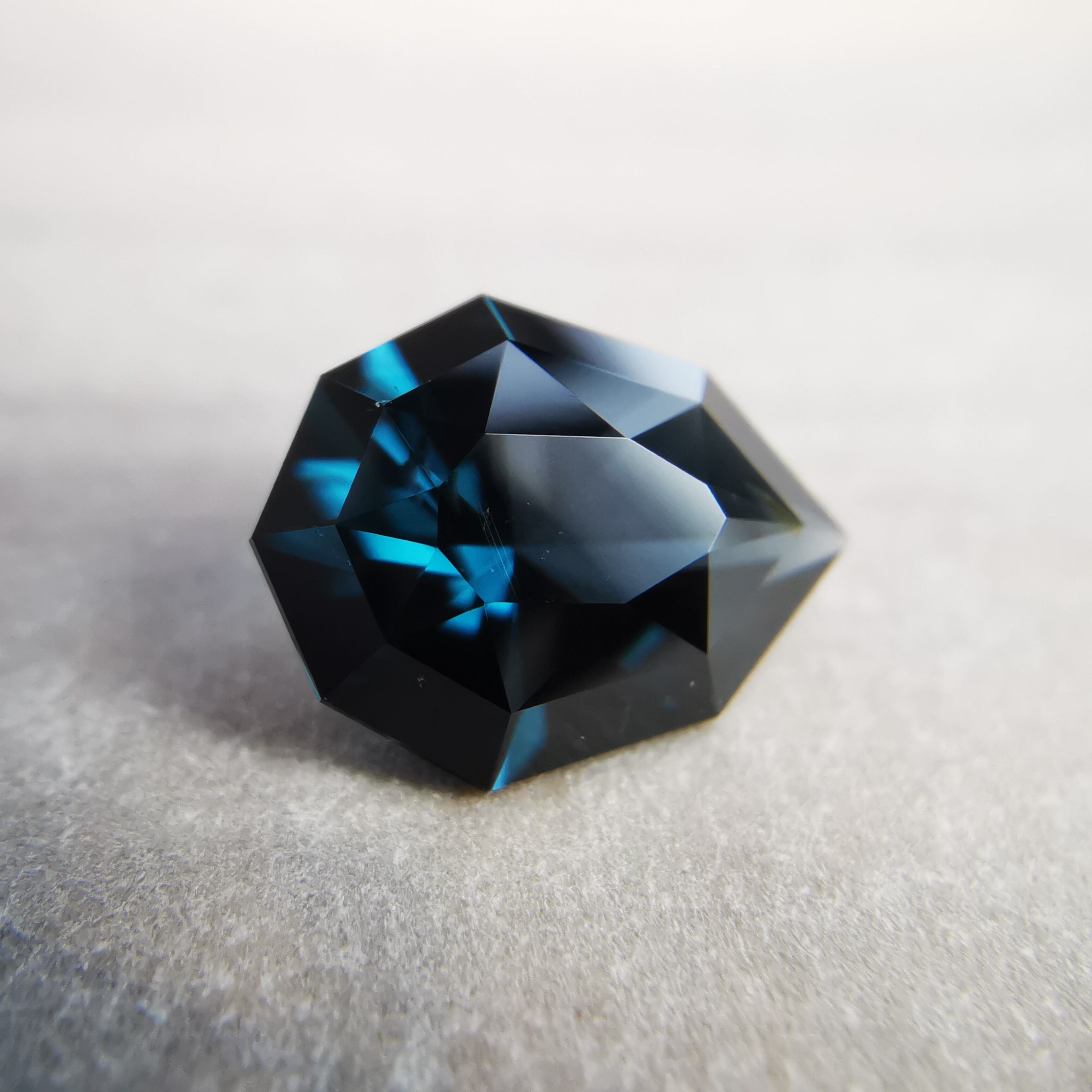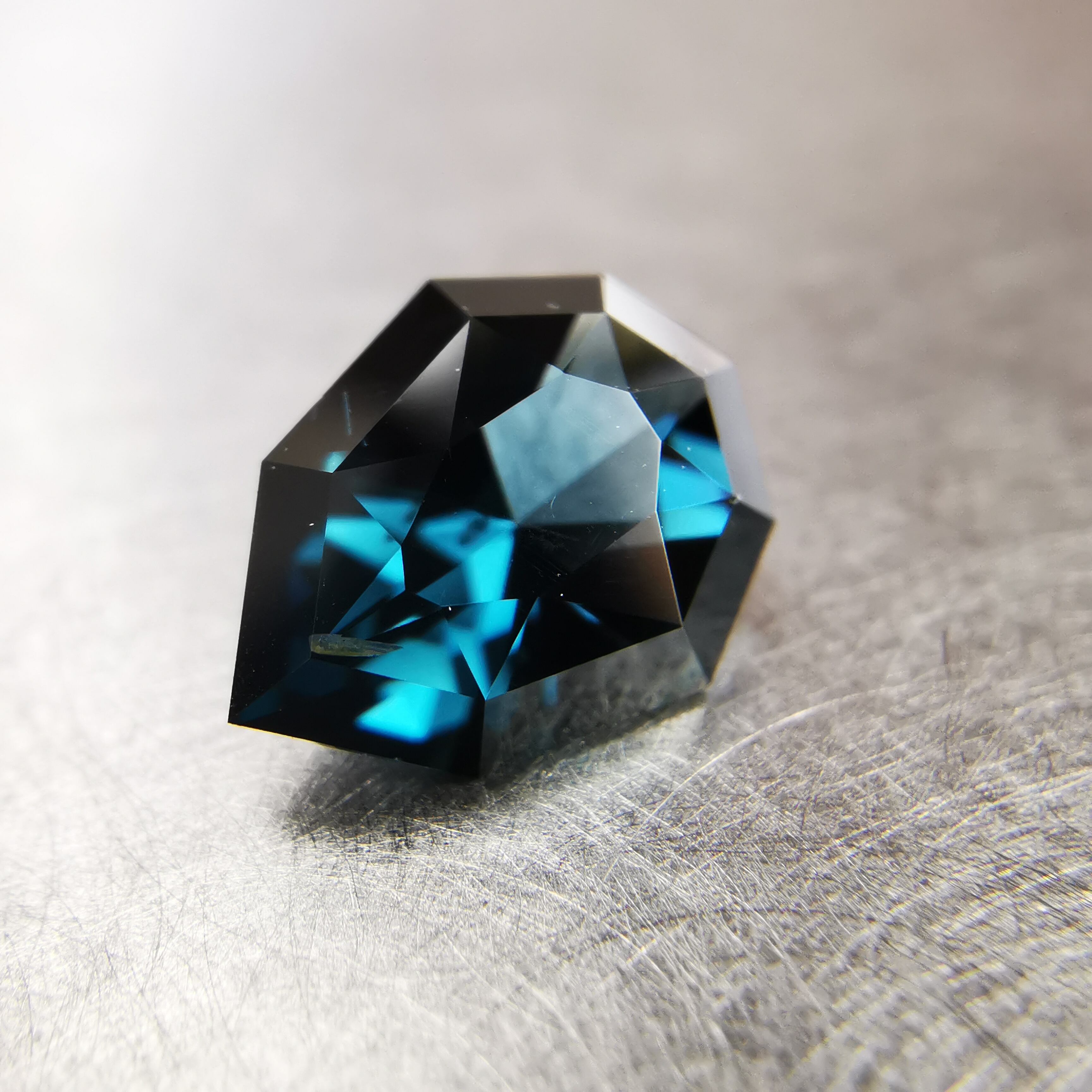 夜の空の色を思わせるような、濃いブルーグリーンが、暗い石の中から鋭く輝きます。