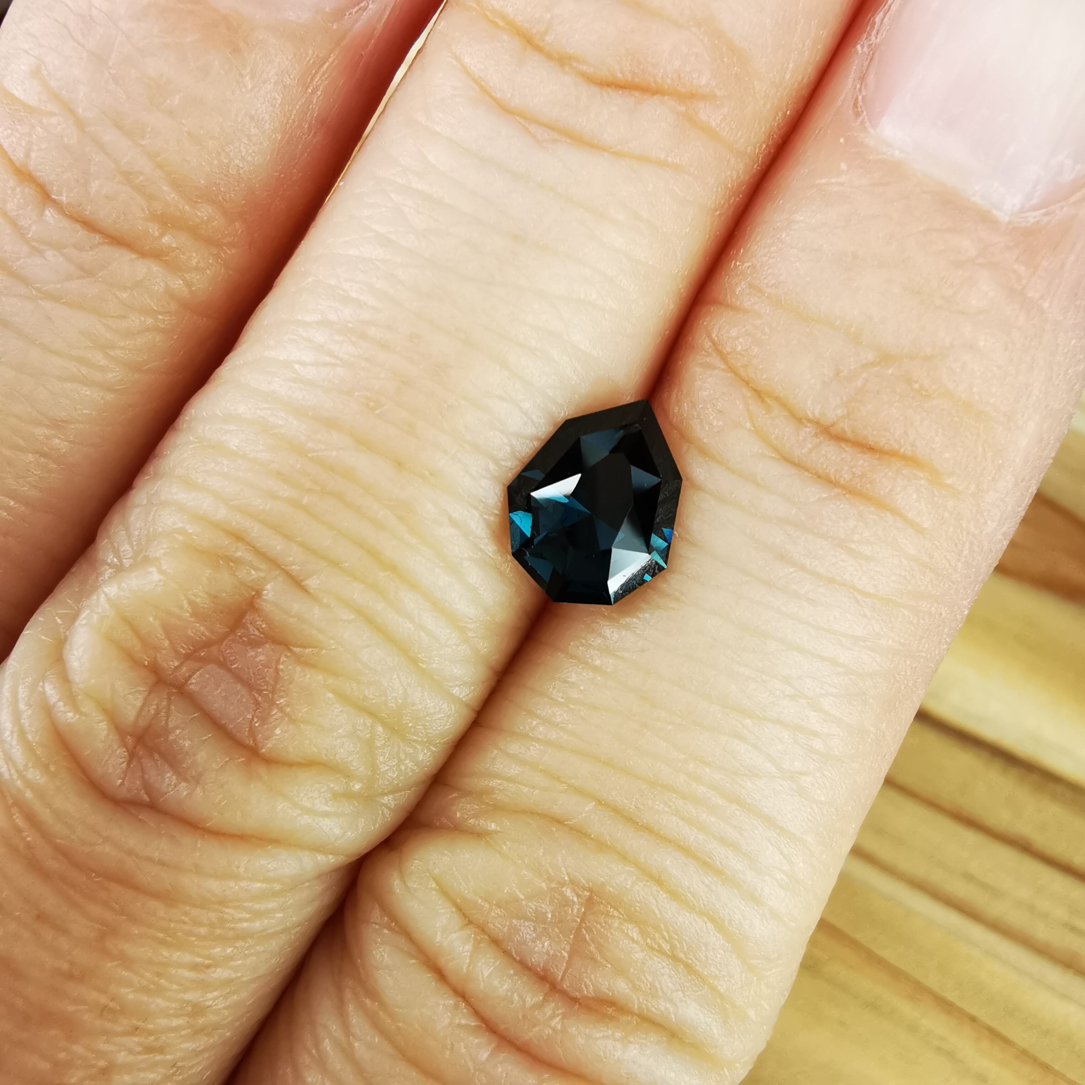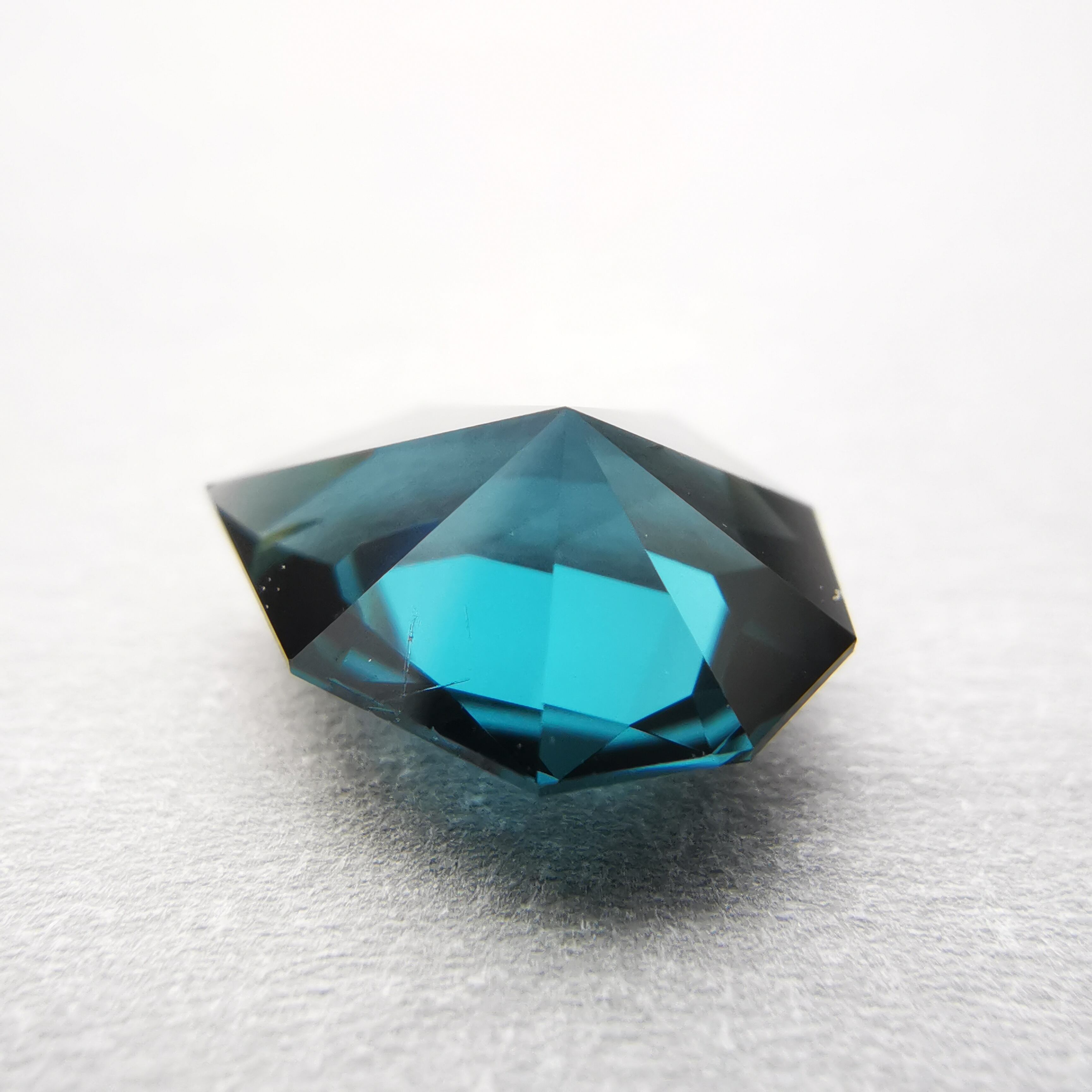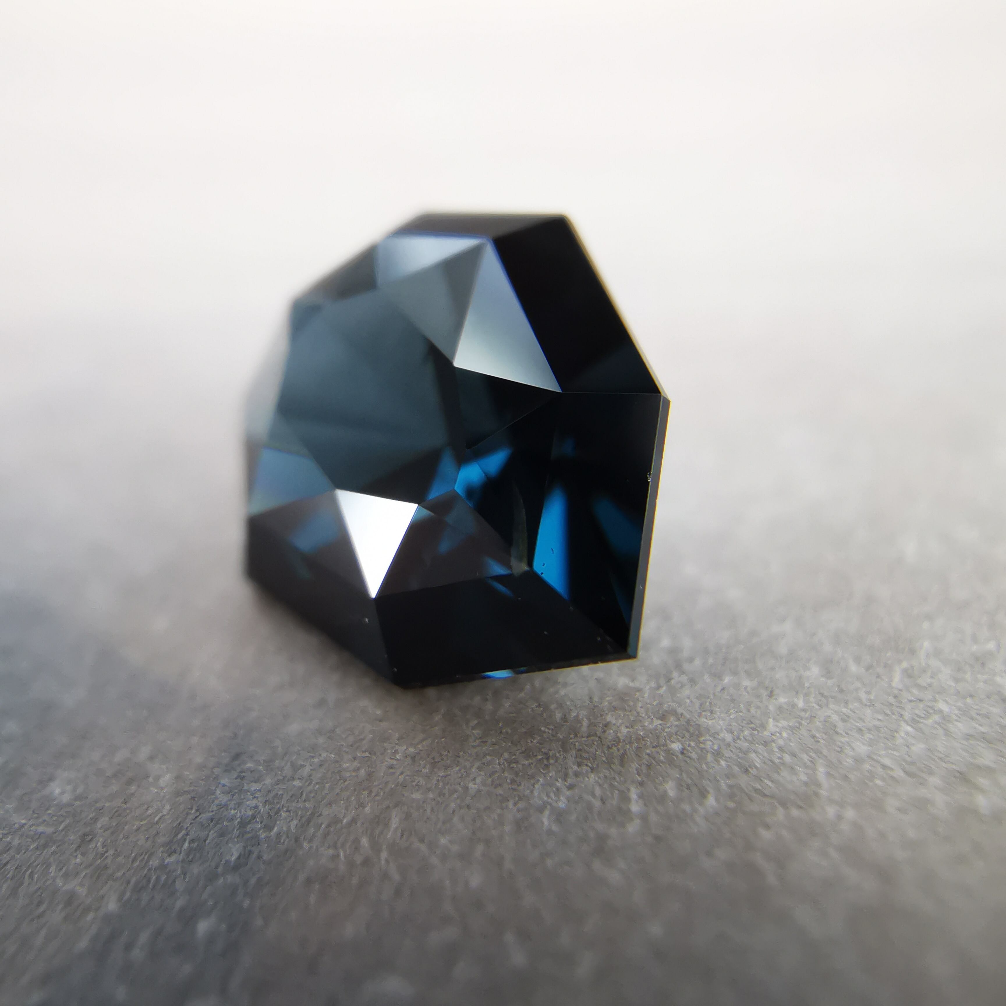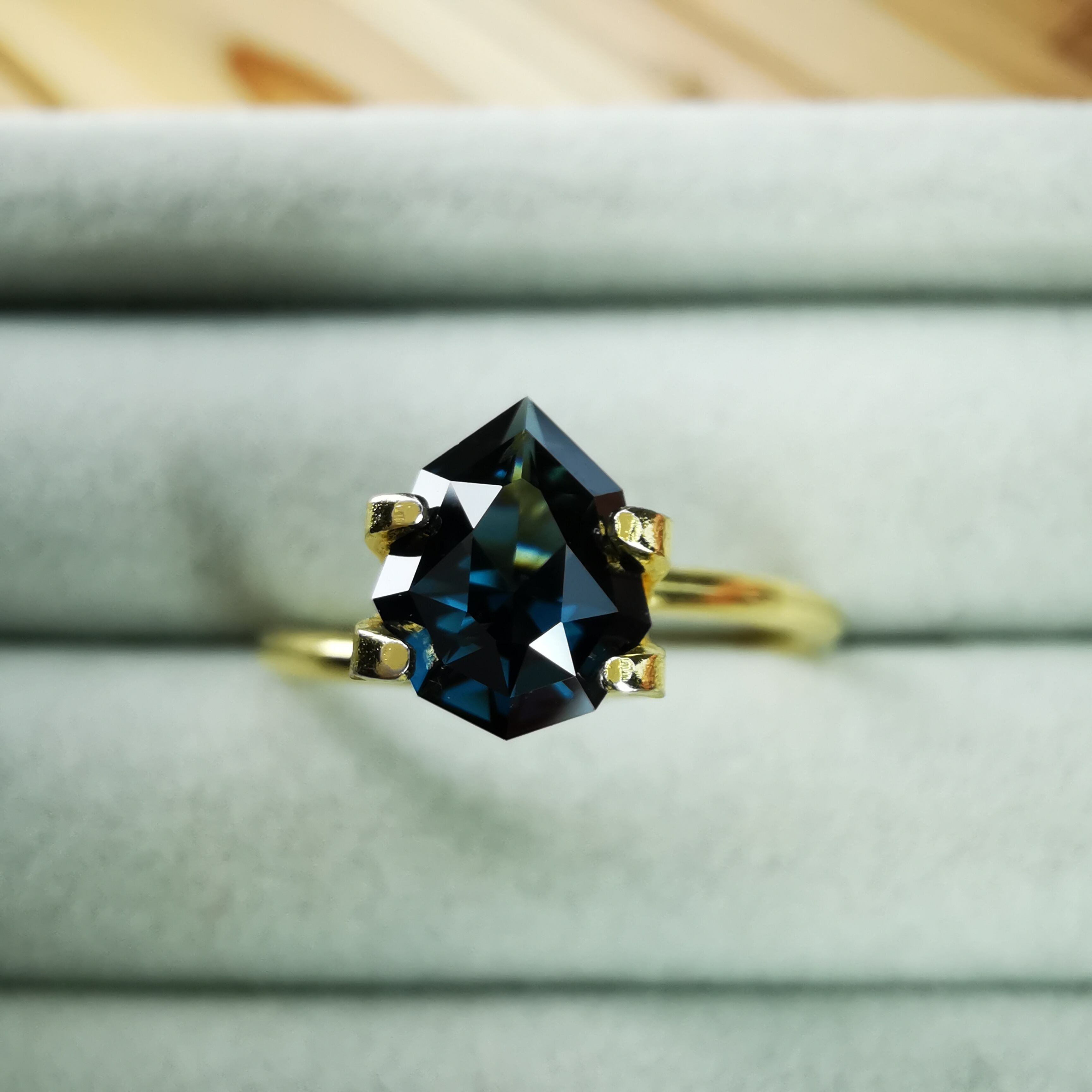 夜の空の色を思わせるような、濃いブルーグリーンが、暗い石の中から鋭く輝きます。