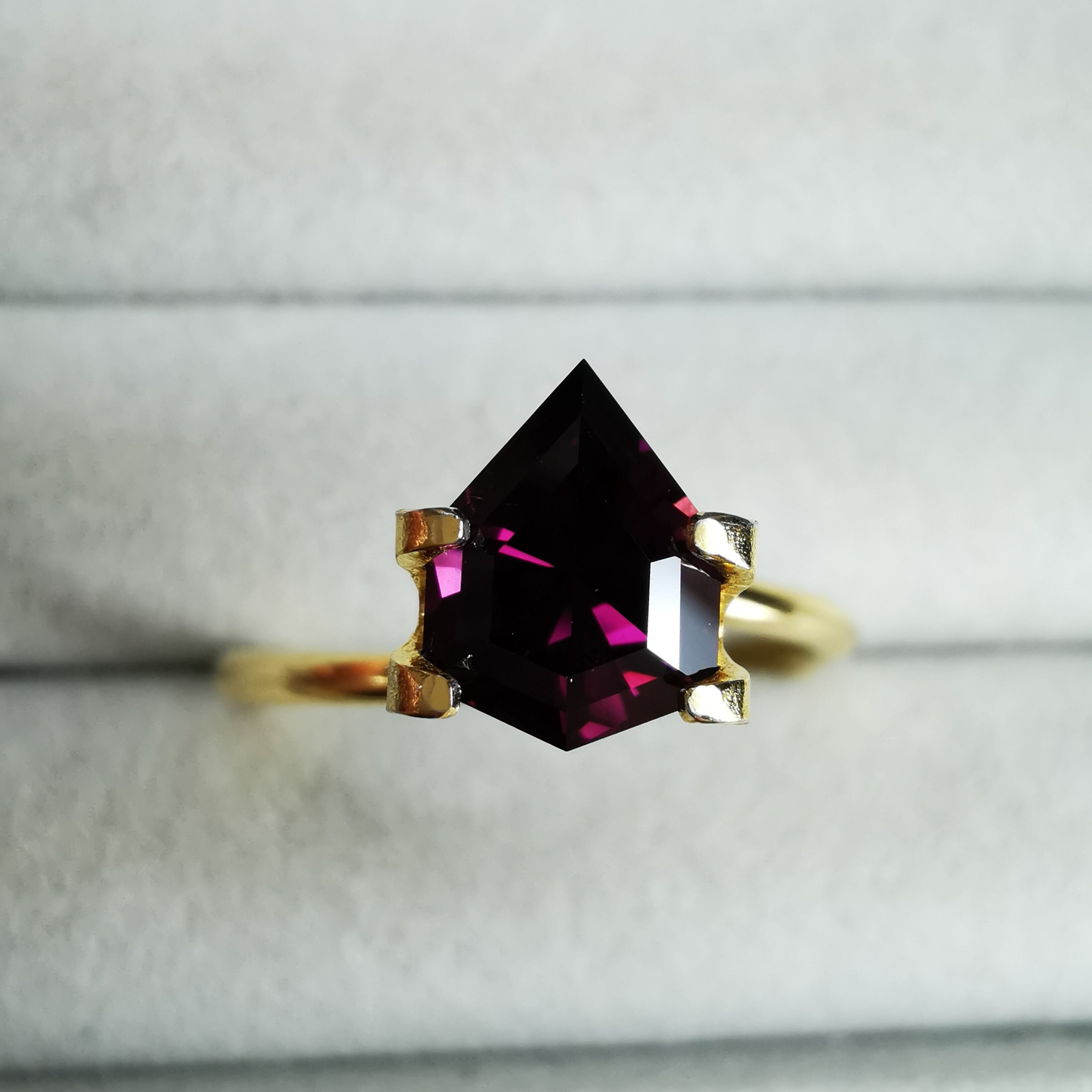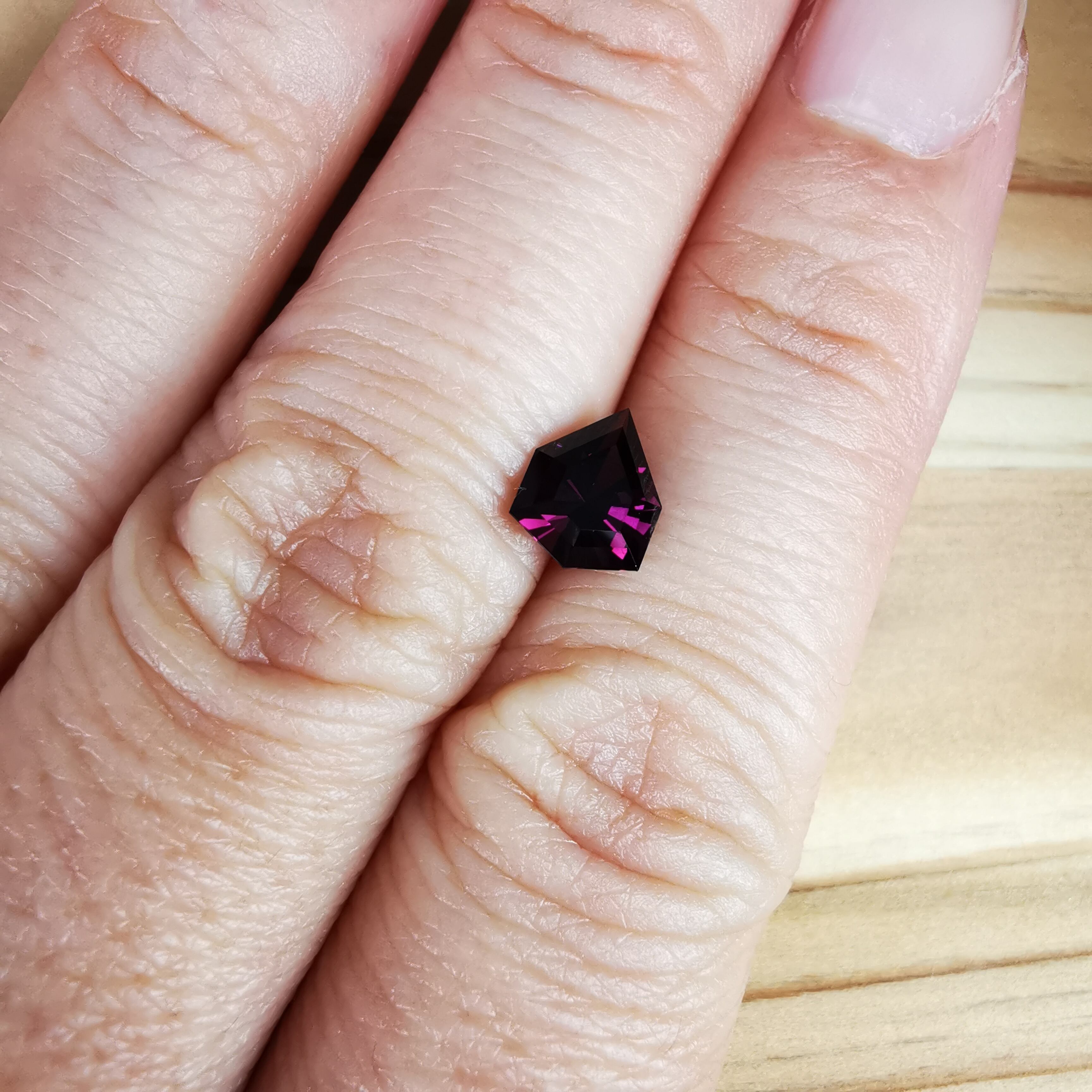 暗い石の中から鮮やかなピンクレッドの輝きがあふれます。