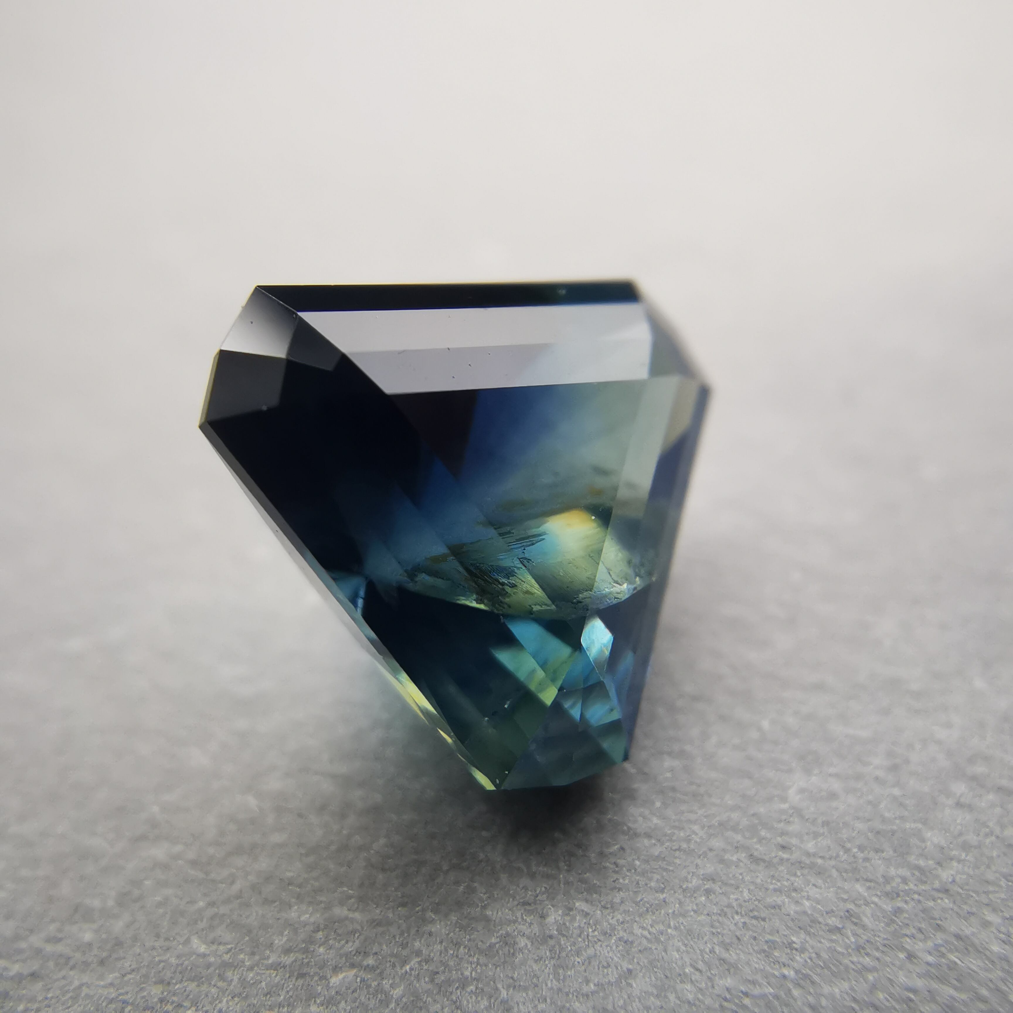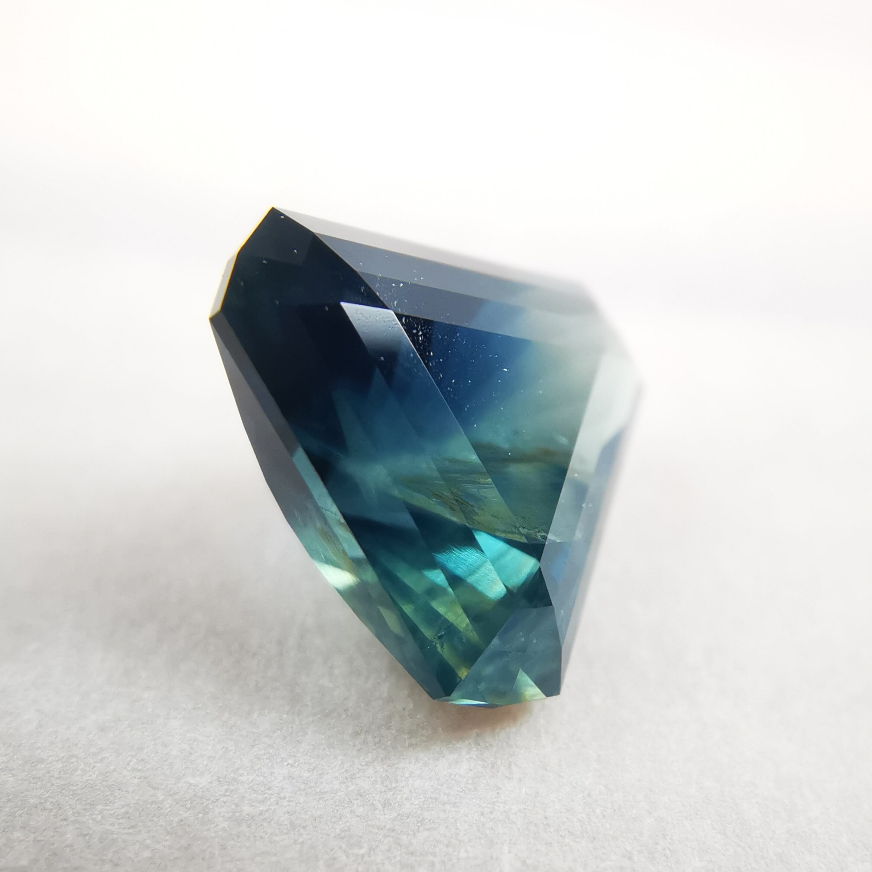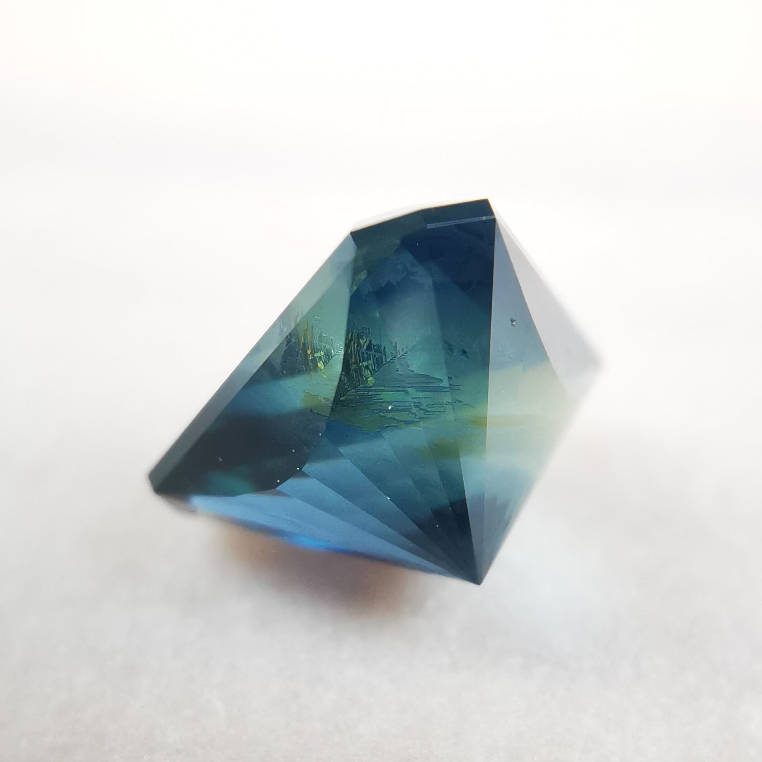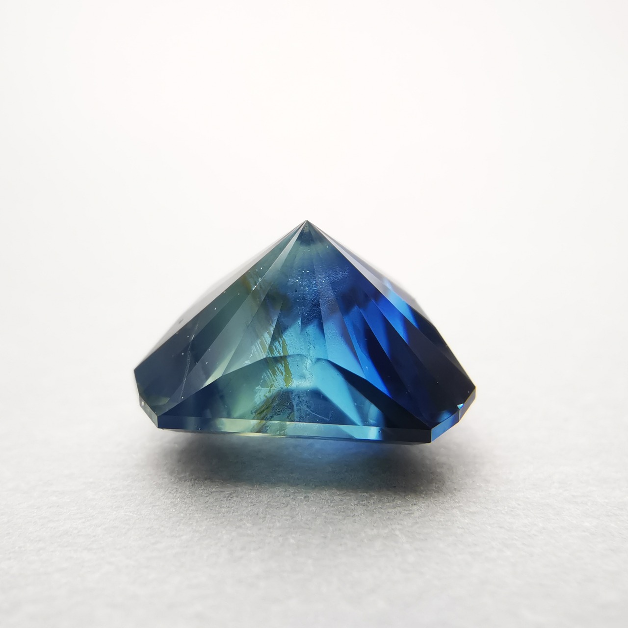 濃いブルーの部分、薄いイエローの部分があるバイカラーで、見る角度により景色ががらりと変わります。