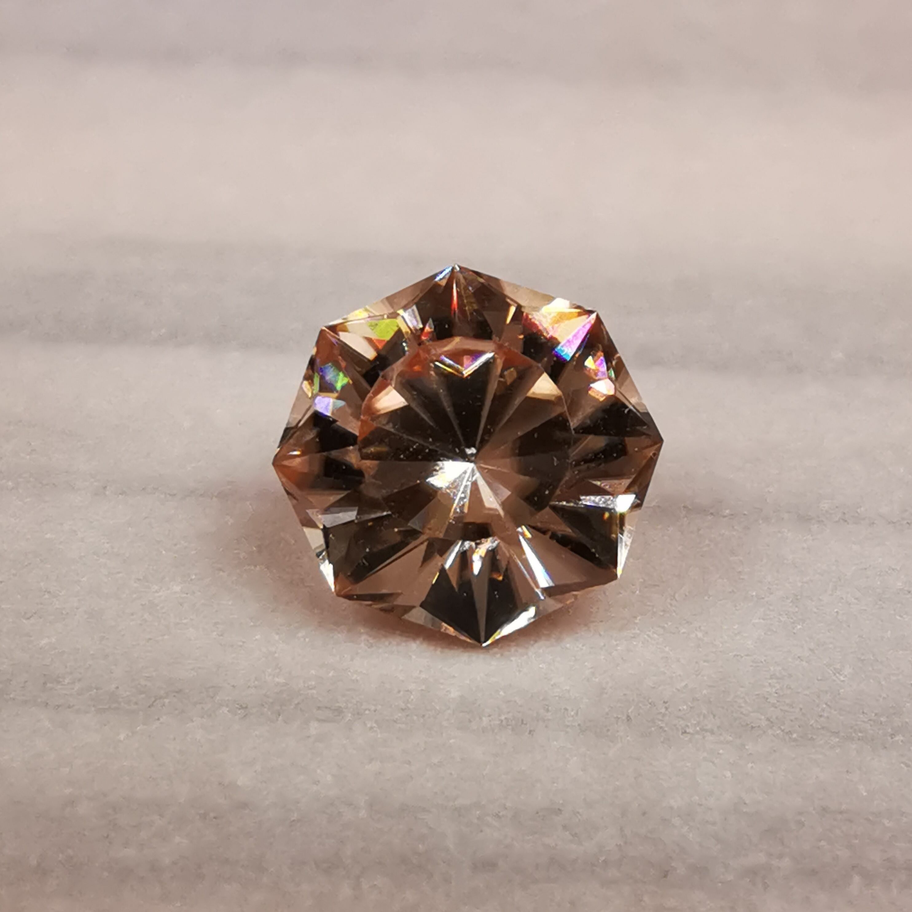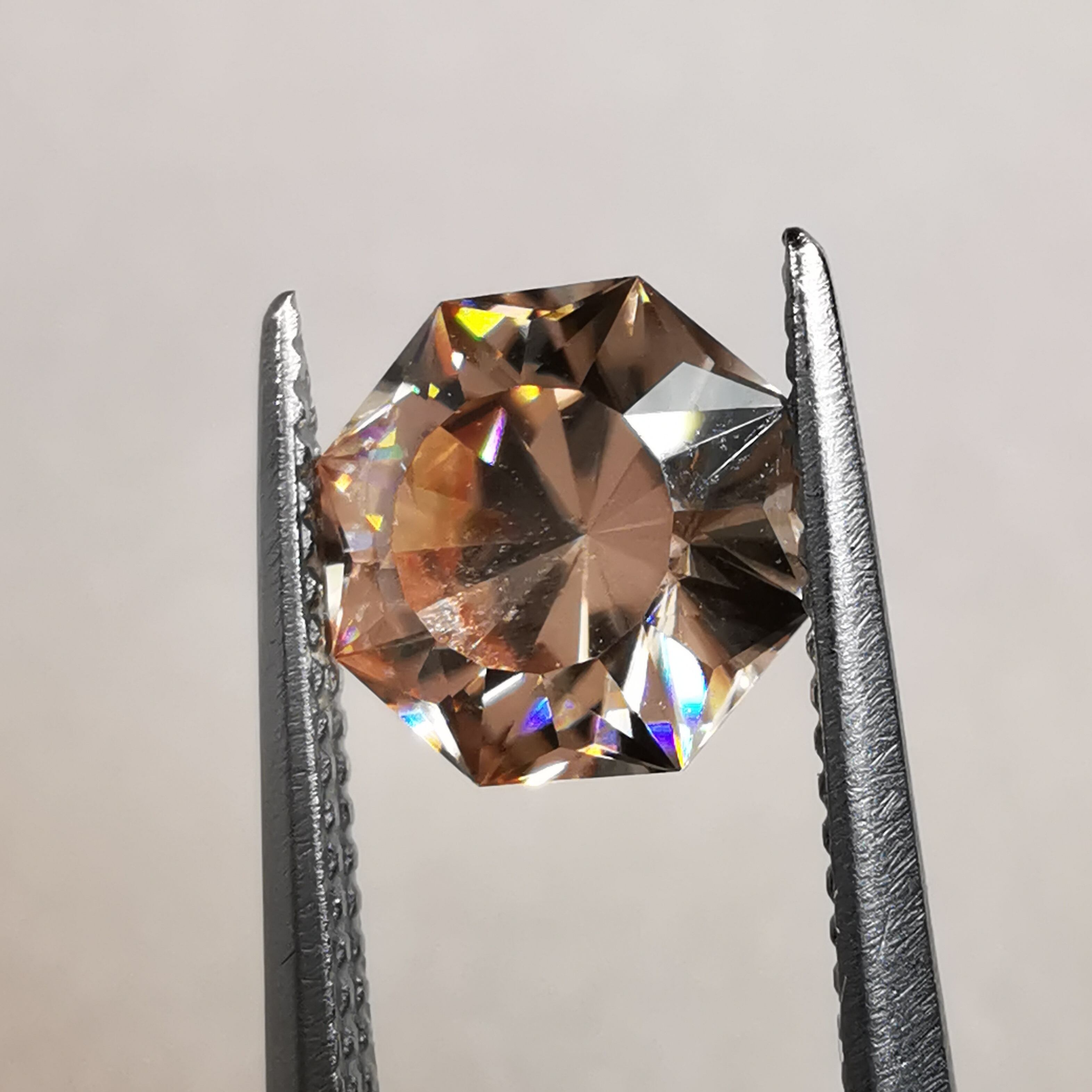 もちろんジルコンなので、照明によってはギラギラと虹色のファイアが強く輝きます。