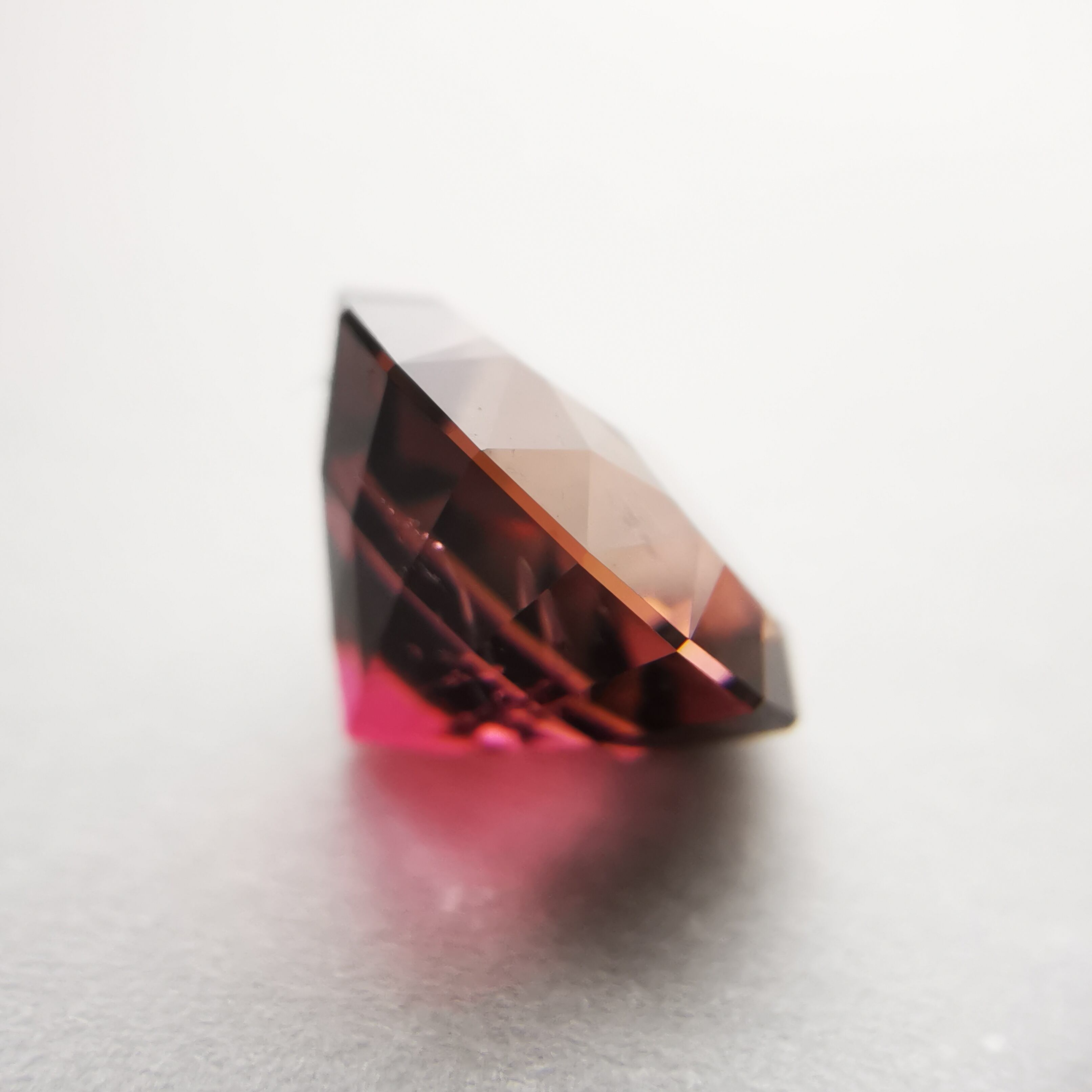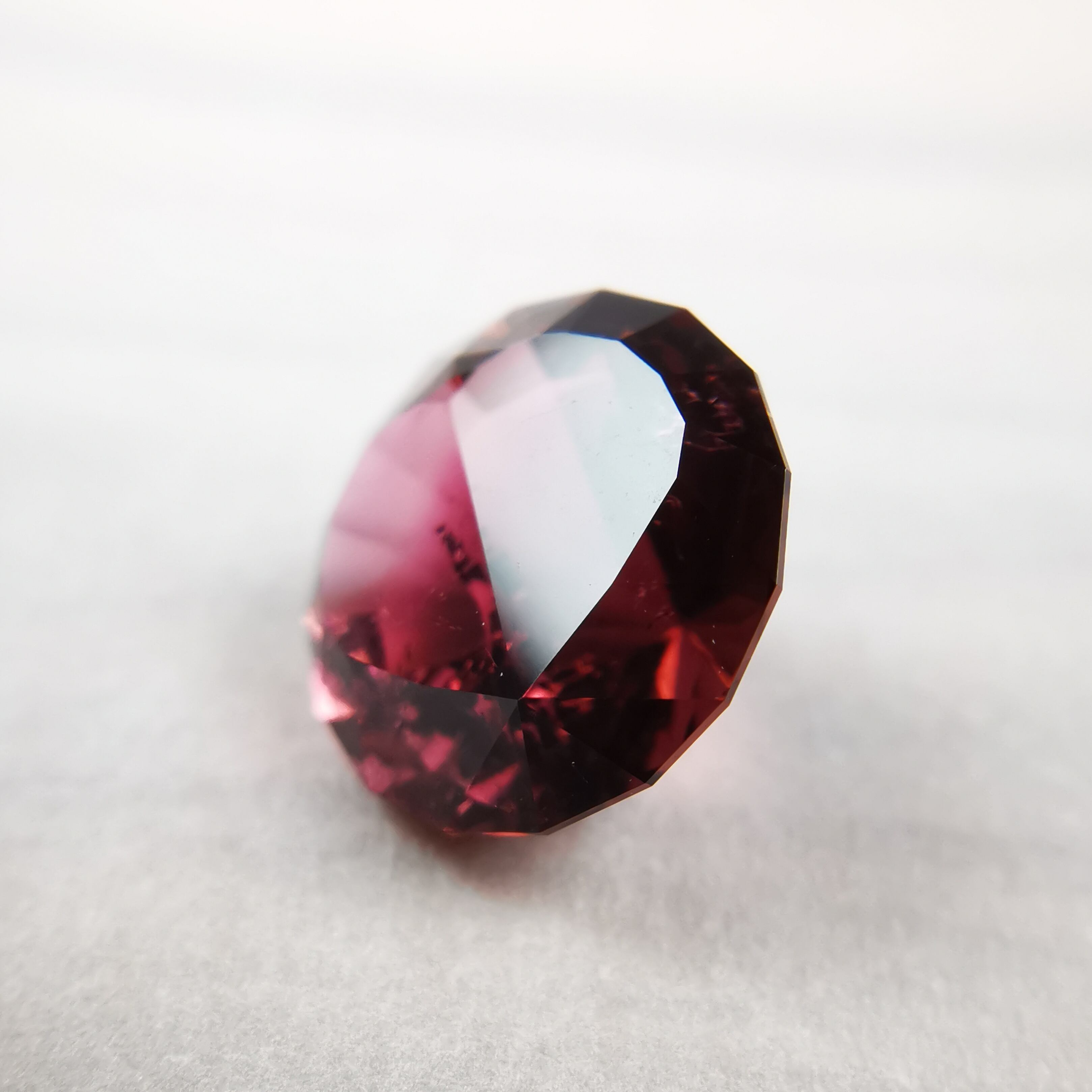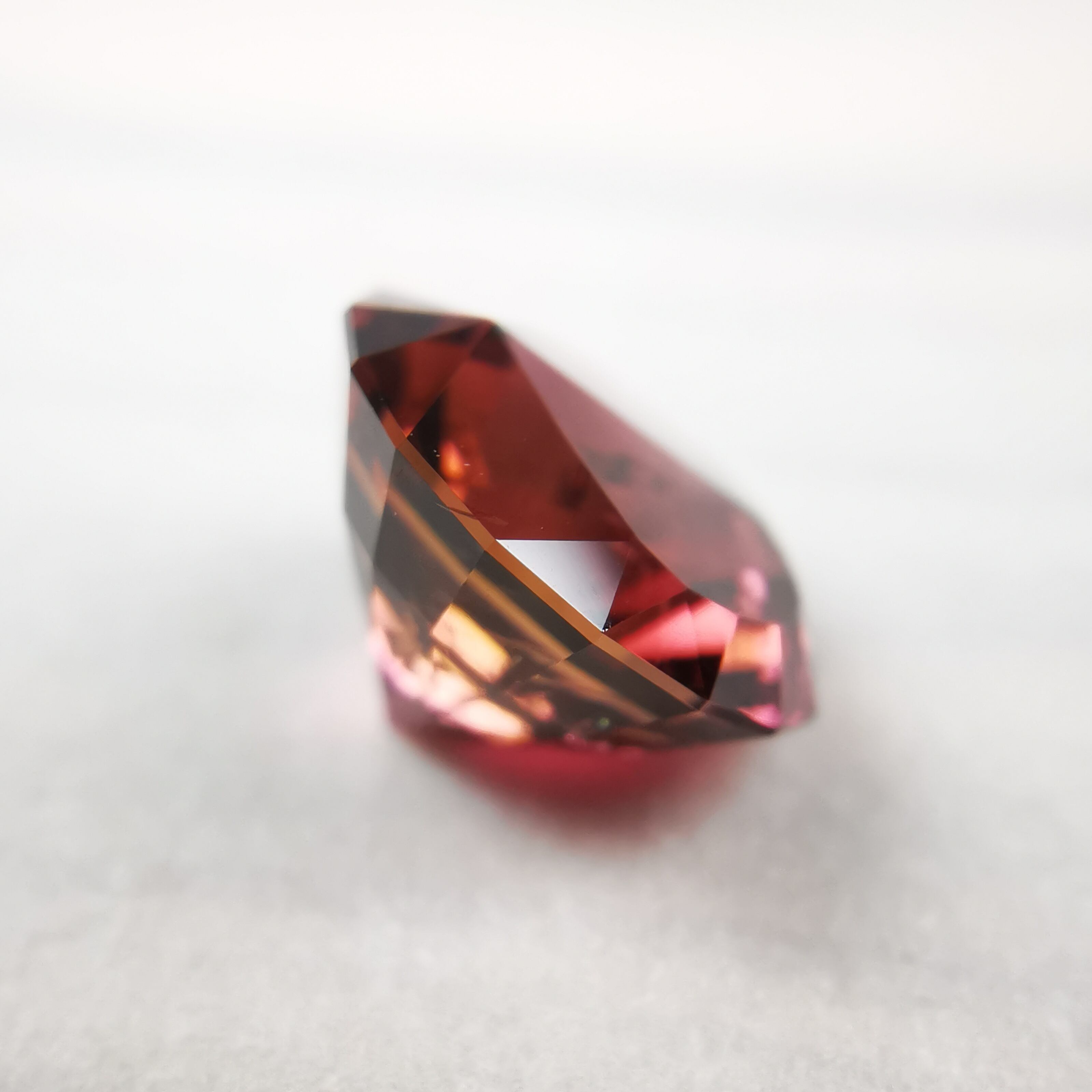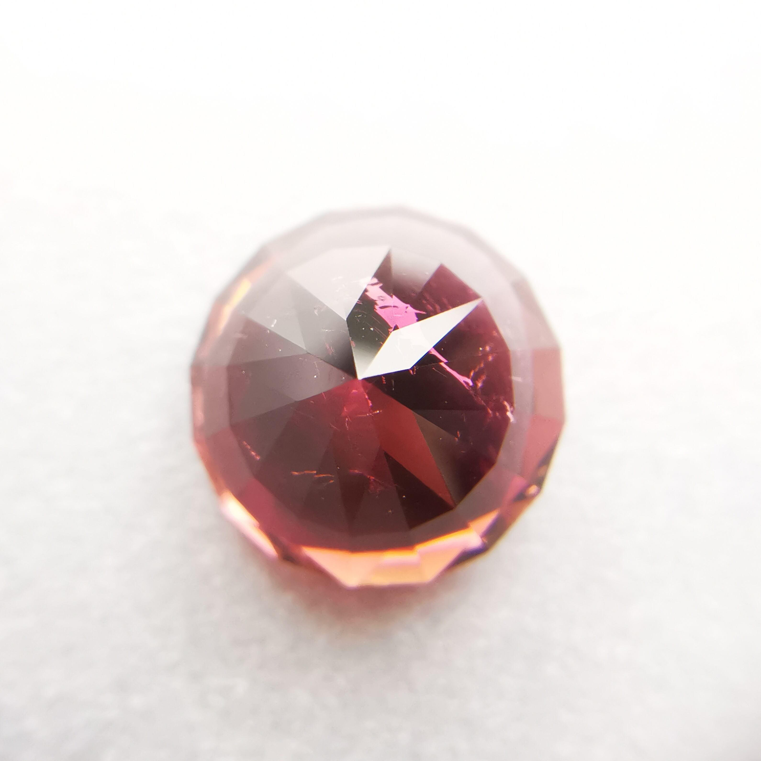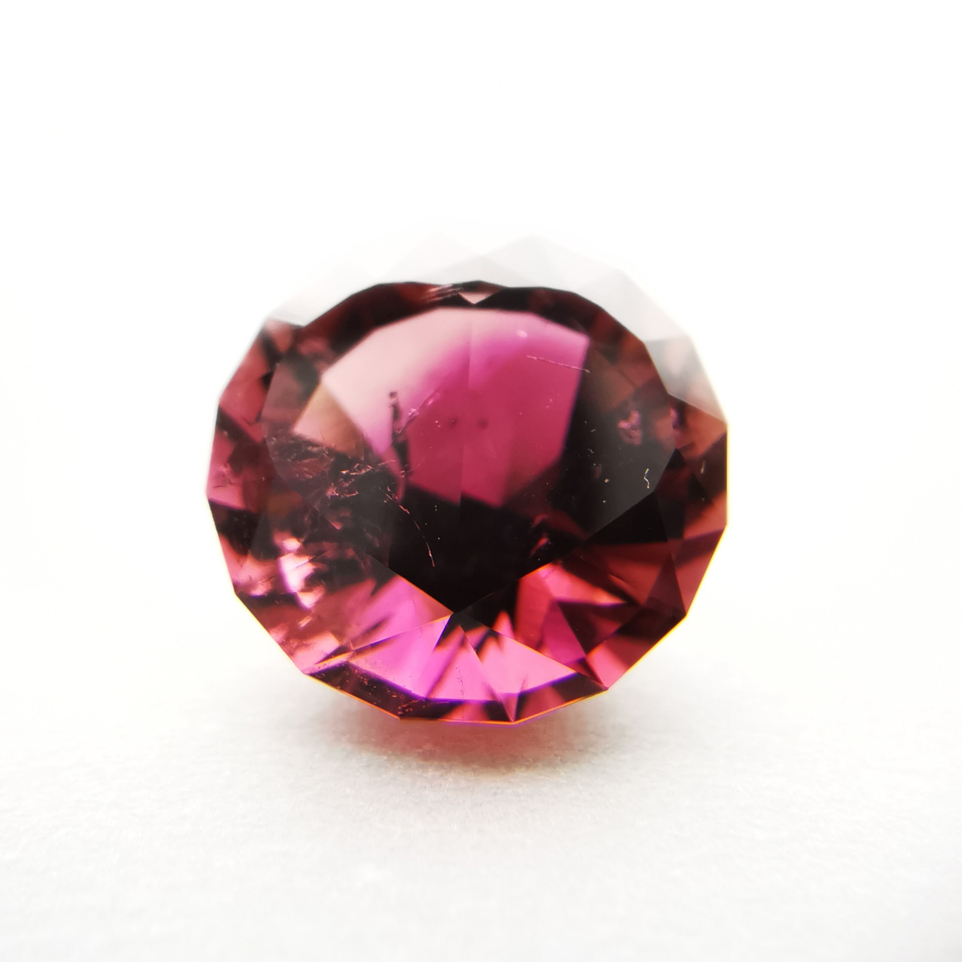 一見、濃いピンクレッド一色のようですが、よく見るとオレンジピンクとパープルピンクのバイカラーのトルマリンです。