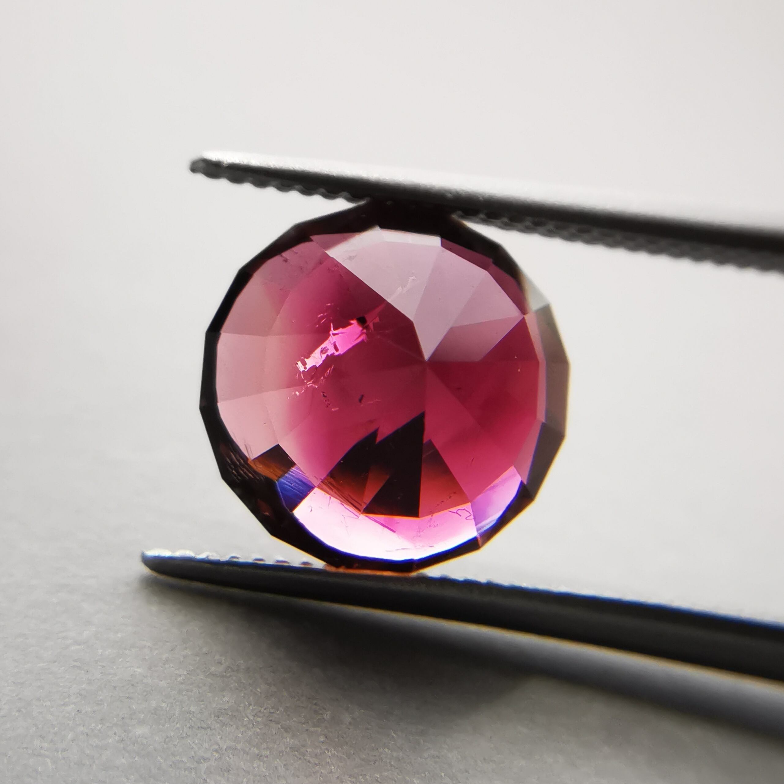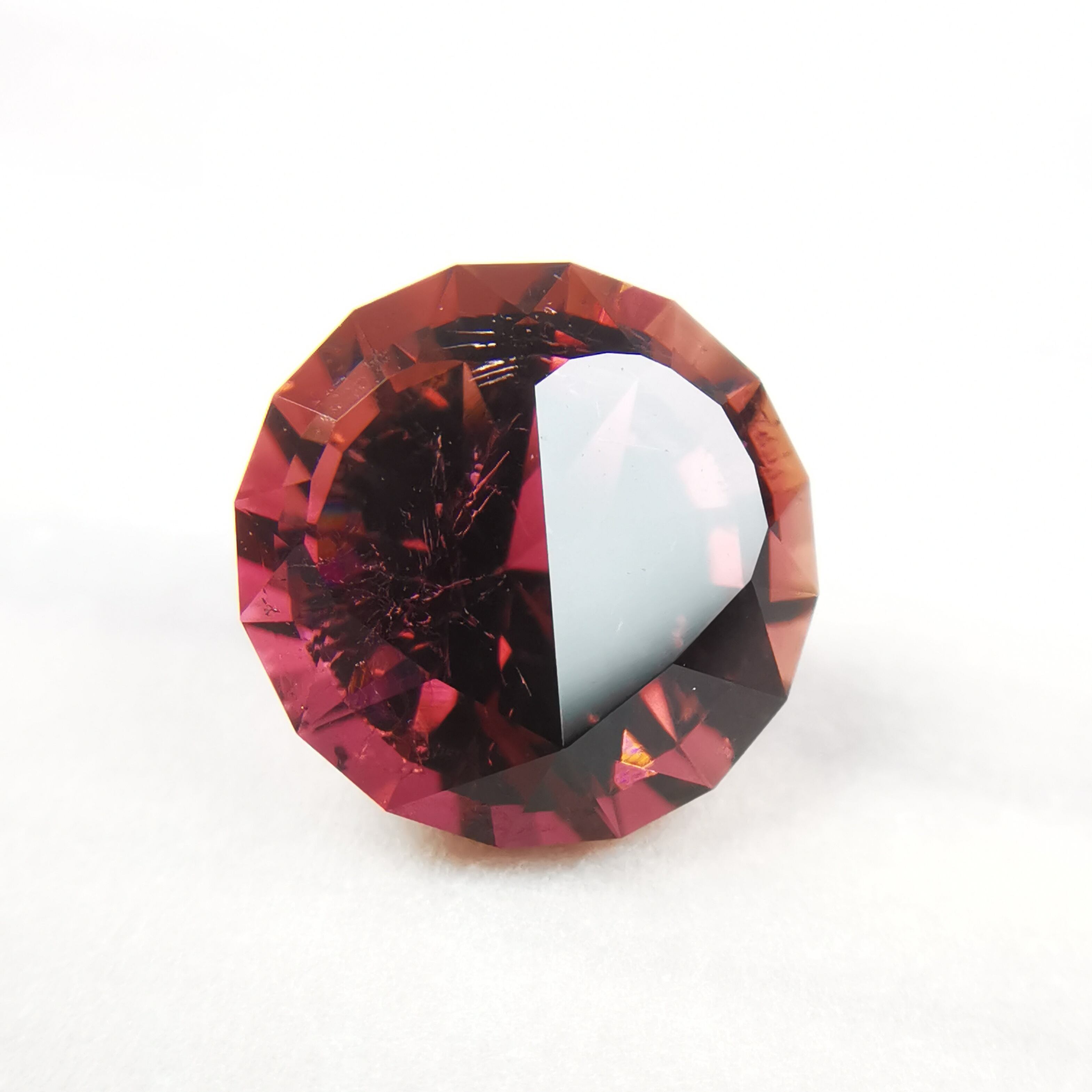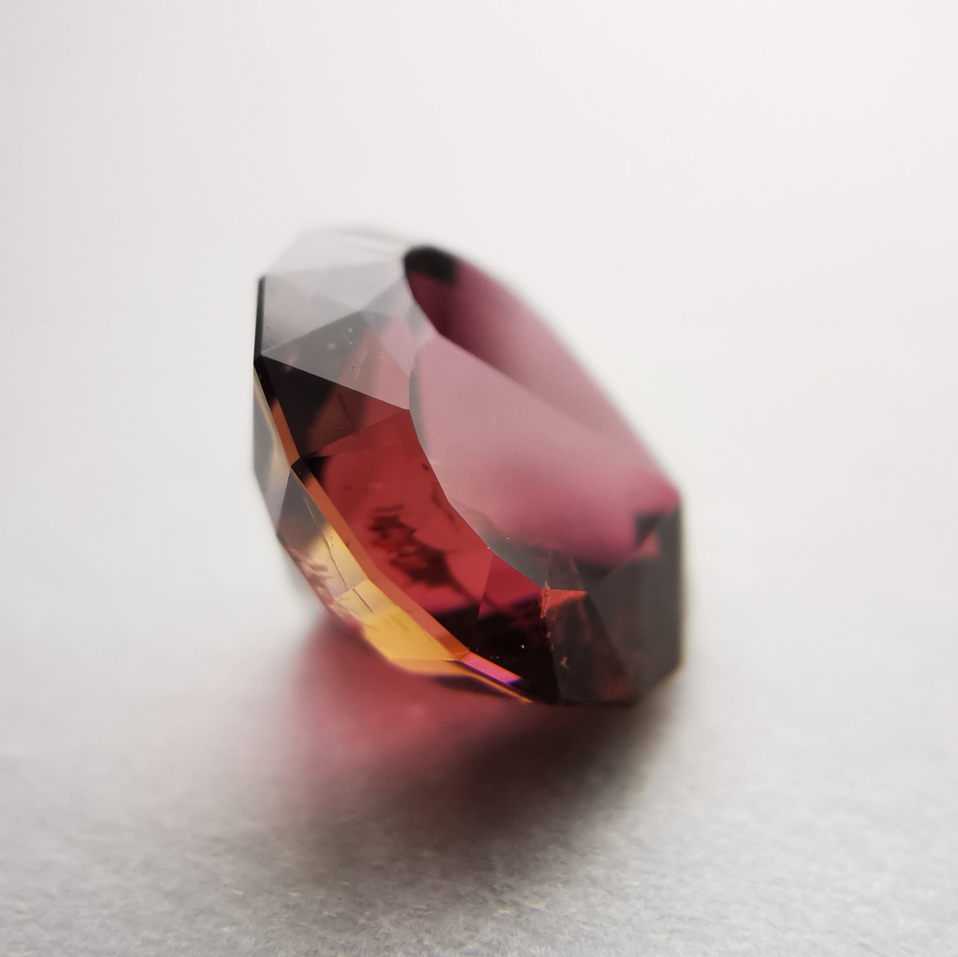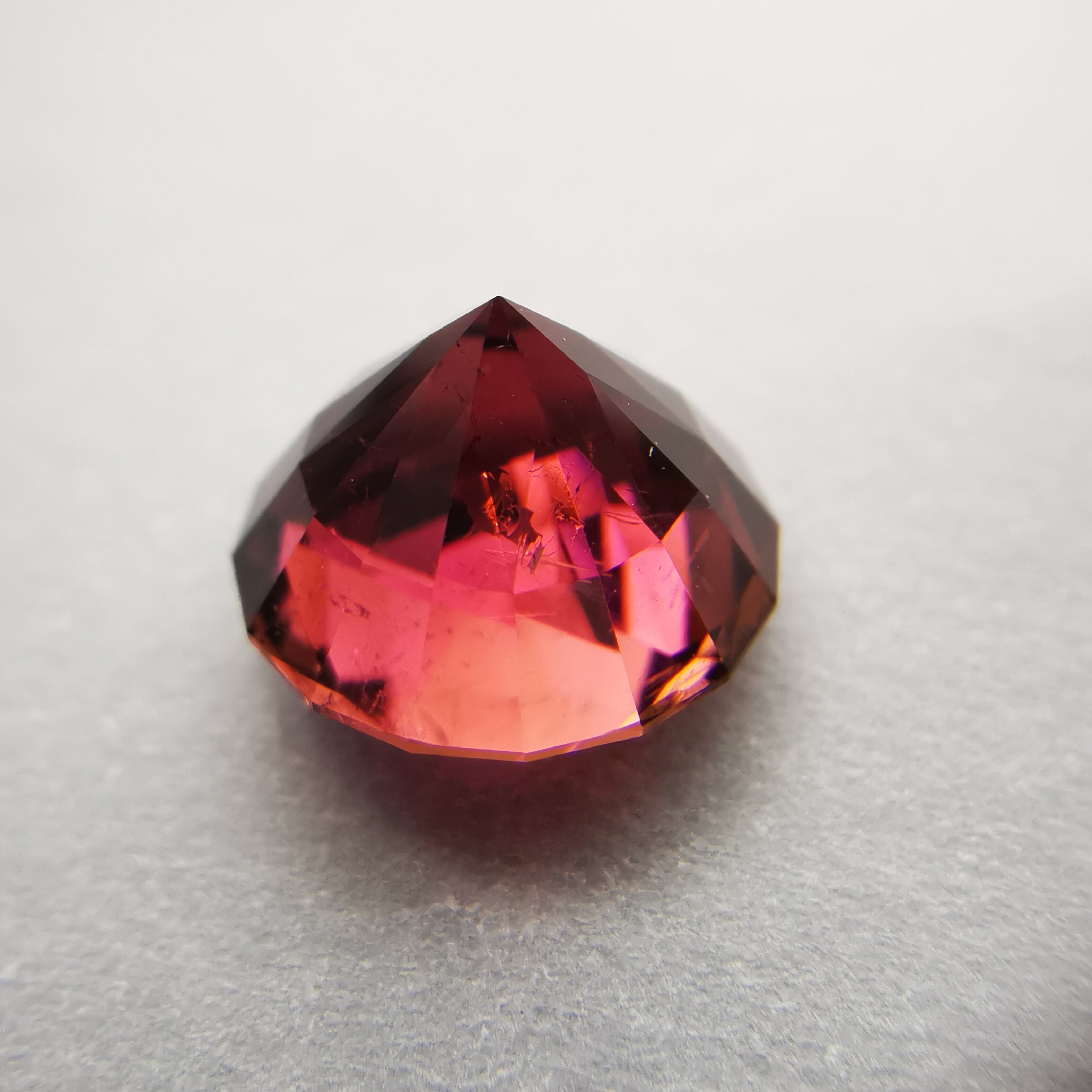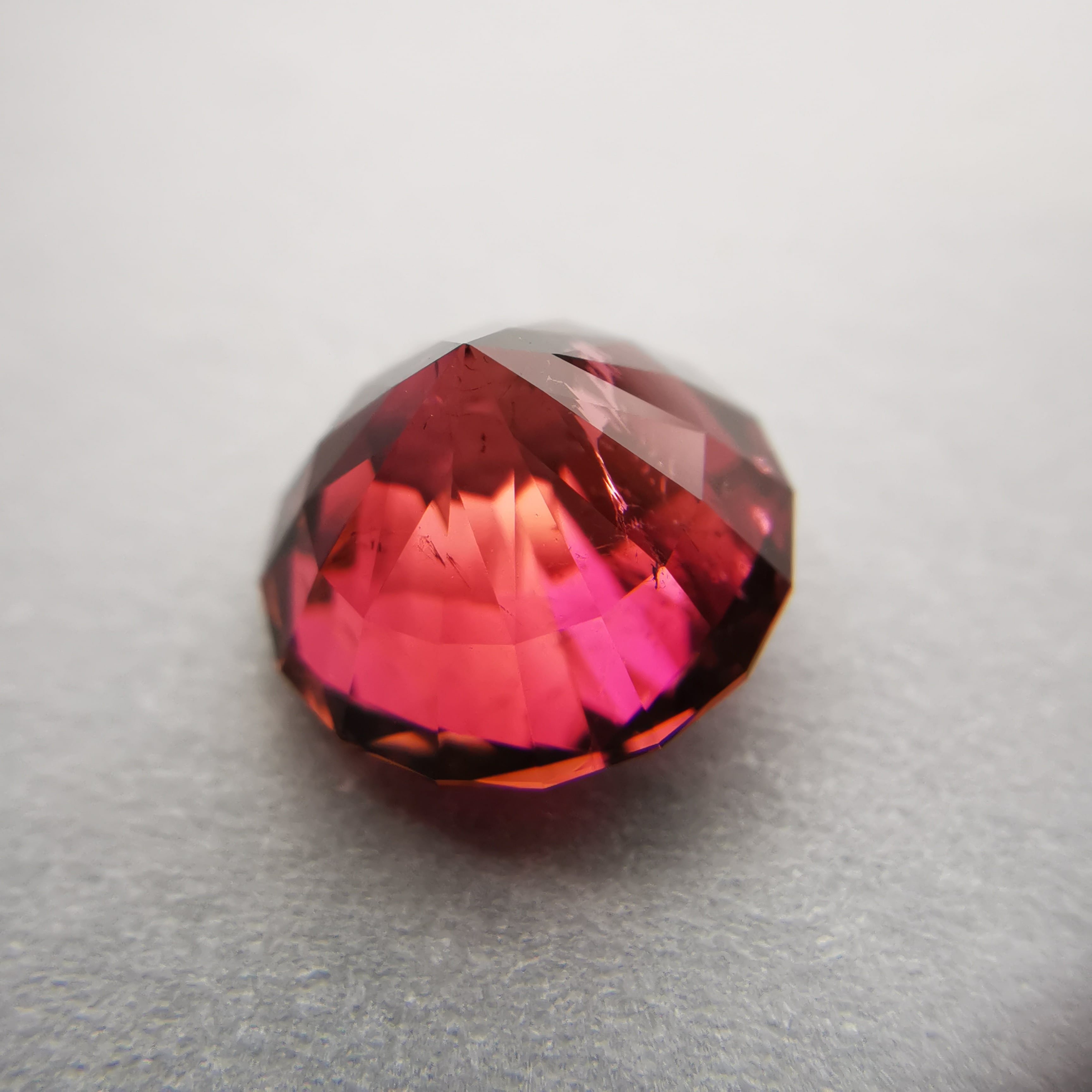 一見、濃いピンクレッド一色のようですが、よく見るとオレンジピンクとパープルピンクのバイカラーのトルマリンです。