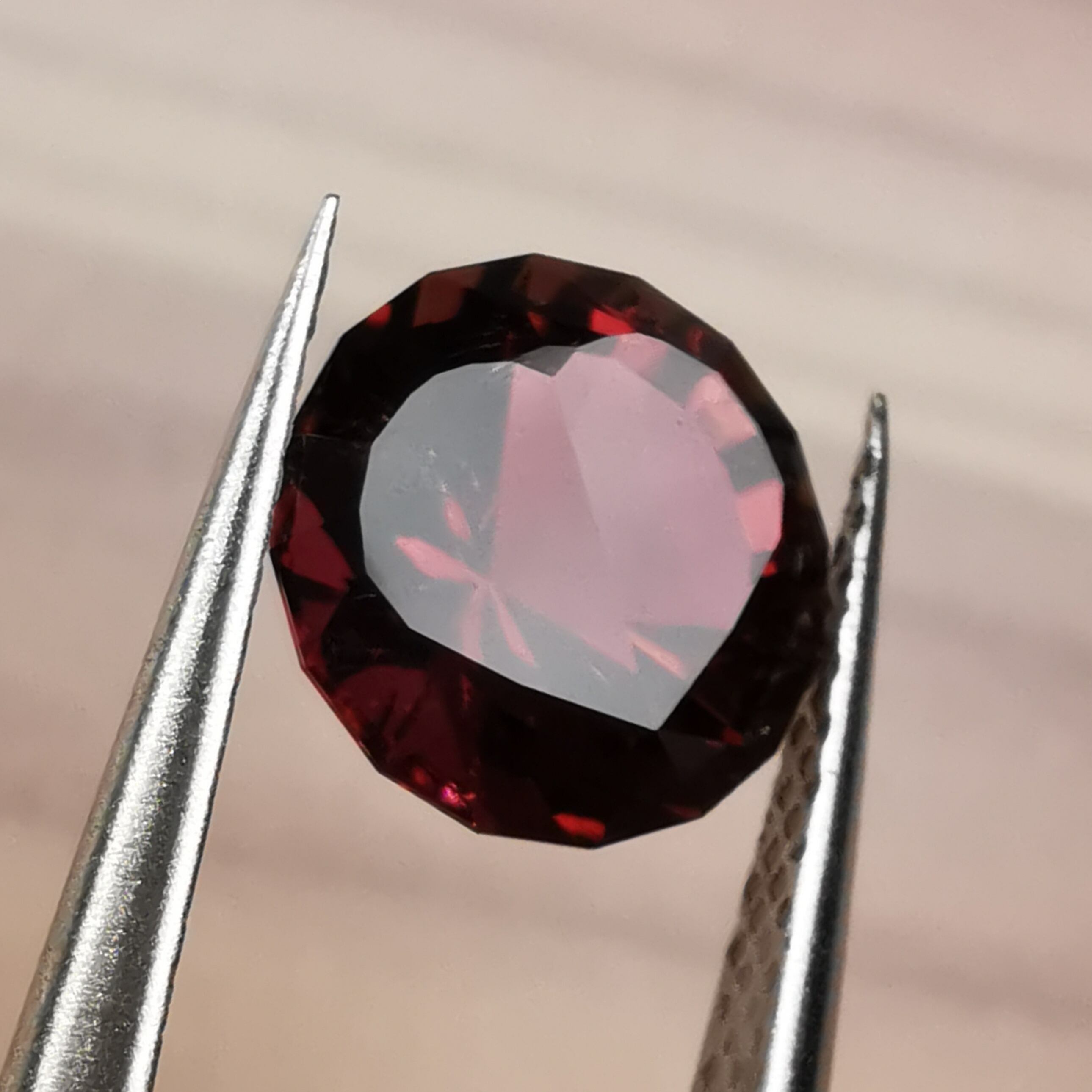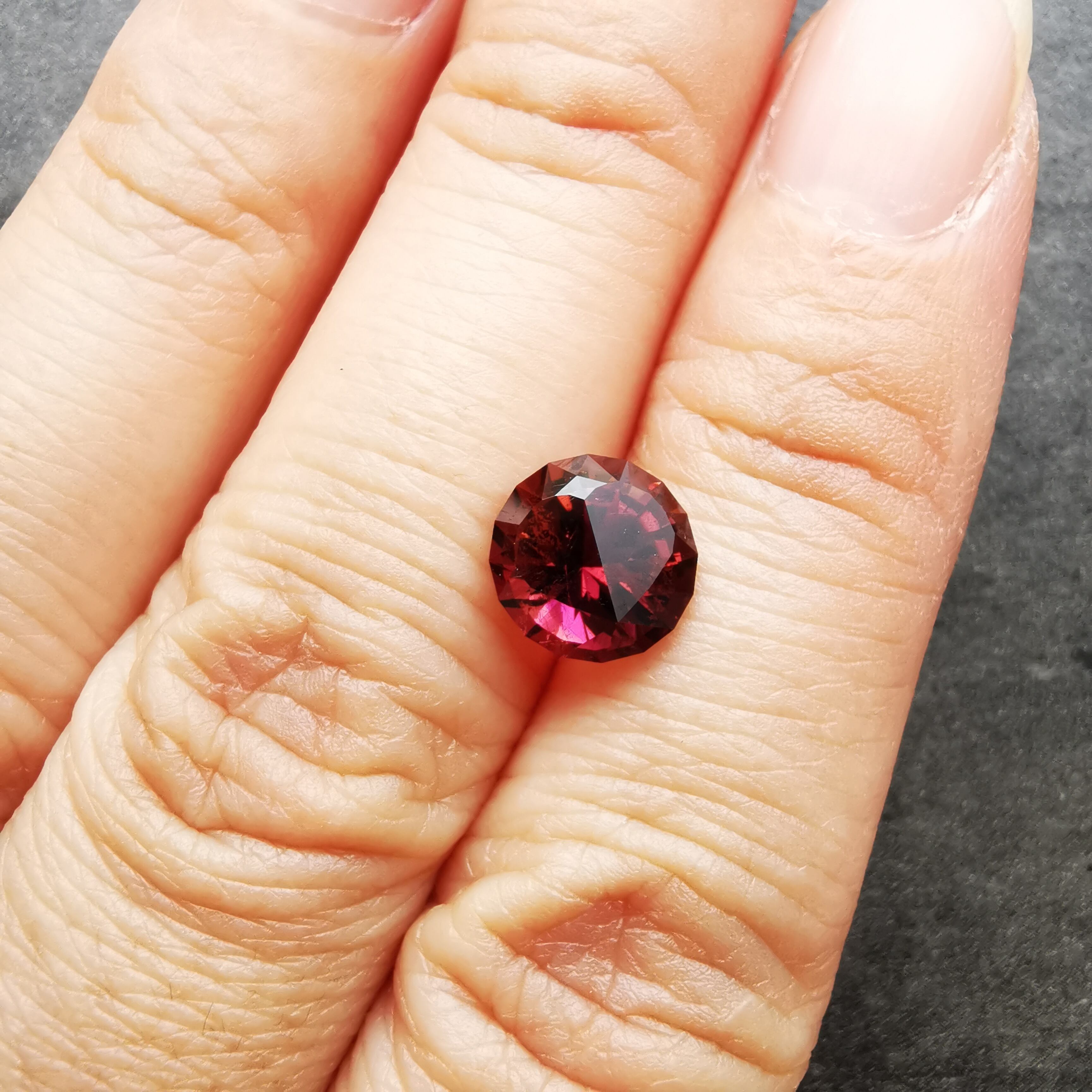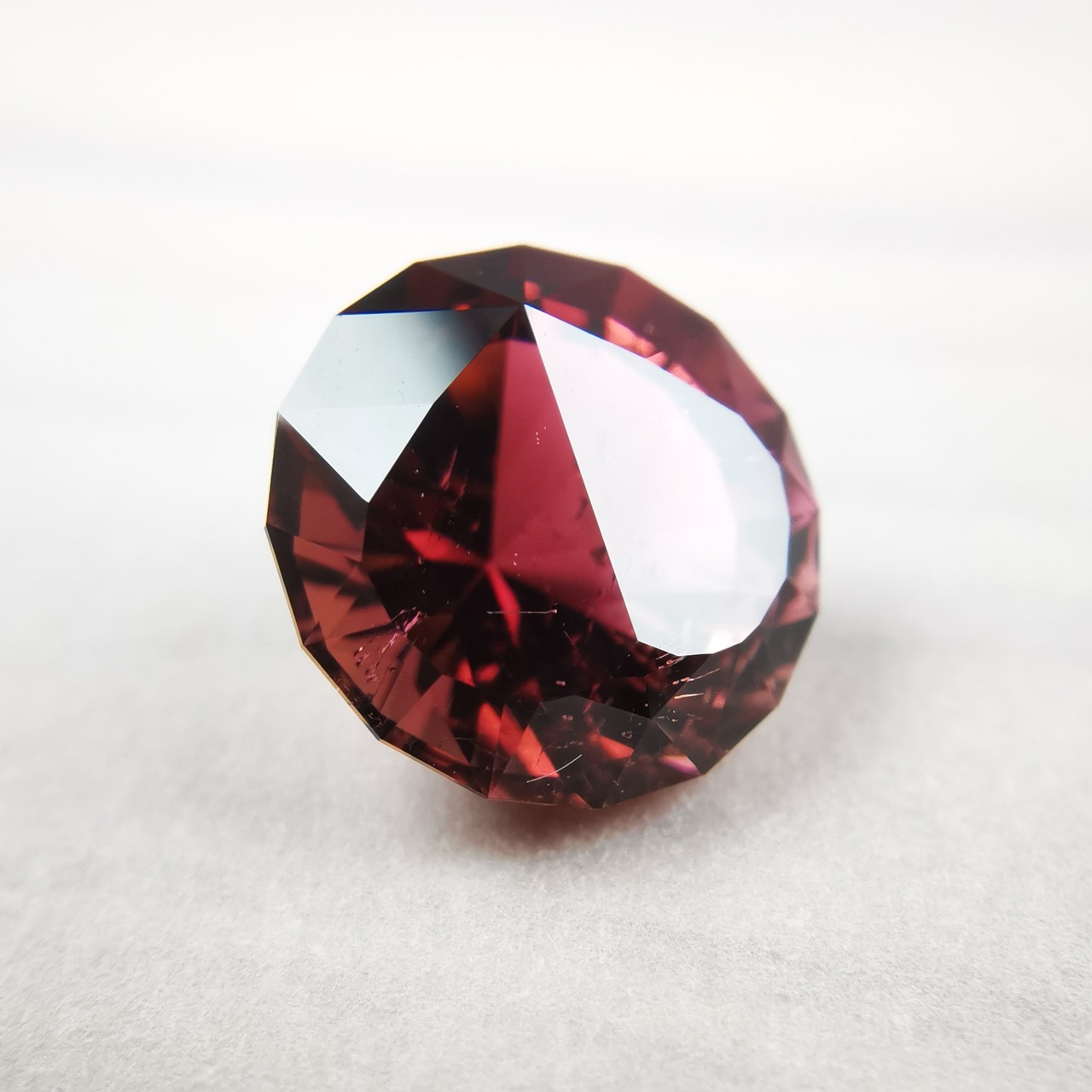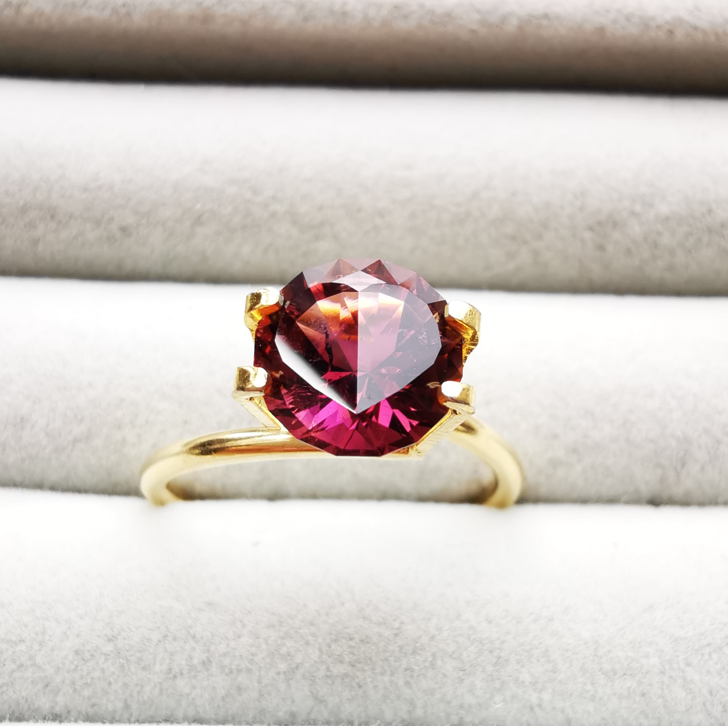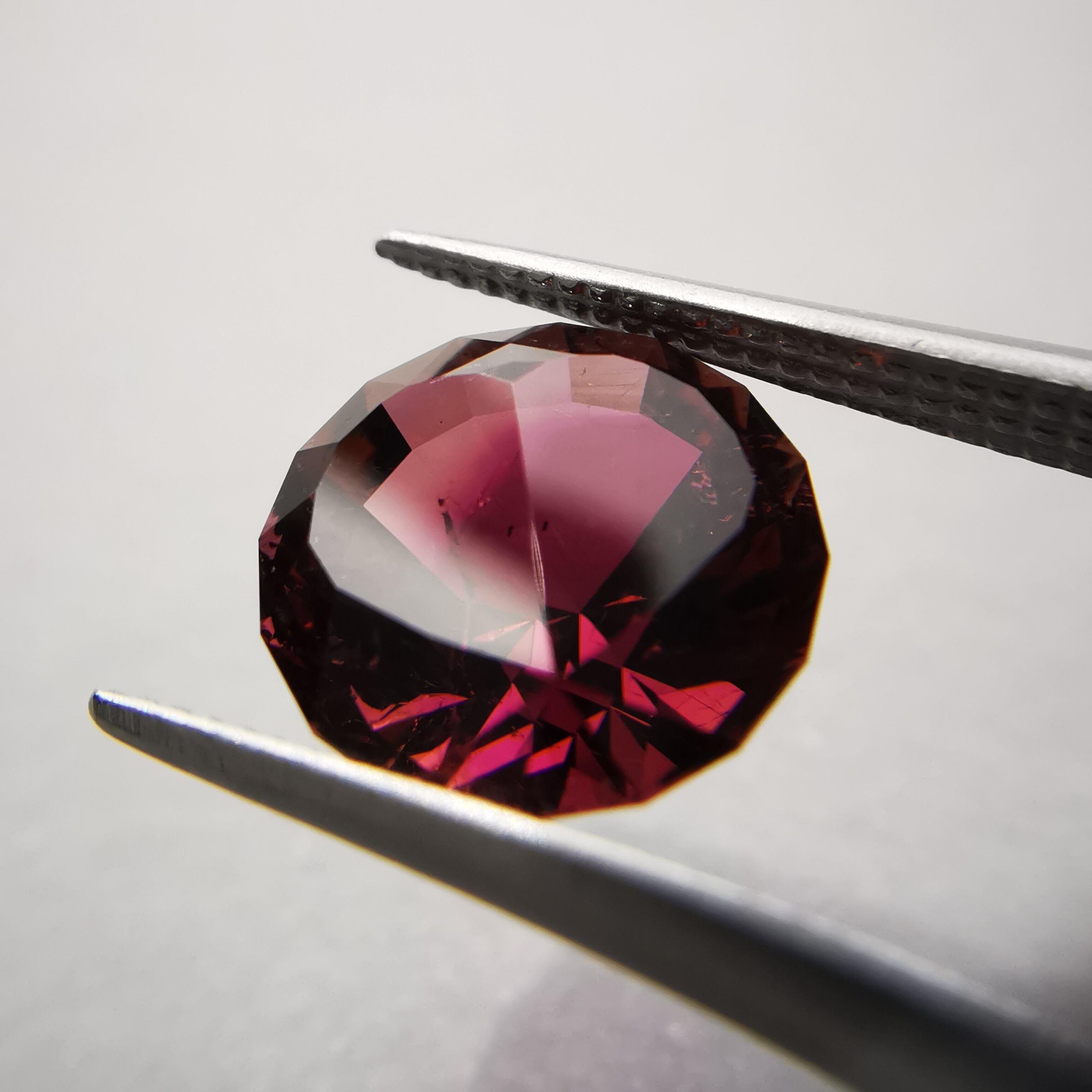 一見、濃いピンクレッド一色のようですが、よく見るとオレンジピンクとパープルピンクのバイカラーのトルマリンです。