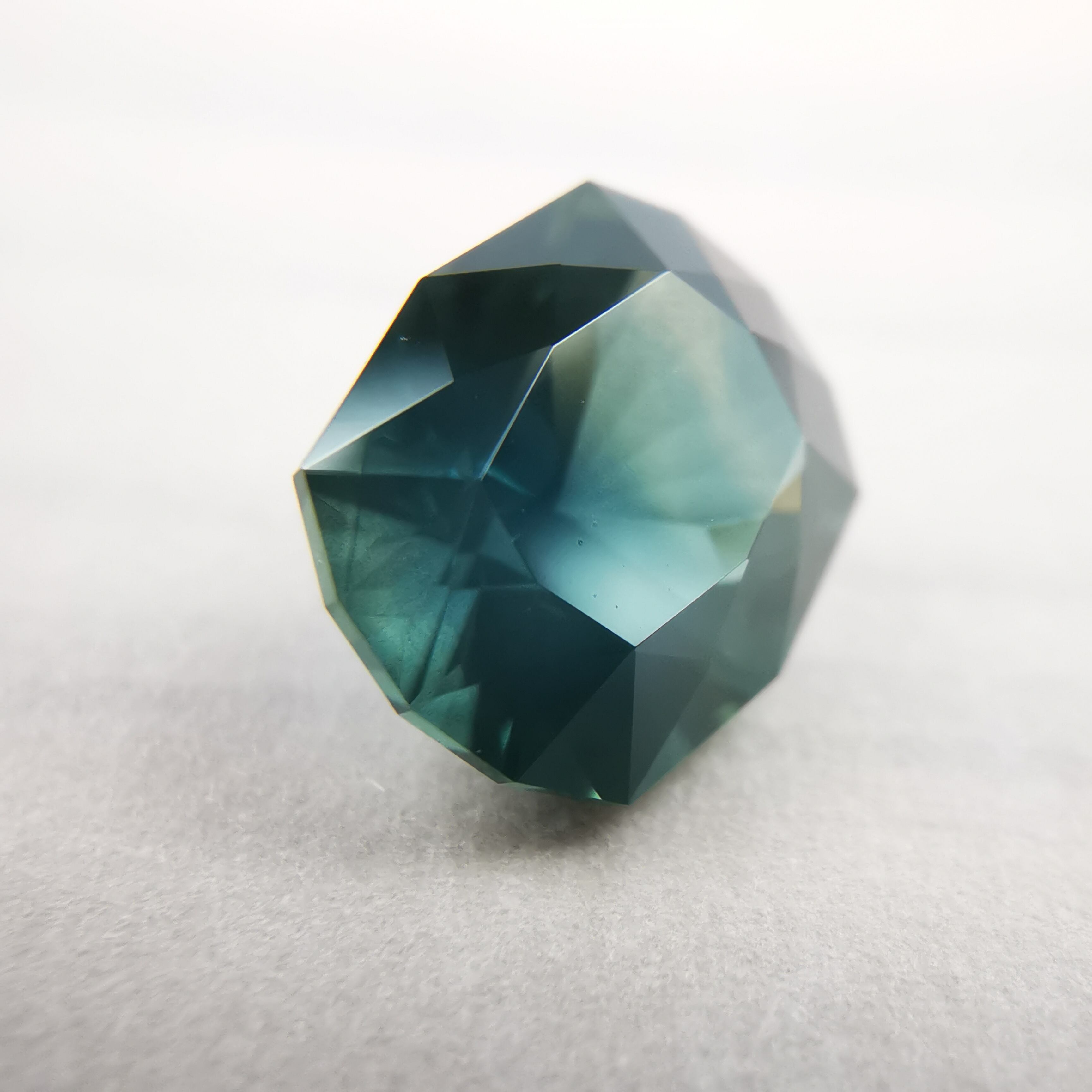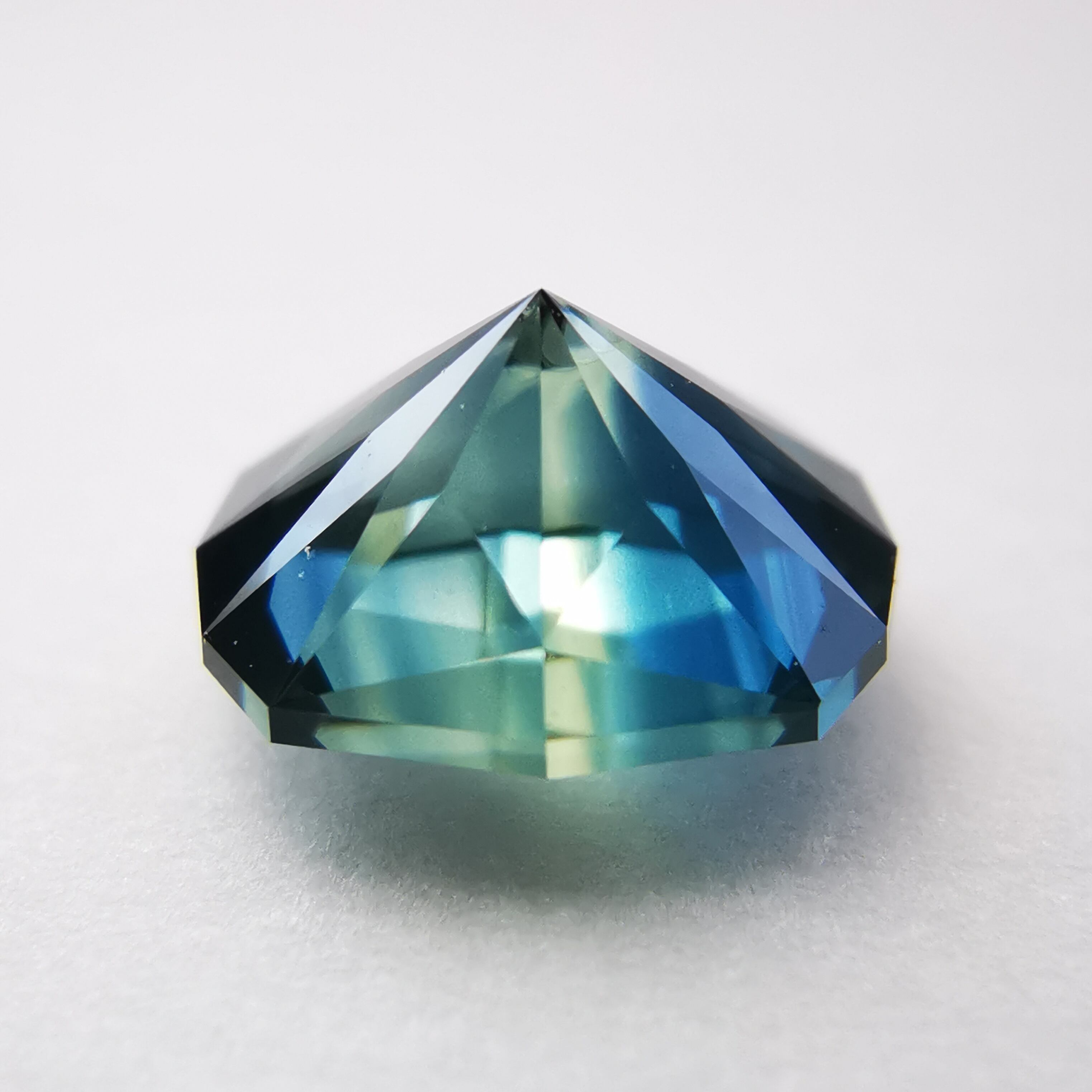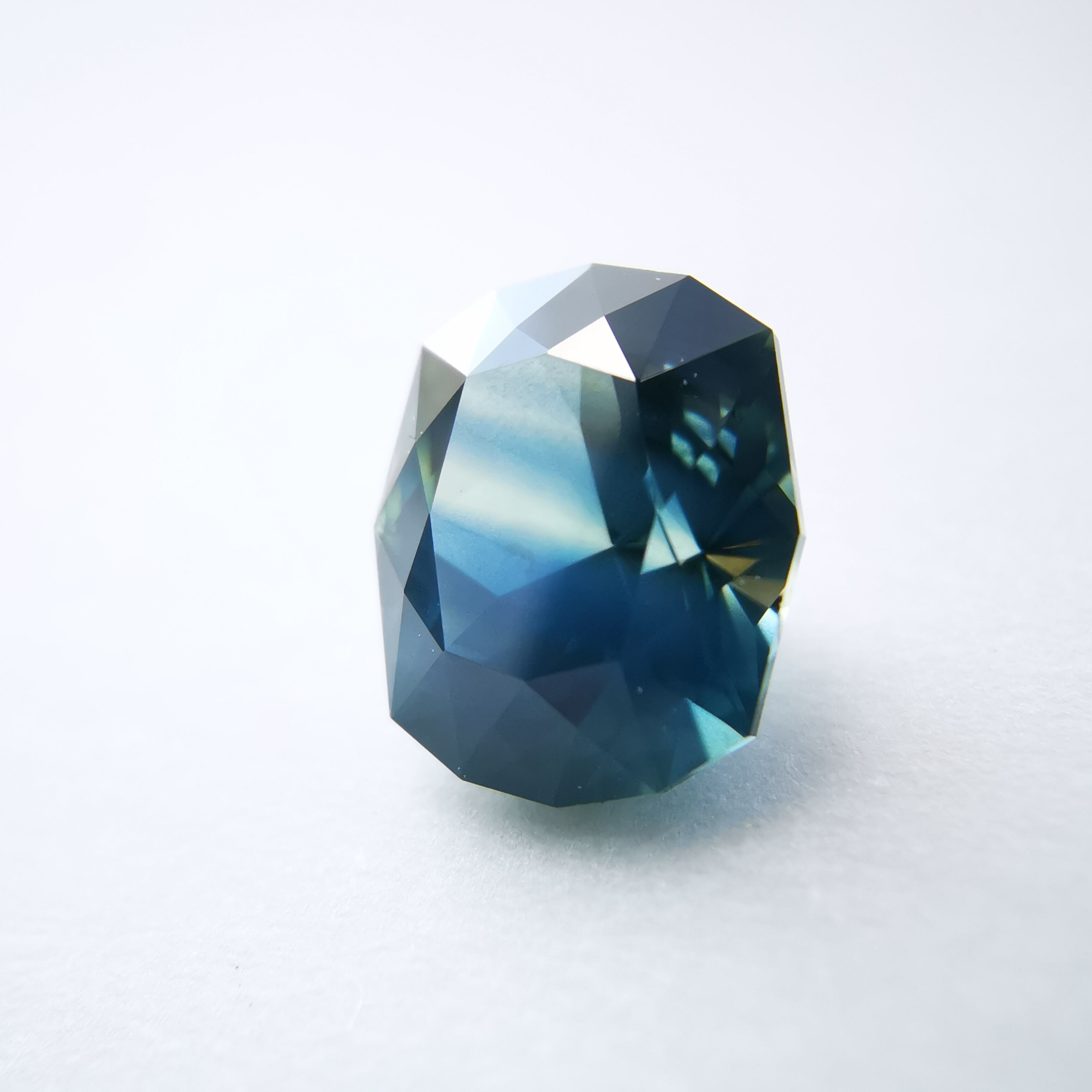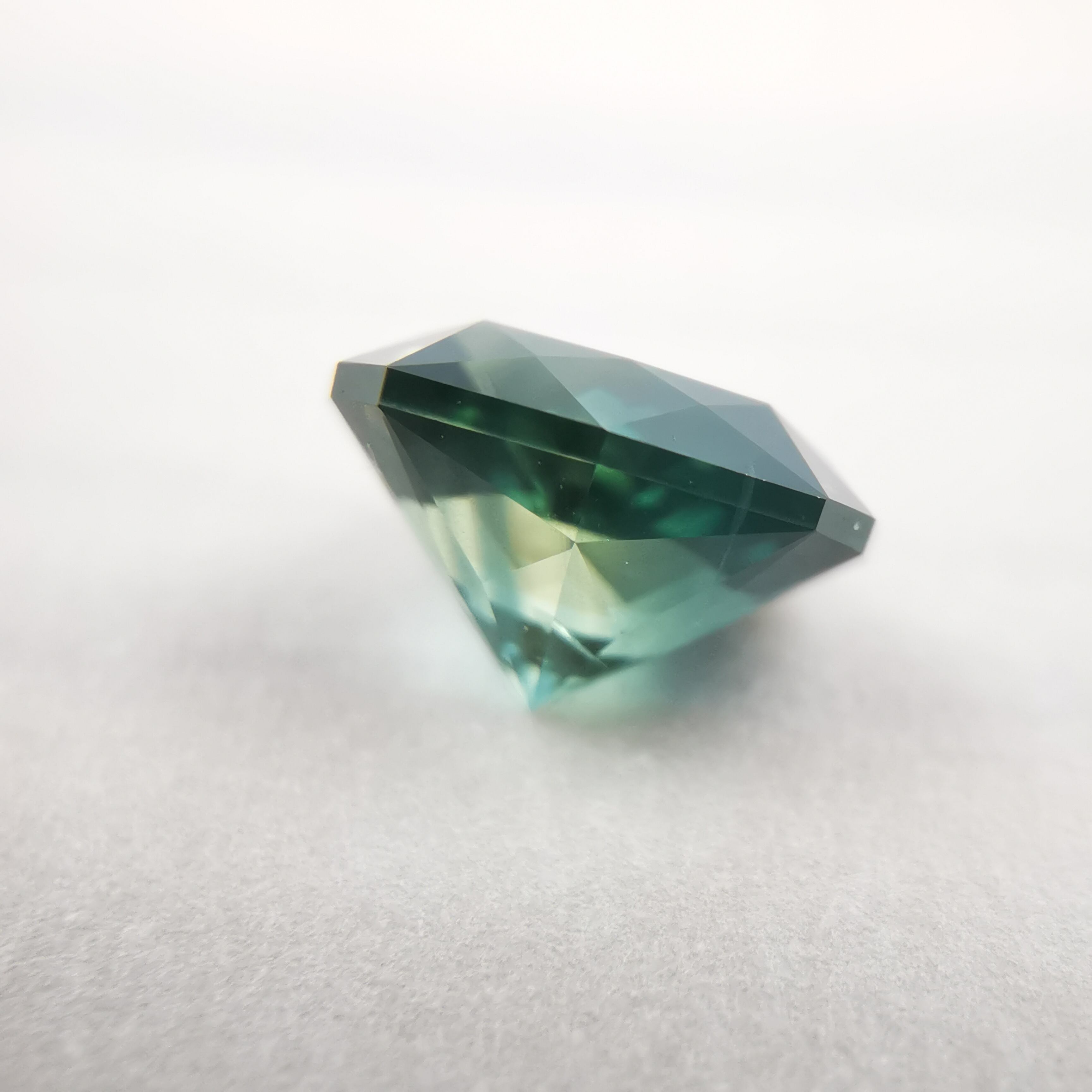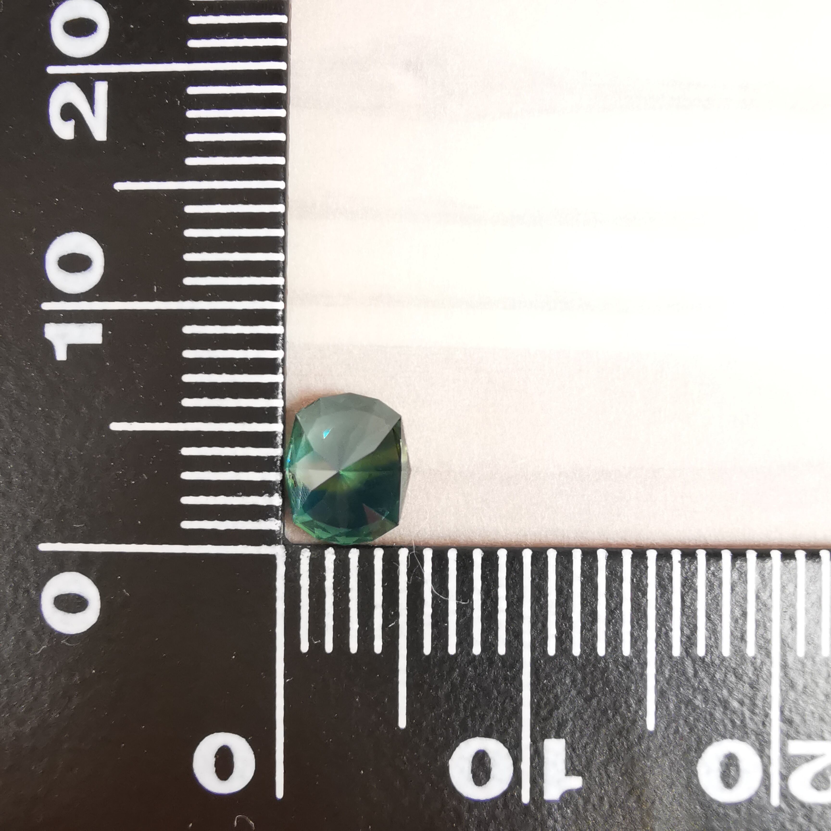 ブルーグリーンのカラーバンドが、幾筋か斜めに走るサファイアです。