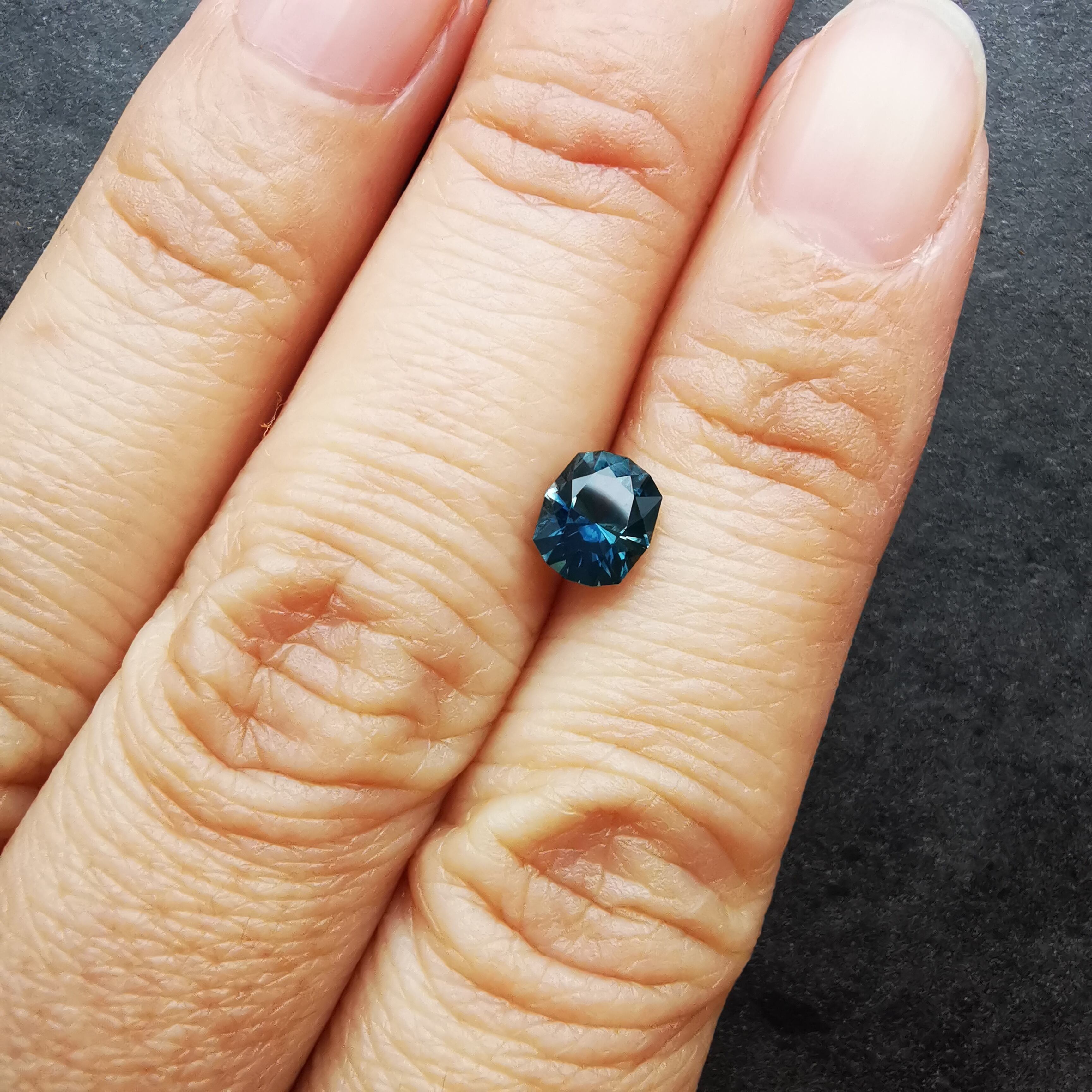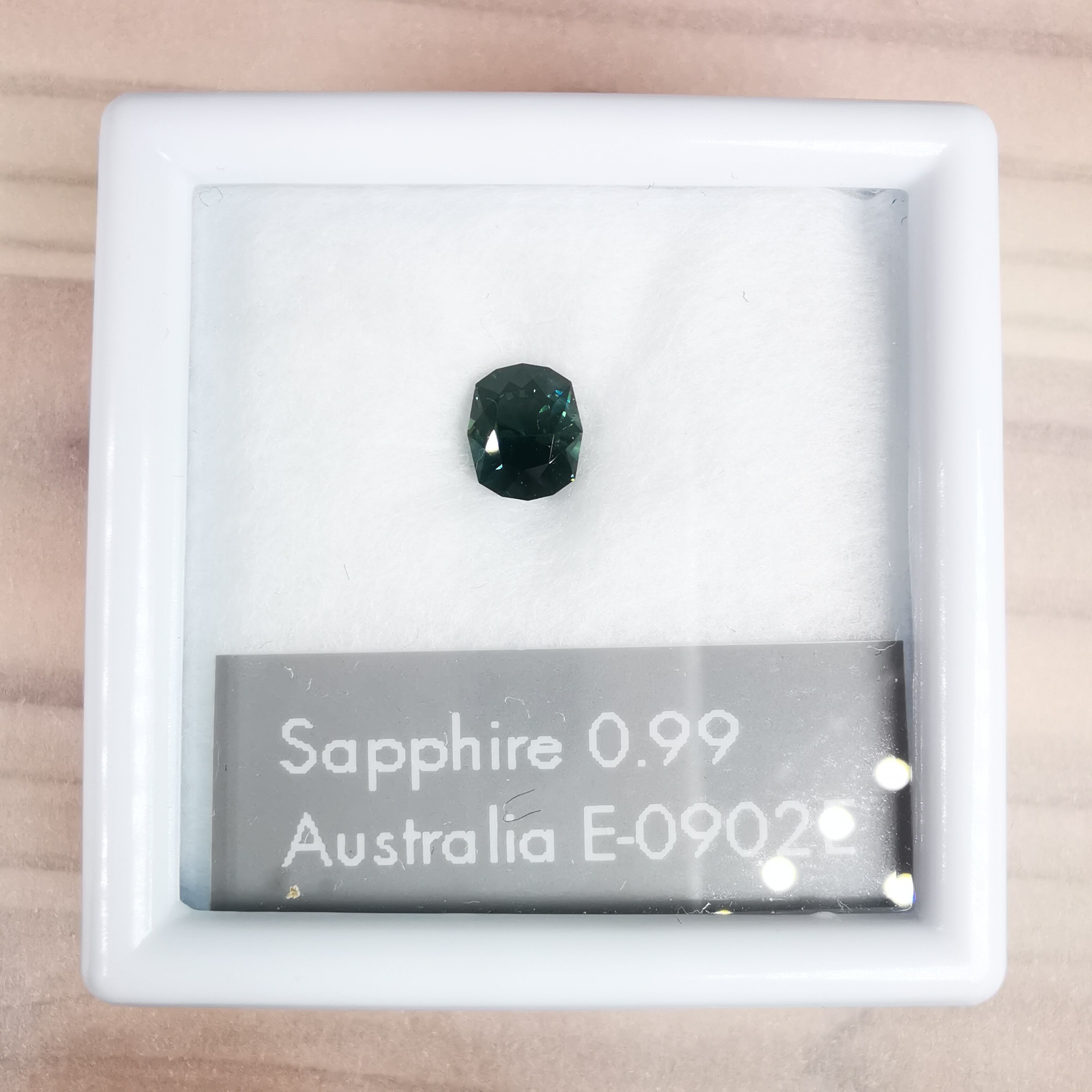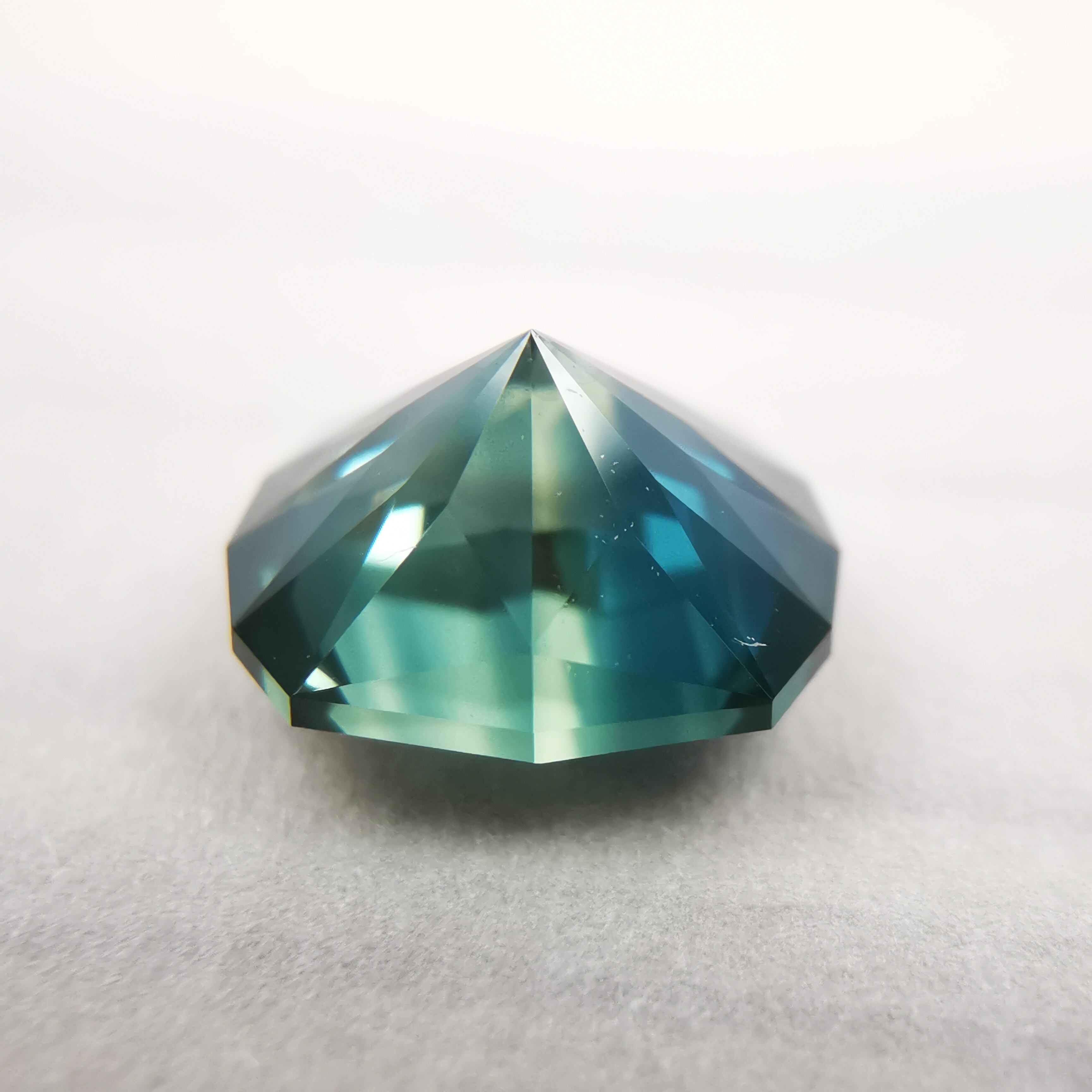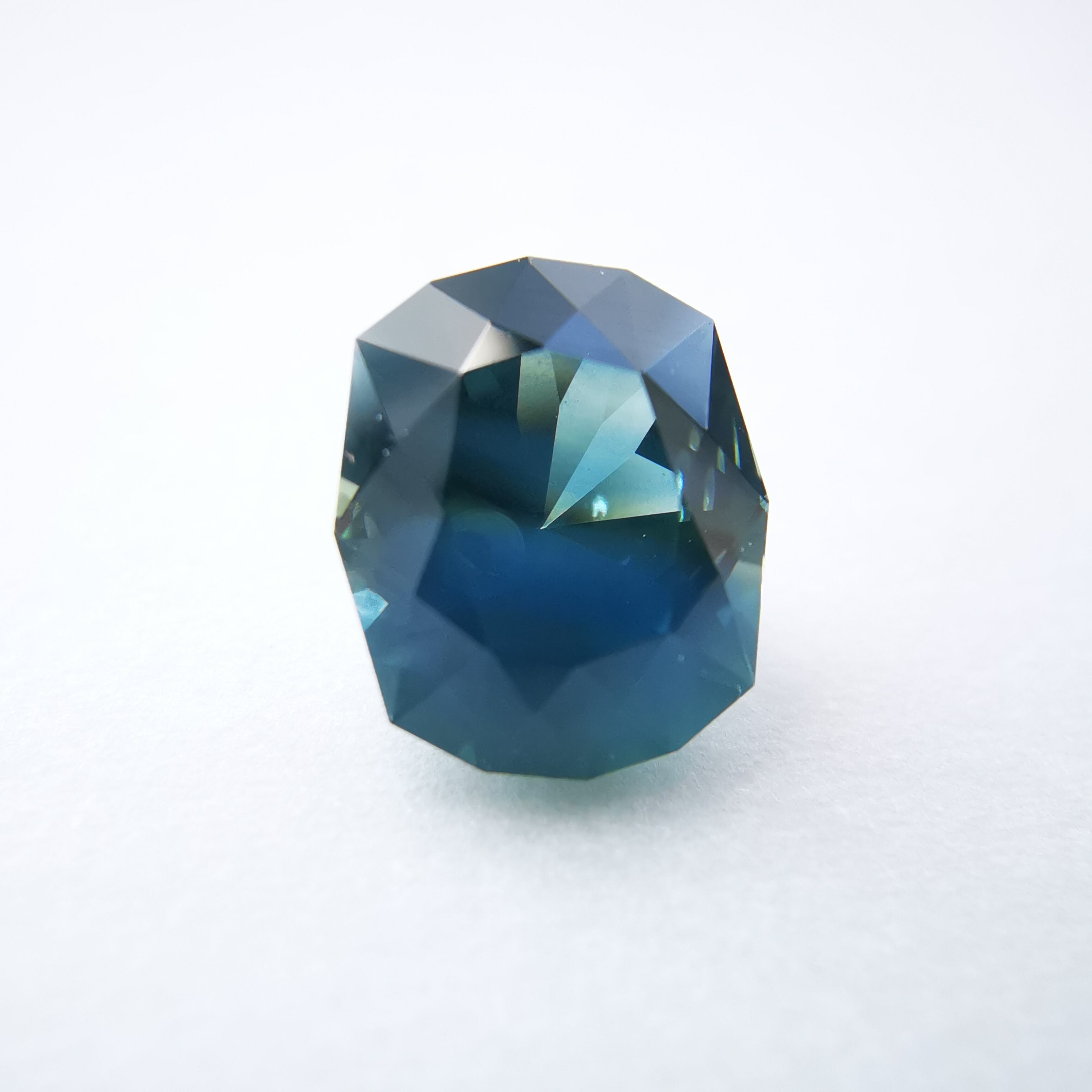 ブルーグリーンのカラーバンドが、幾筋か斜めに走るサファイアです。