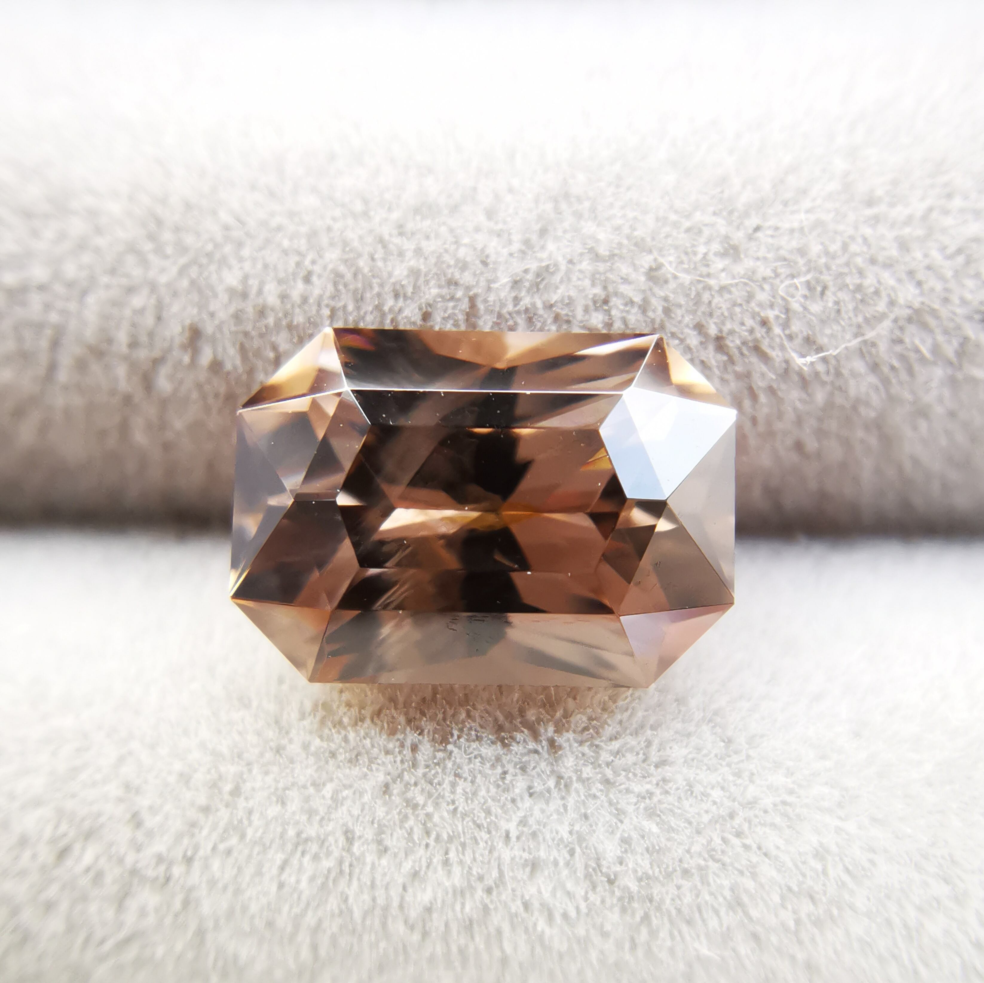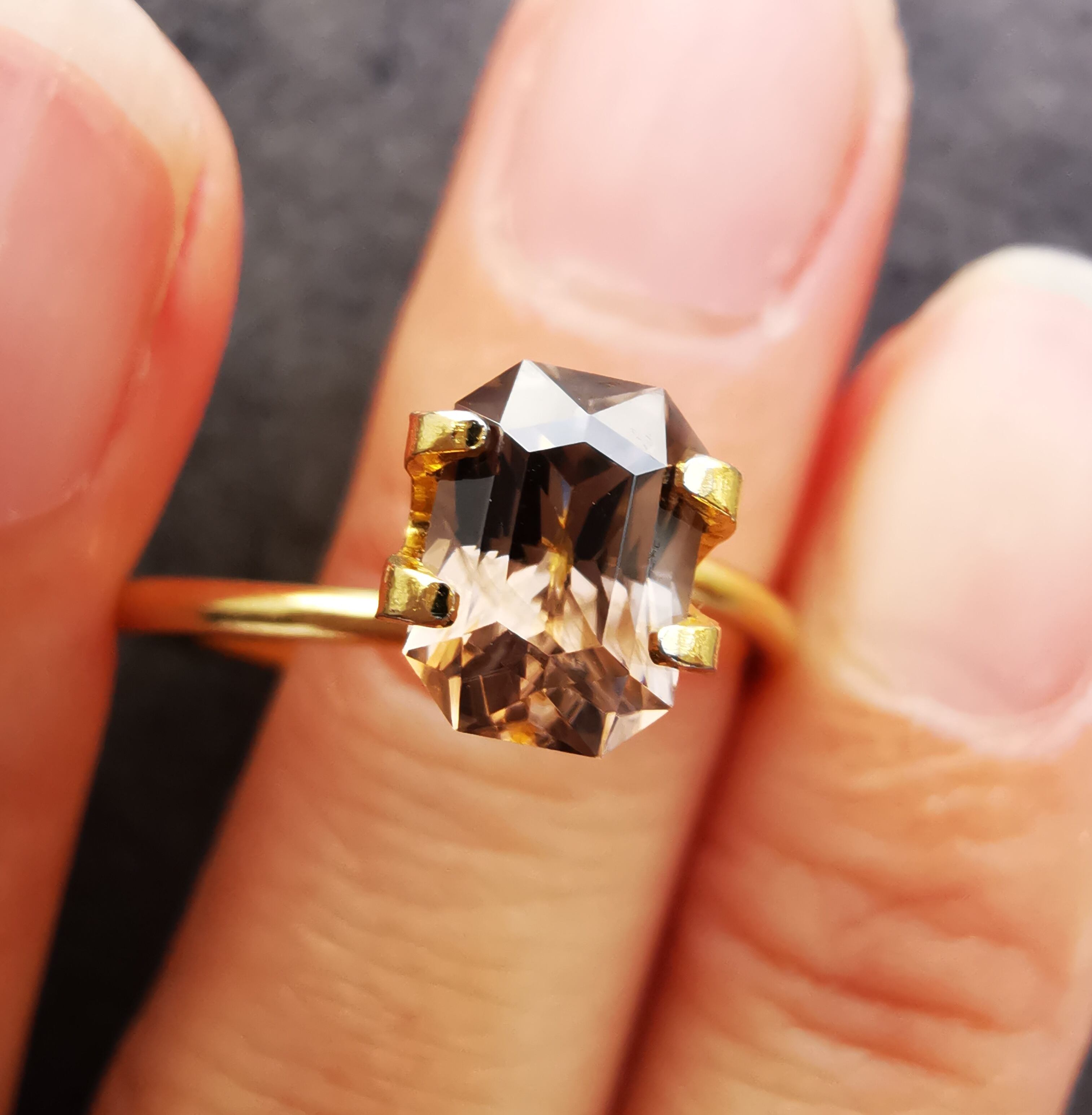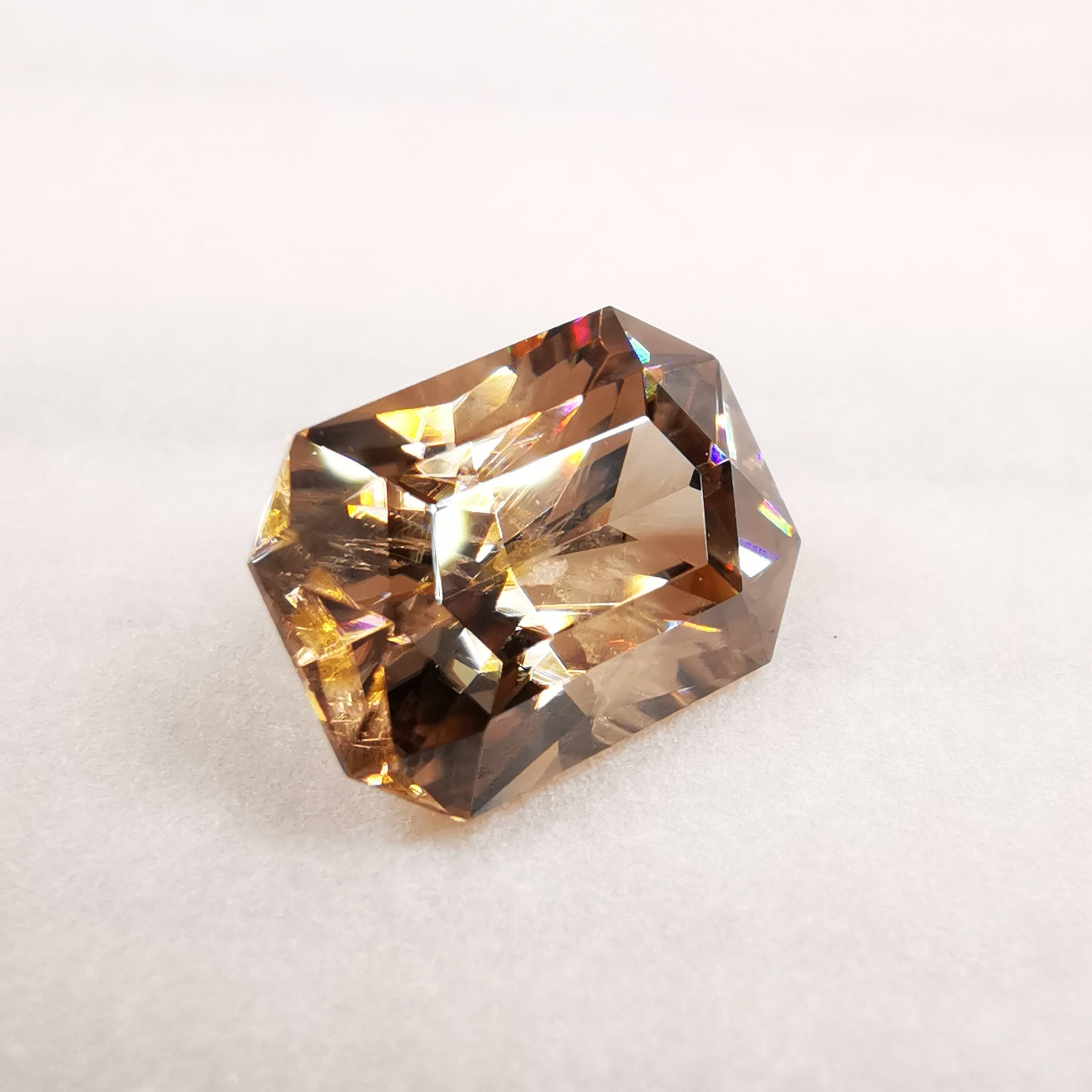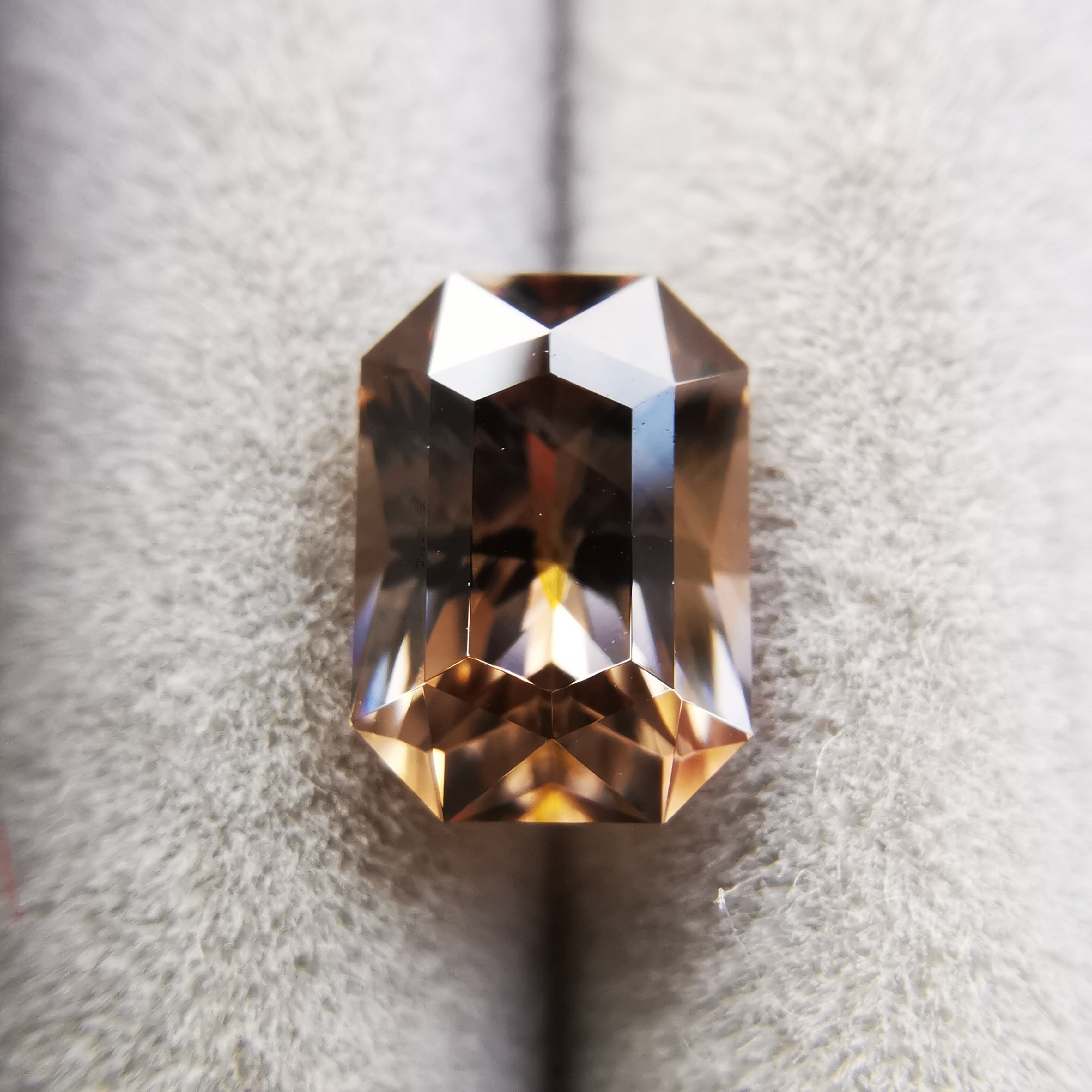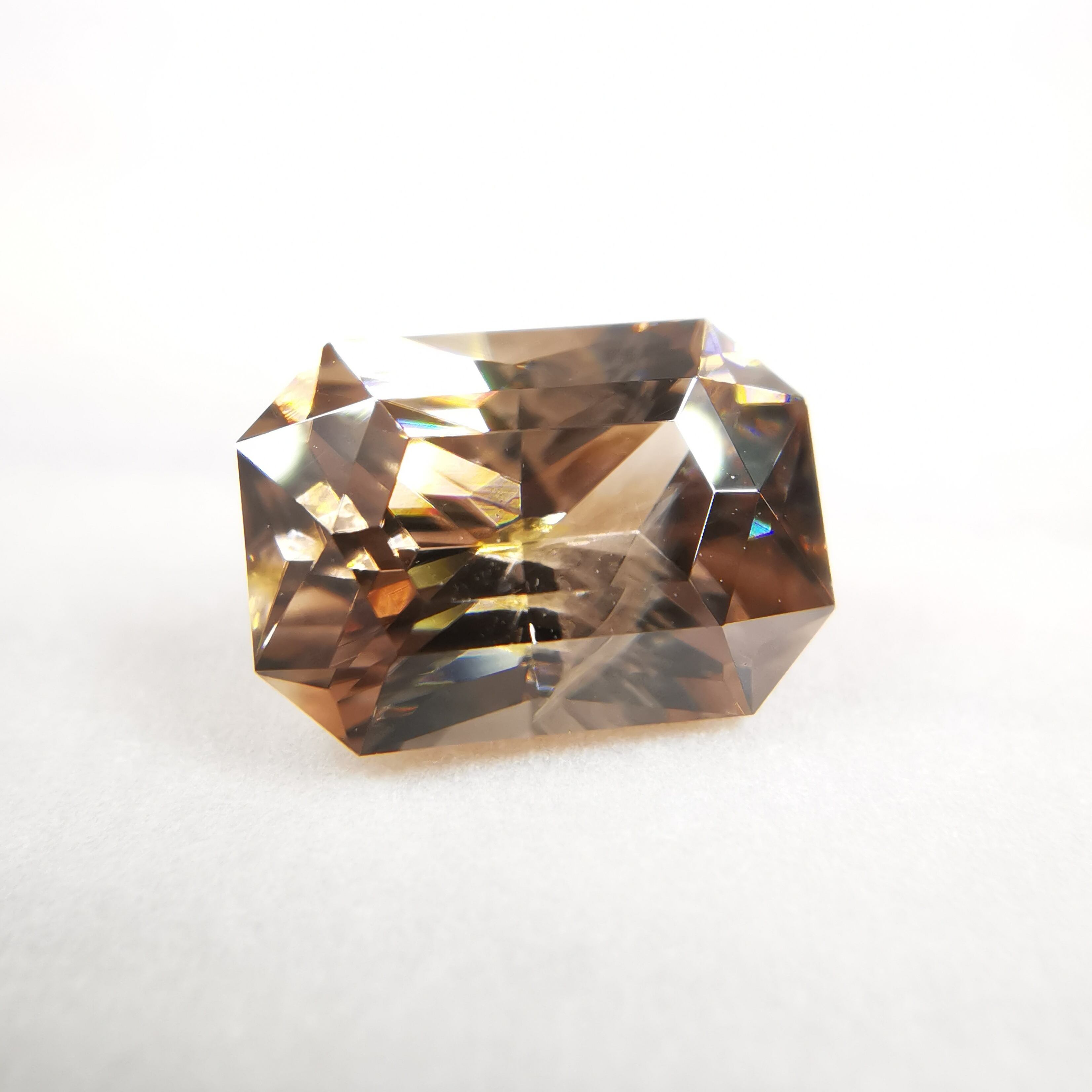 キュレットにわずかに入ったイエローの内包物が影響して、フェイスからもイエローを感じる瞬間があり、複雑な色を見せます。