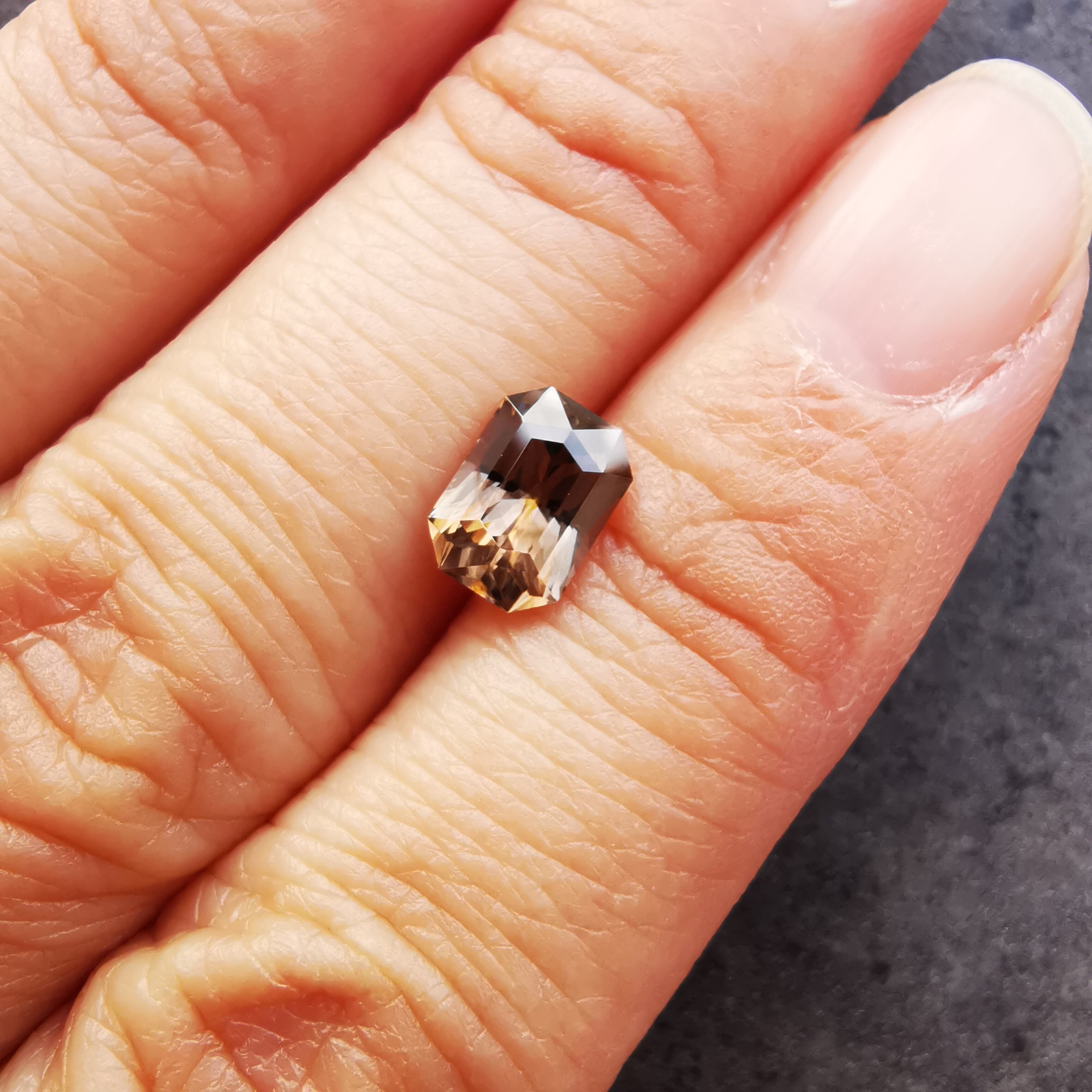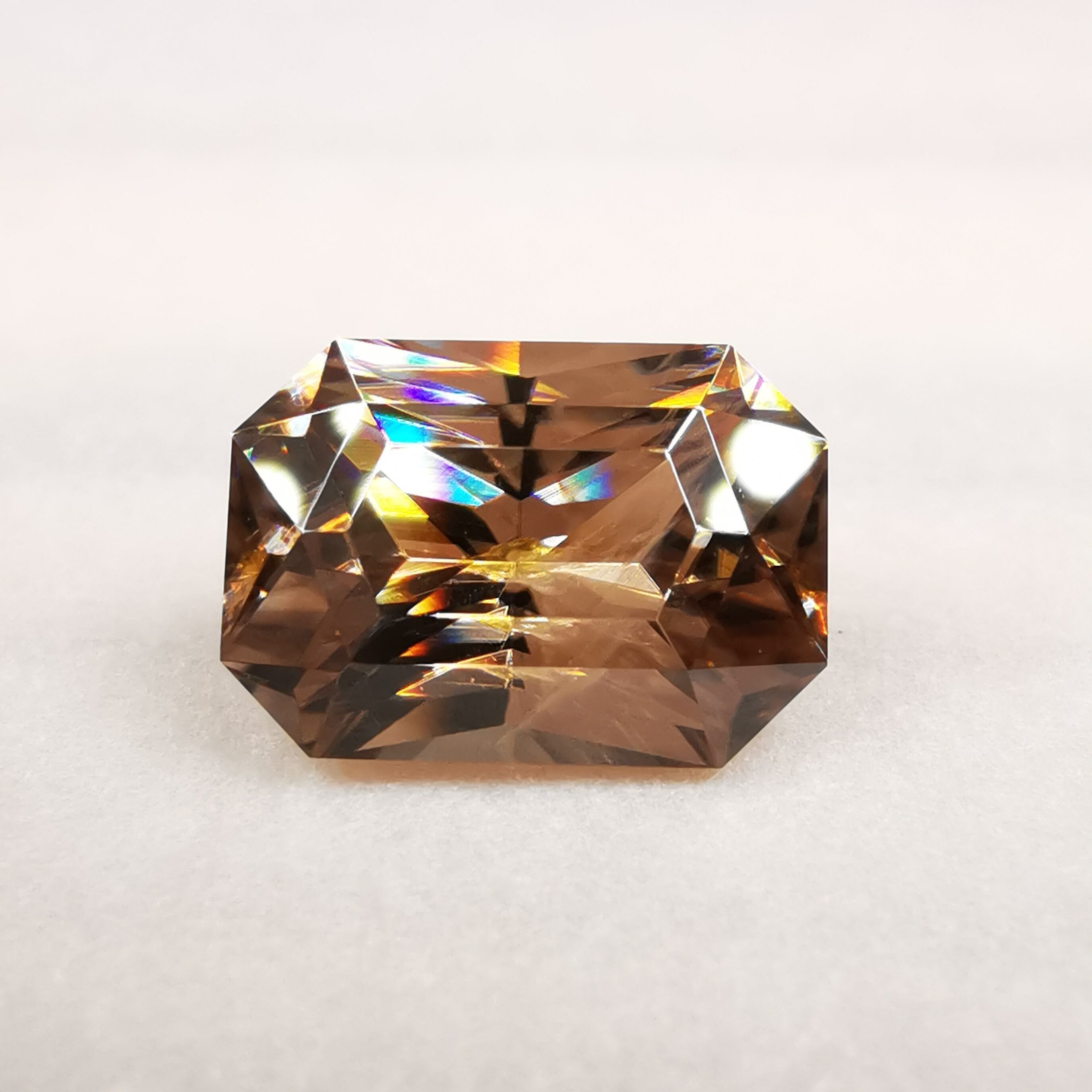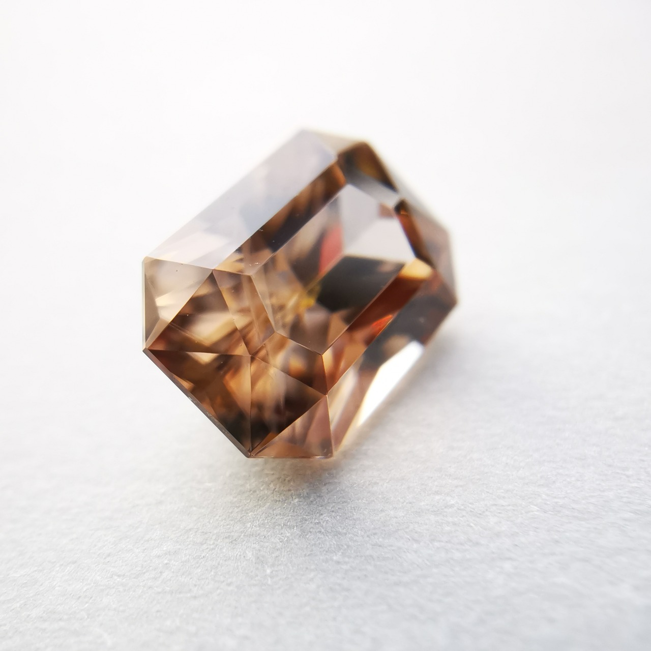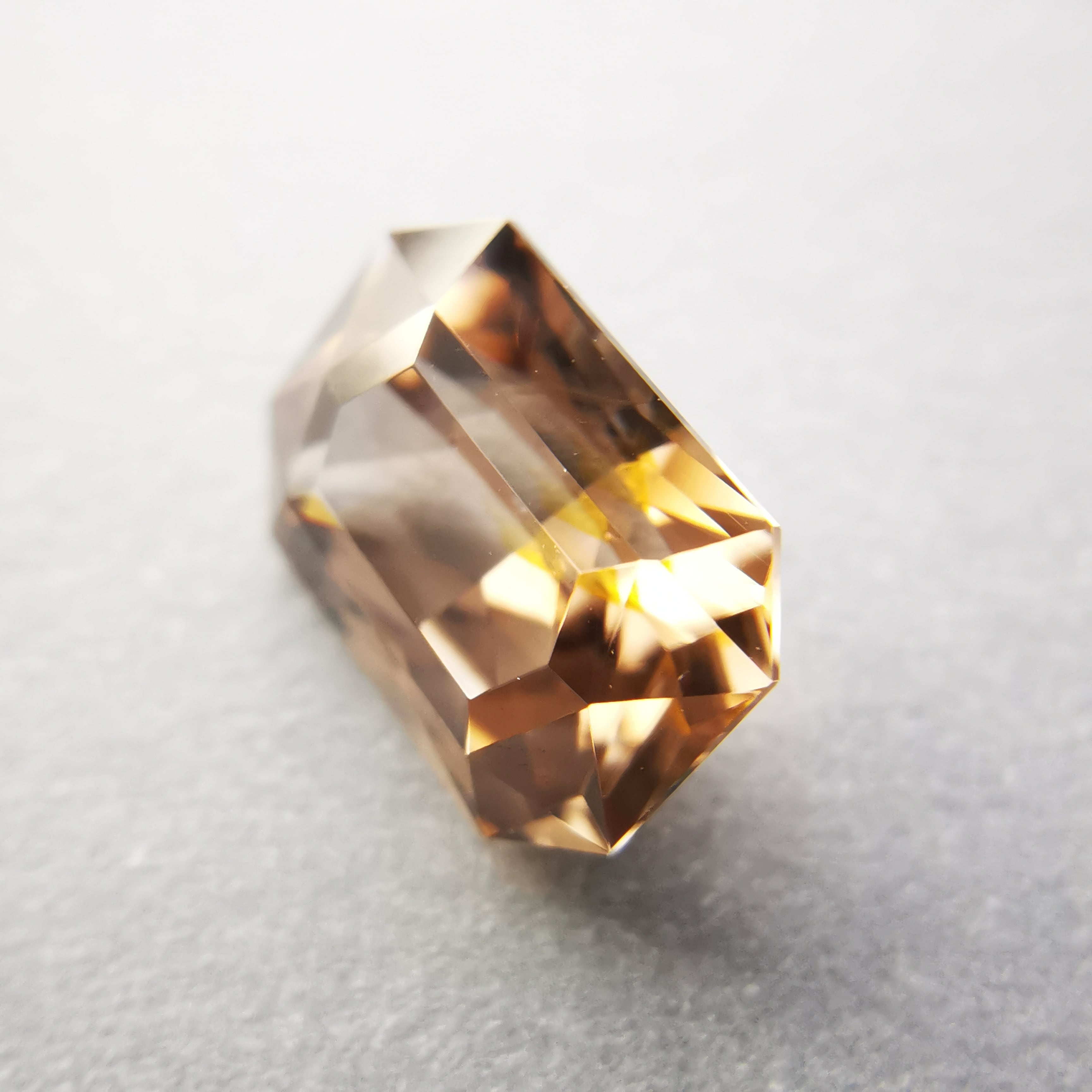 キュレットにわずかに入ったイエローの内包物が影響して、フェイスからもイエローを感じる瞬間があり、複雑な色を見せます。