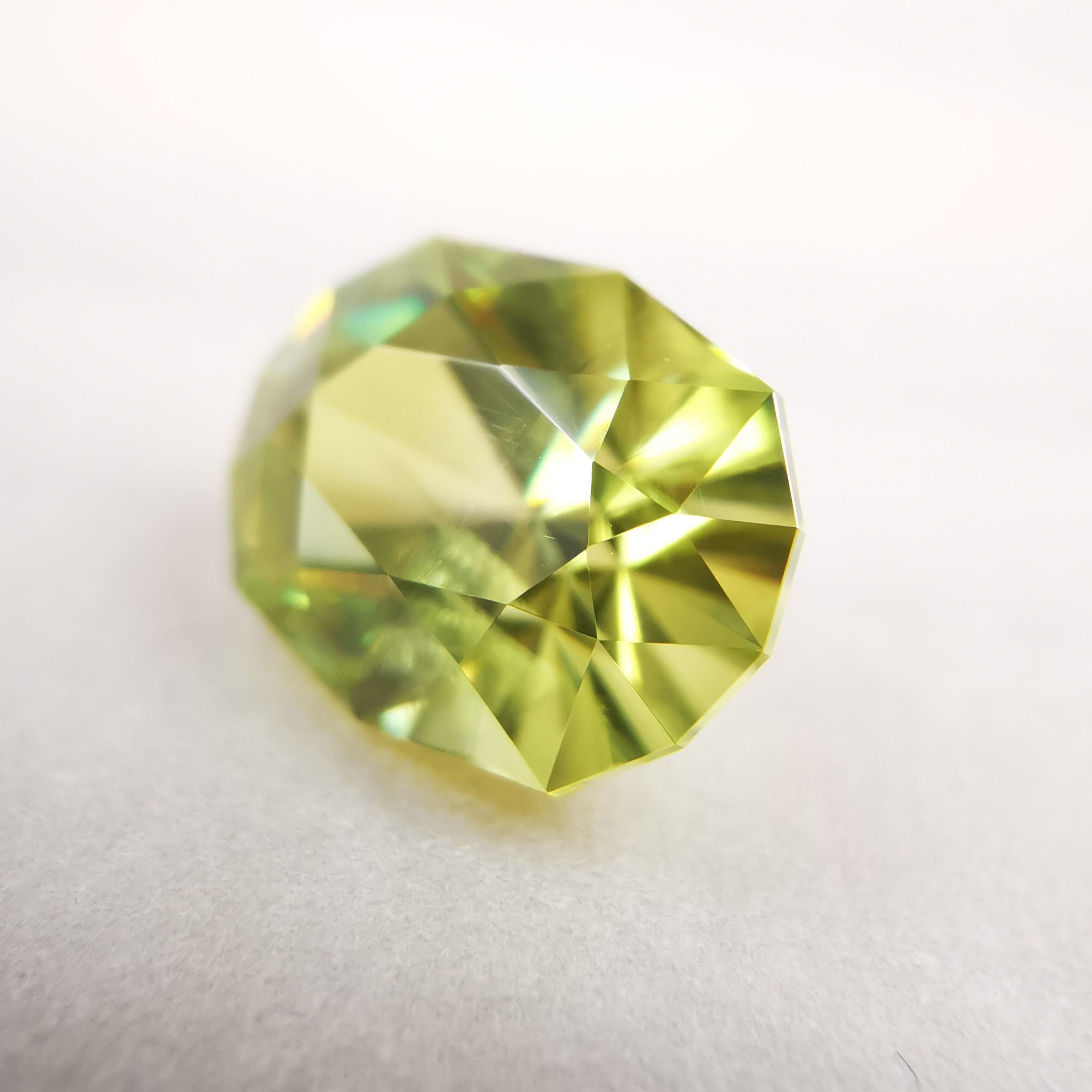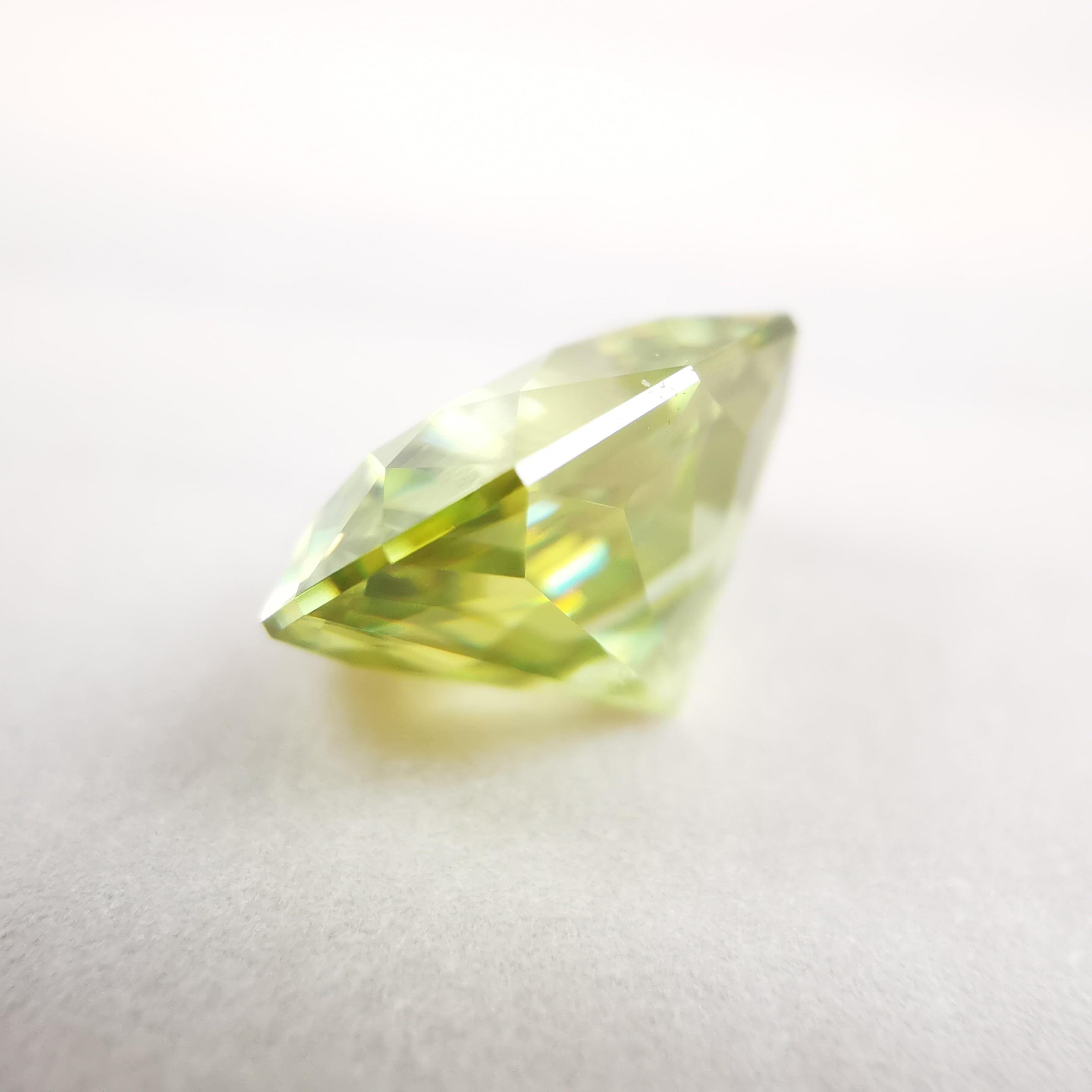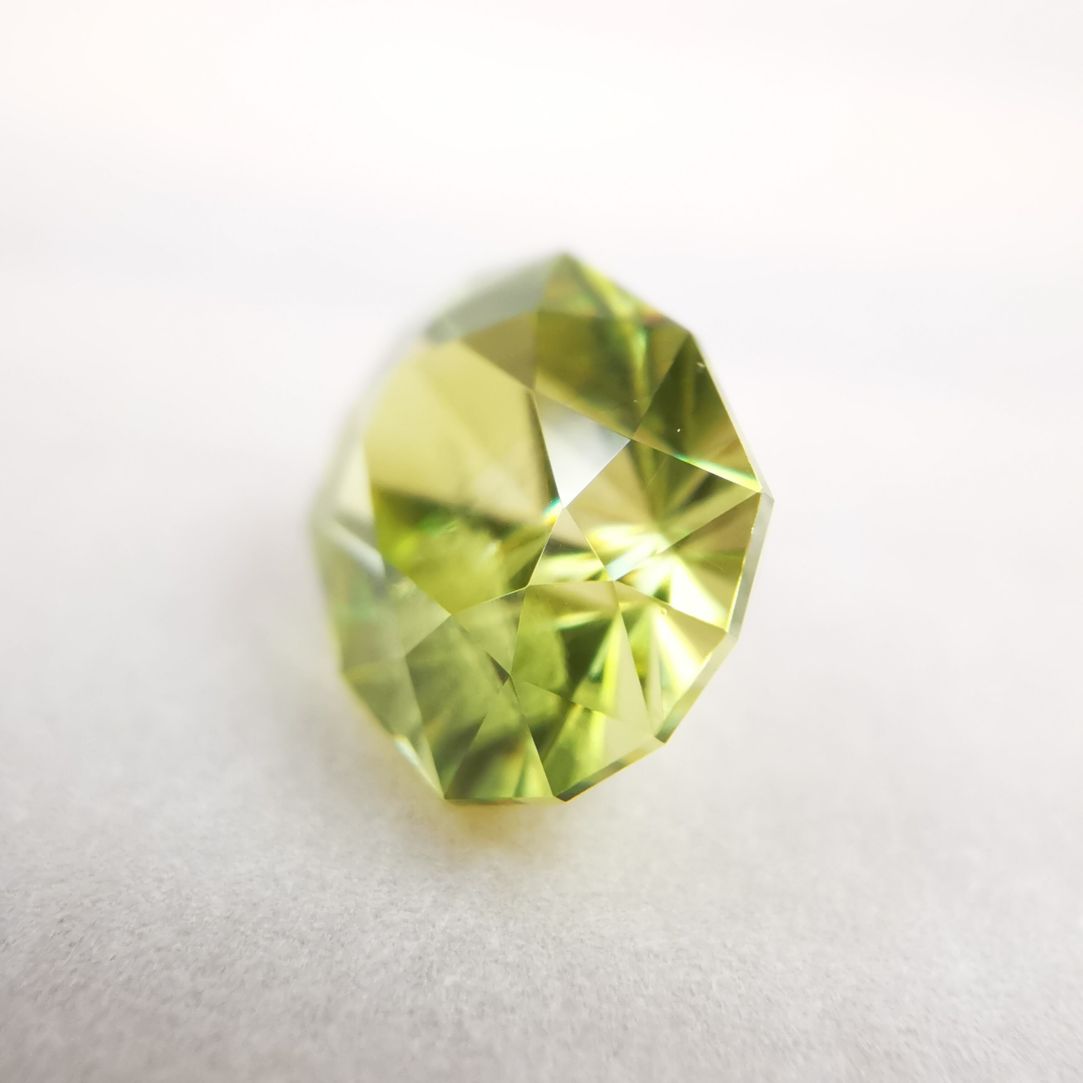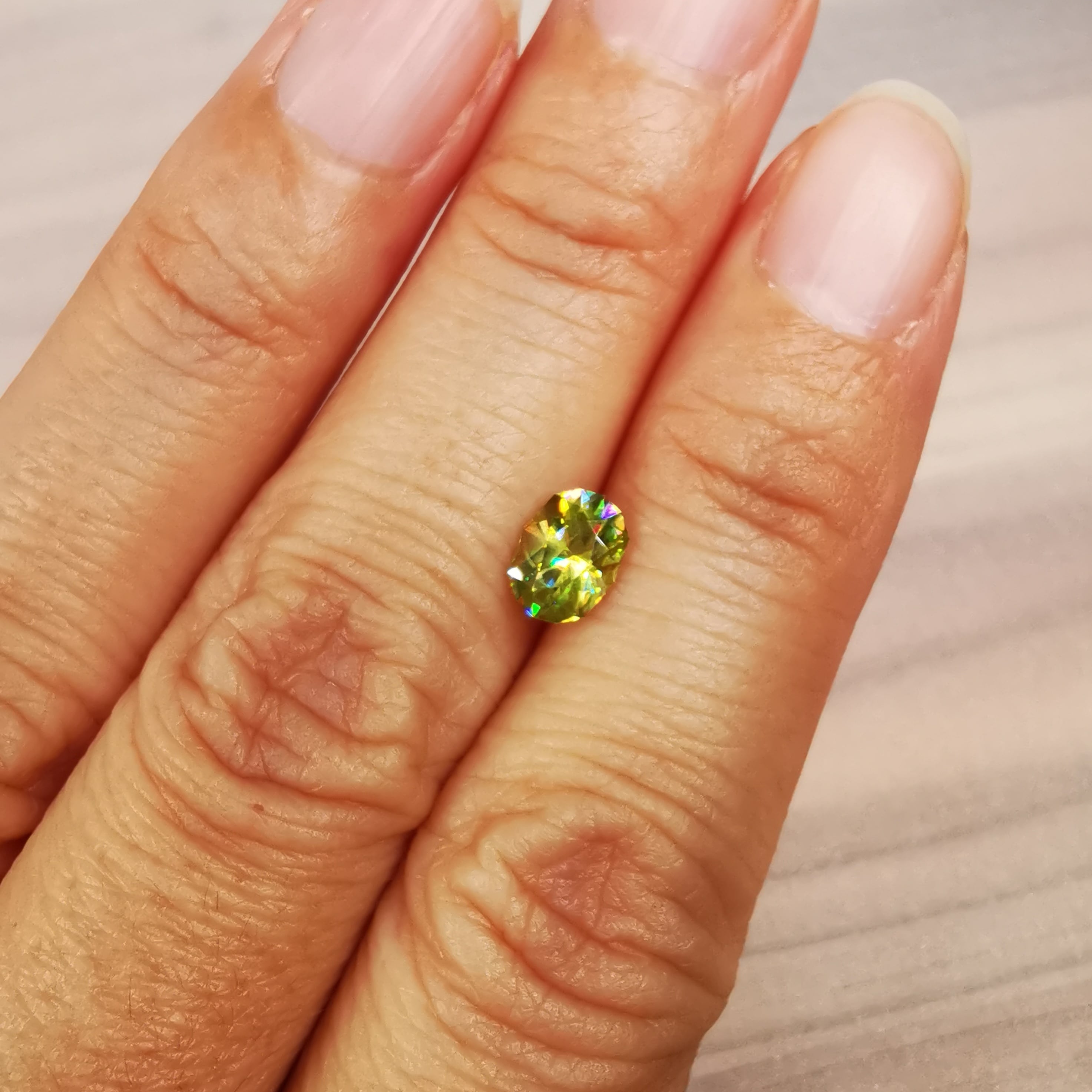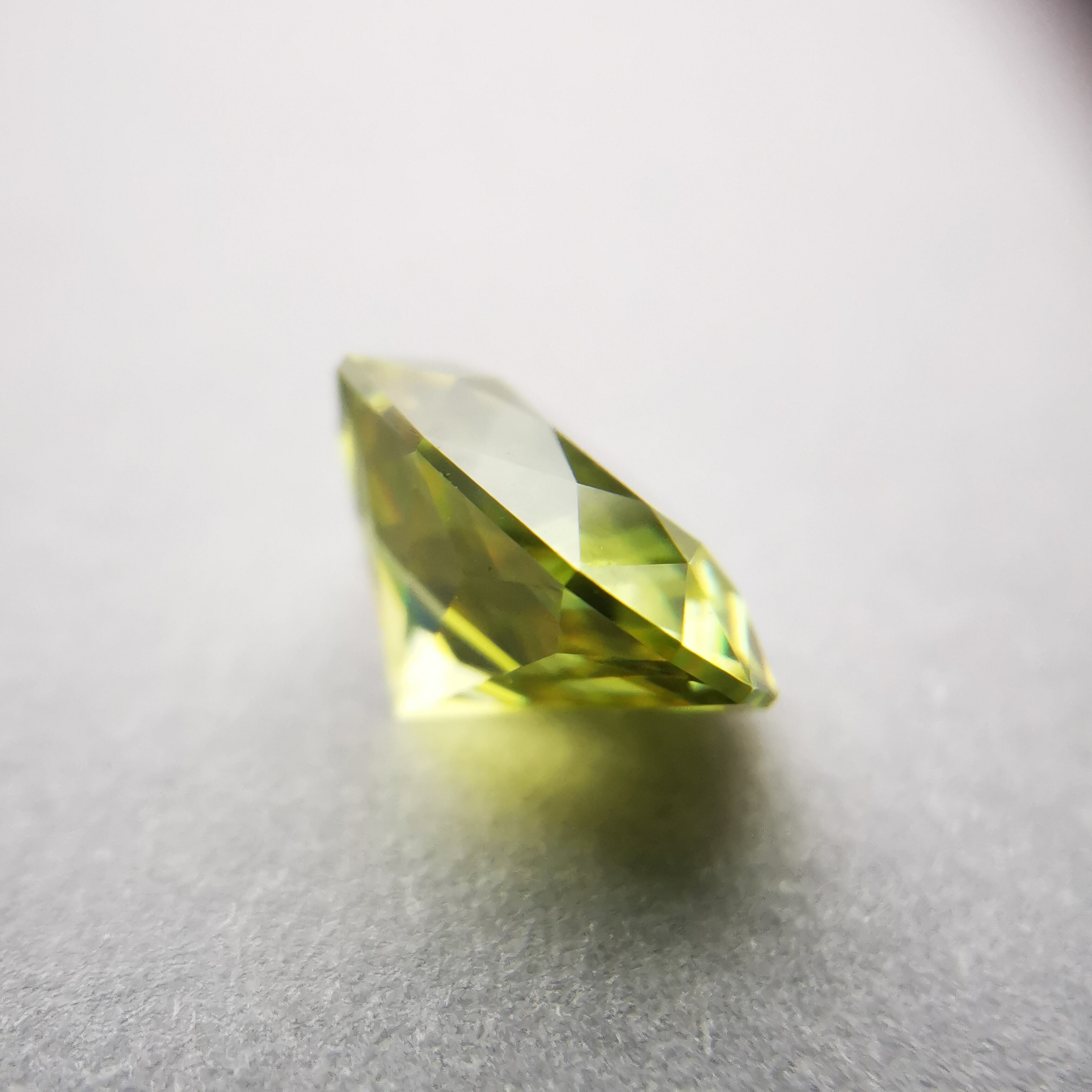 イエローグリーンの石から大きなファイアがビカビカと輝きます。