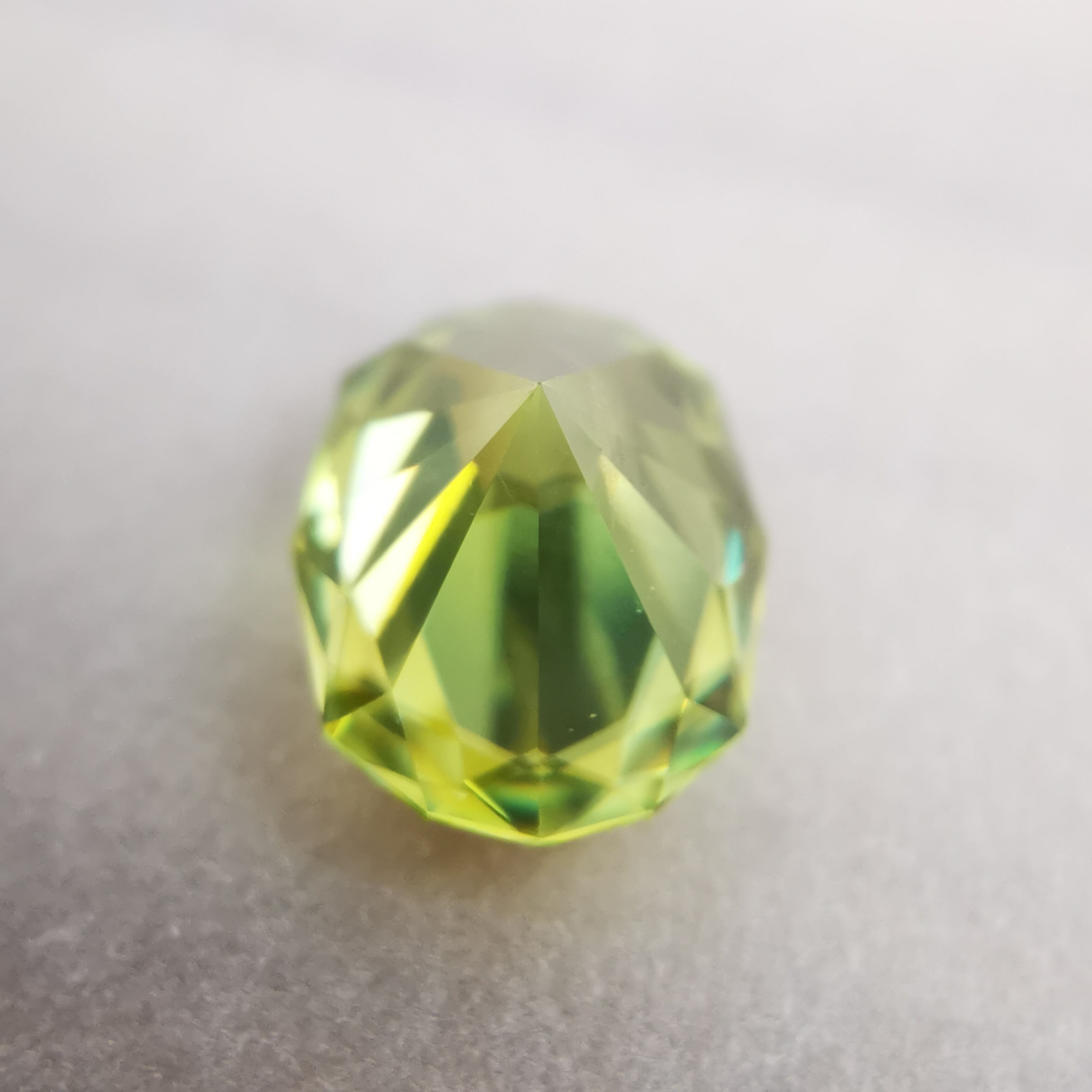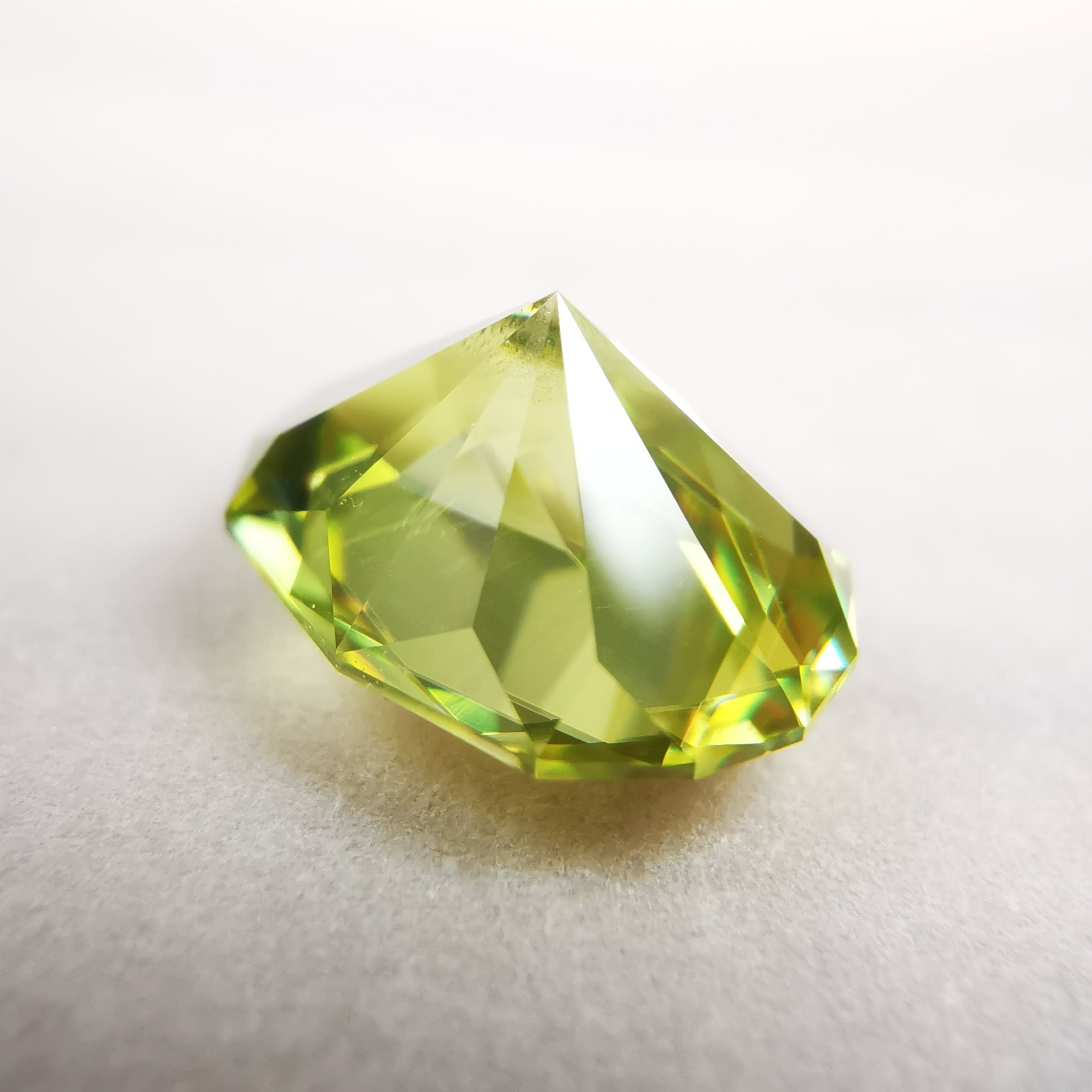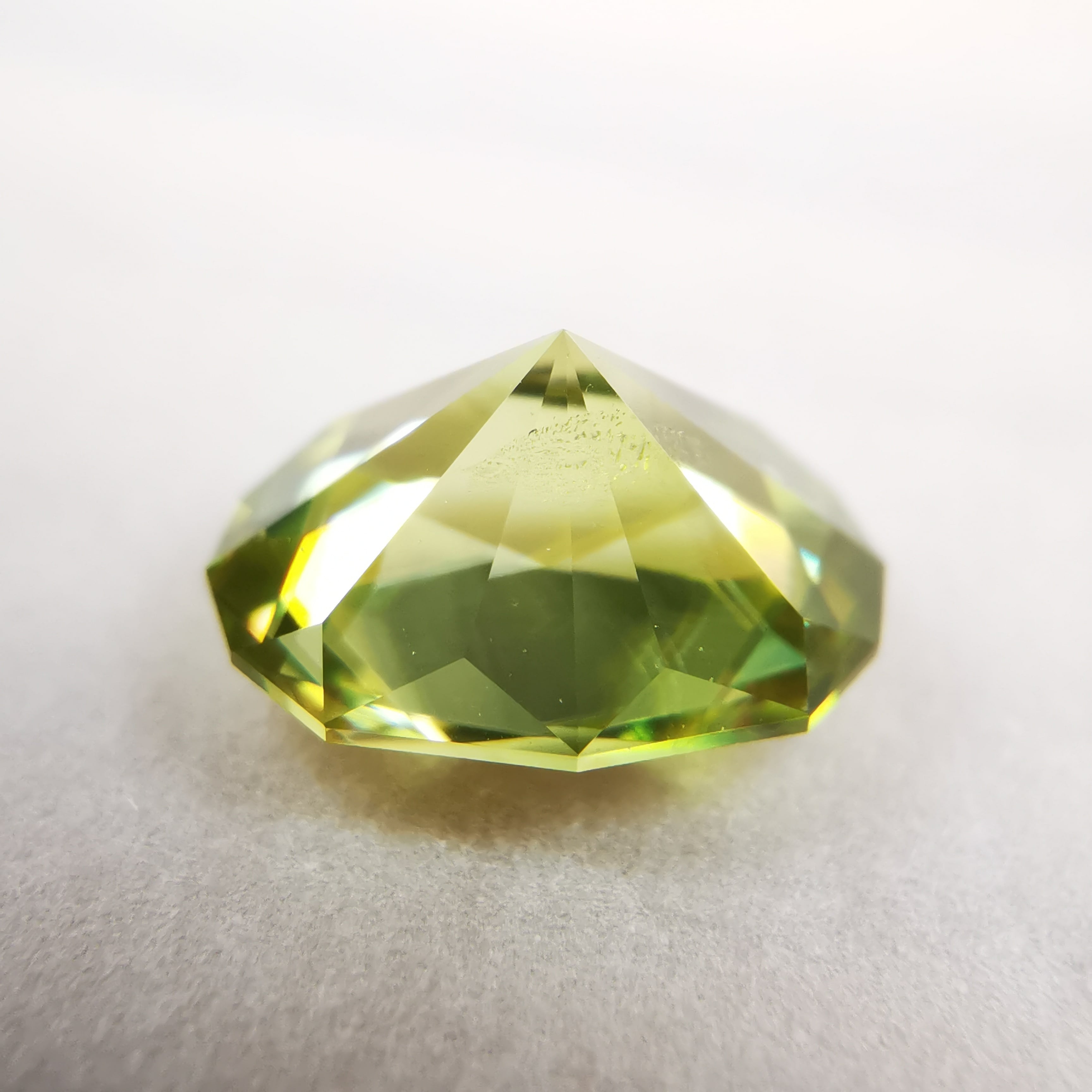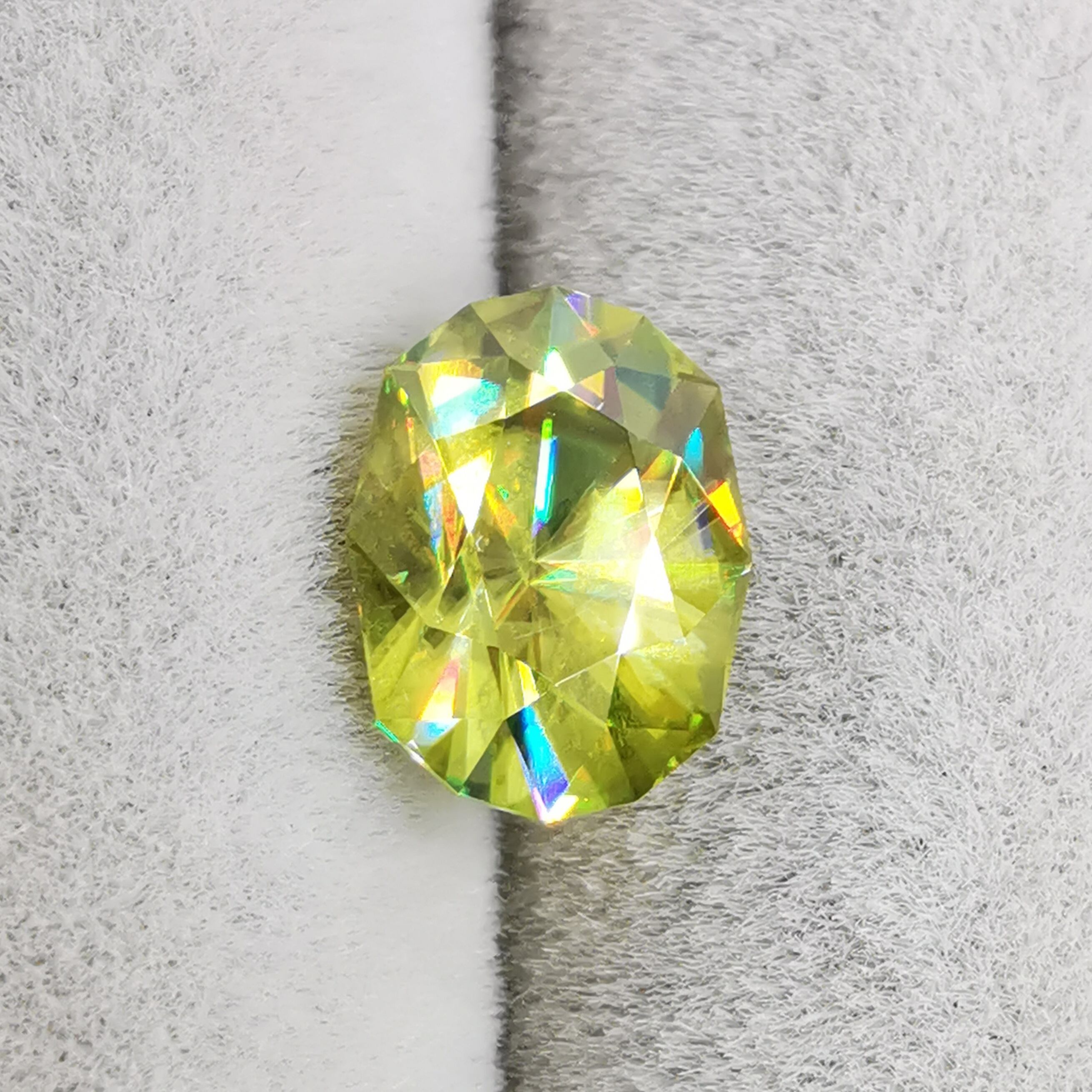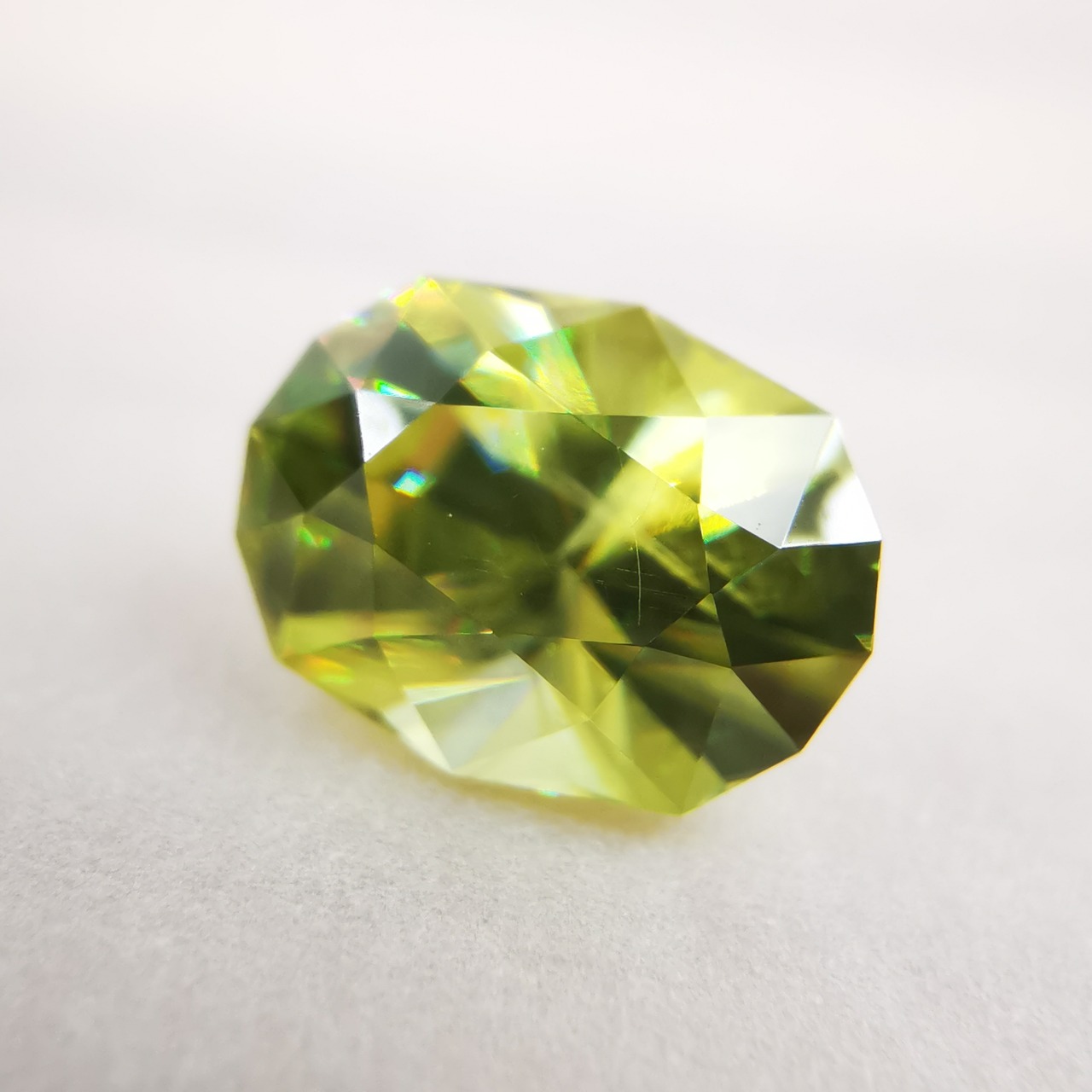 イエローグリーンの石から大きなファイアがビカビカと輝きます。