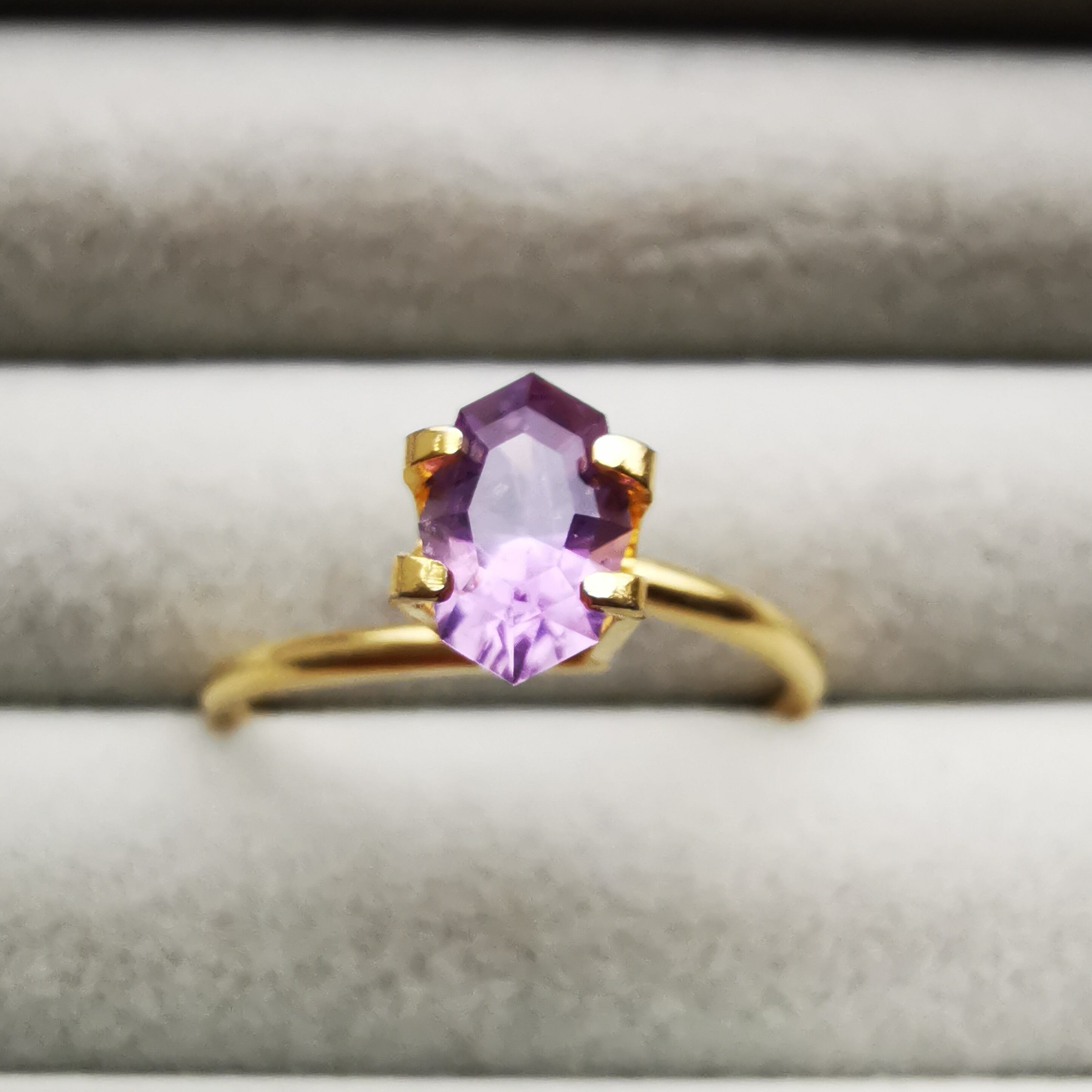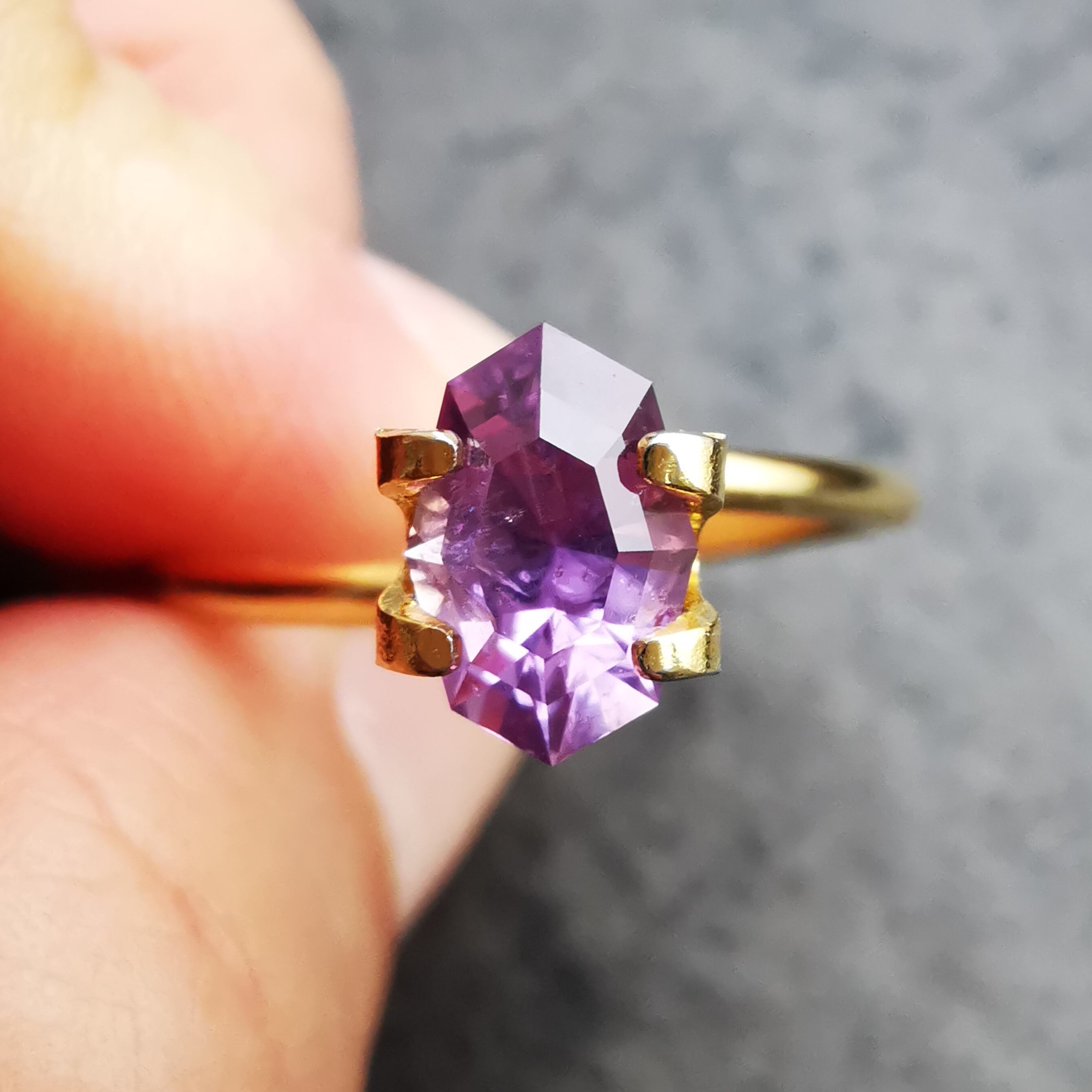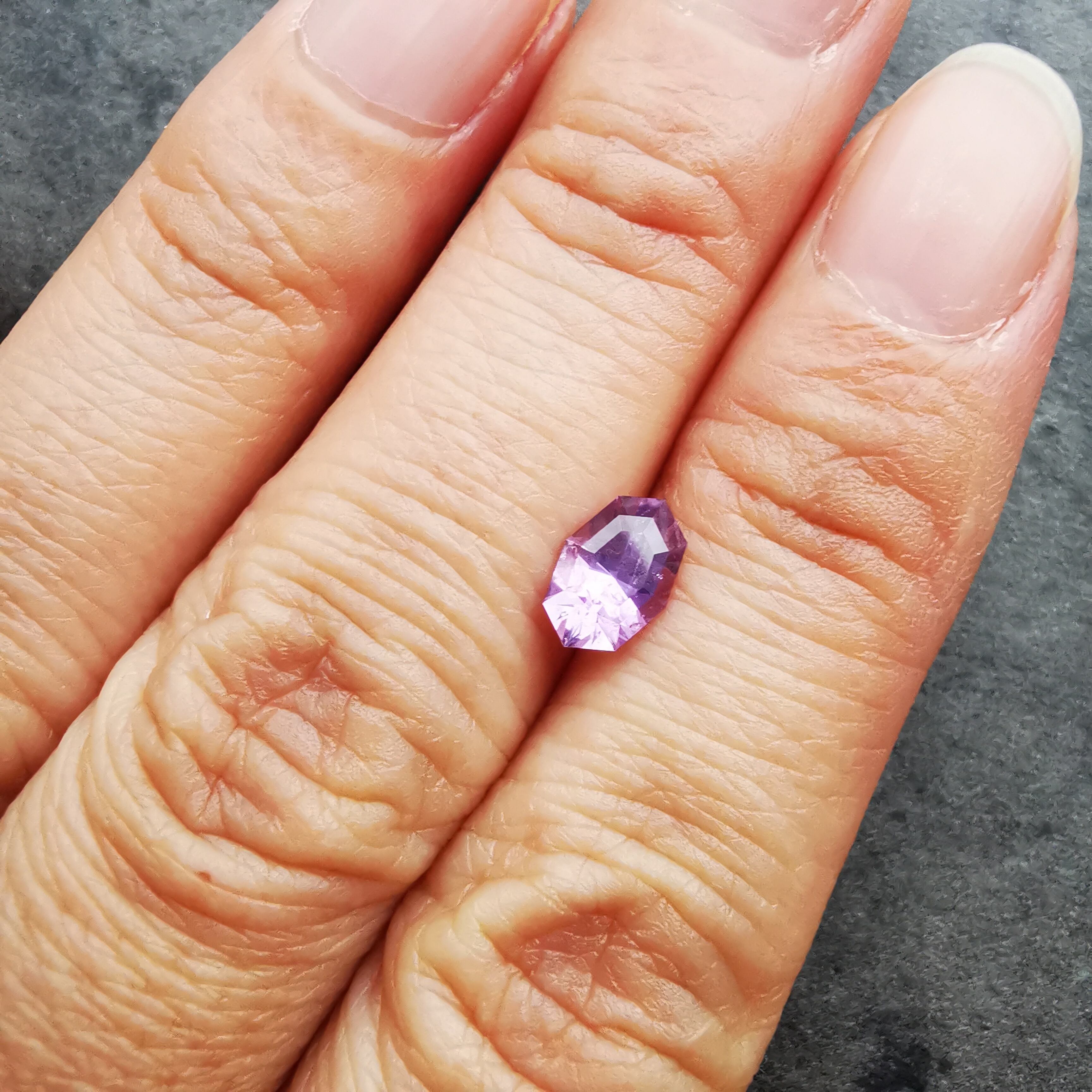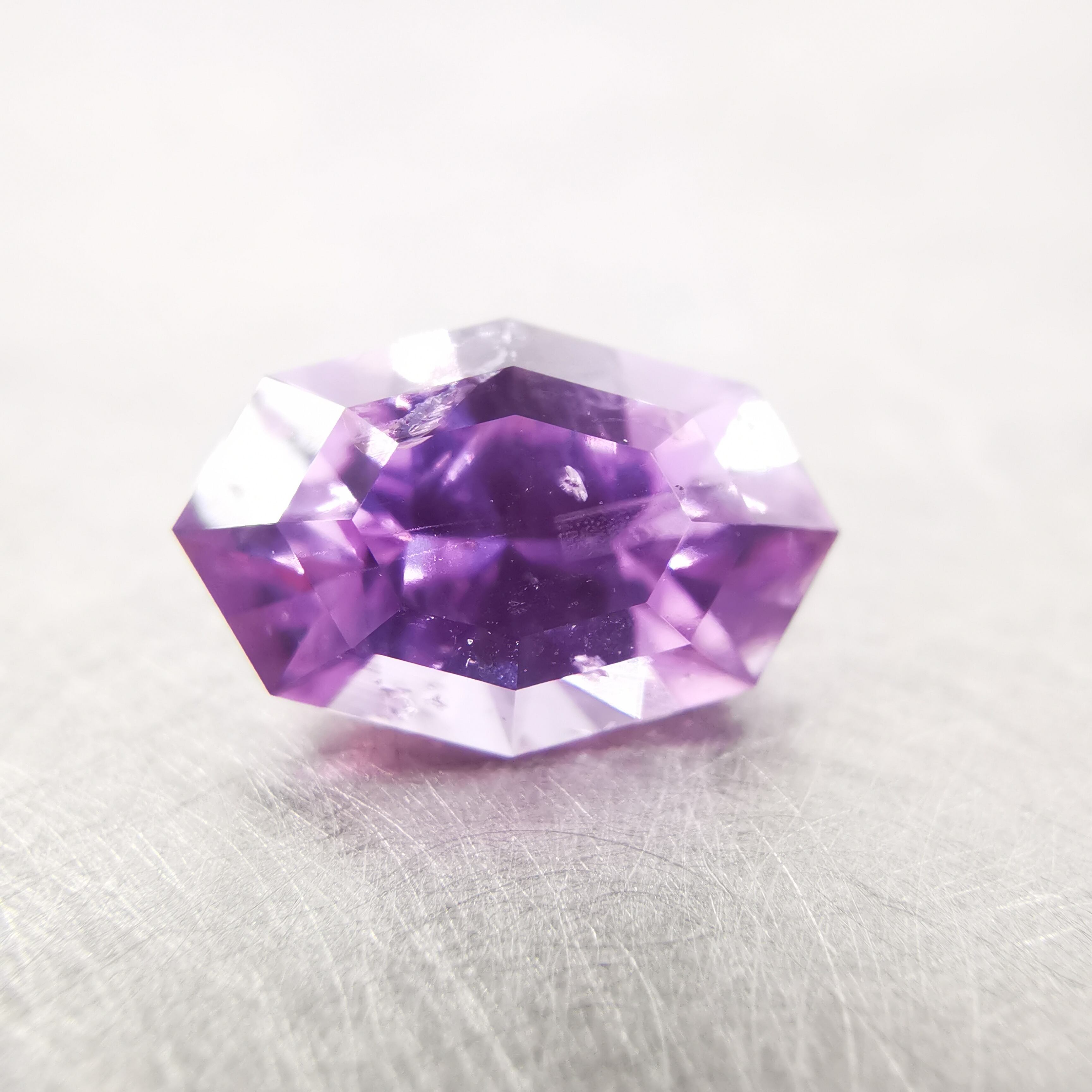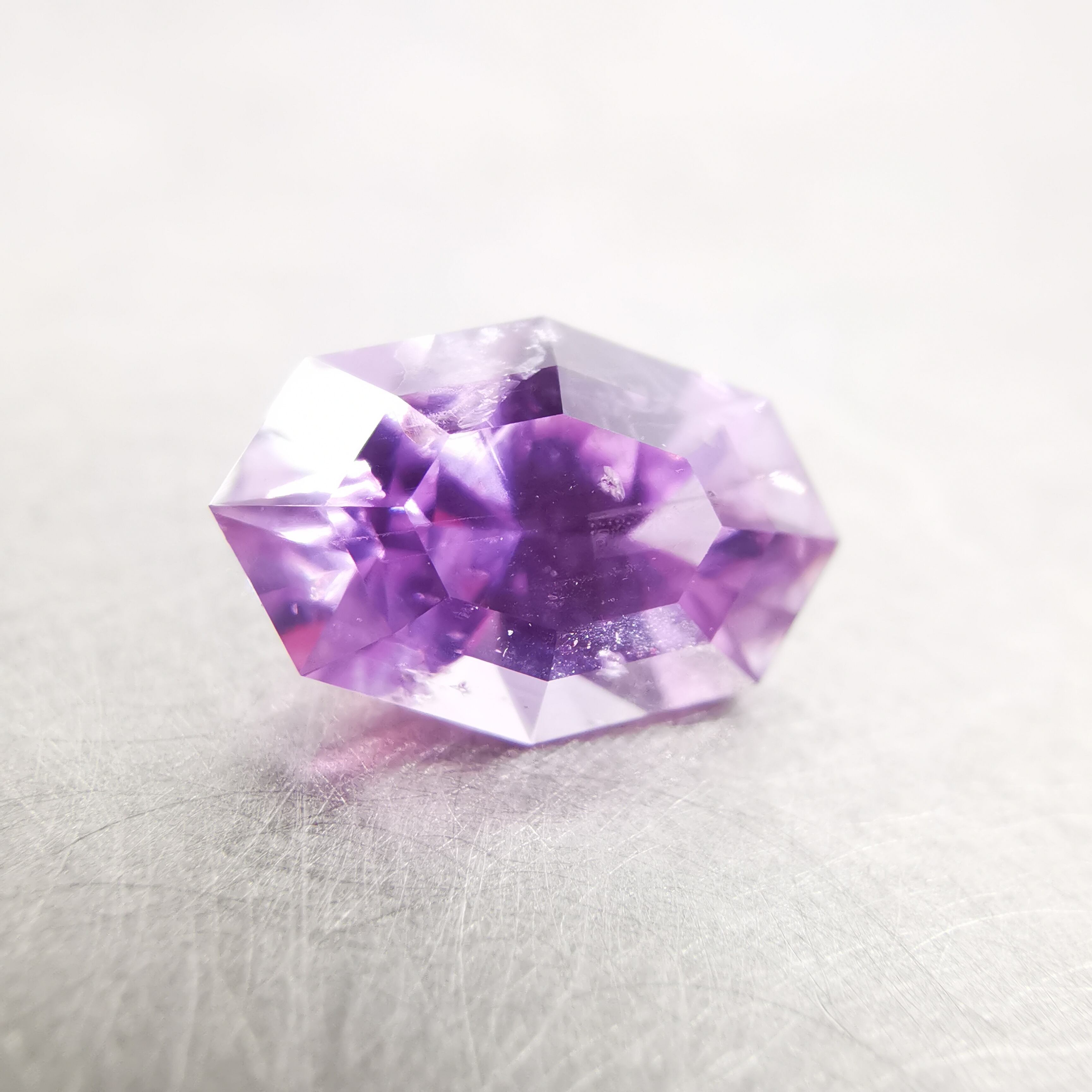 近付いて撮影すると、どうしても内包物が目立ってしまいますが、シルキーな内包物のせいか、指に乗せた時にパッと明るく輝き、発色も良いので、お仕立てで映える一石かと思います。