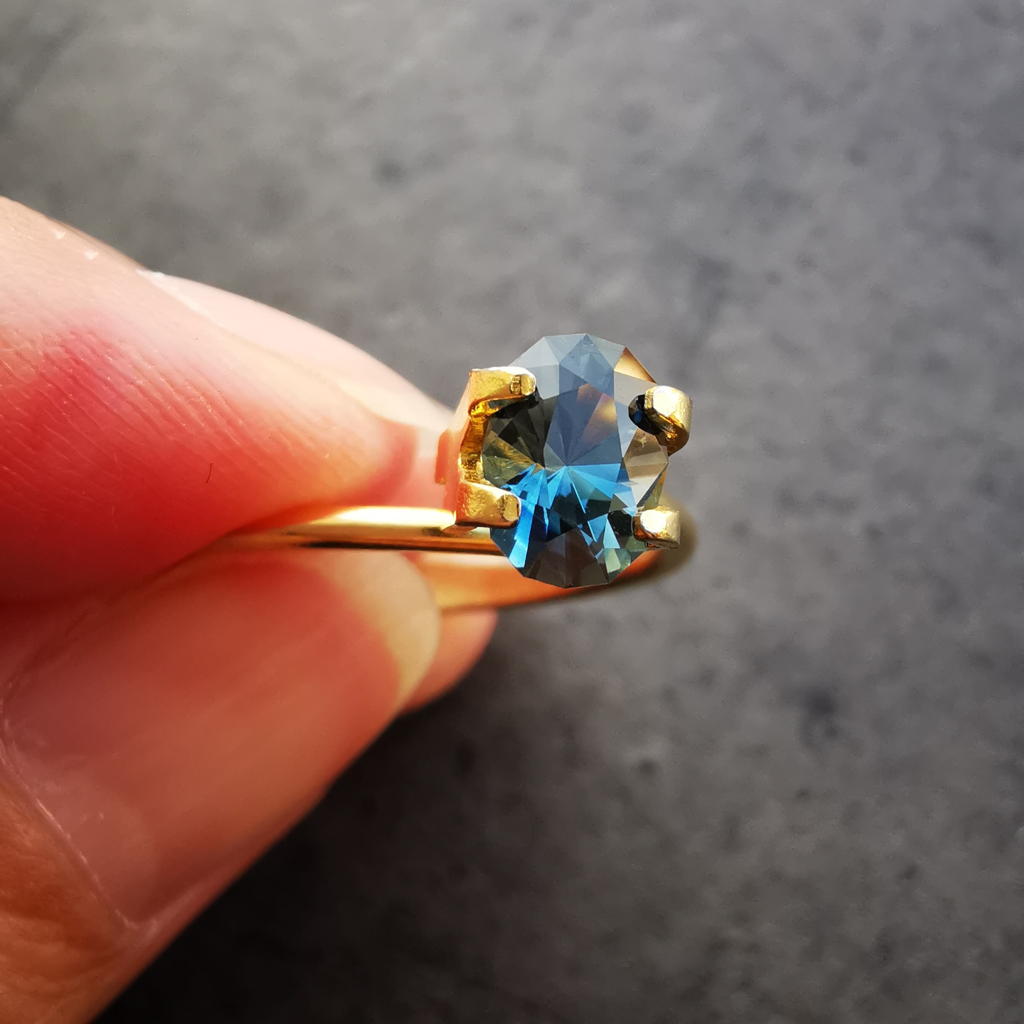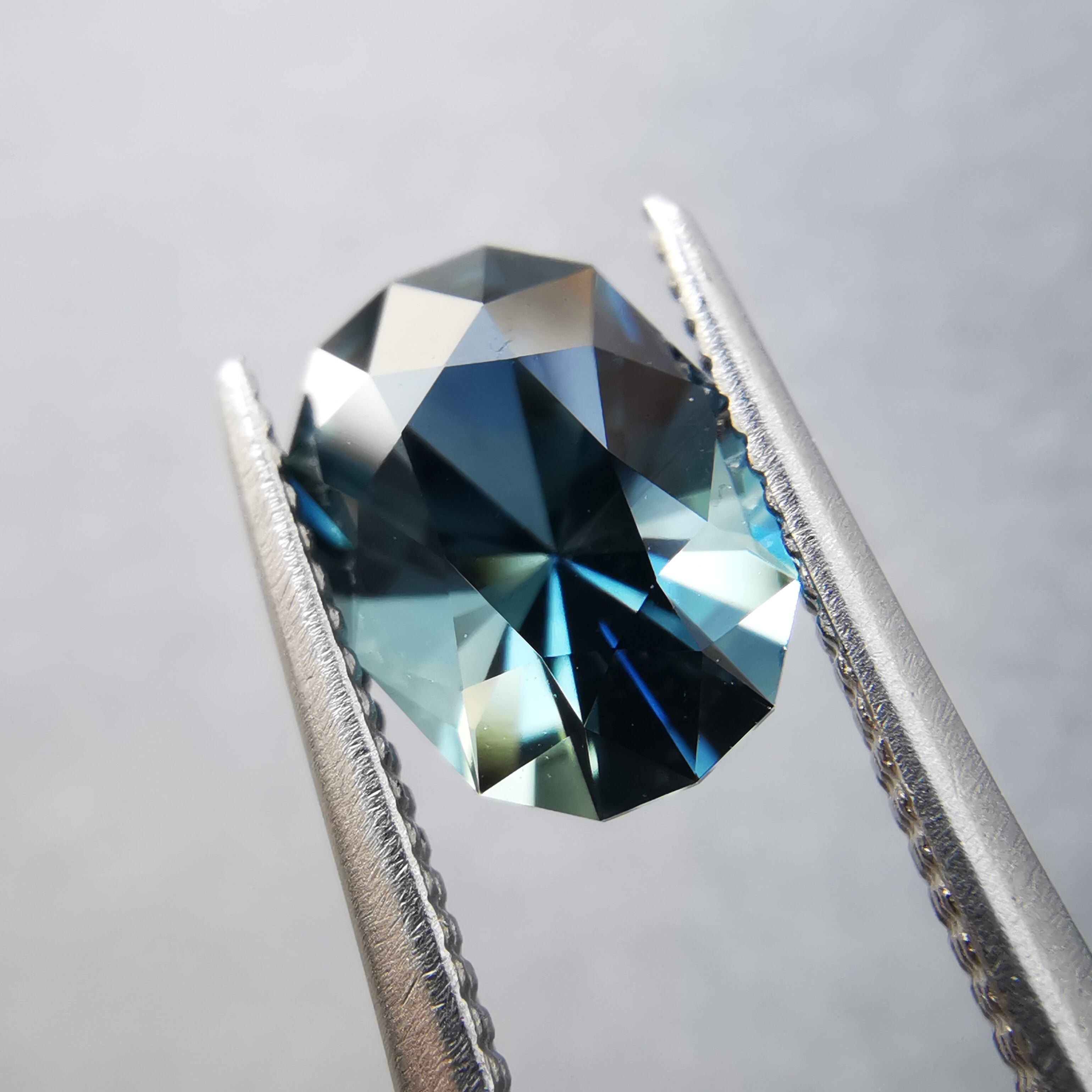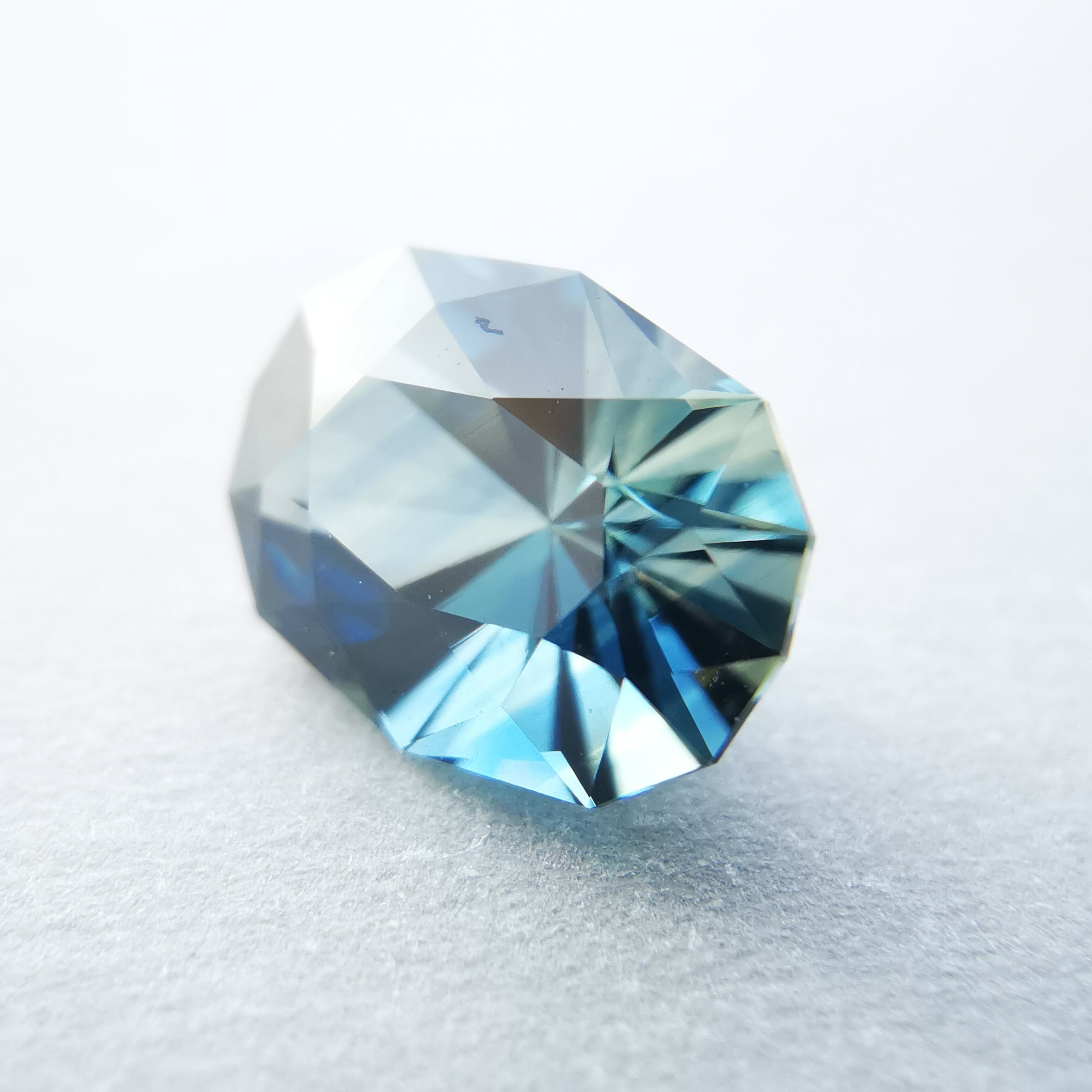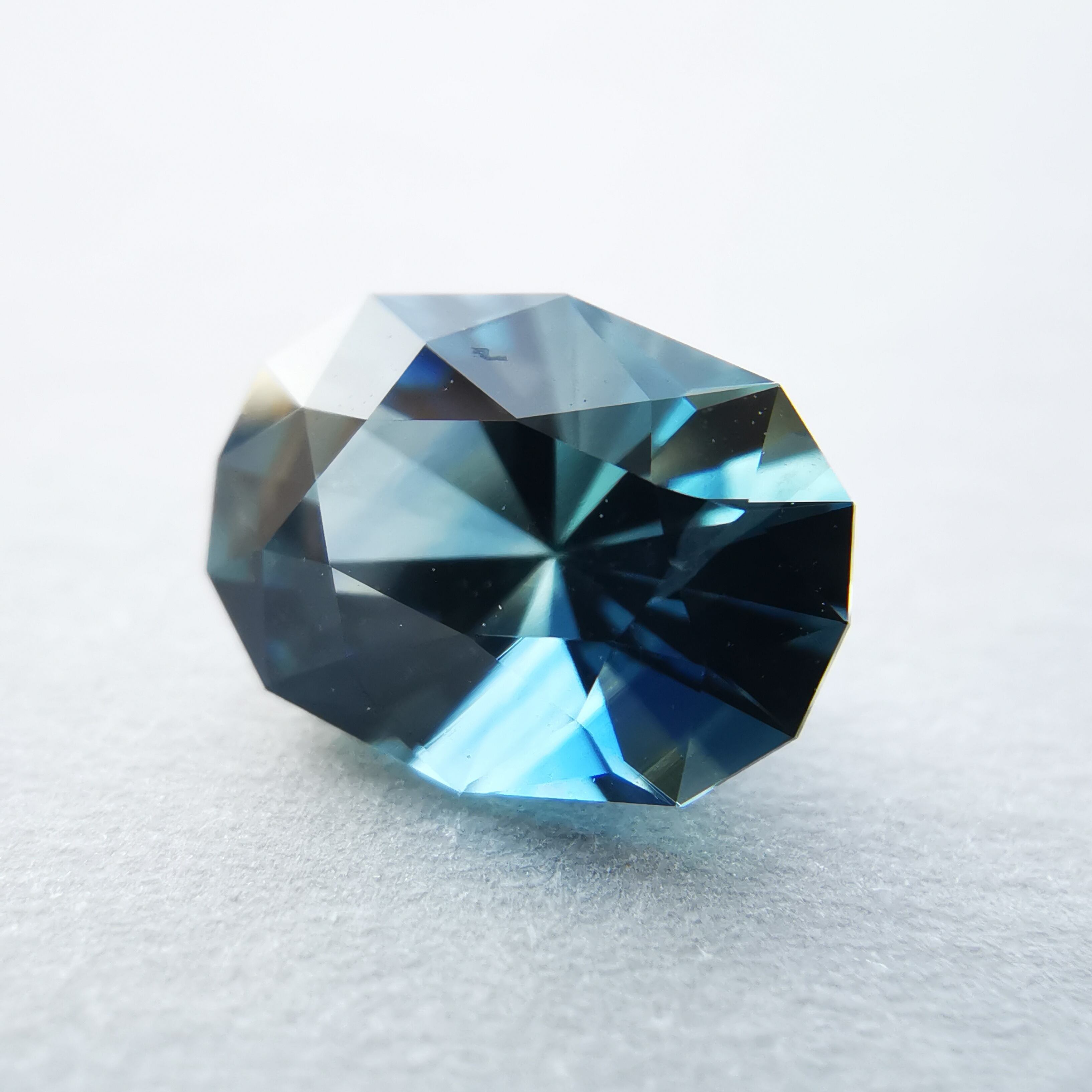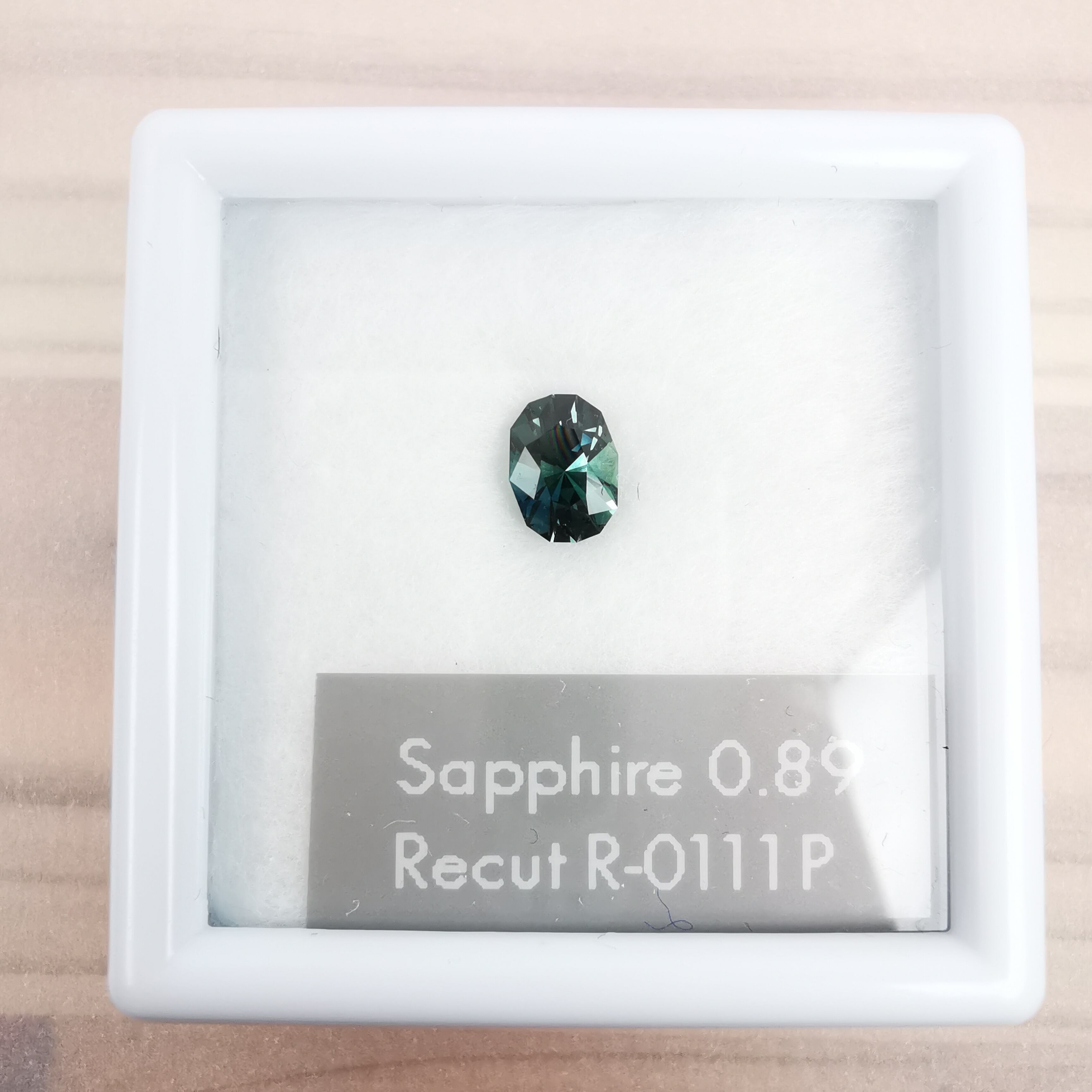 照明の元ではグリーン系、自然光ではブルー系のティールカラーのサファイアです。