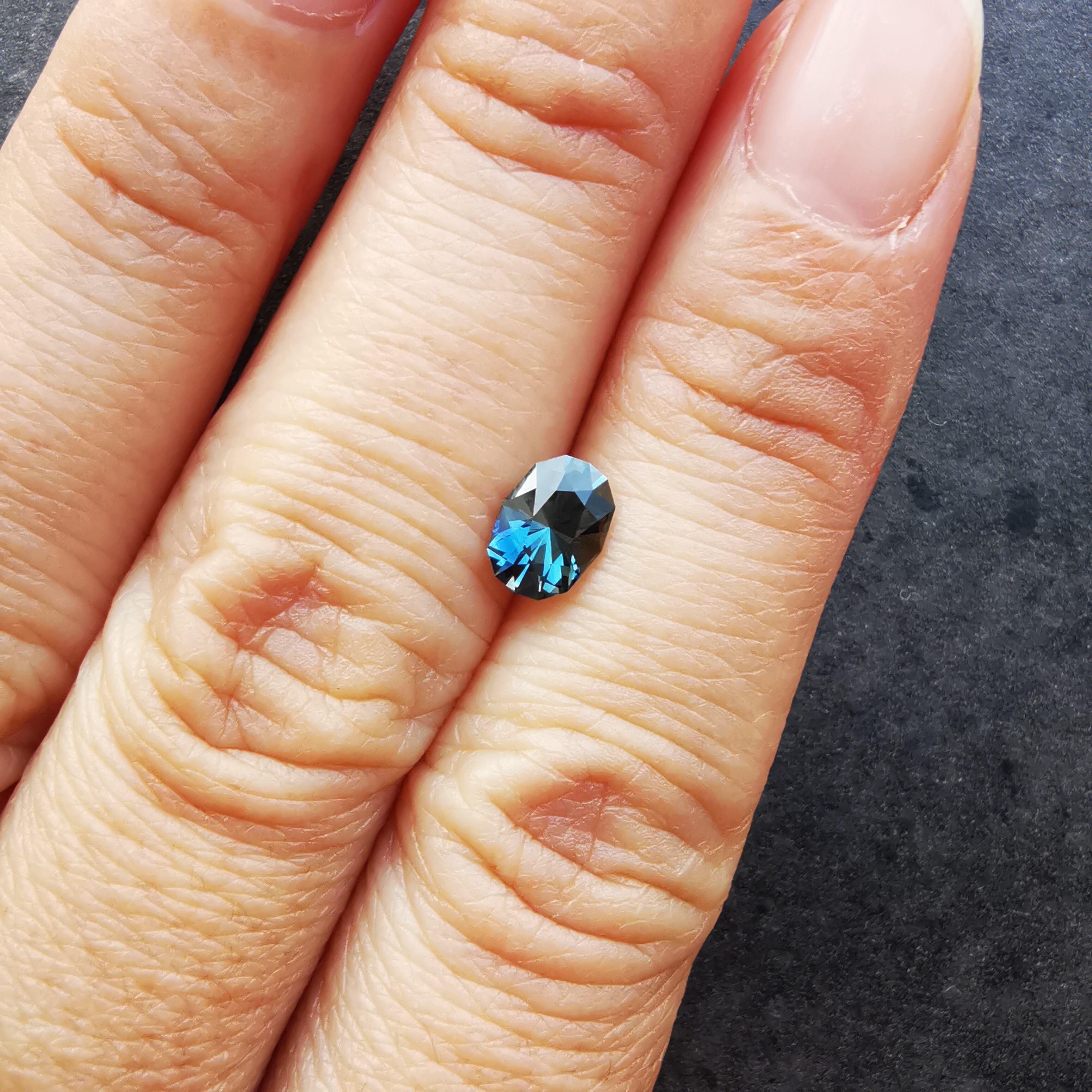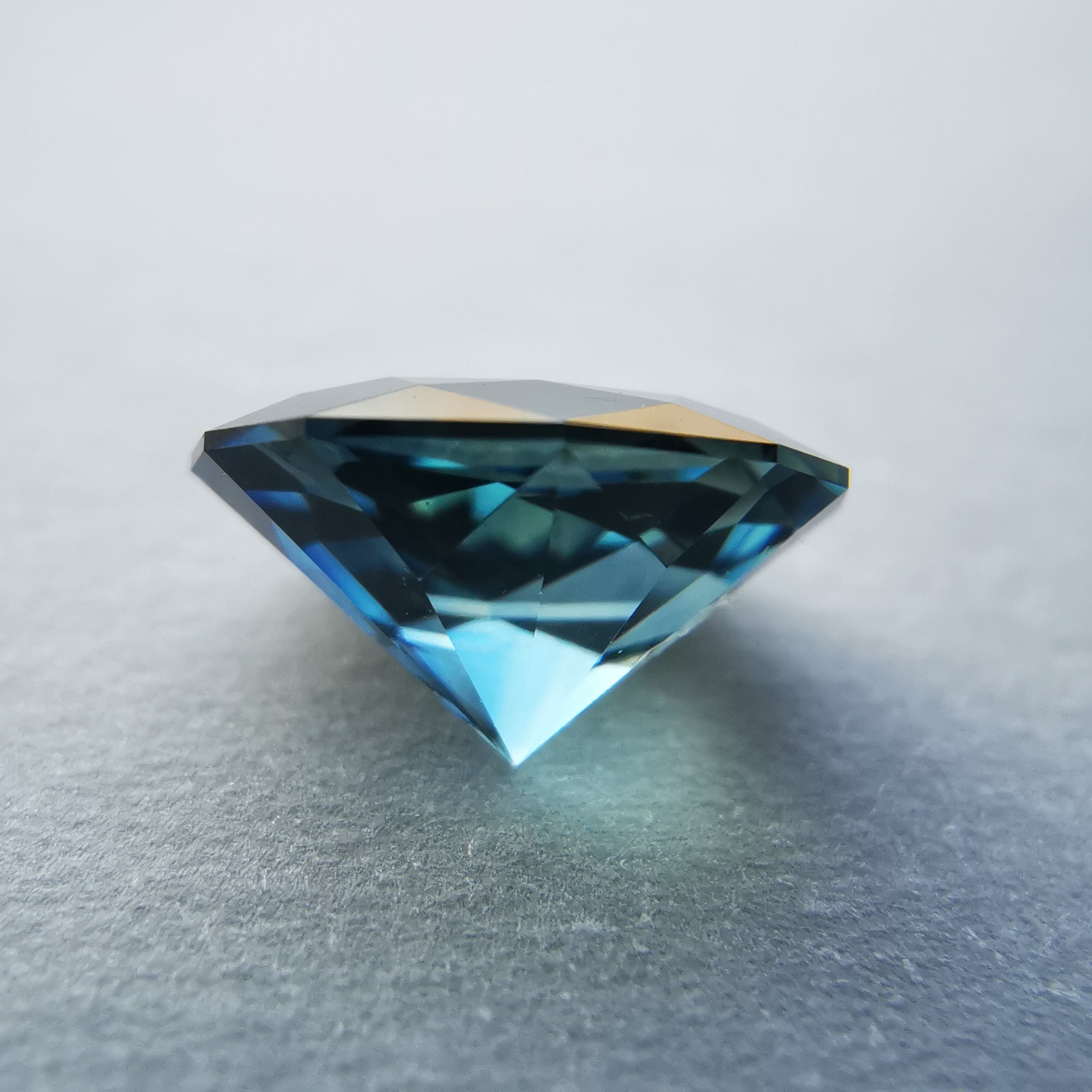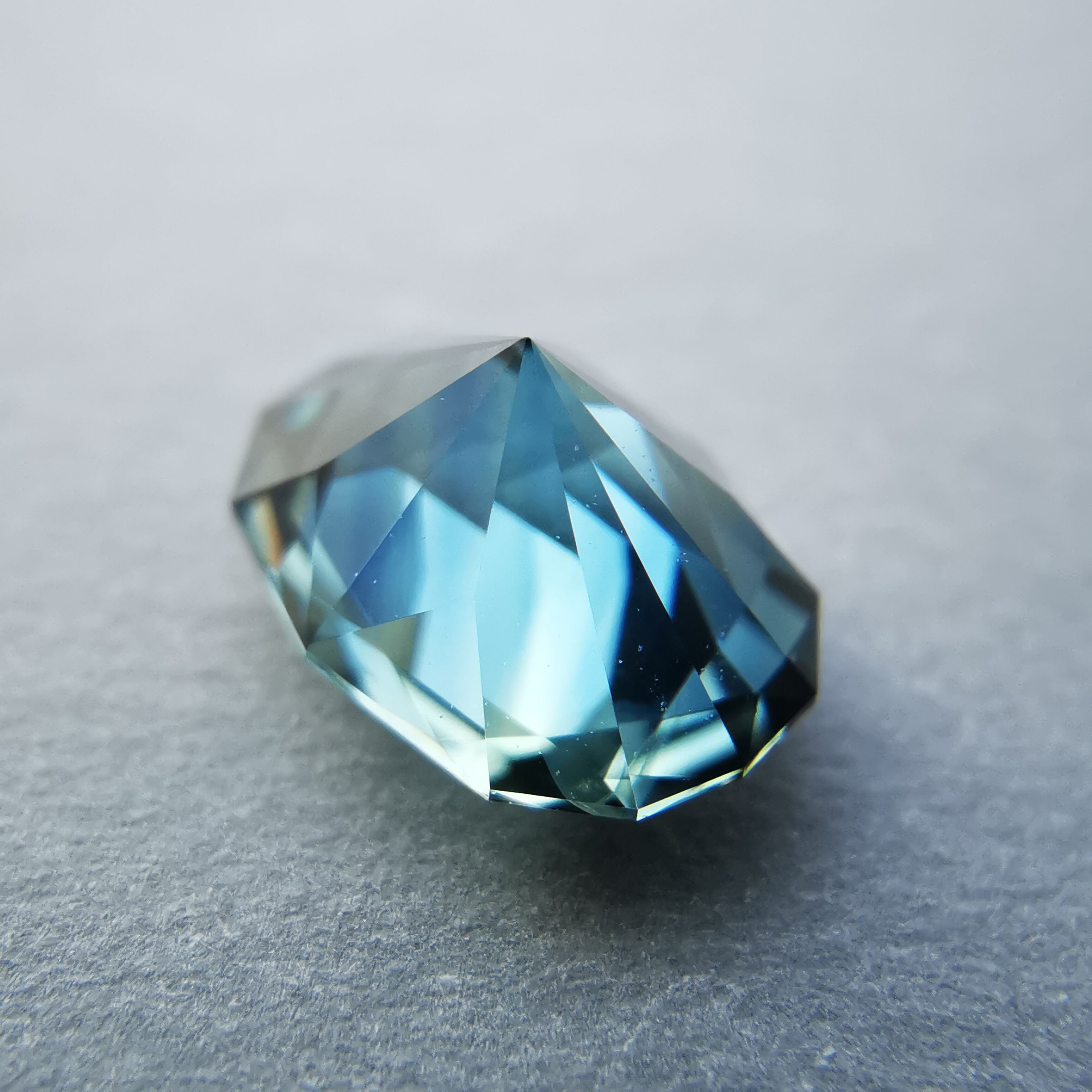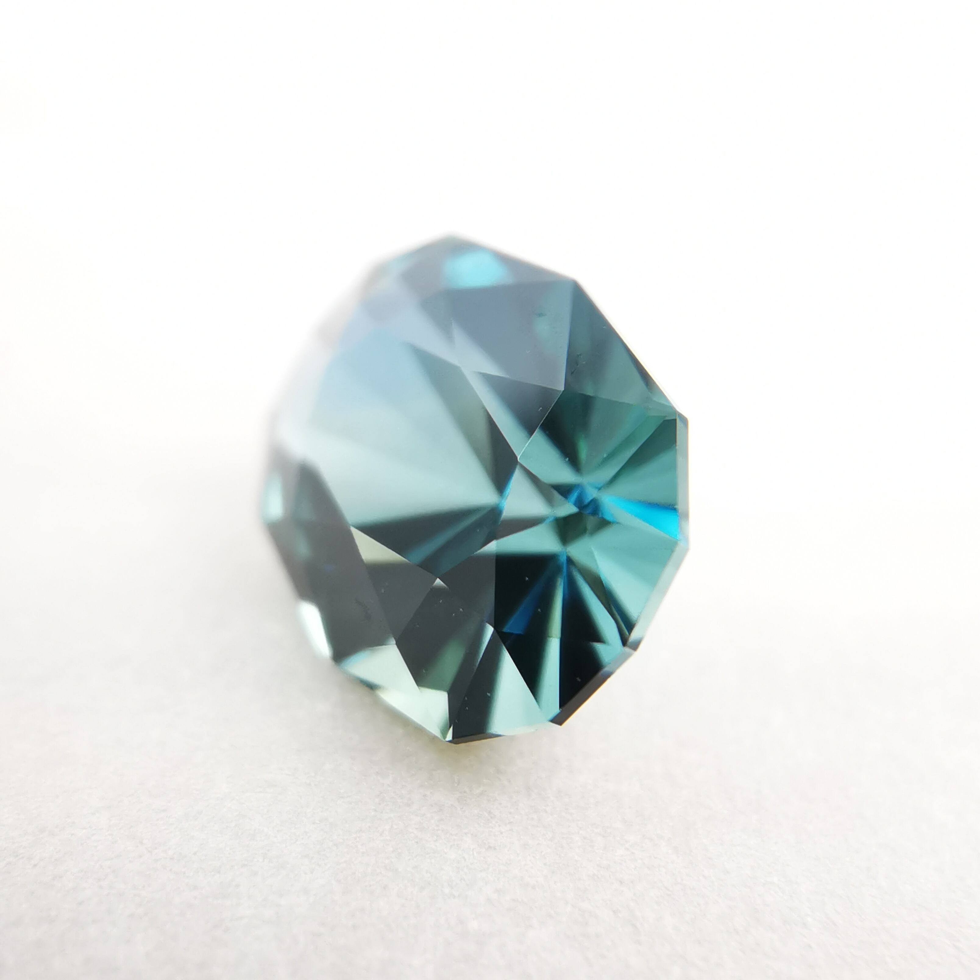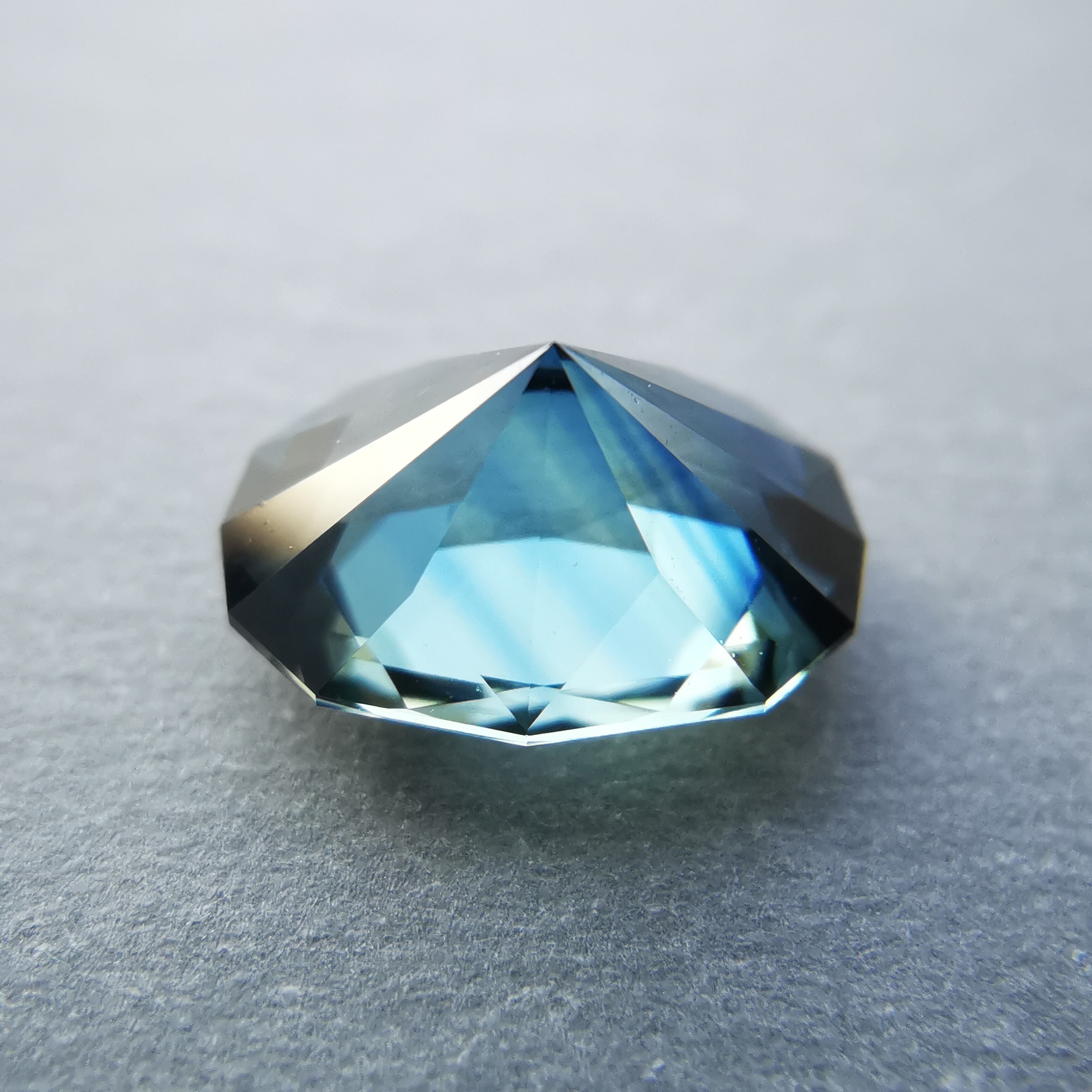 照明の元ではグリーン系、自然光ではブルー系のティールカラーのサファイアです。