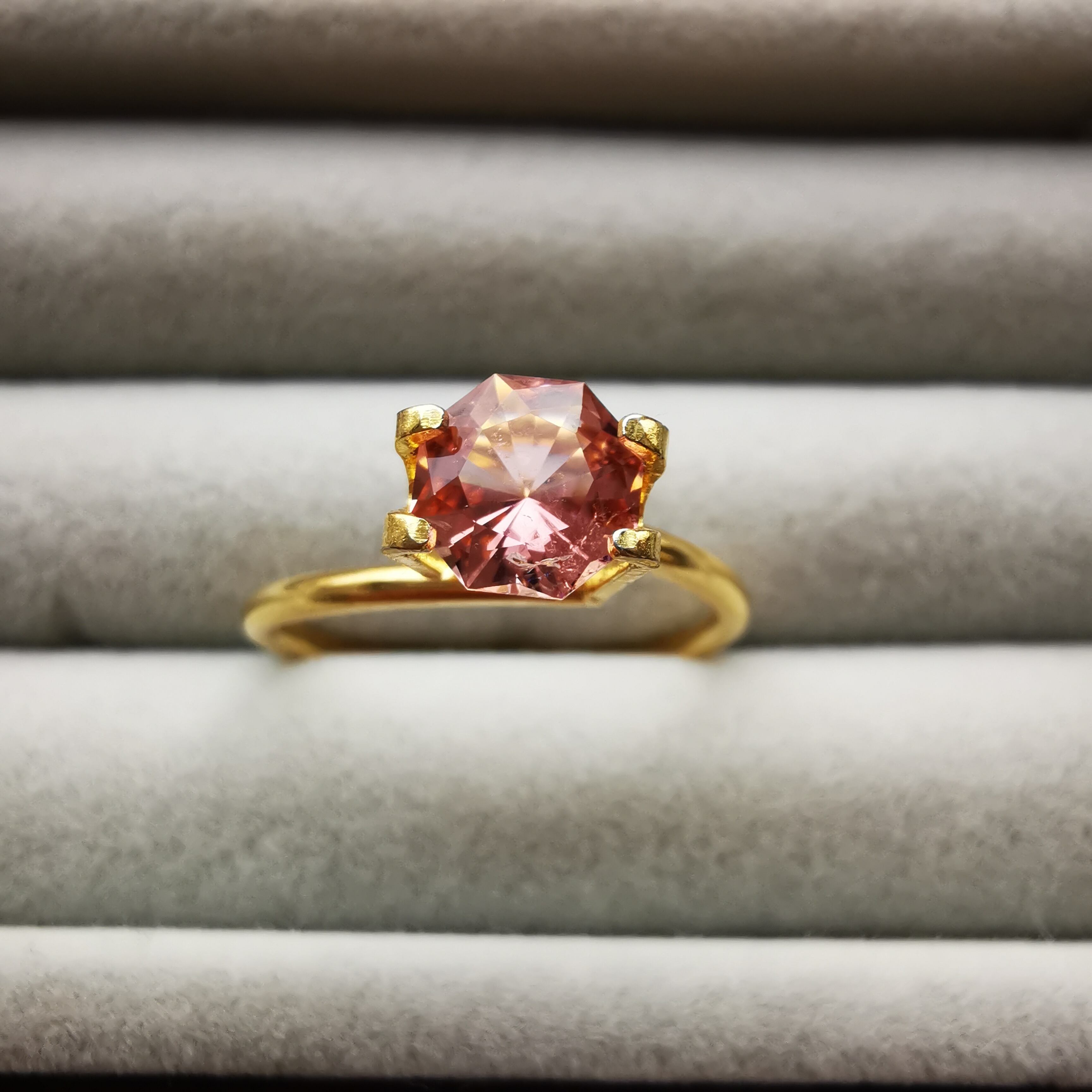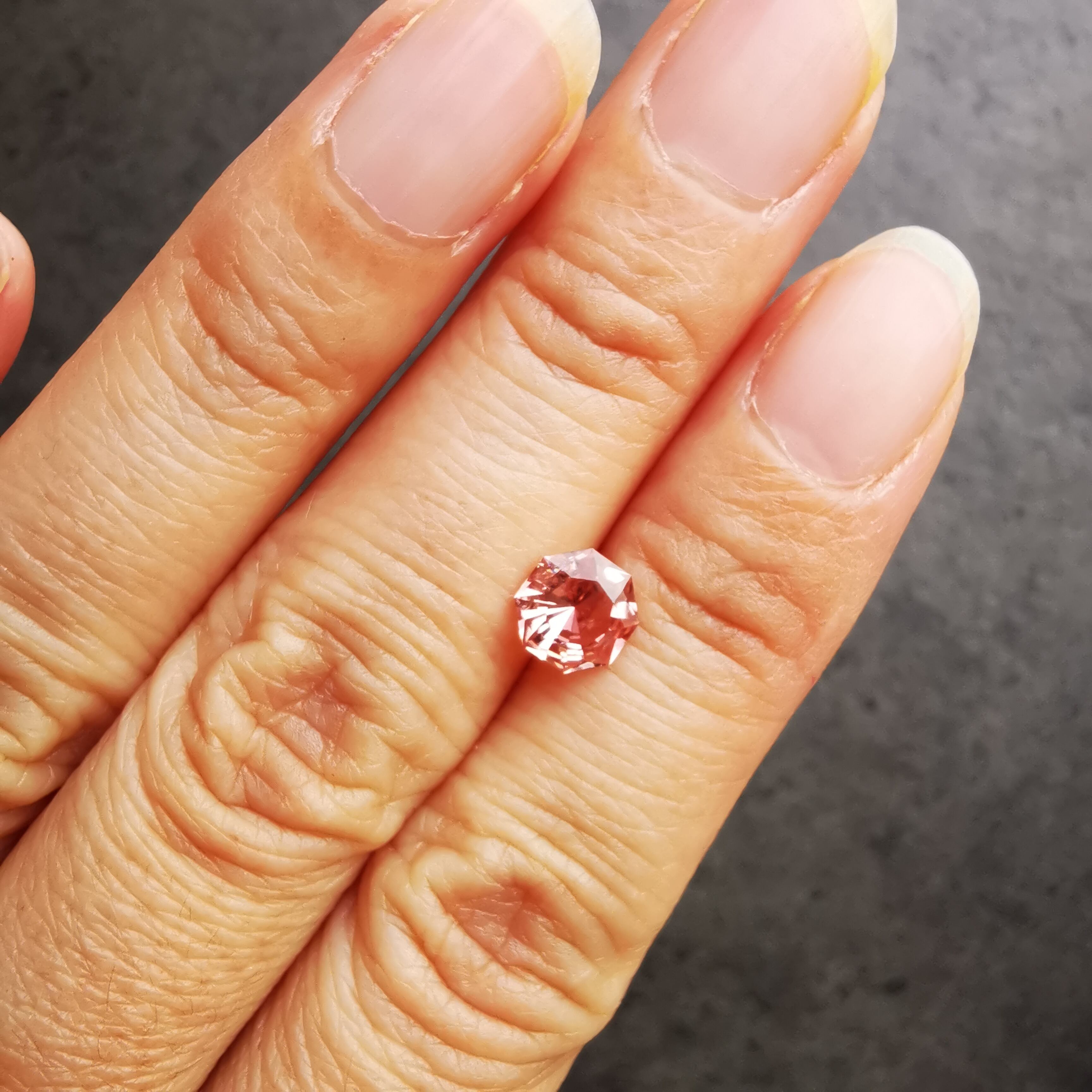 見ているだけでこちらの心まで照らすような、パッと明るいオレンジピンク、パパラチアカラーのトルマリンです。