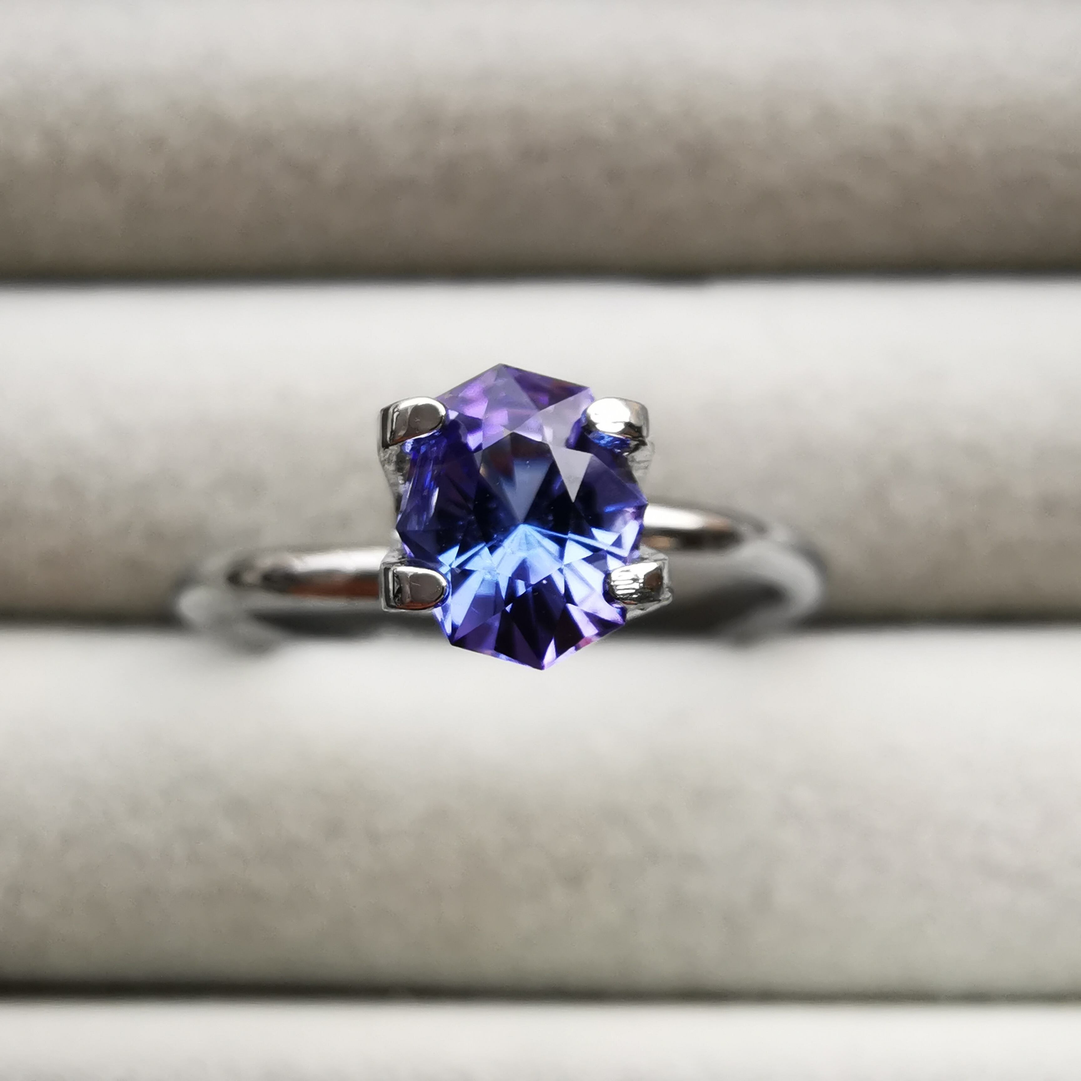 タンザナイトらしい、パープルを感じる深く強いブルーです。