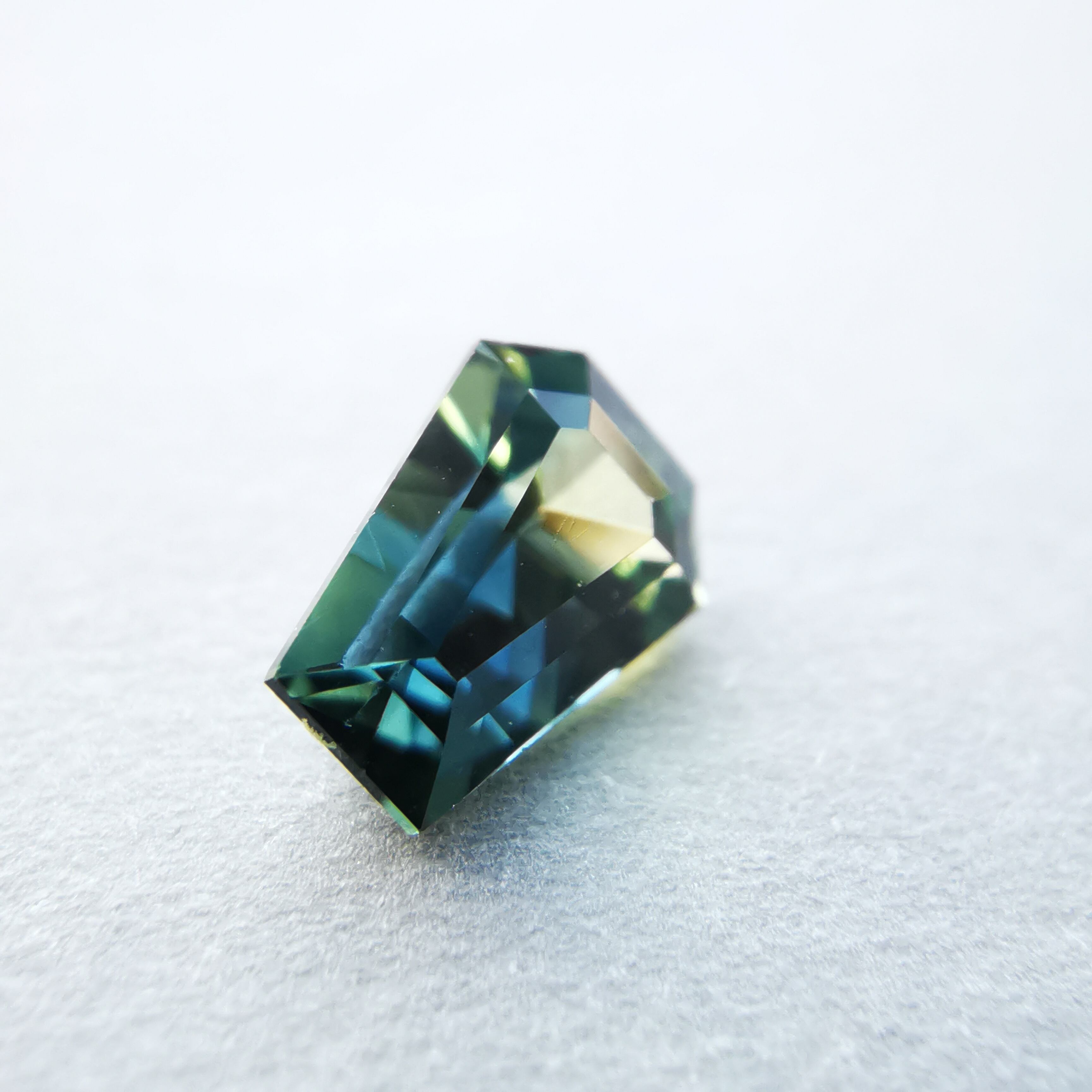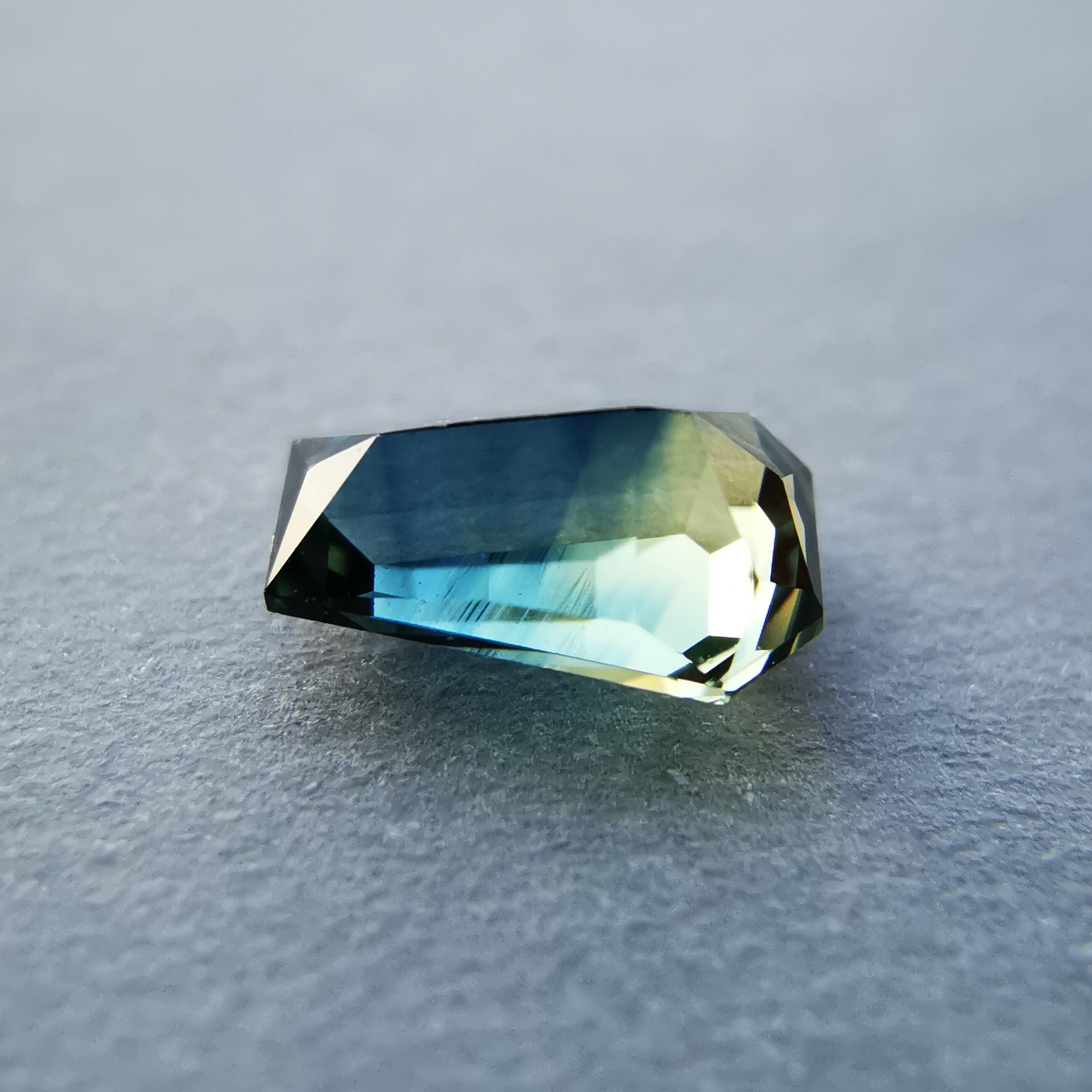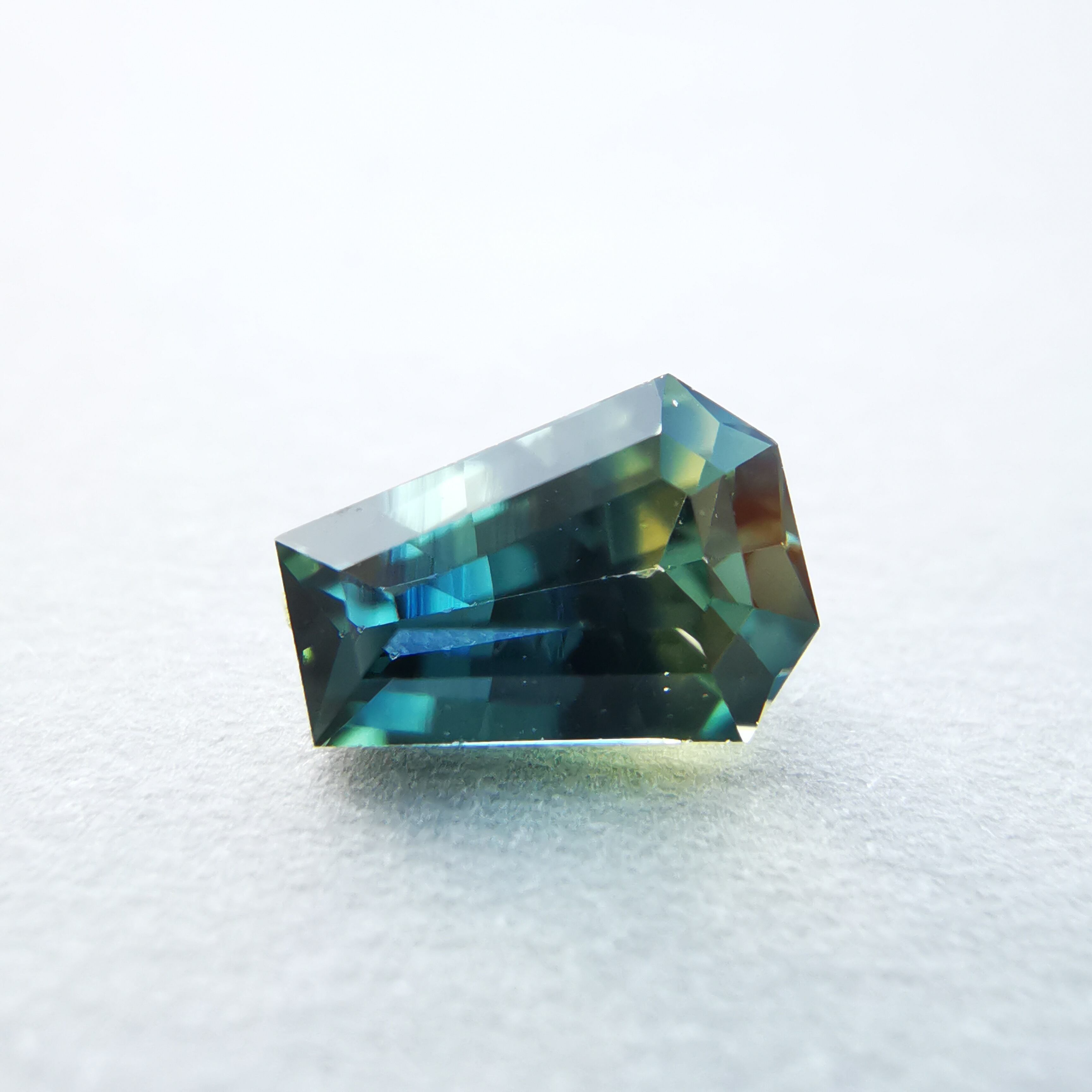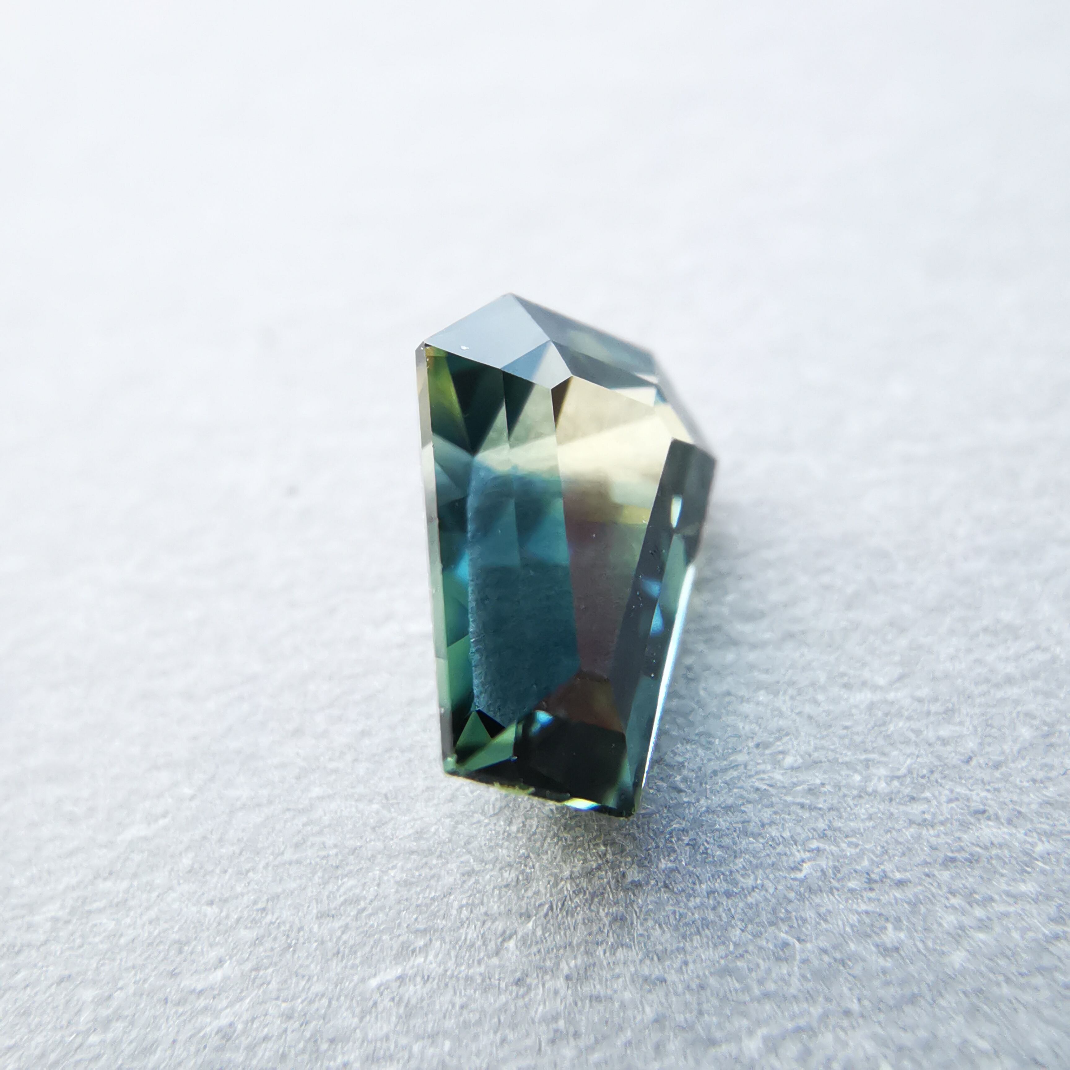 イエローと、ティールカラーのバイカラーのサファイアです。