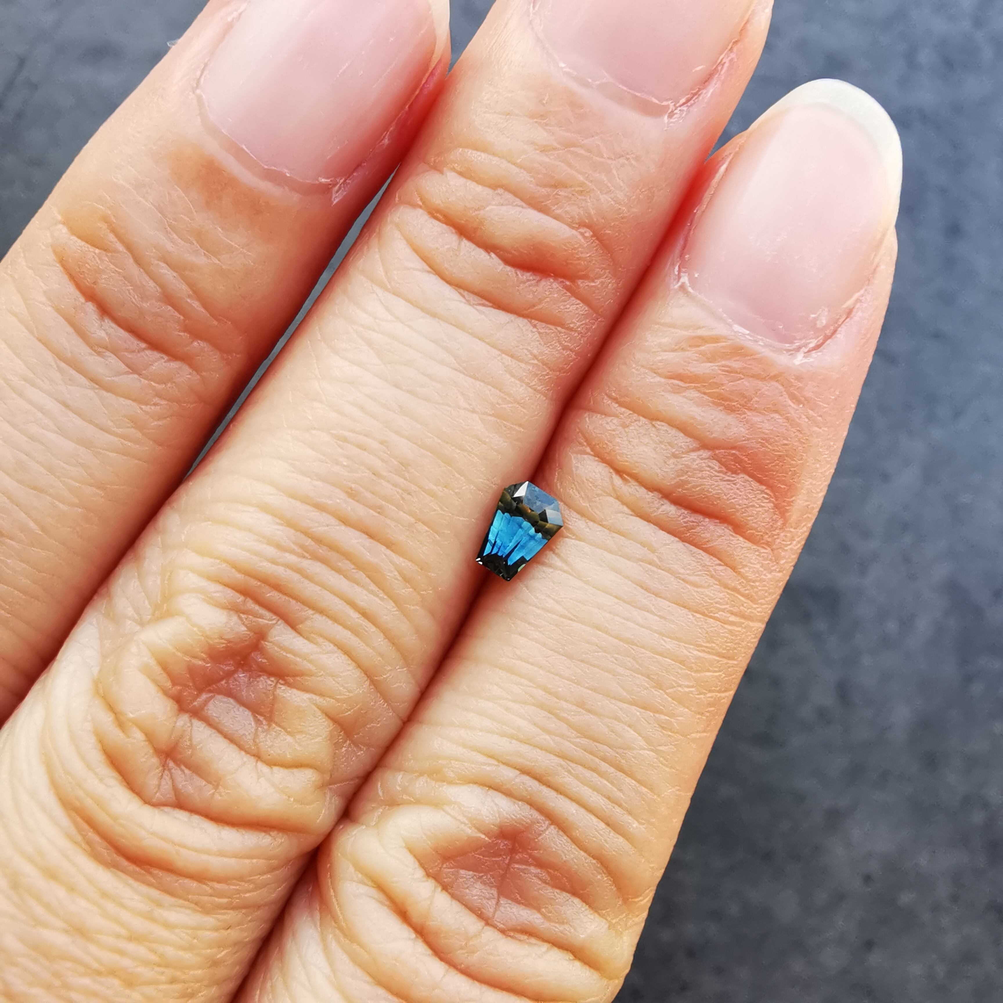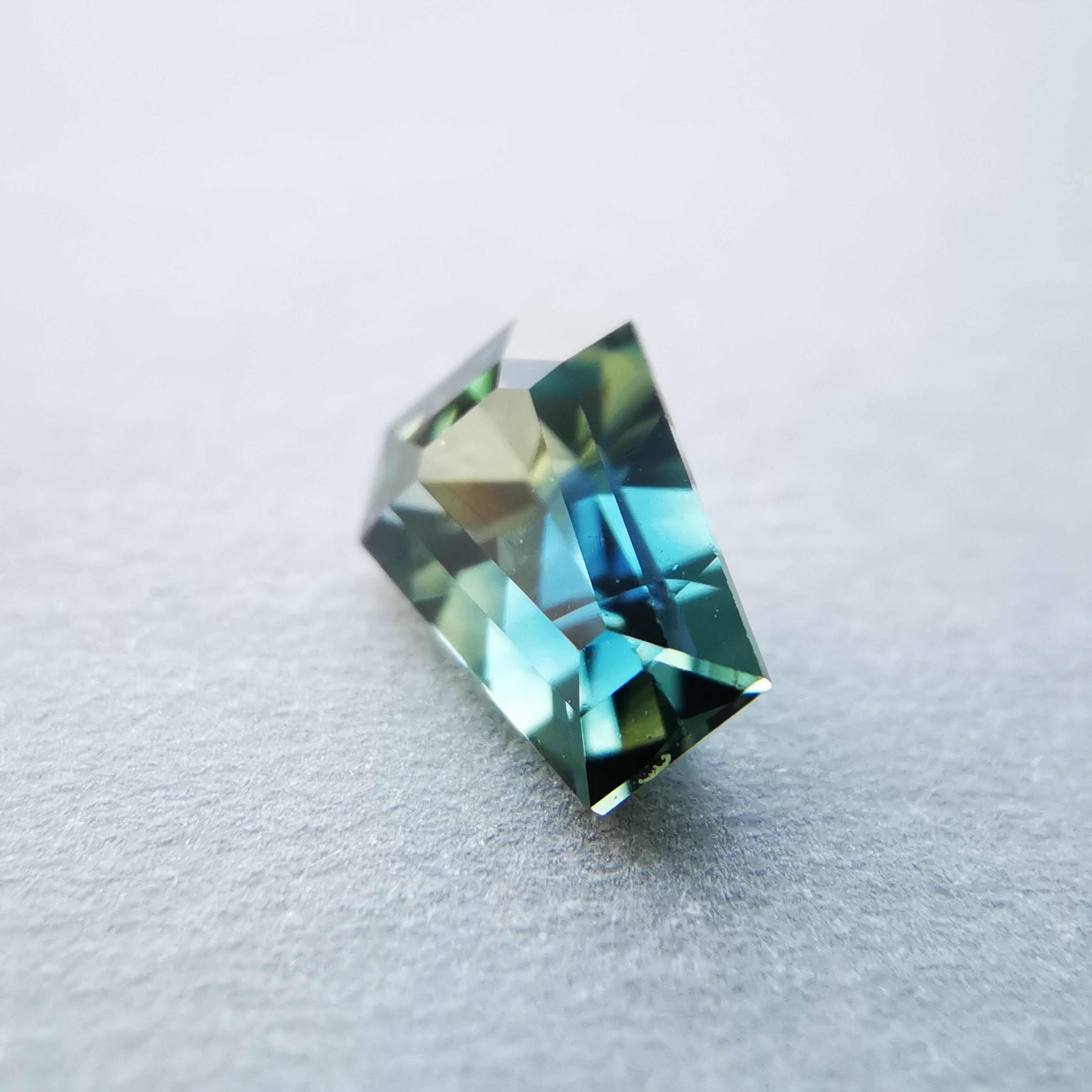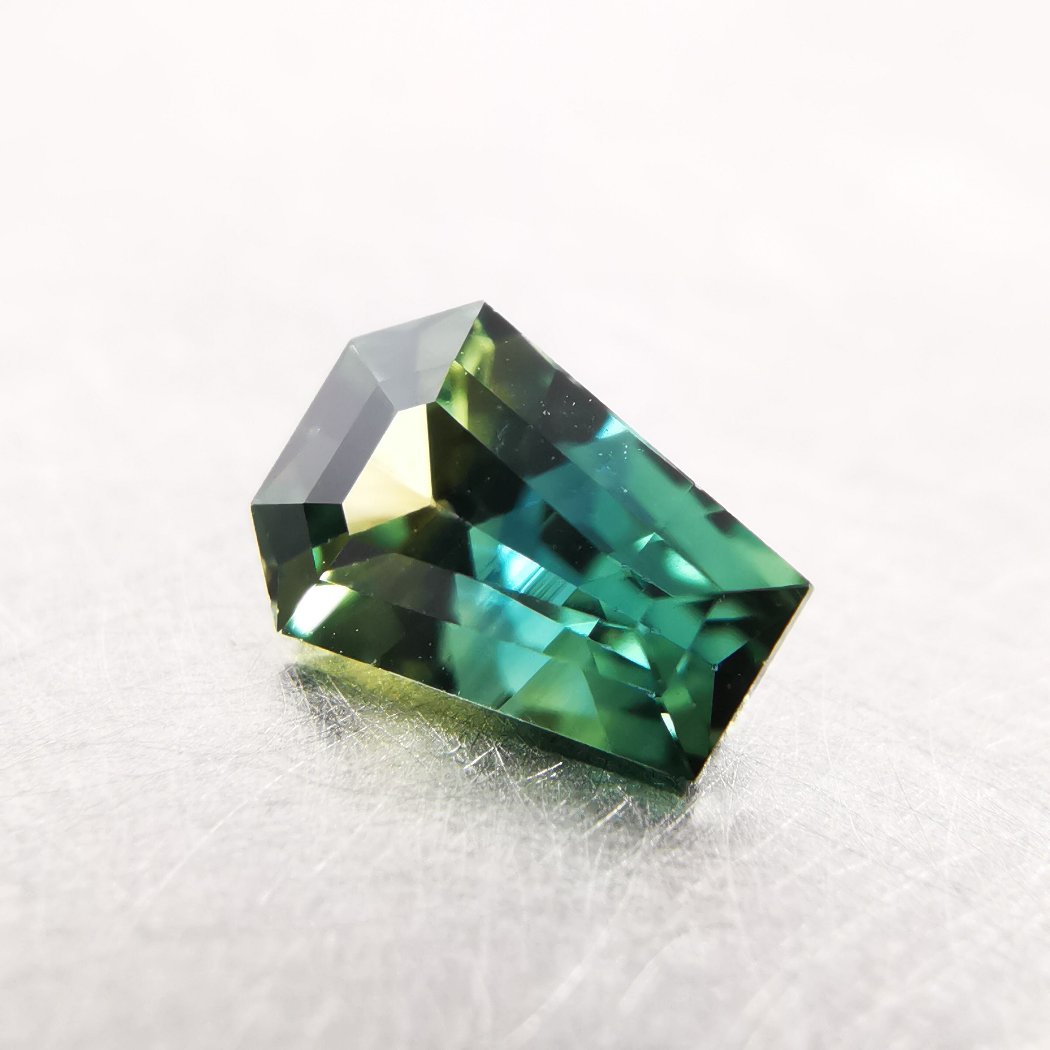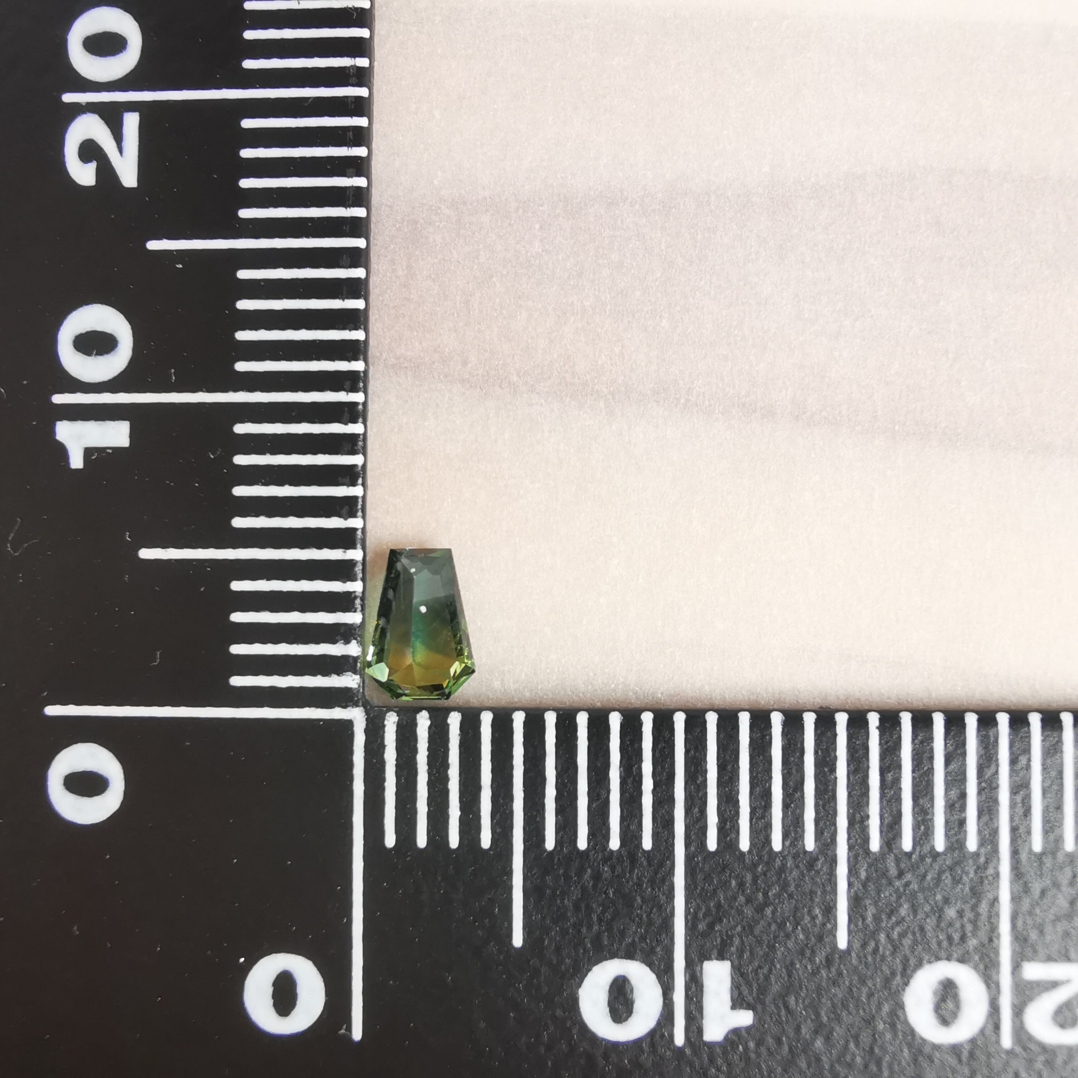 イエローと、ティールカラーのバイカラーのサファイアです。